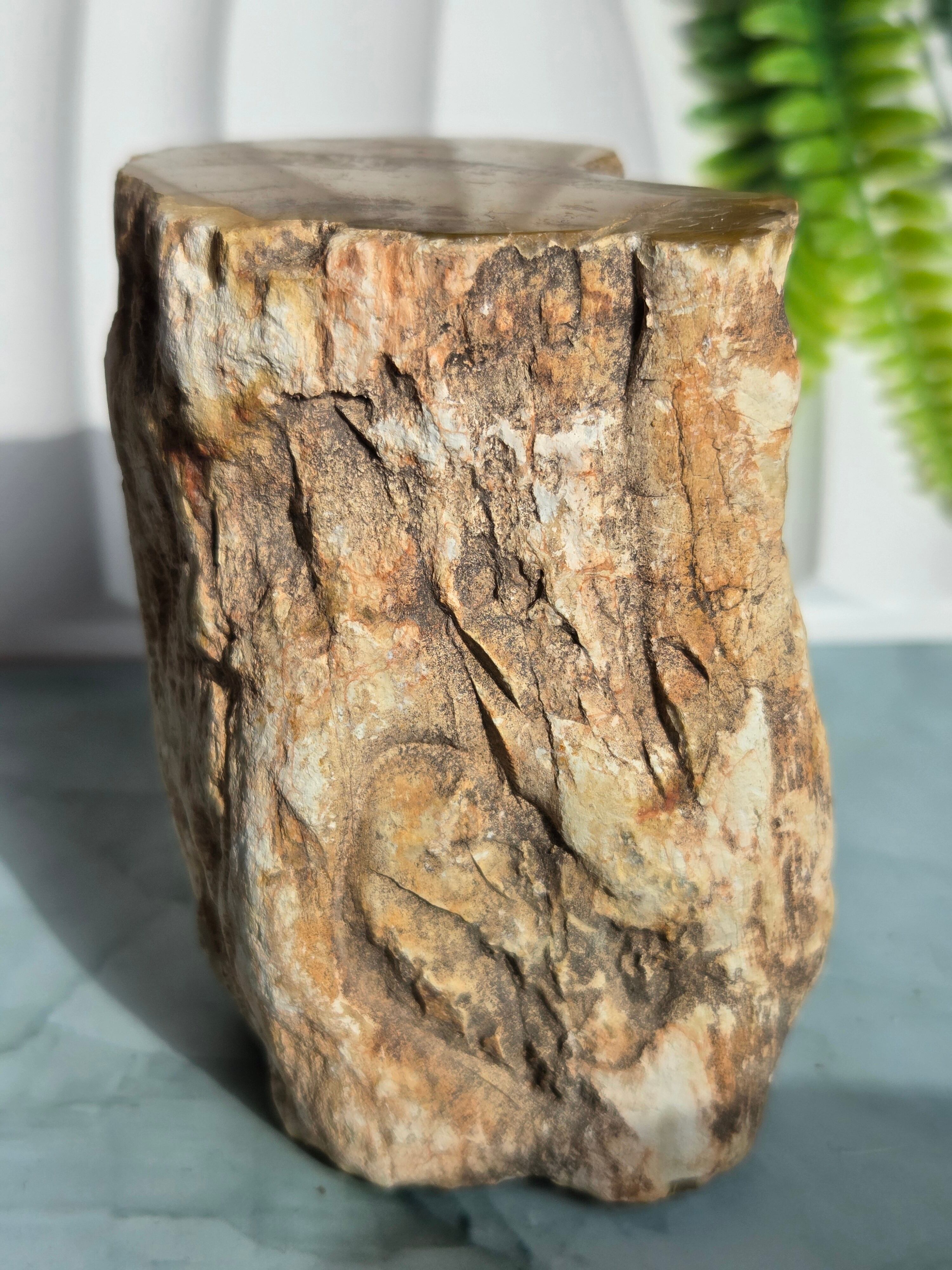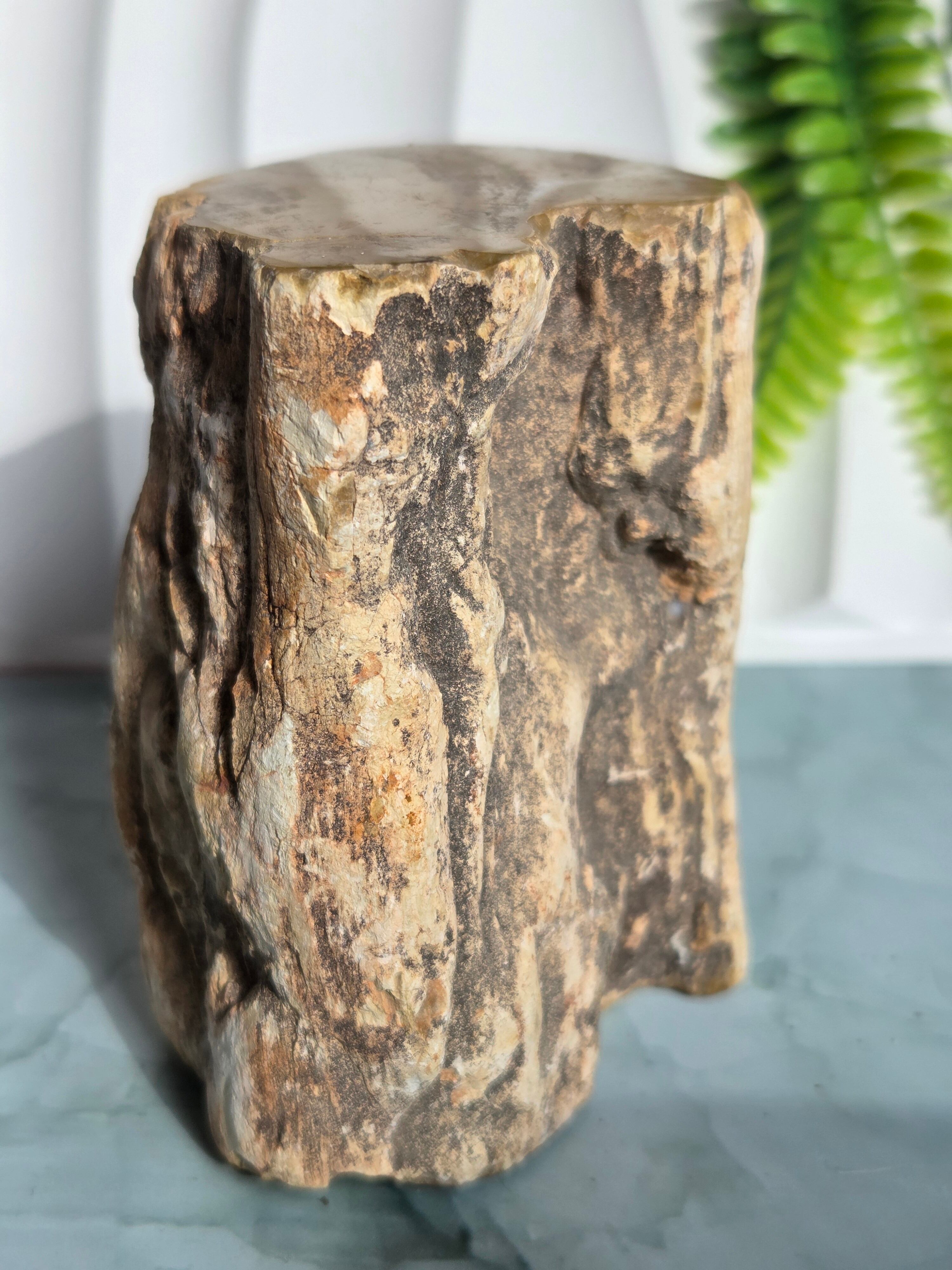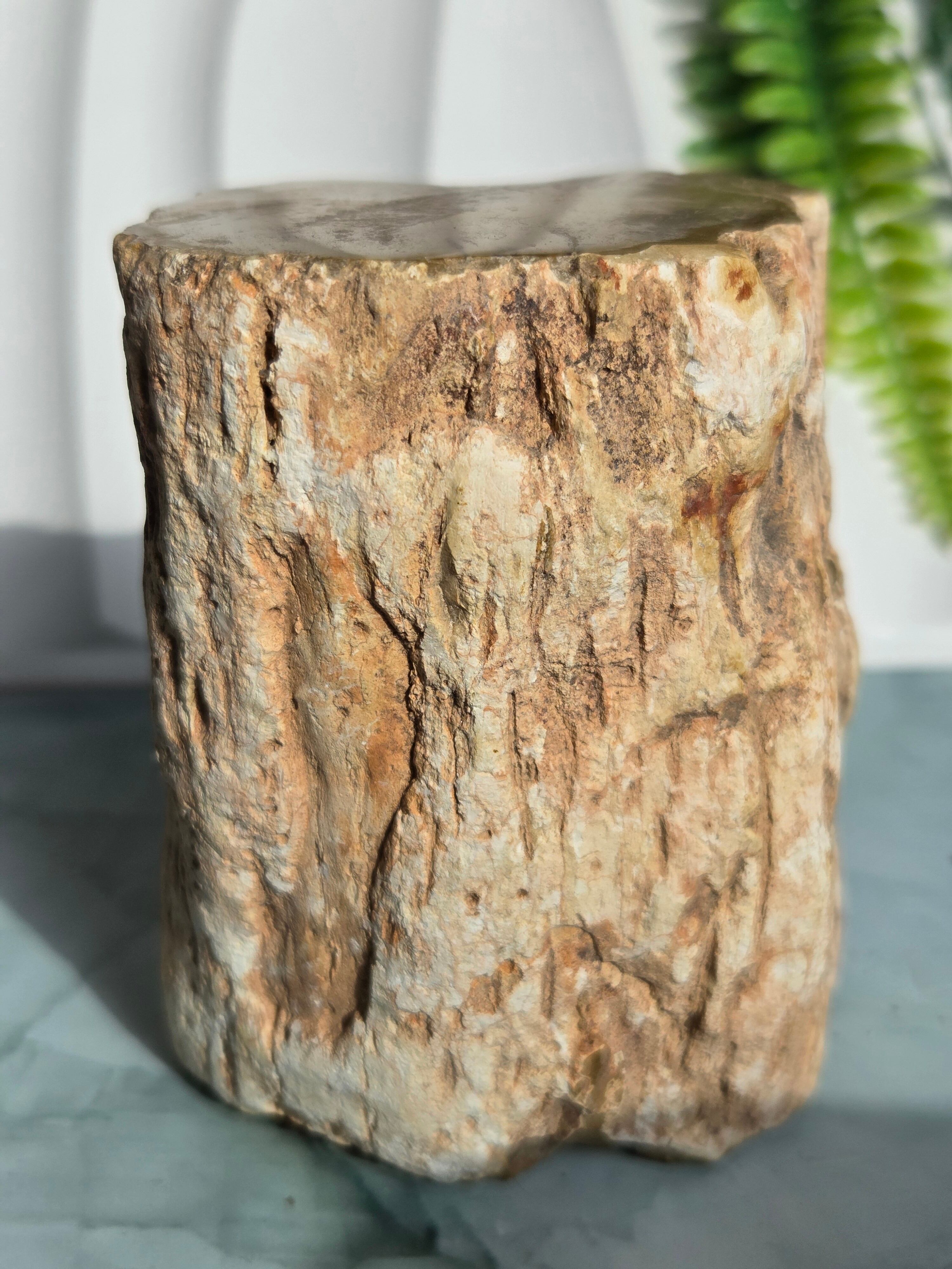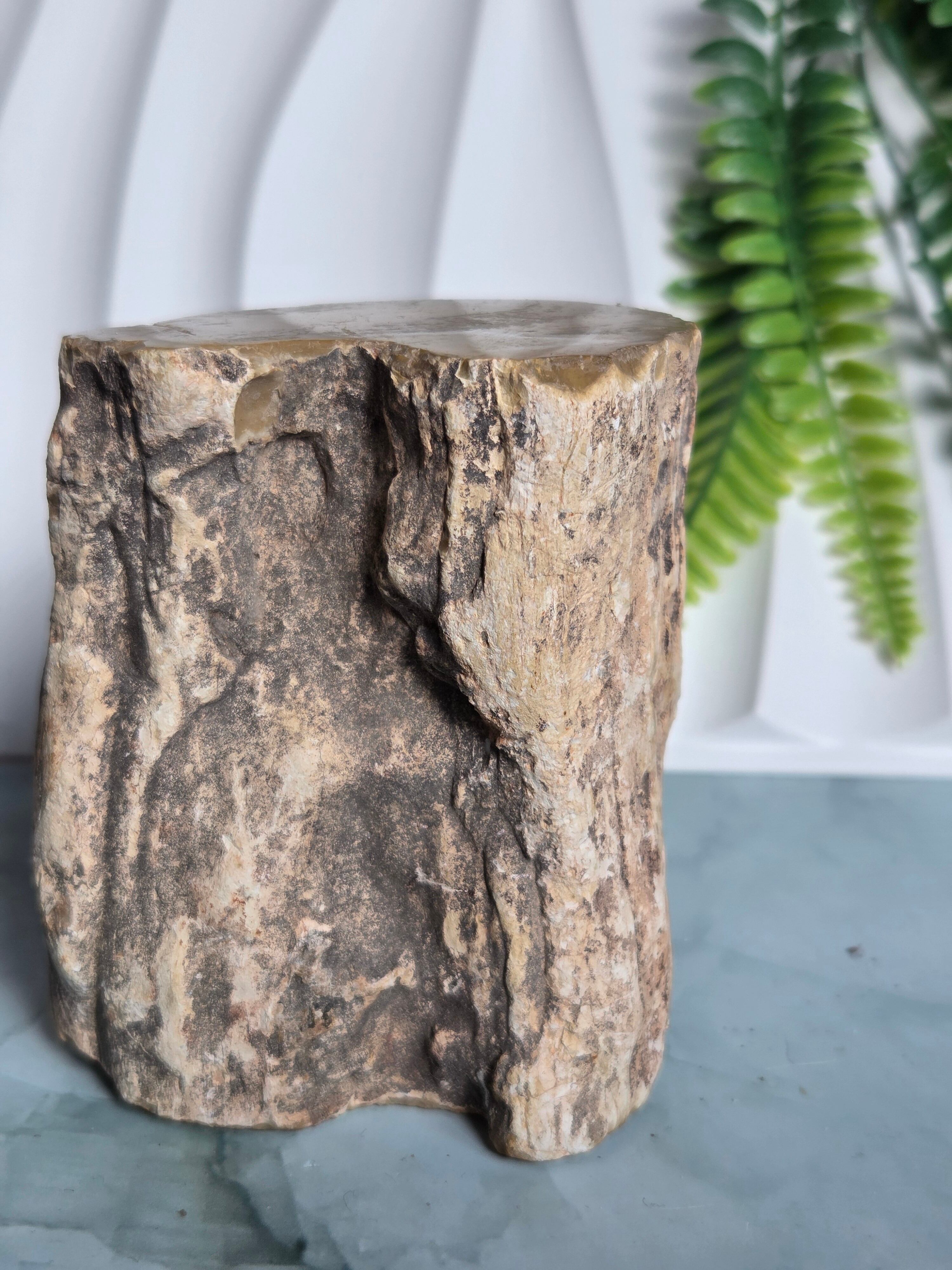 珪化木(けいかぼく)とは、地中に埋没した樹木が、珪酸分を含む地下水によって、木の組織が石英や玉髄などの鉱物に置き換わって化石になったものです。珪化木は「木の化石」とも呼ばれ、硬く、木材の微細な構造や年輪が残っていることもあります。馴染みやすい自然の雰囲気が素敵です。