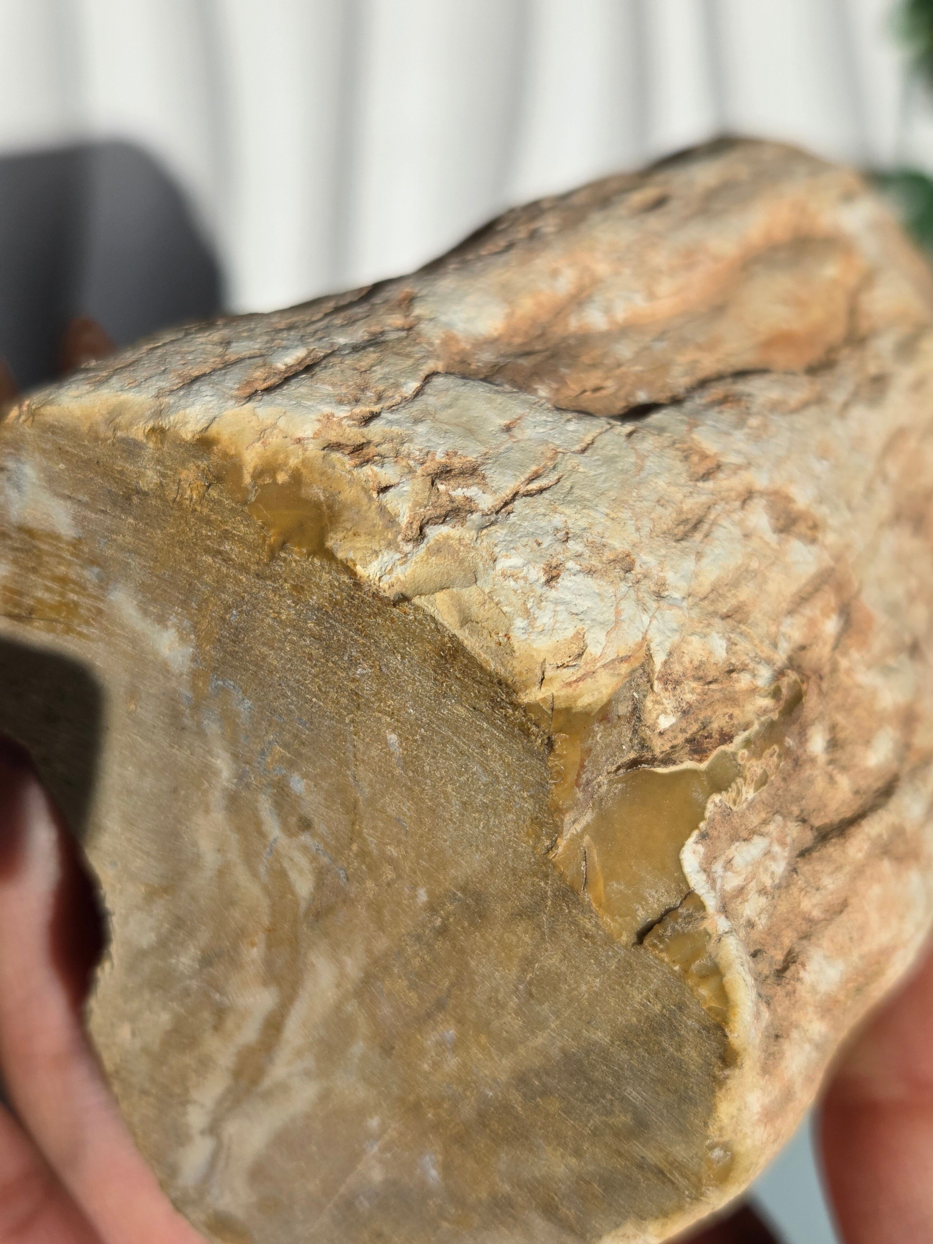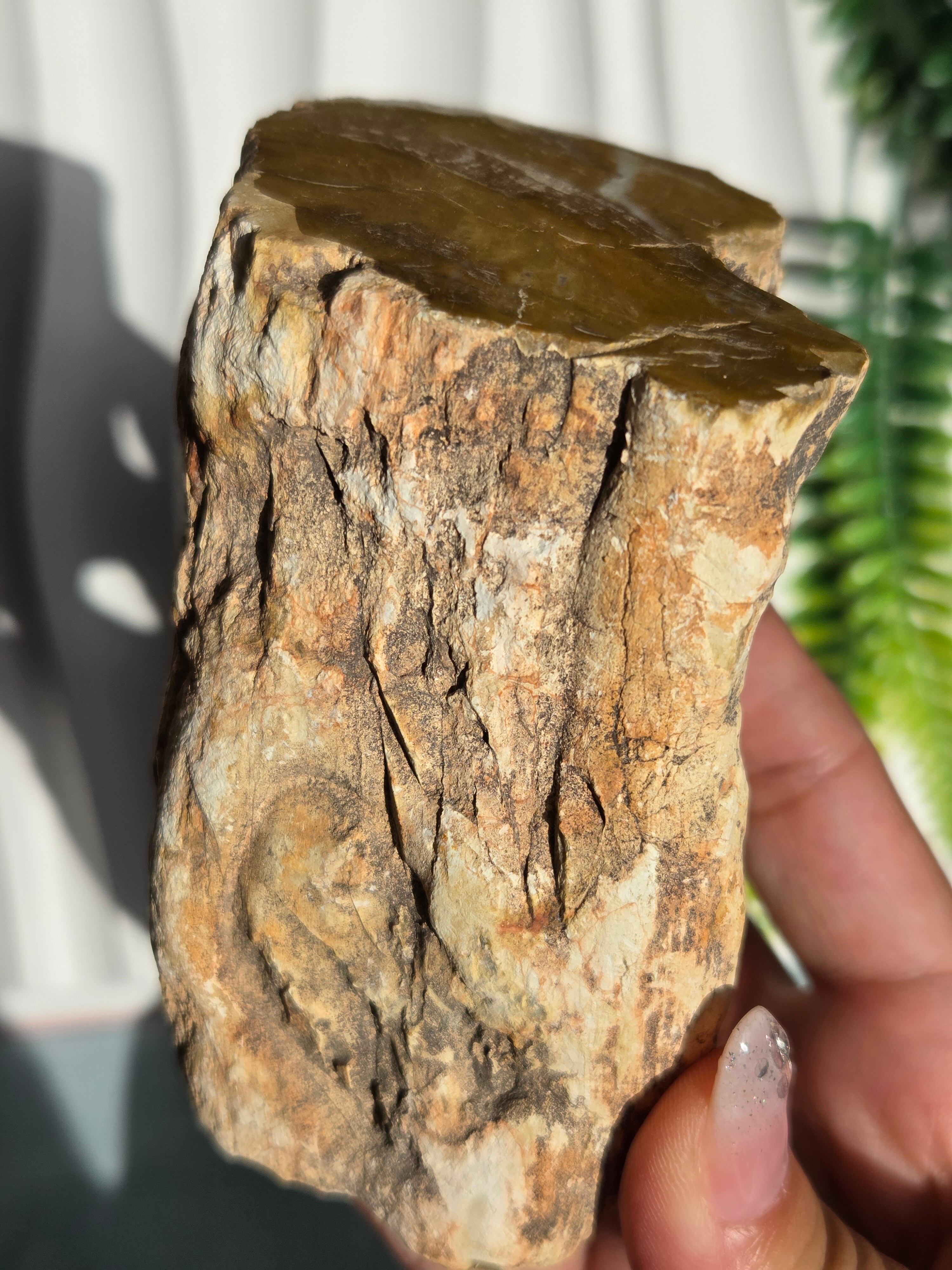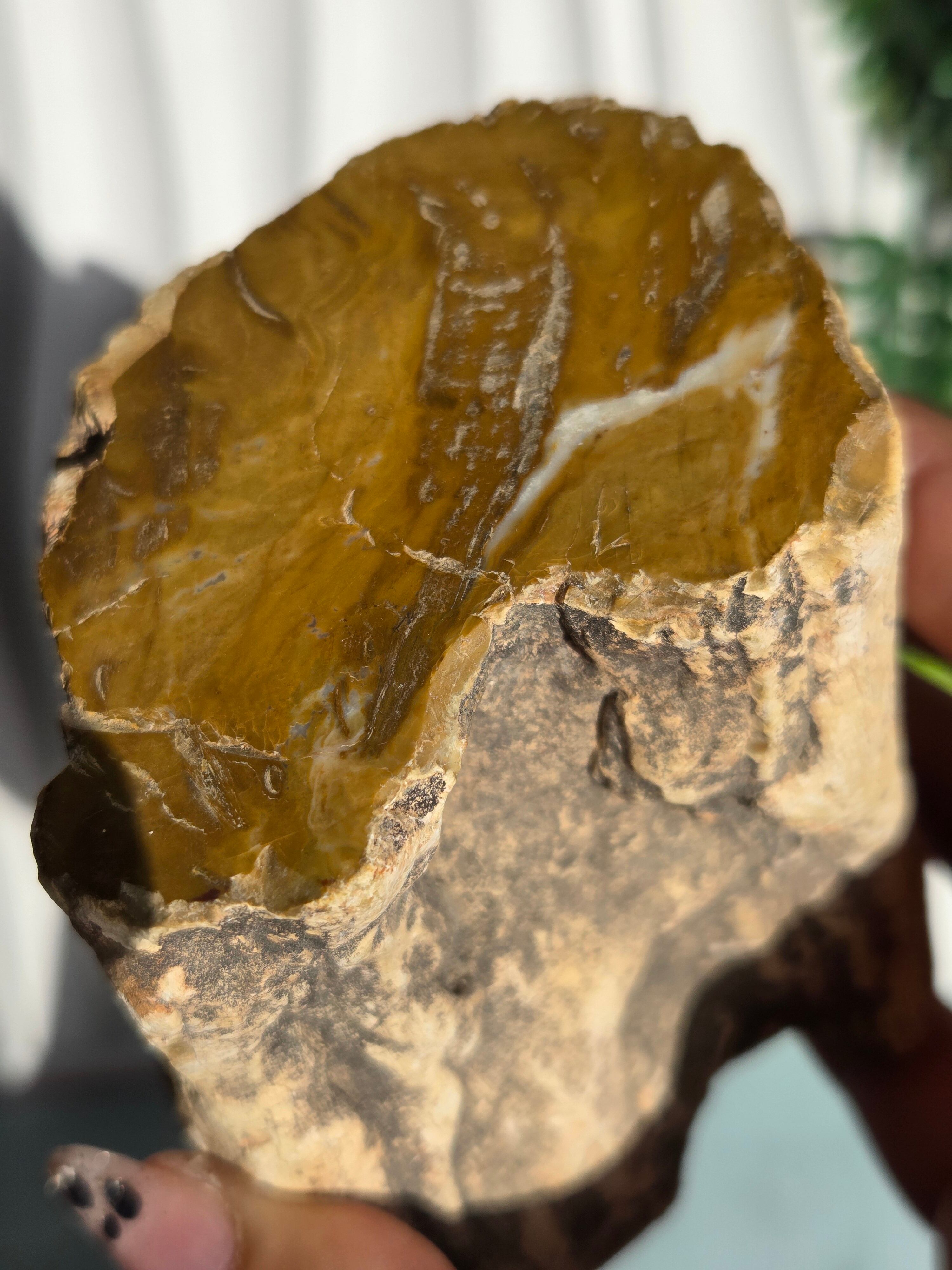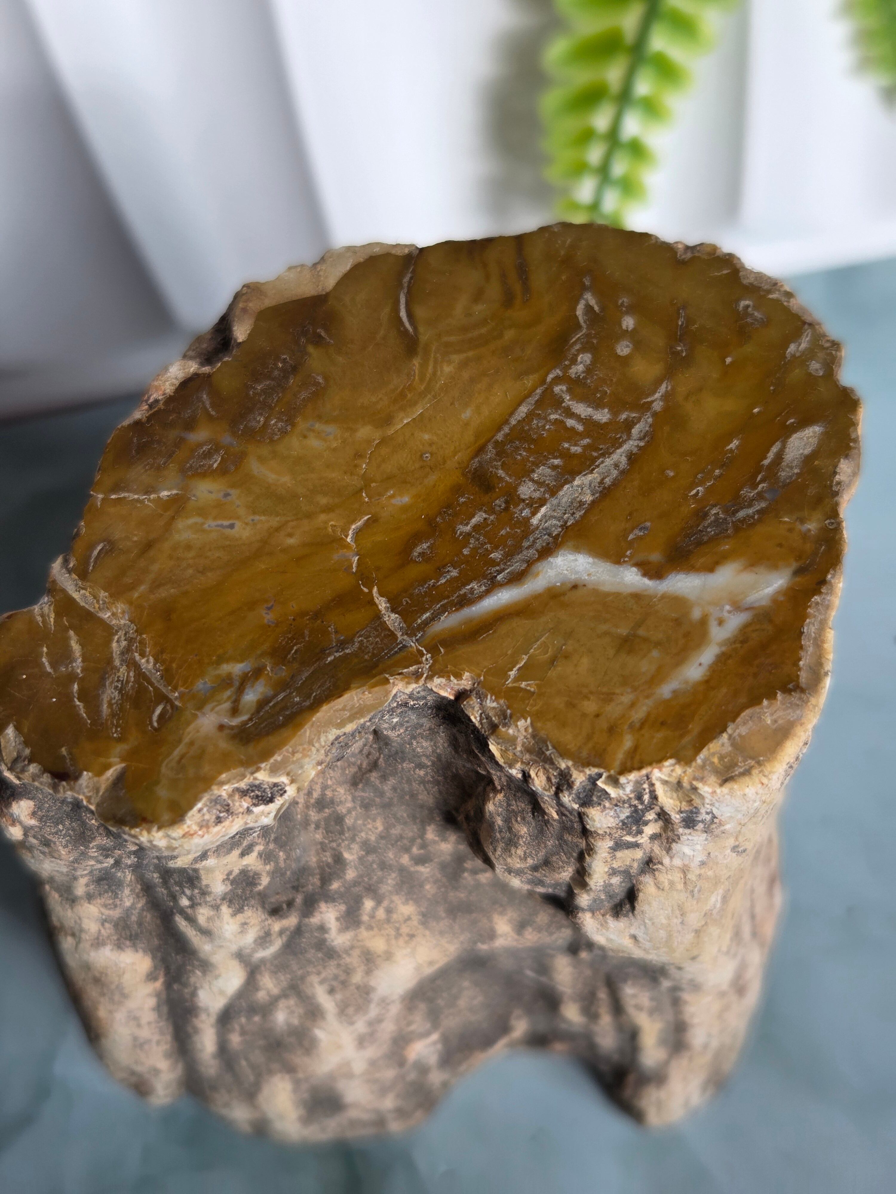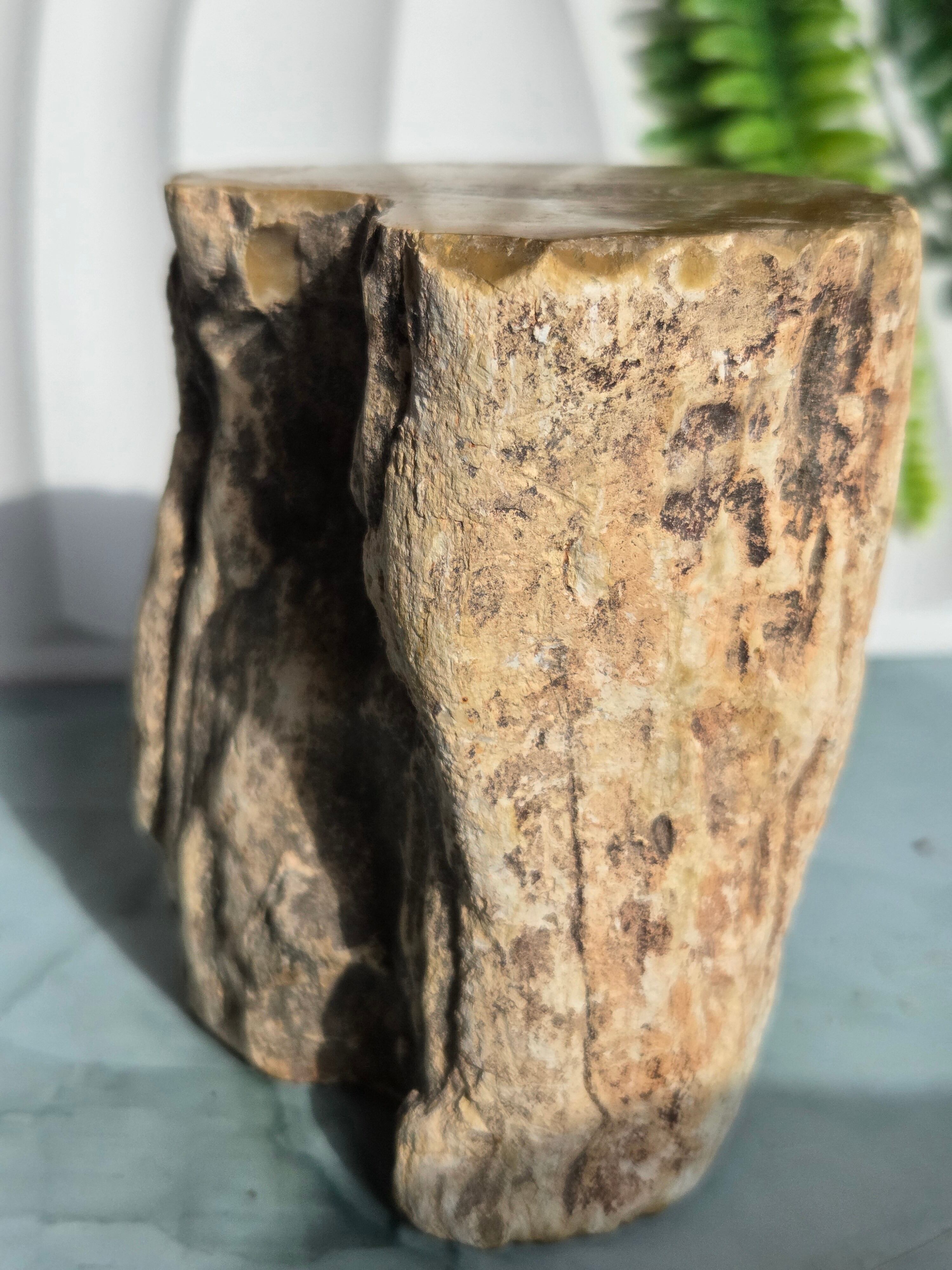 珪化木(けいかぼく)とは、地中に埋没した樹木が、珪酸分を含む地下水によって、木の組織が石英や玉髄などの鉱物に置き換わって化石になったものです。珪化木は「木の化石」とも呼ばれ、硬く、木材の微細な構造や年輪が残っていることもあります。馴染みやすい自然の雰囲気が素敵です。