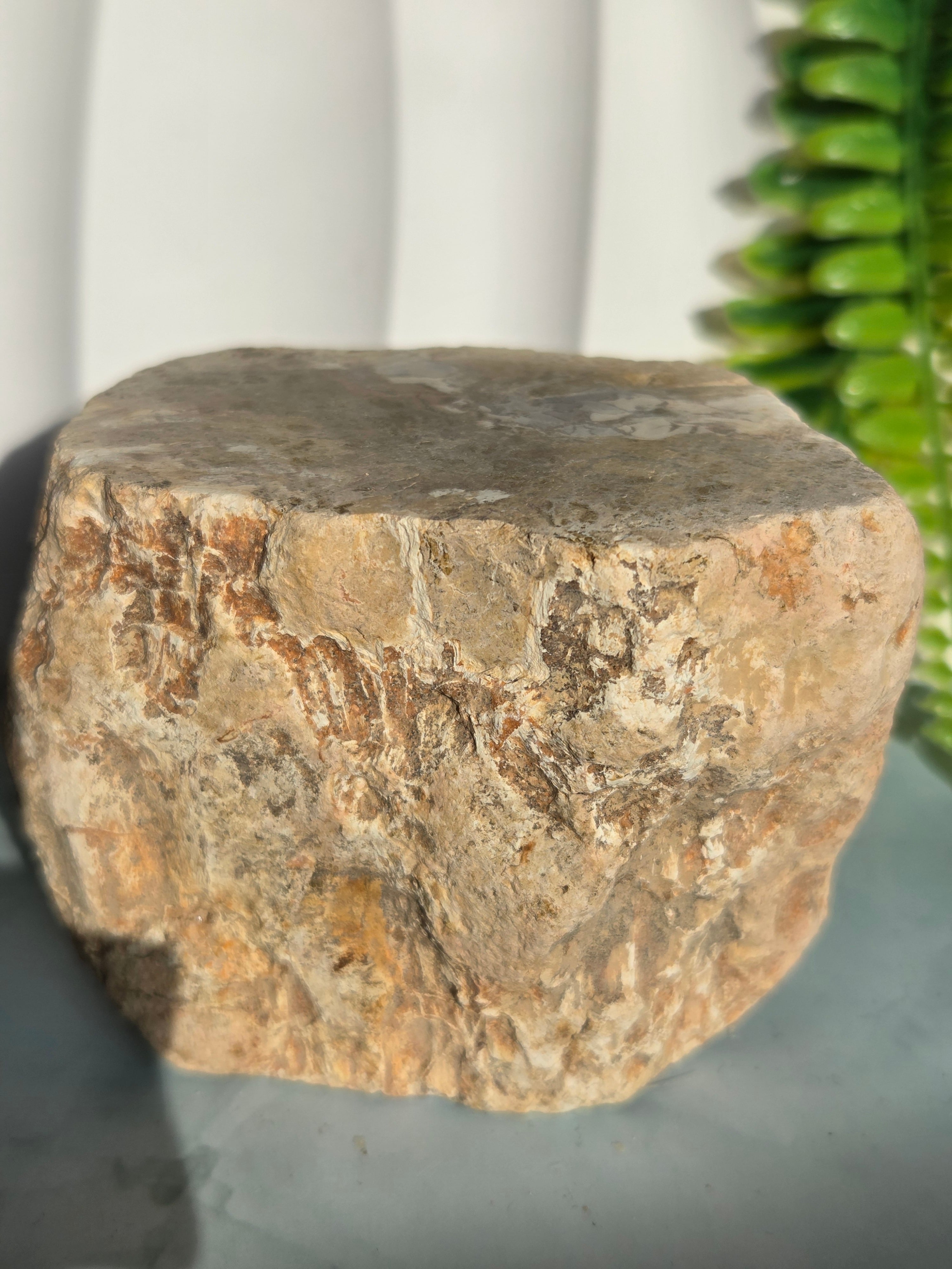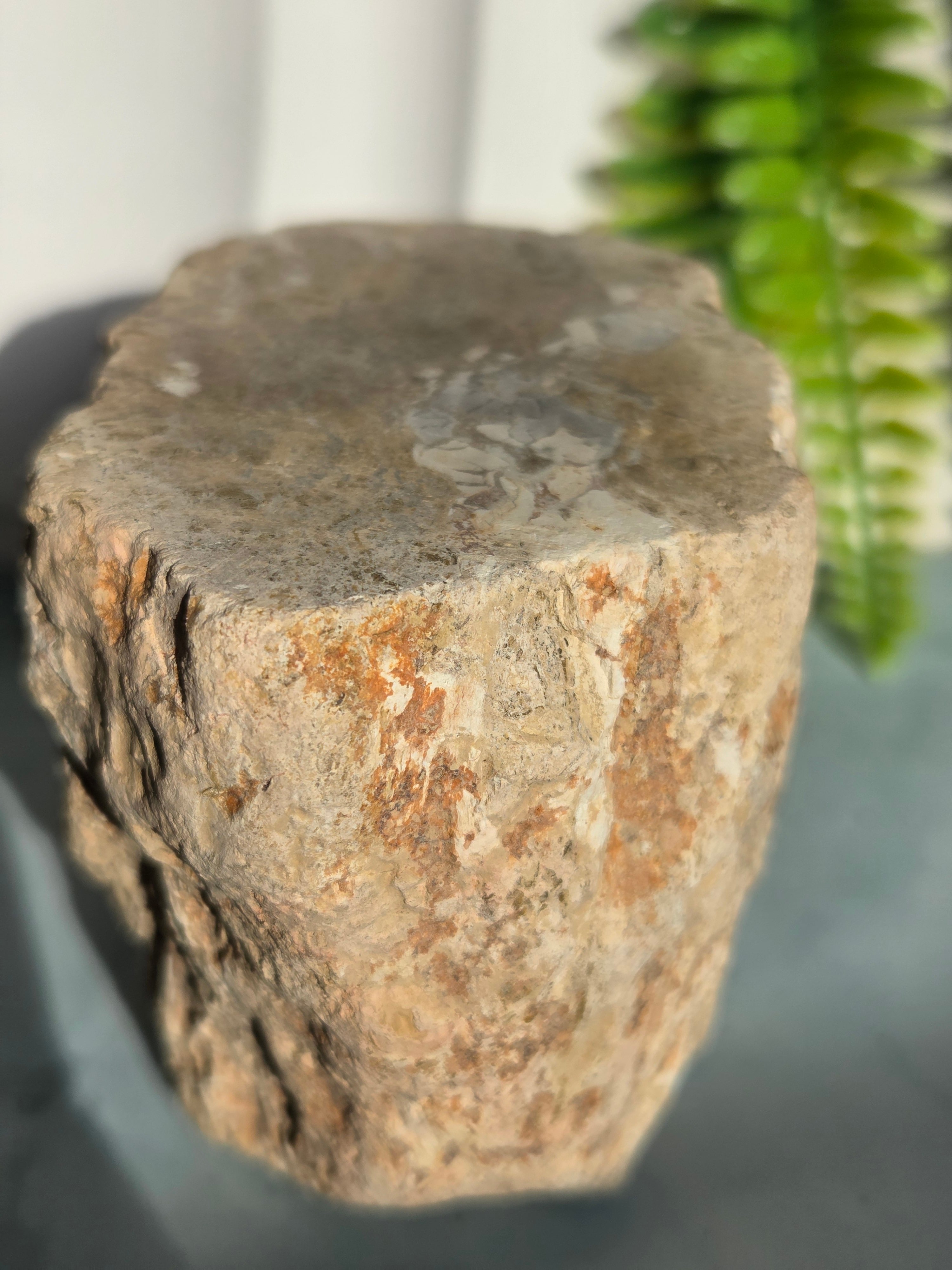 珪化木(けいかぼく)とは、地中に埋没した樹木が、珪酸分を含む地下水によって、木の組織が石英や玉髄などの鉱物に置き換わって化石になったものです。珪化木は「木の化石」とも呼ばれ、硬く、木材の微細な構造や年輪が残っていることもあります。馴染みやすい自然の雰囲気が素敵です。