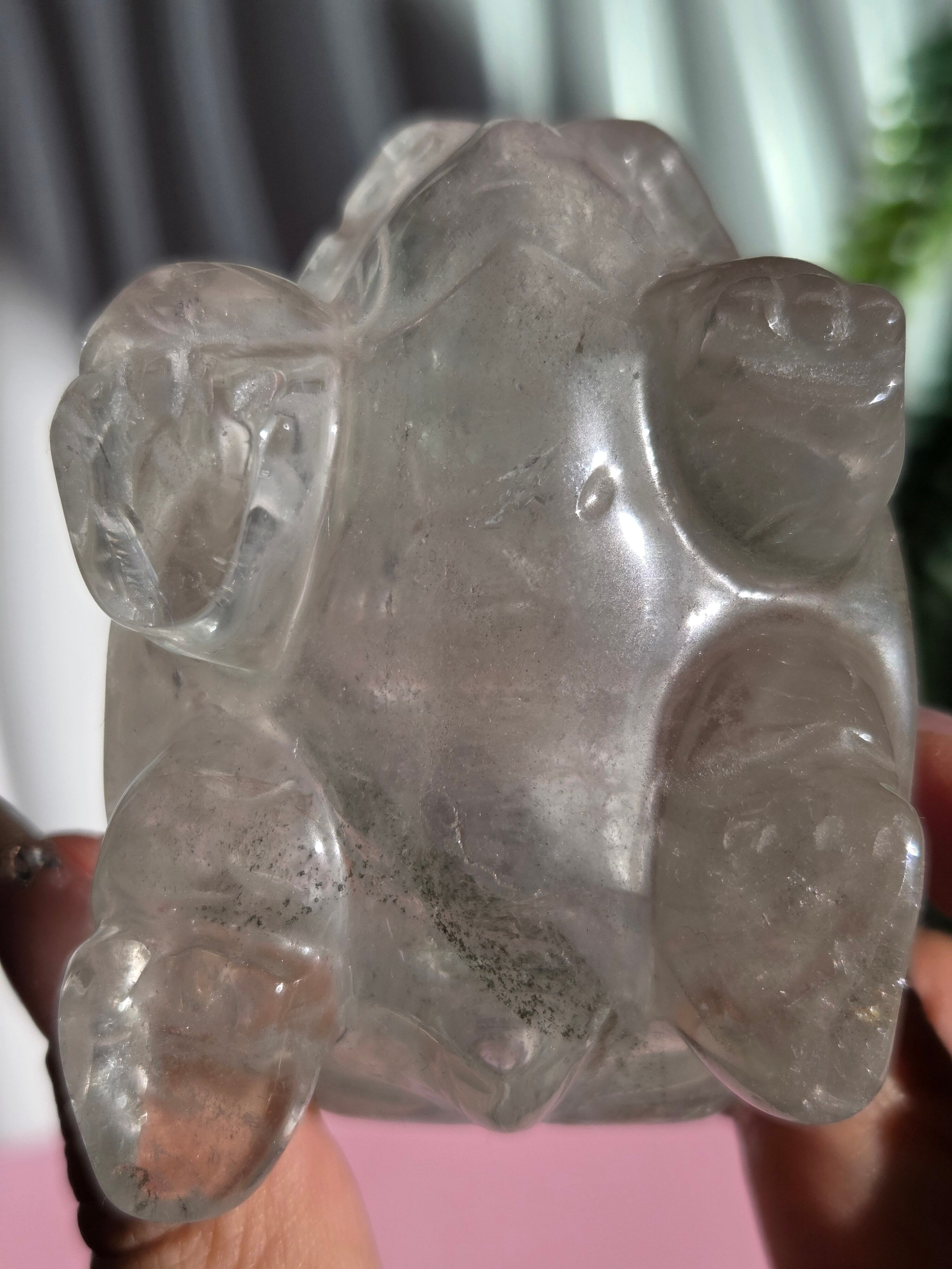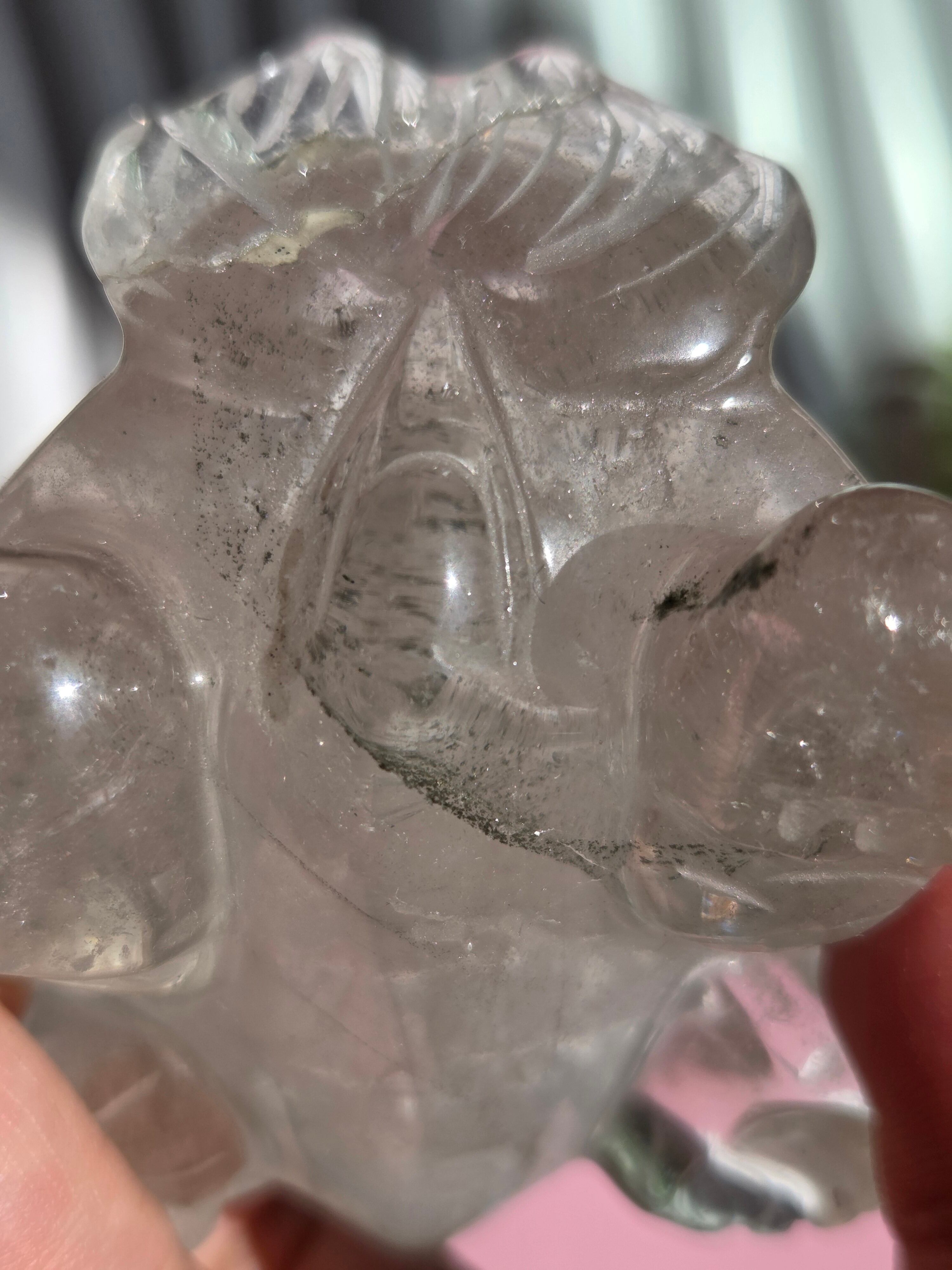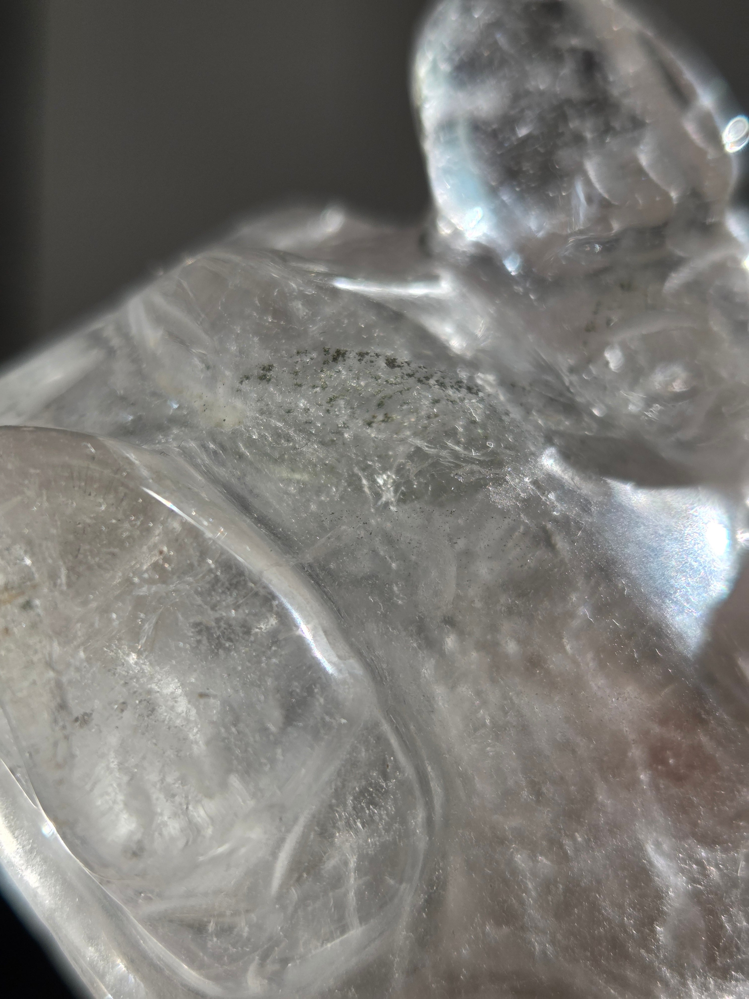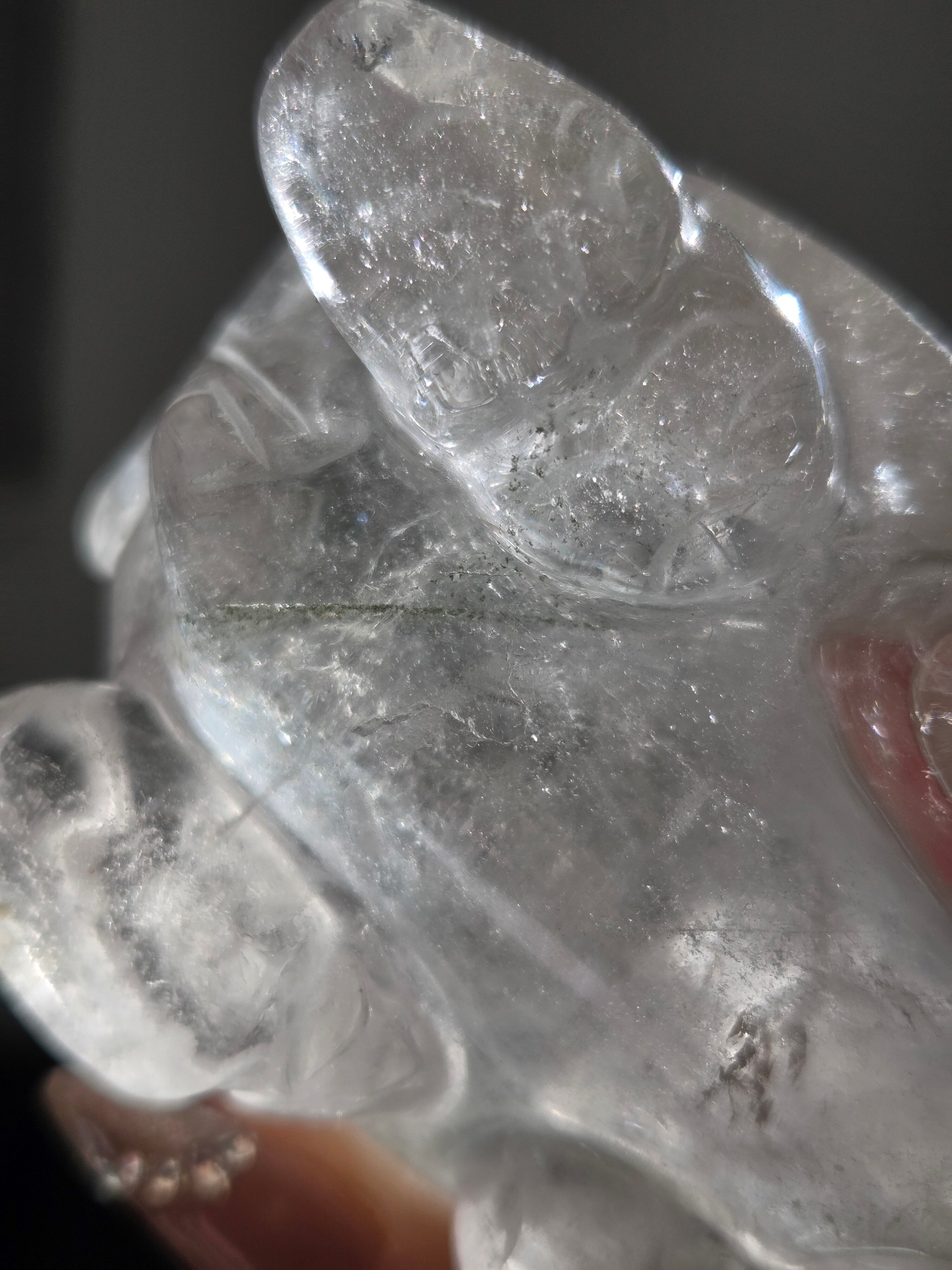 水晶の中にクローライトのインクルージョンが見えます。なので表記としては、ガーデンクォーツなのですが、ほぼ水晶です。