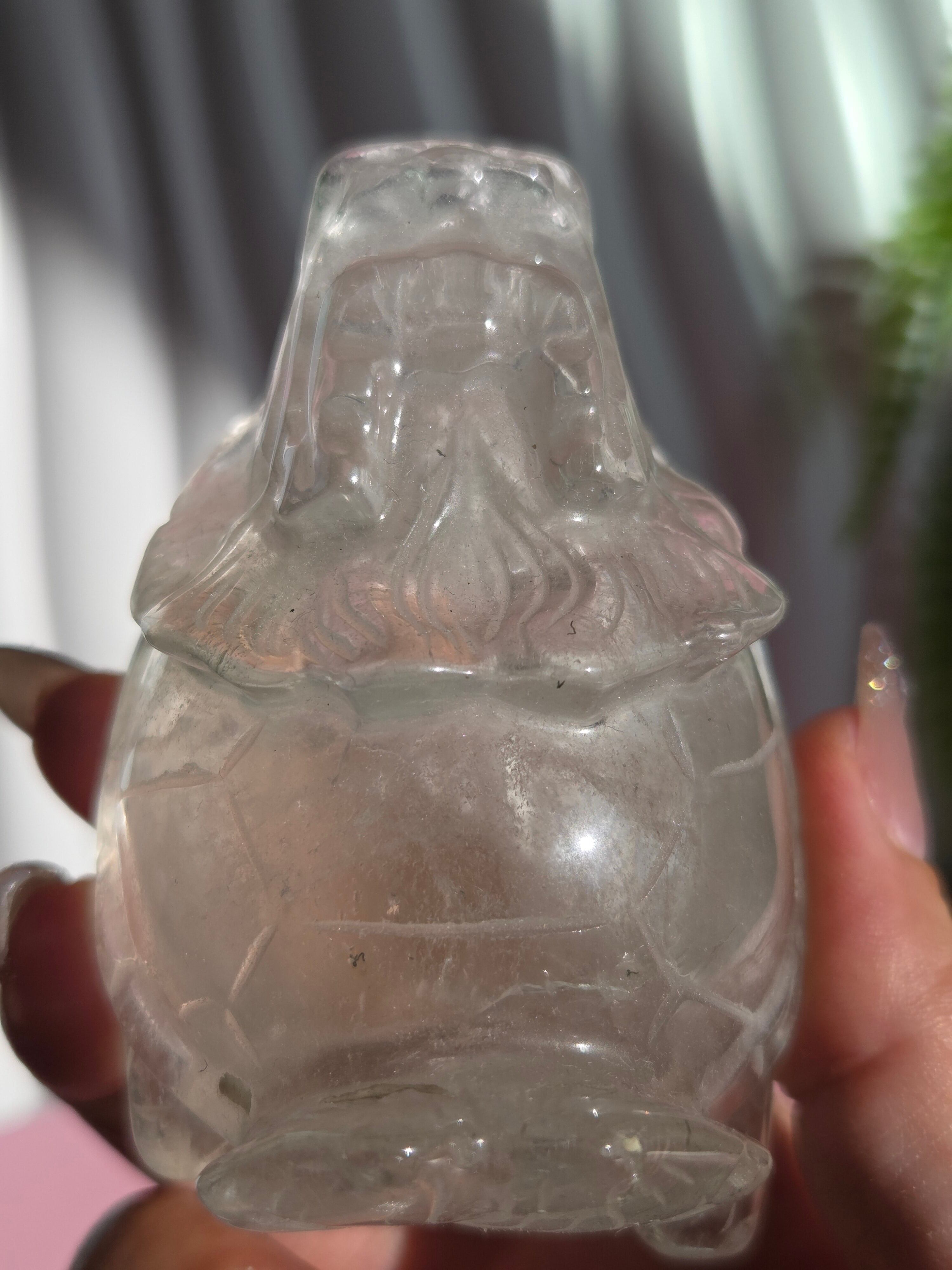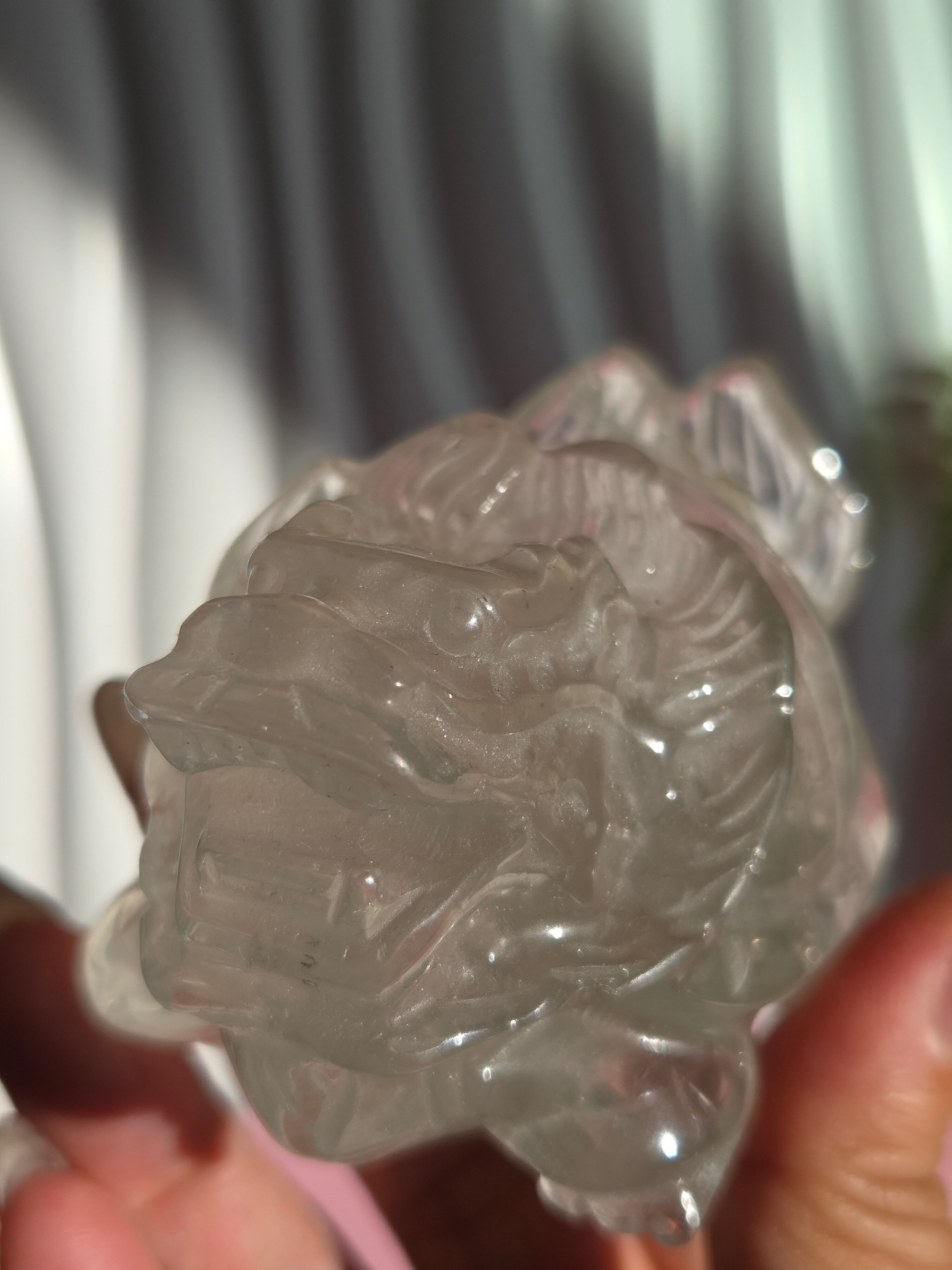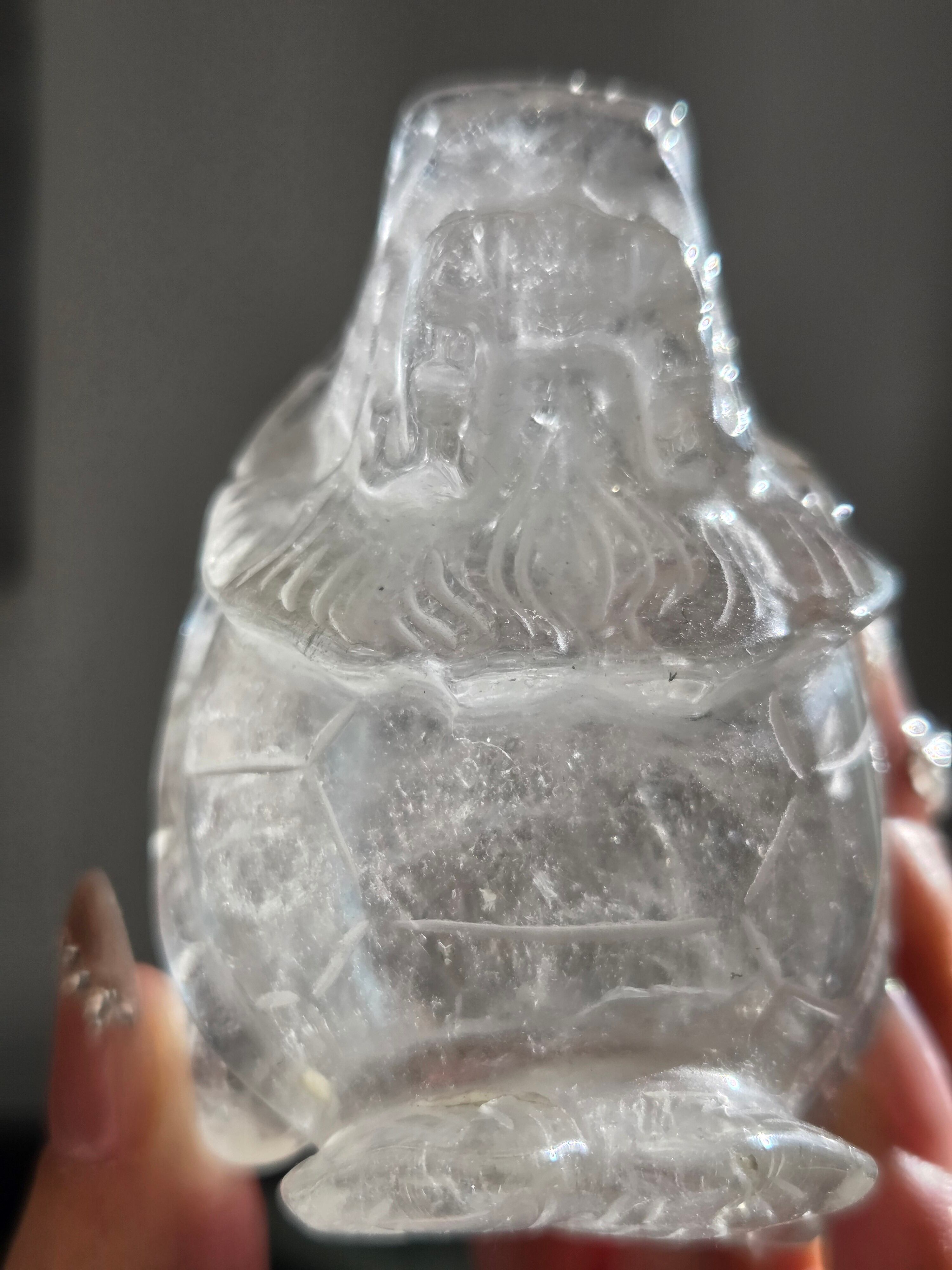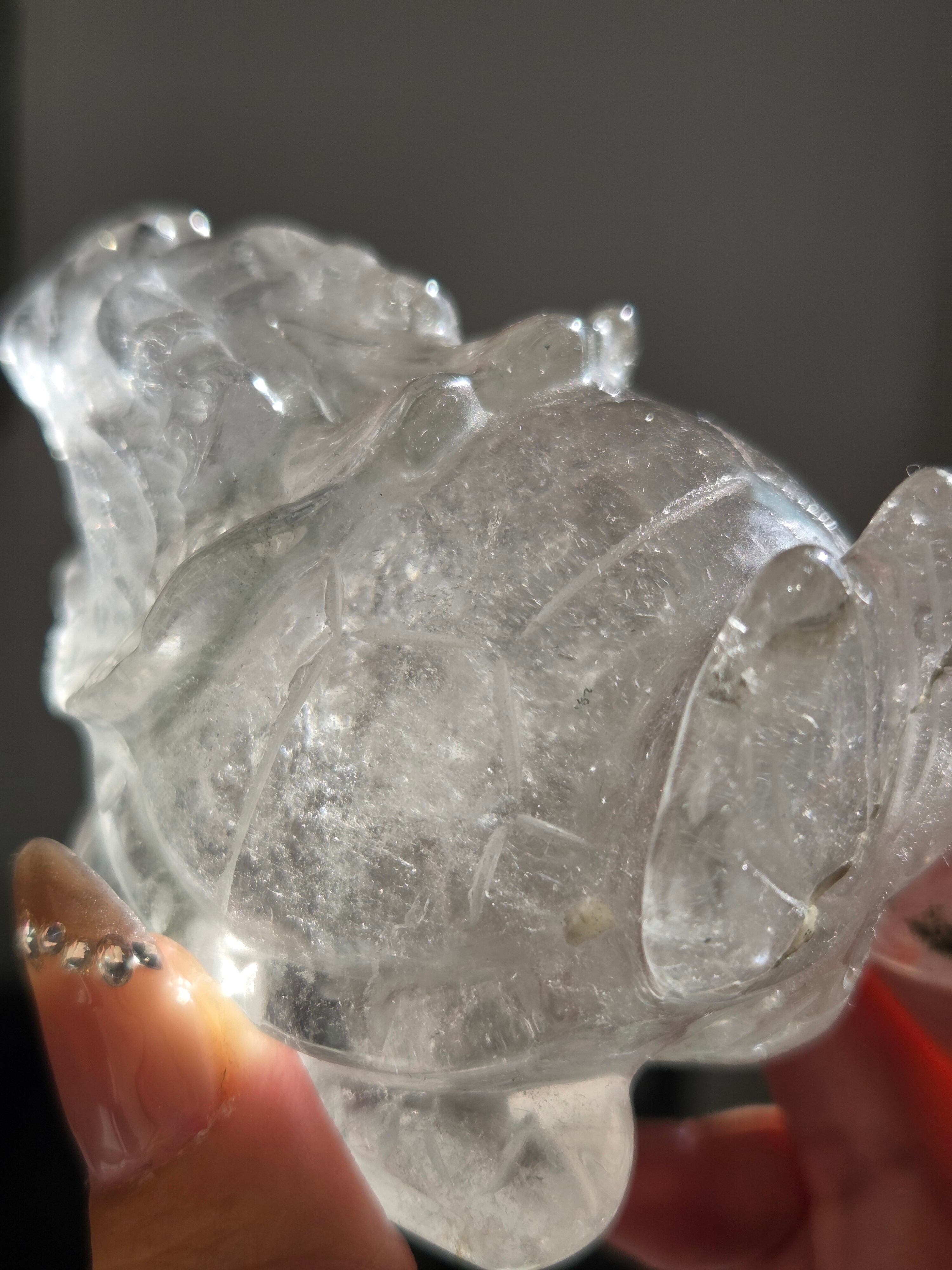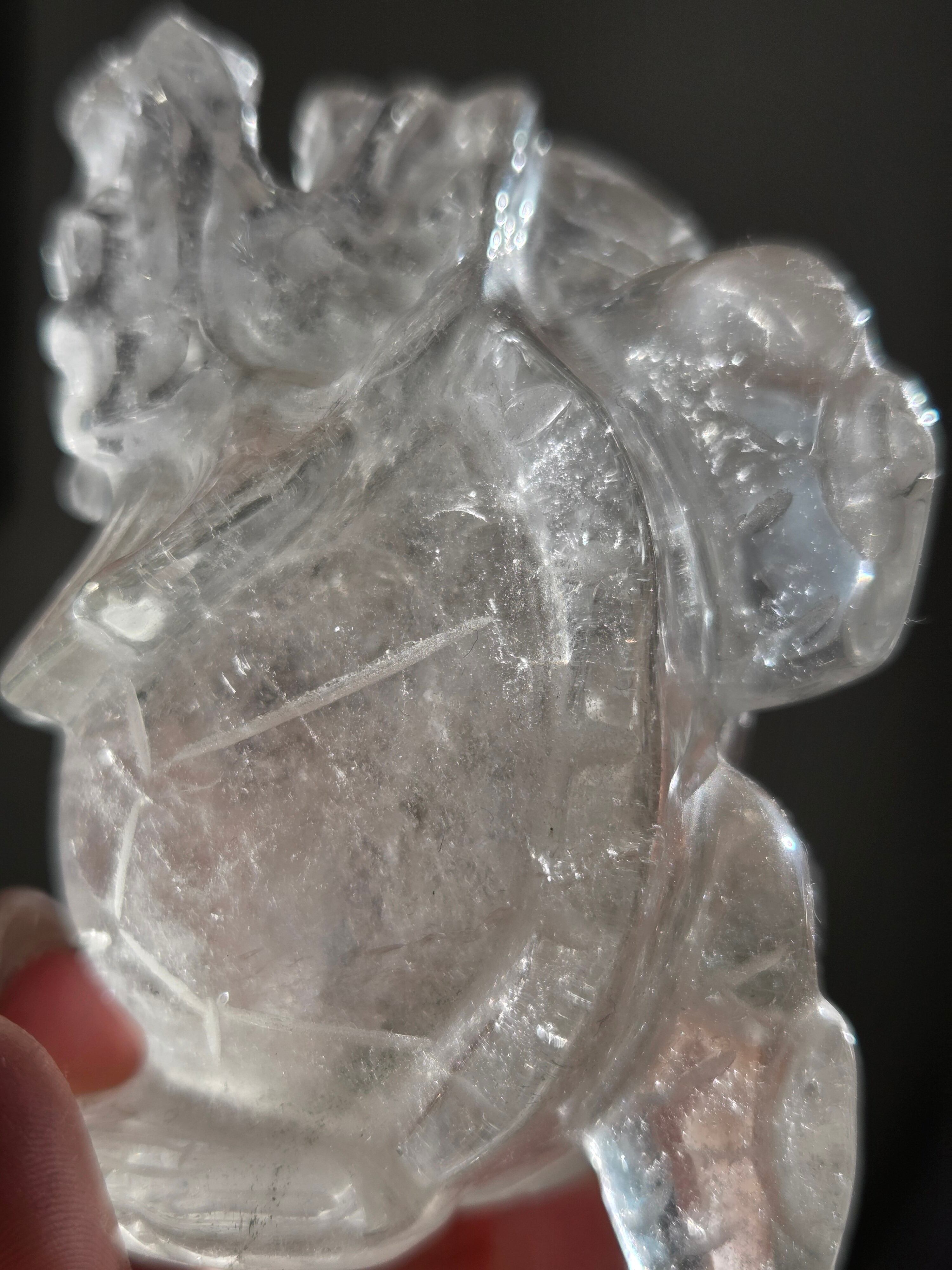 水晶の中にクローライトのインクルージョンが見えます。なので表記としては、ガーデンクォーツなのですが、ほぼ水晶です。