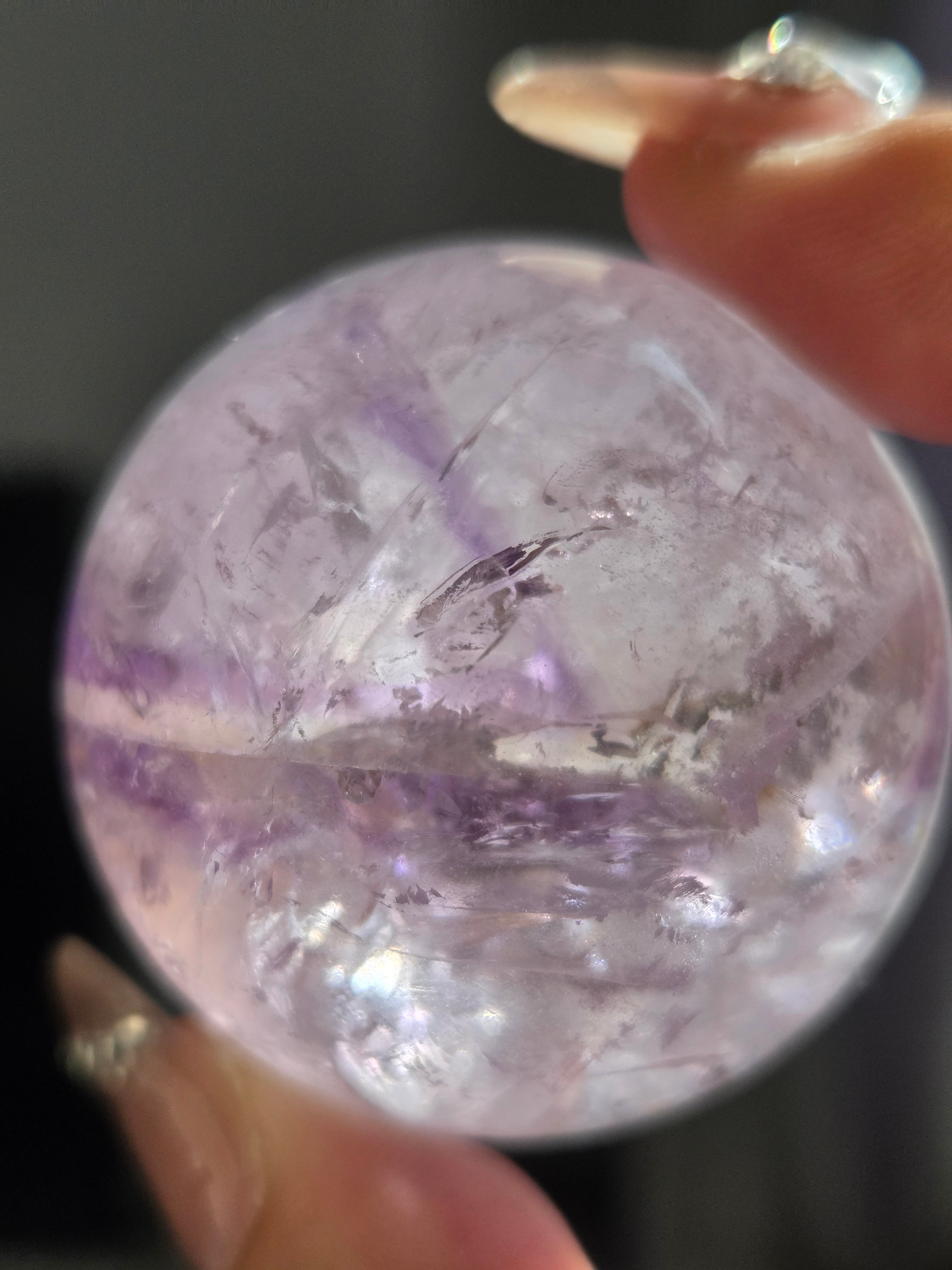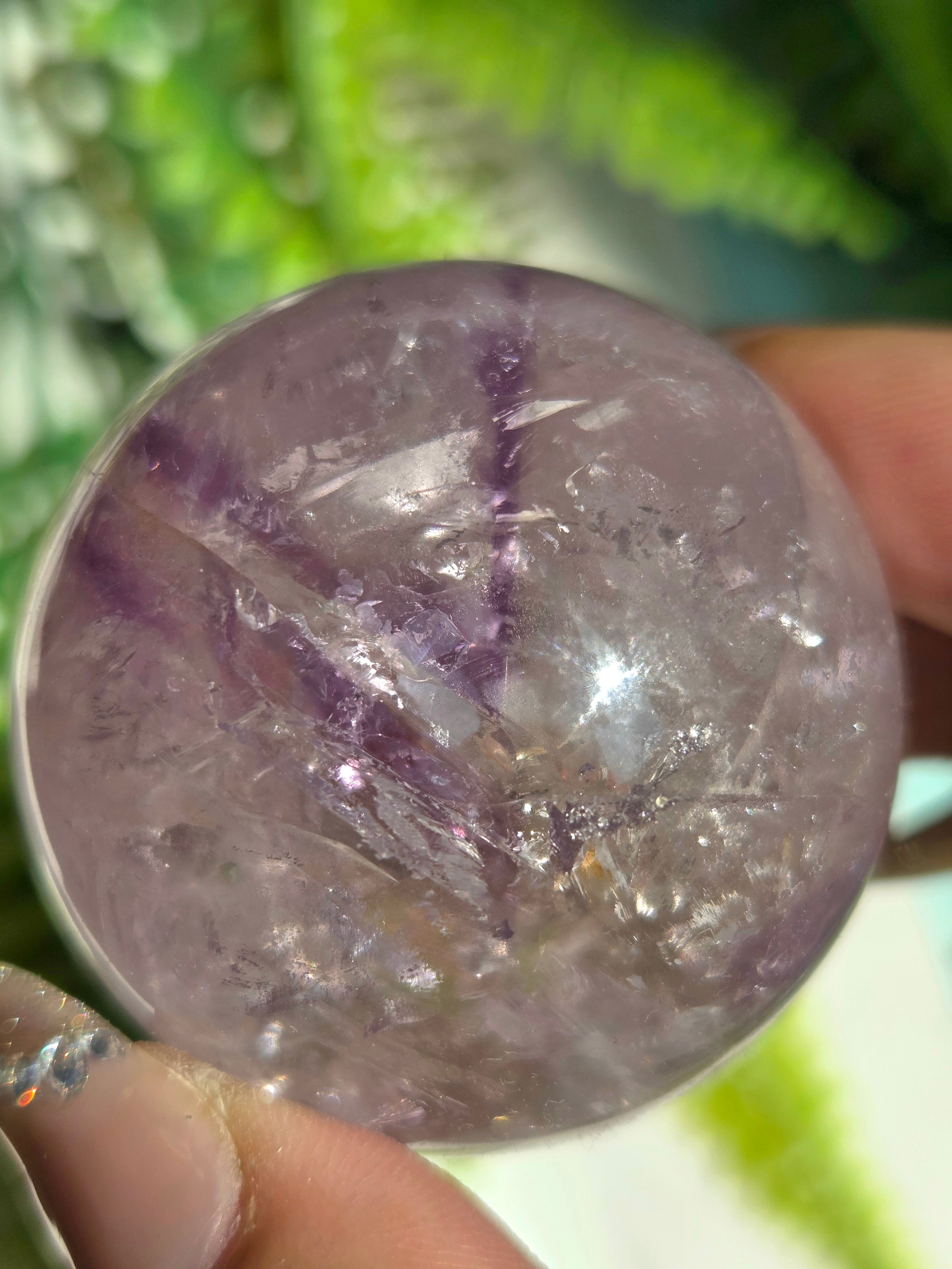 ファントムアメジストは、アメジストの一種で、結晶が成長する過程で一度成長が止まり、再び成長を始める際に、他の鉱物を取り込んだ状態のものを指します。この独特な見た目から「幻影水晶」とも呼ばれ、スピリチュアルな意味や効果を持つとされています。