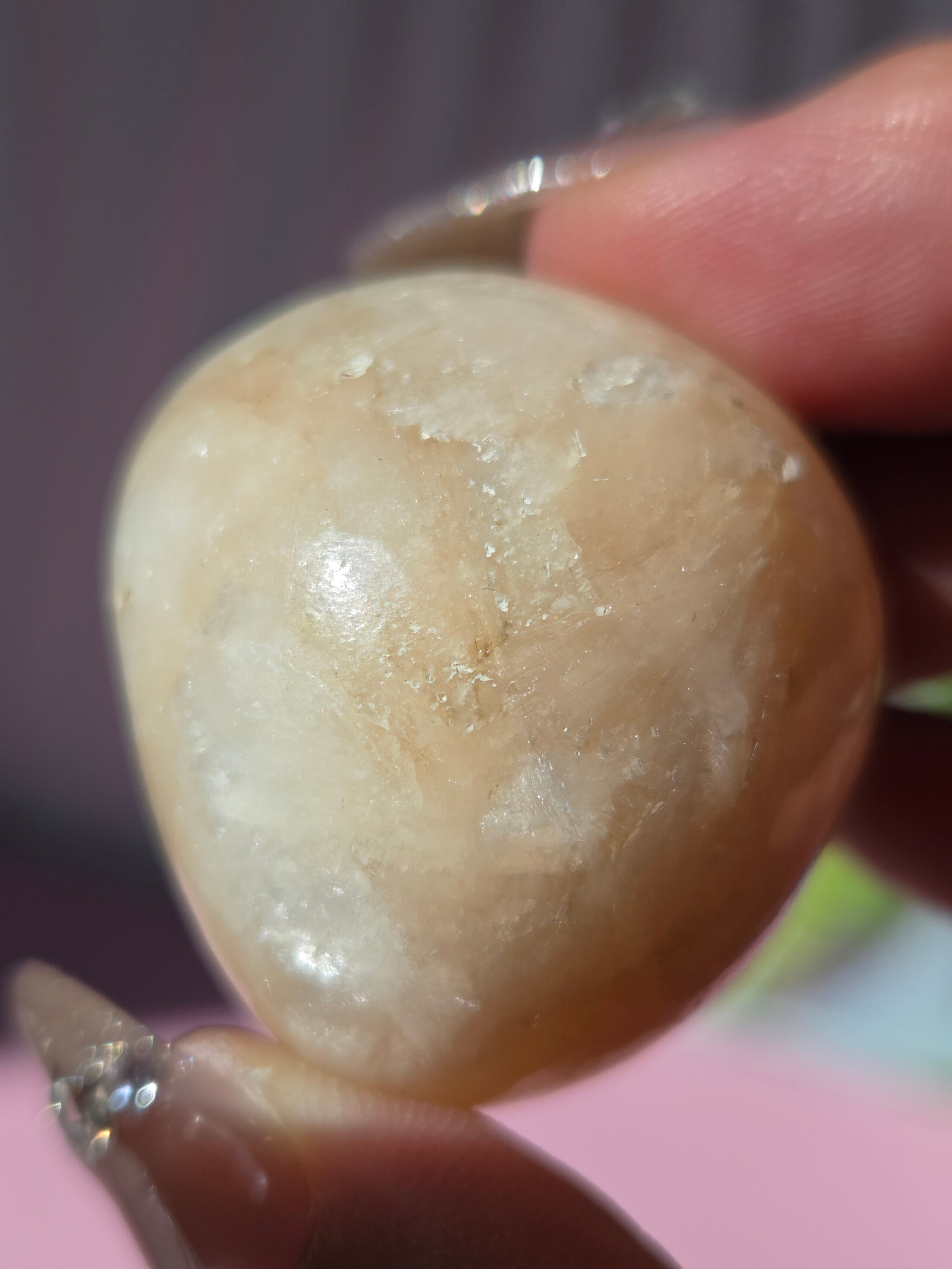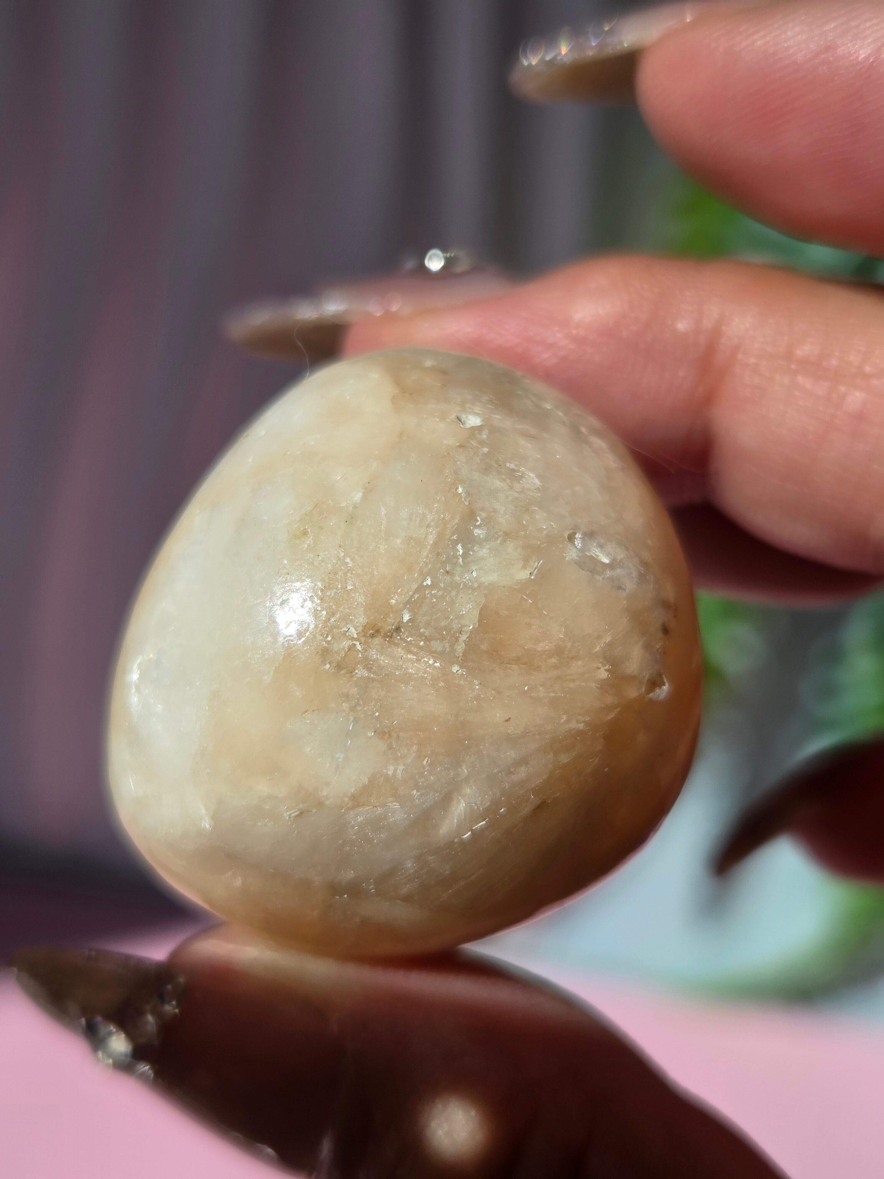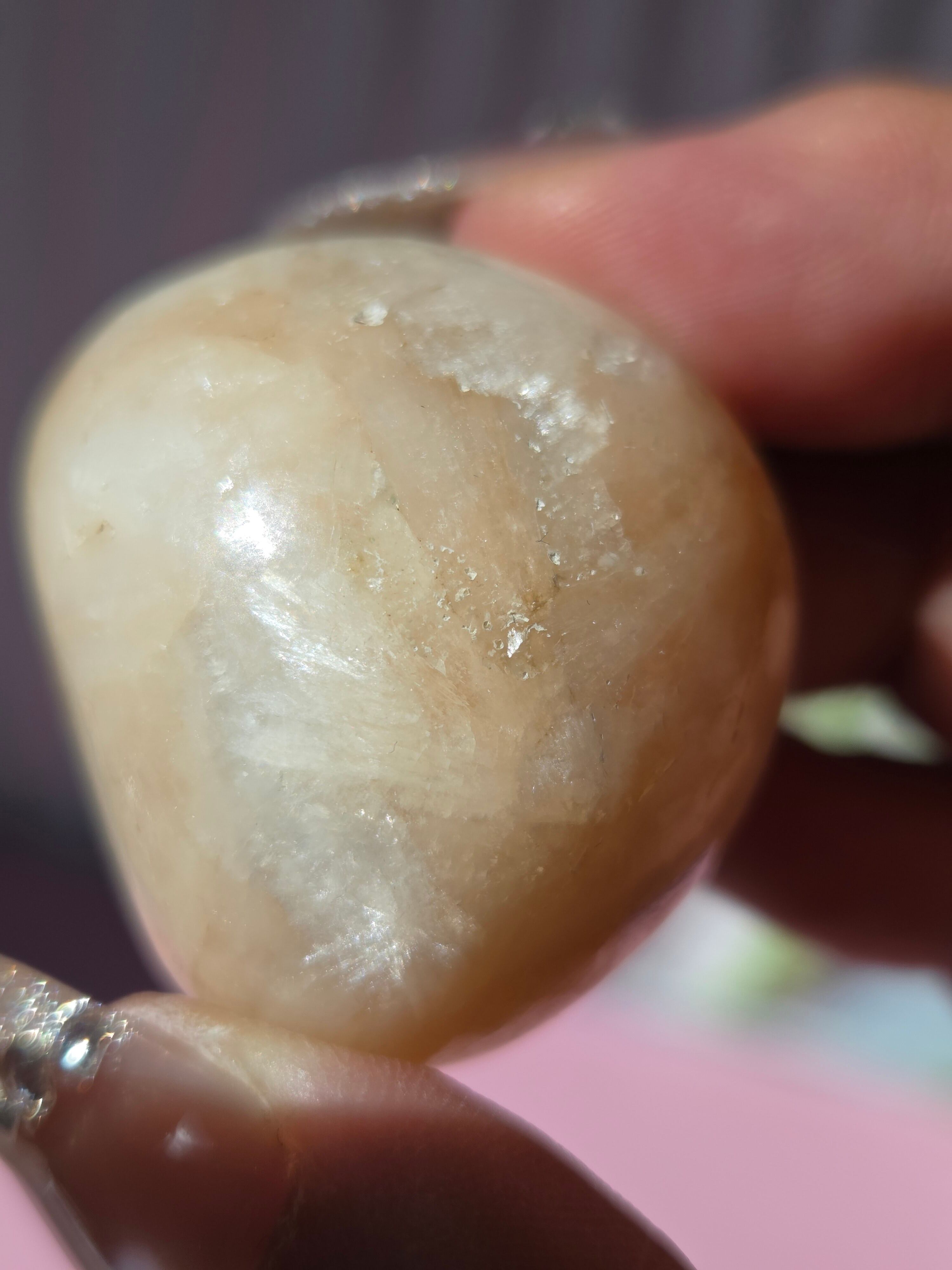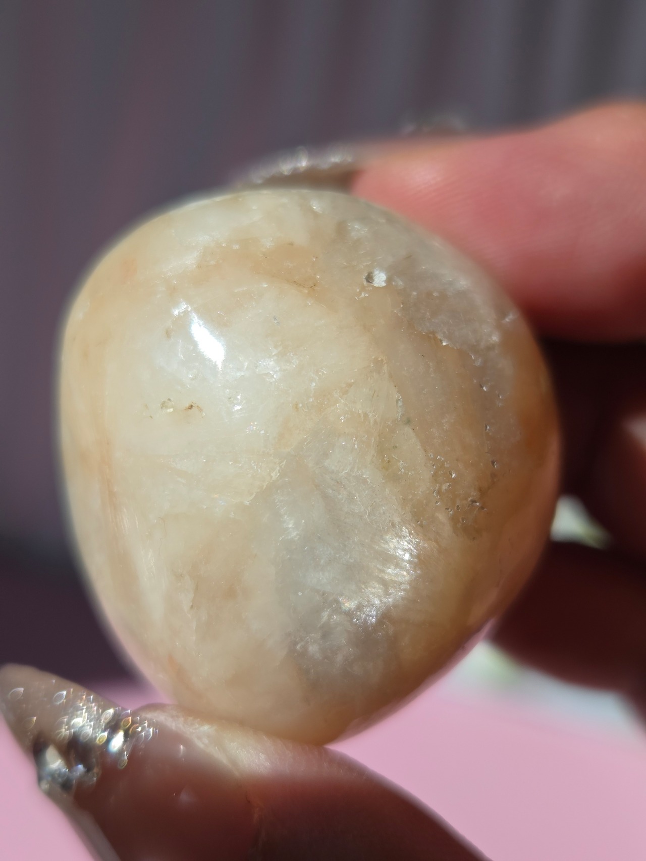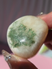 スティルバイトの羽のような優しいシラーに、モスアゲートのグリーンや、ピンクが差し色になり、とても貴重な素敵なタンブルです。
