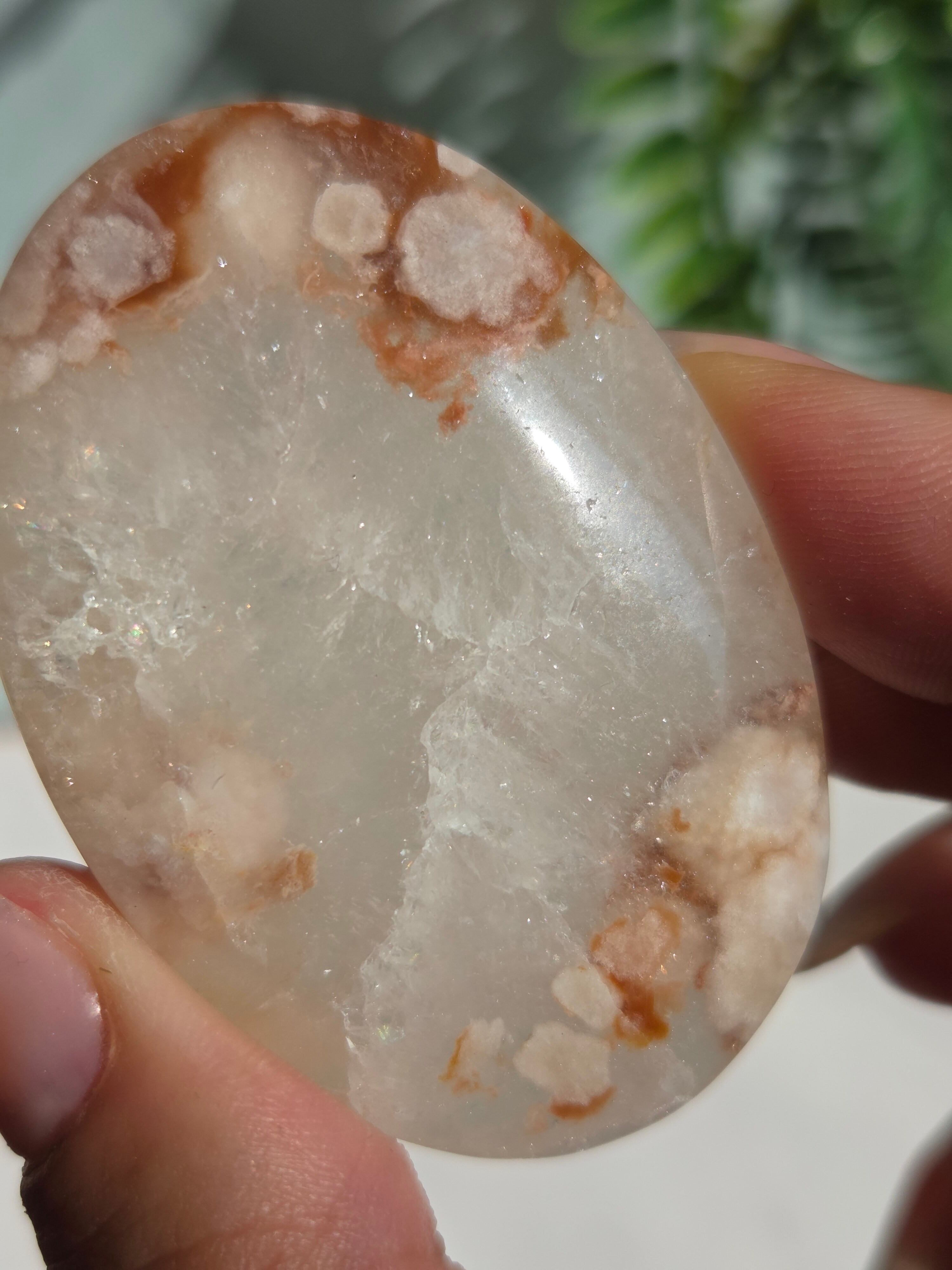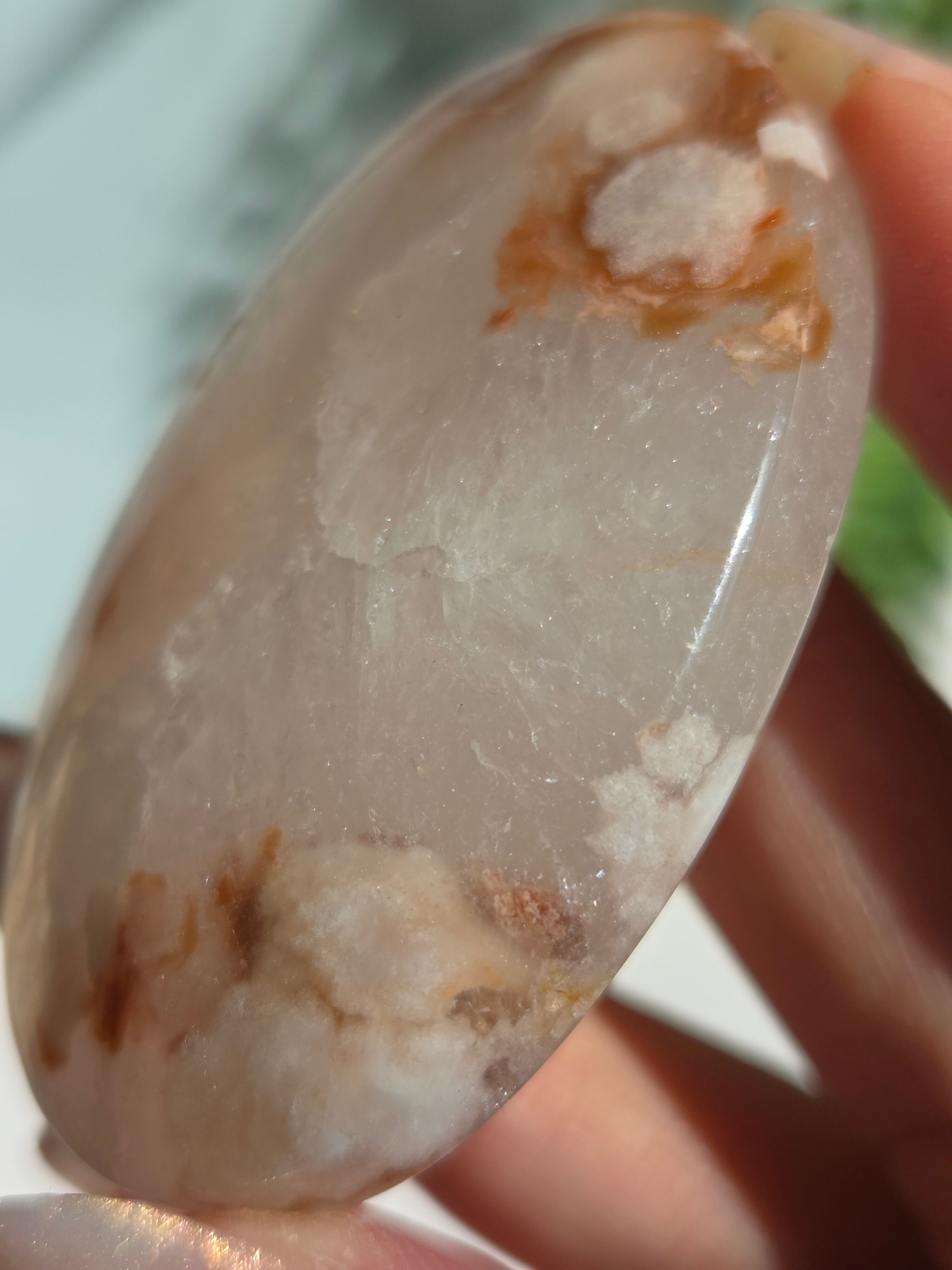 ピンクアメジストに、フラワーアゲートが共生したパームになります。