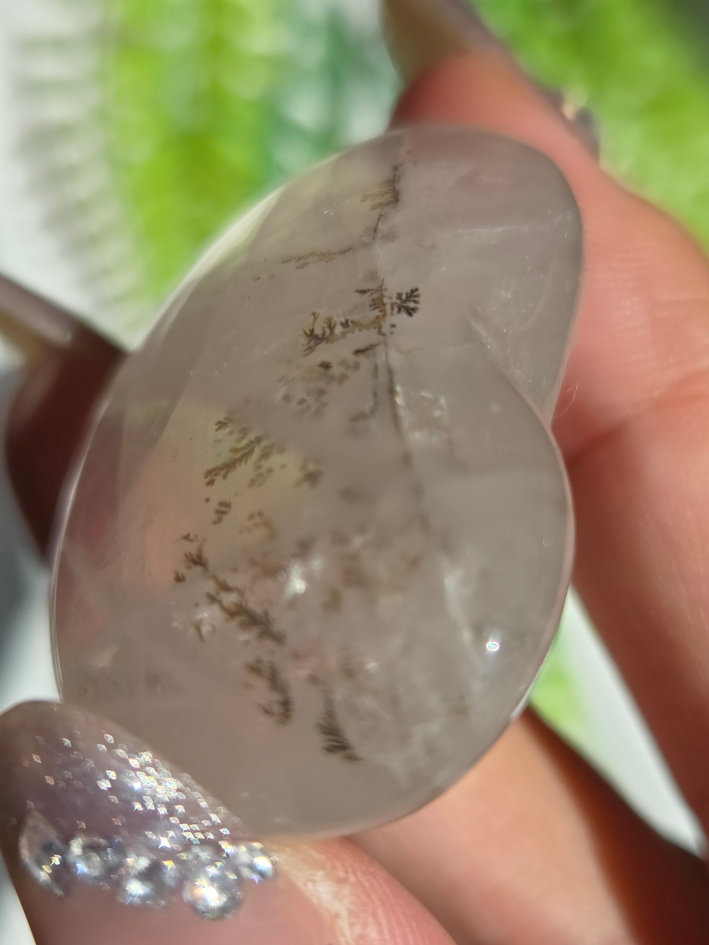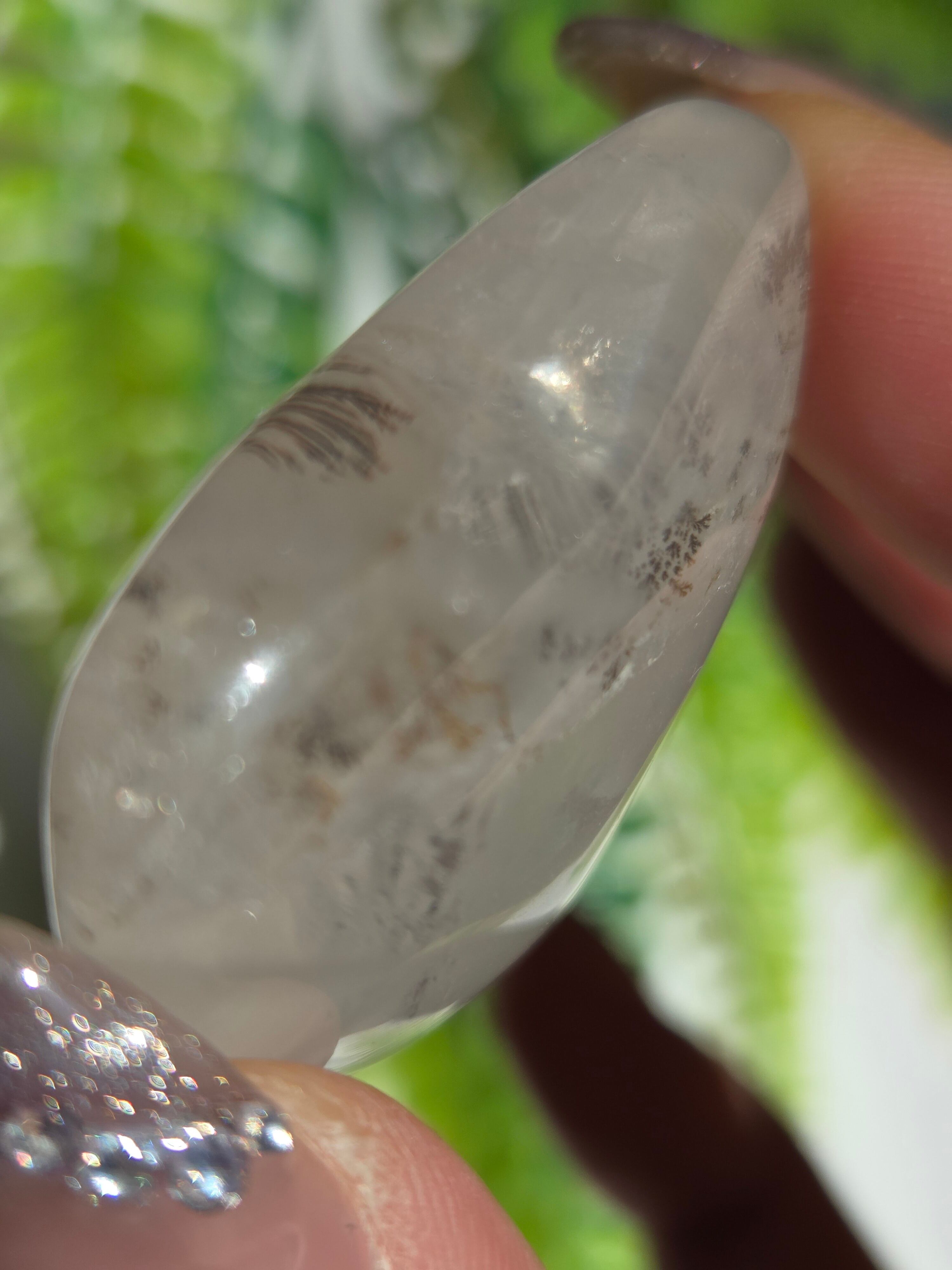 クォーツの中にデンドライトがインクルージョンした稀少タイプです。 幻想的に散らばるデンドライトと、ツヤツヤでキラメキのあるクォーツとが他の天然石とは全く違った、個性的な魅力を見せてくれています。