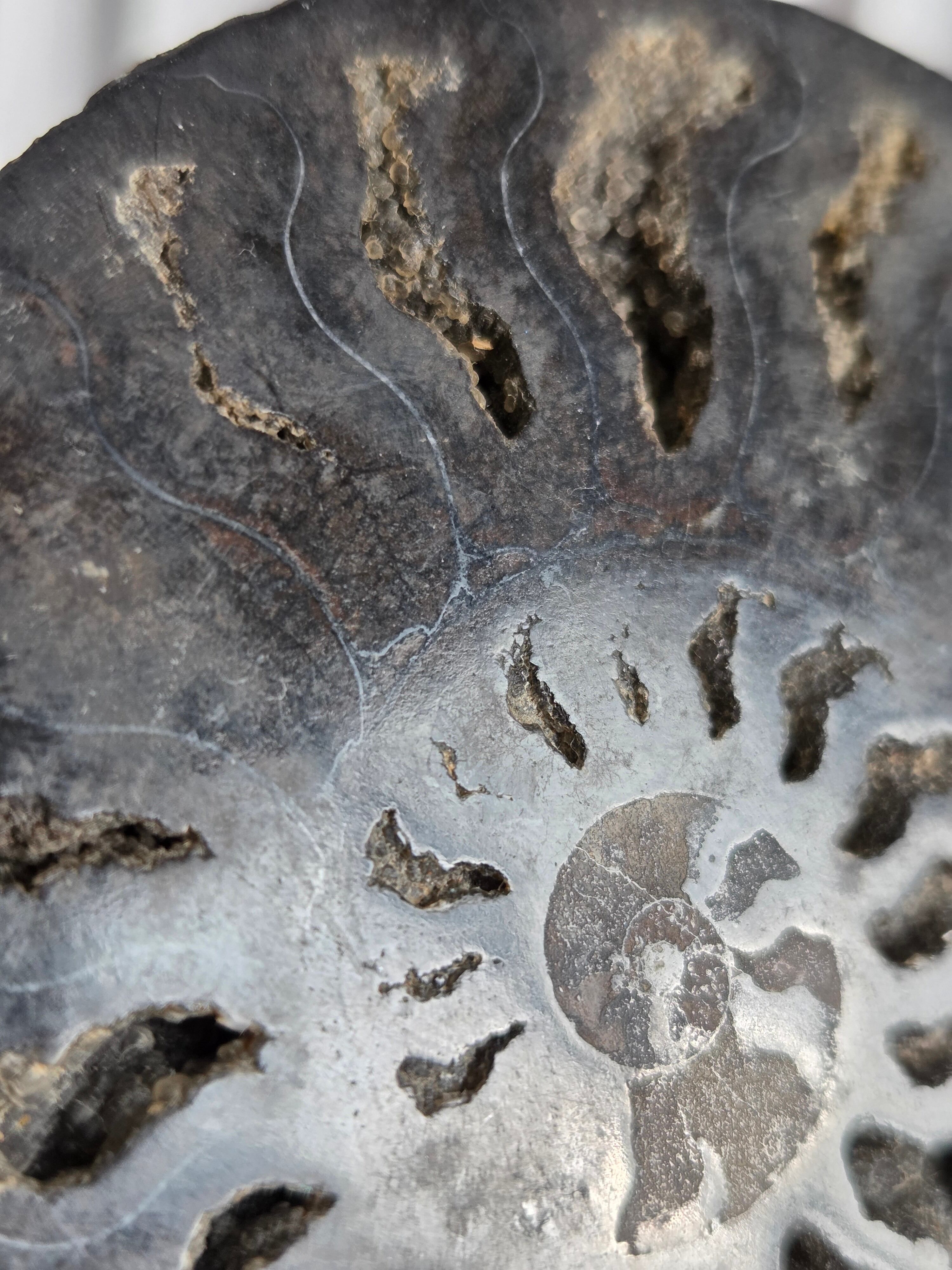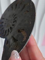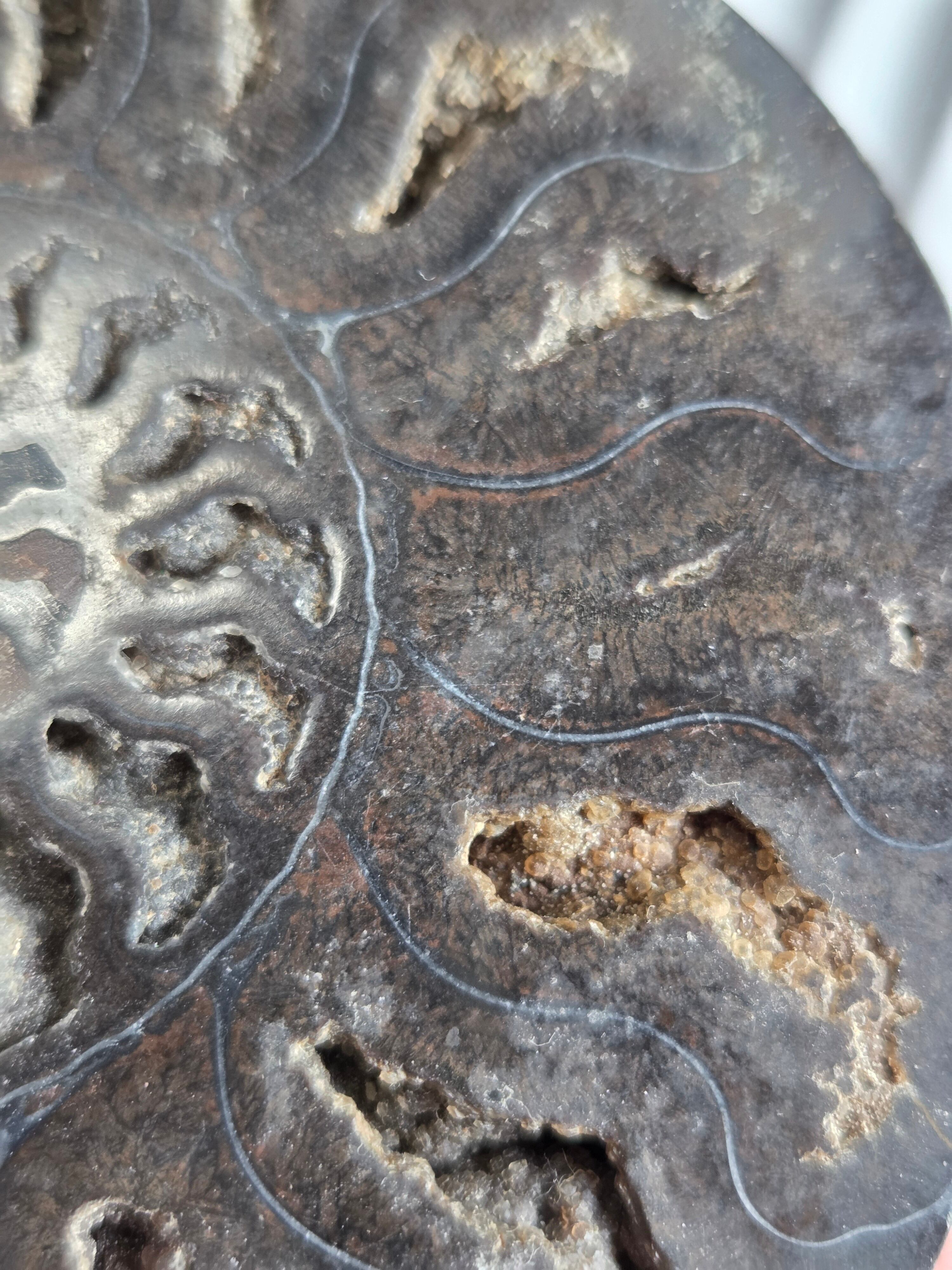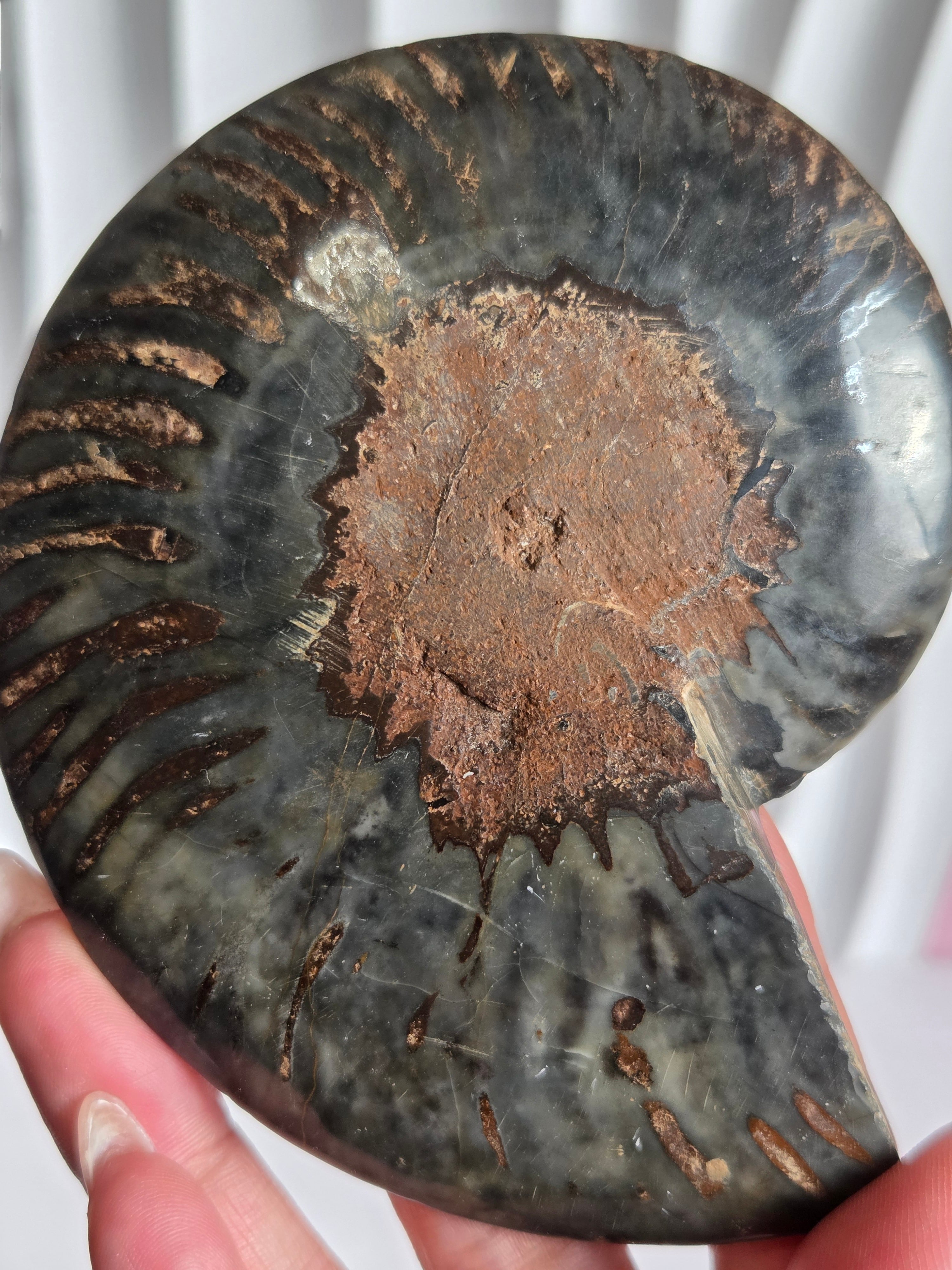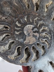 アンモナイトを半分にスライスしてます。