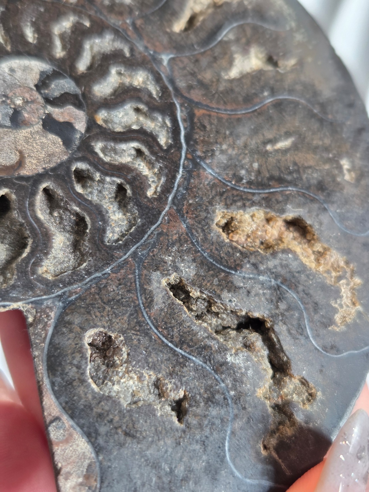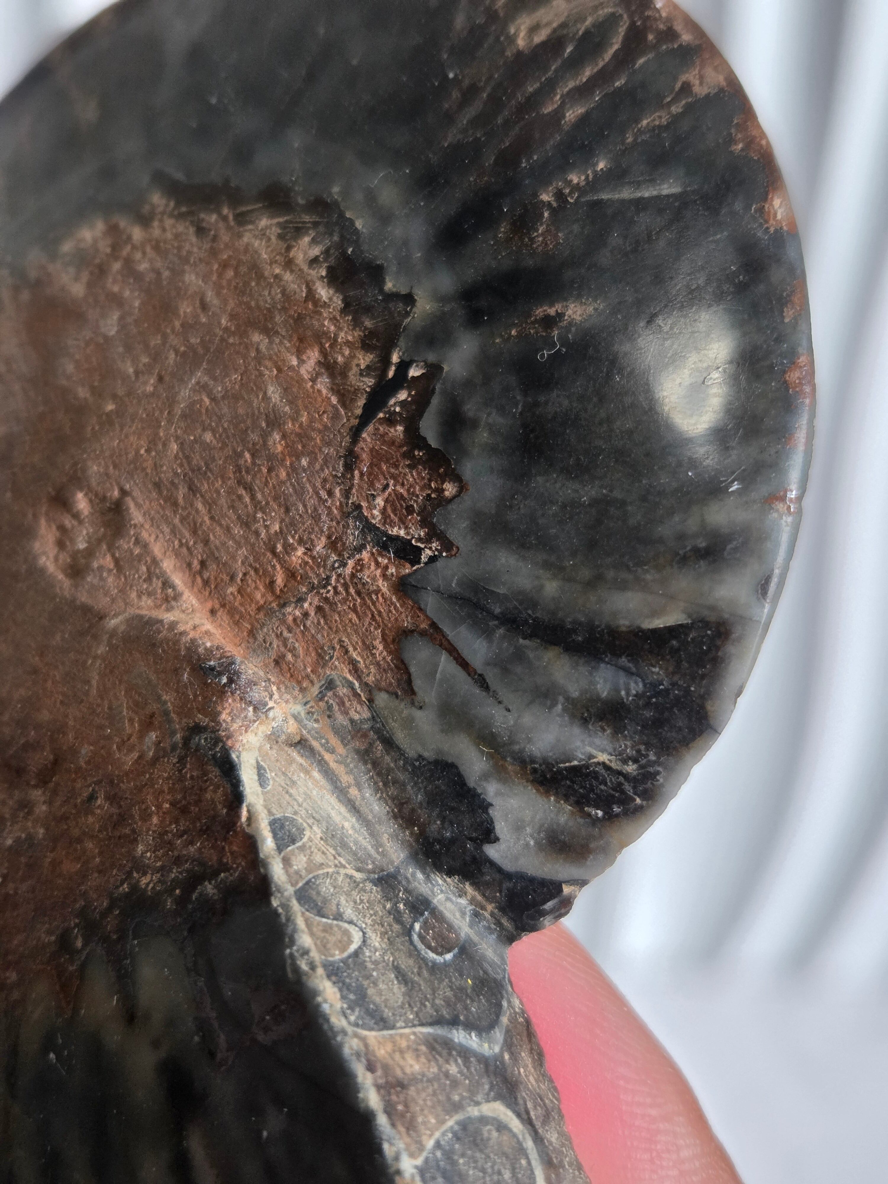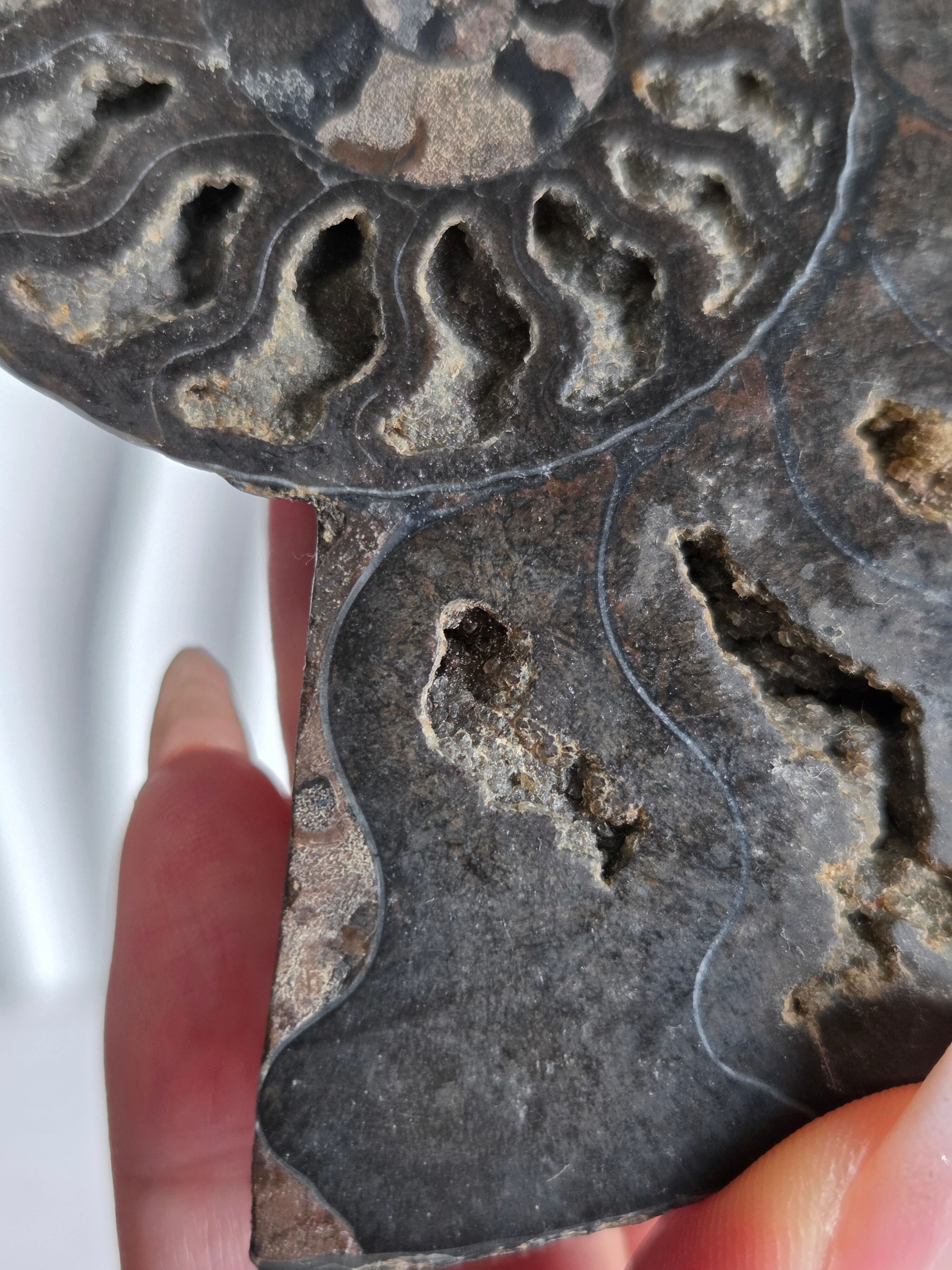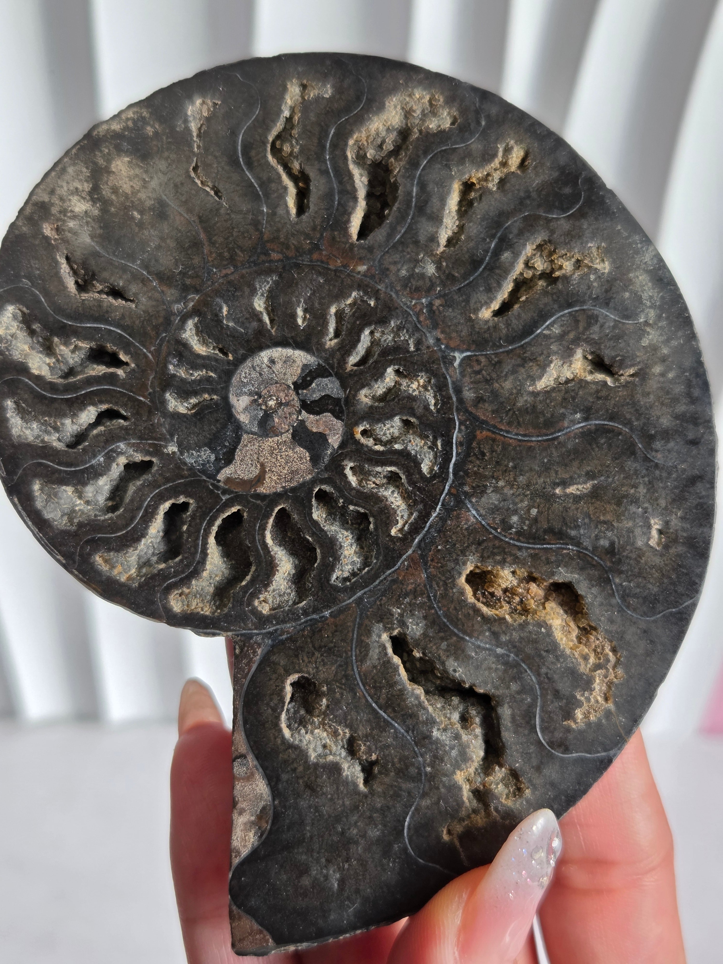 アンモナイトを半分にスライスしてます。