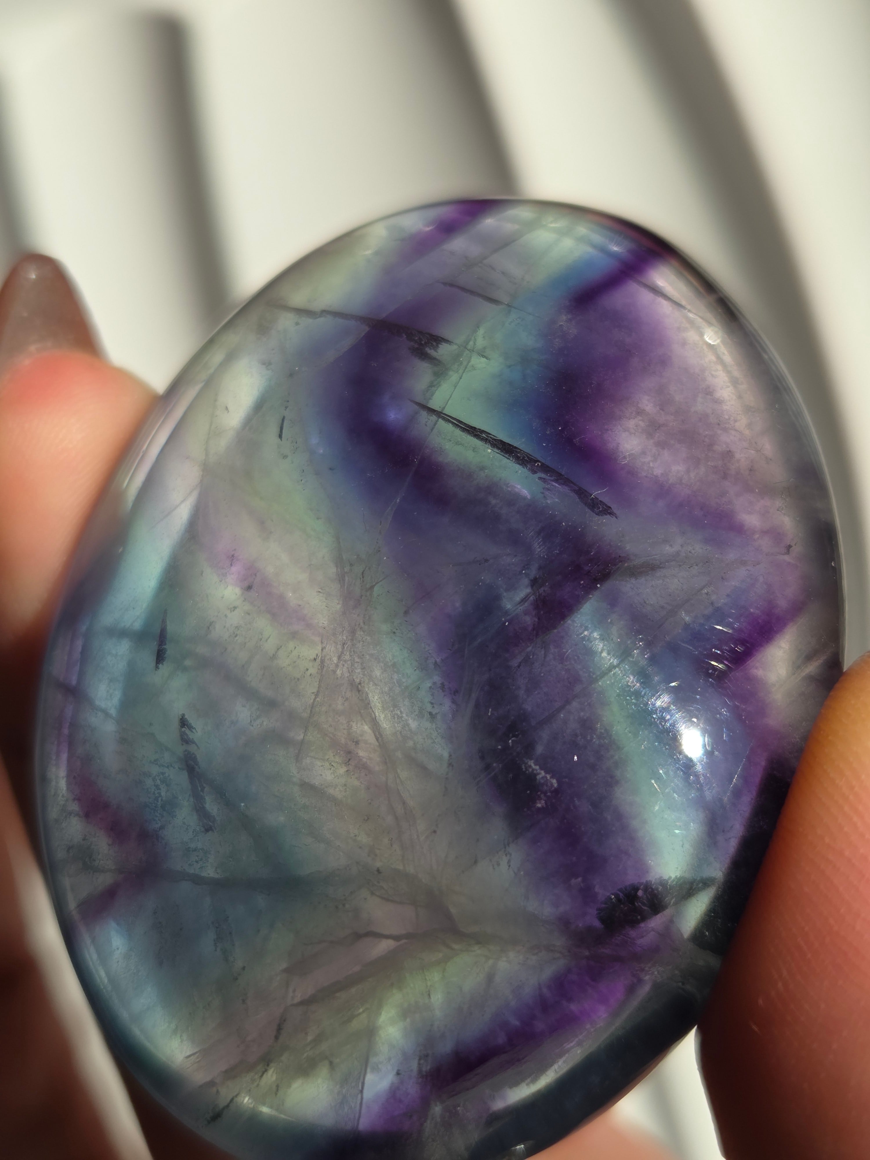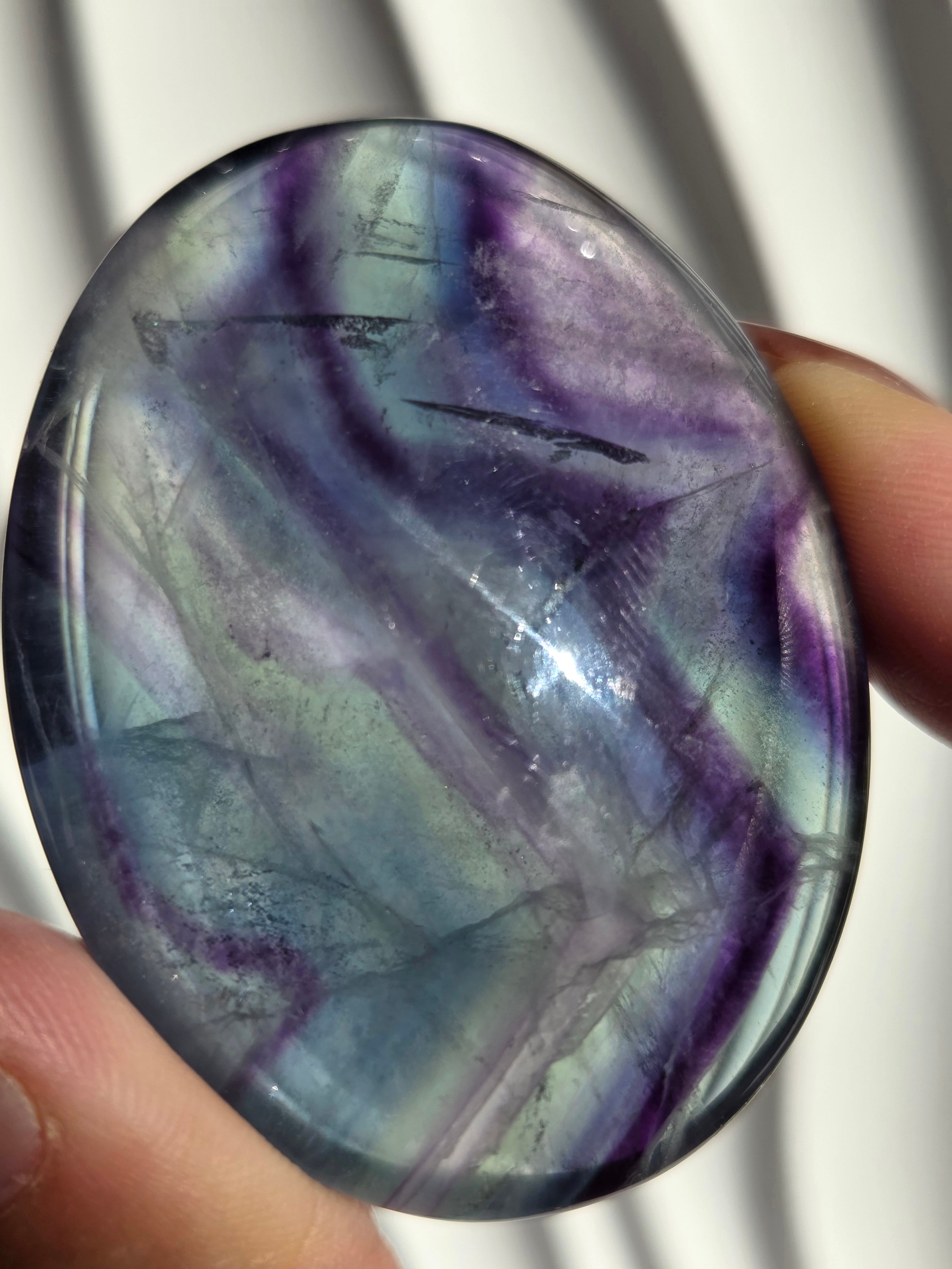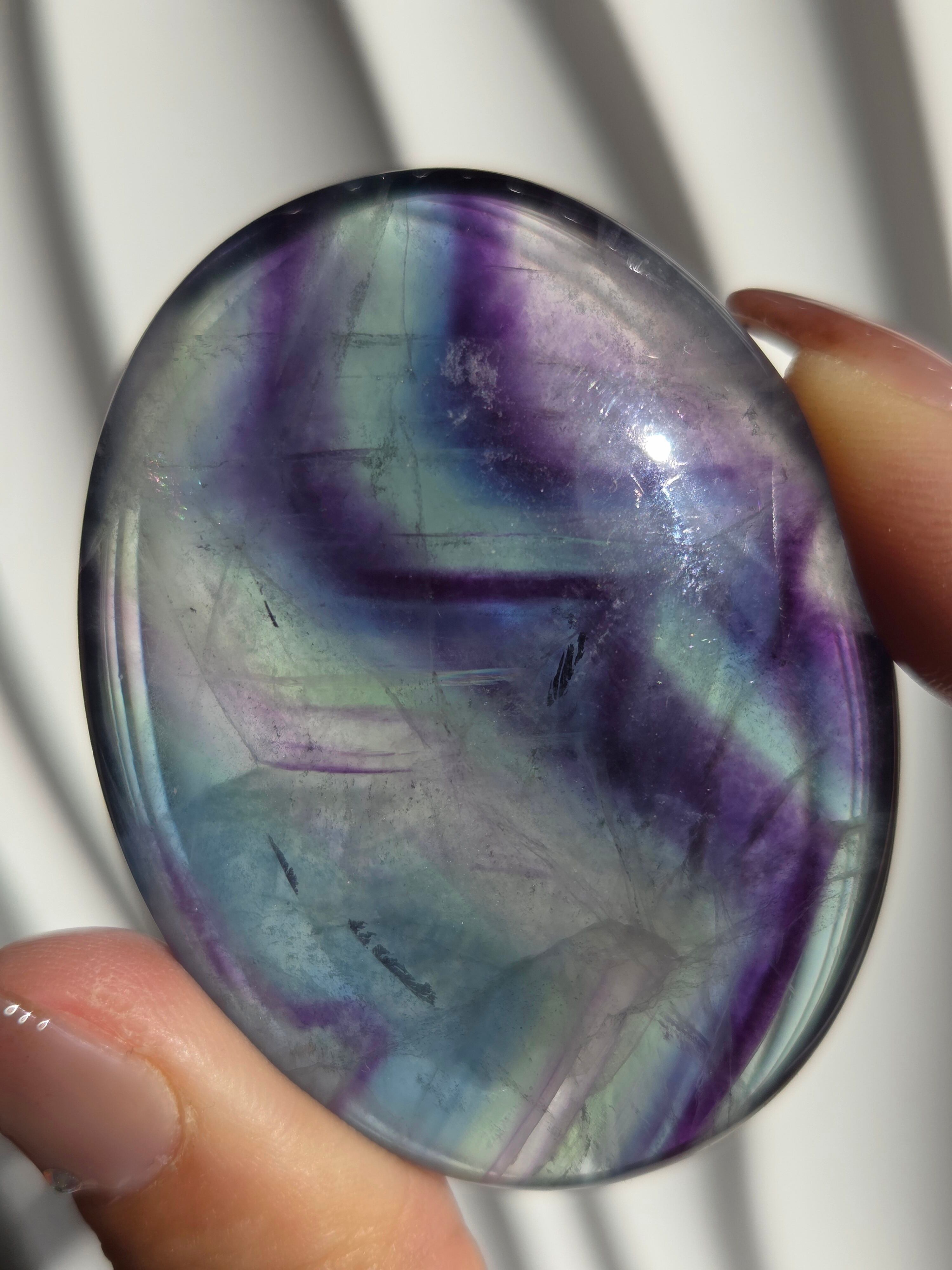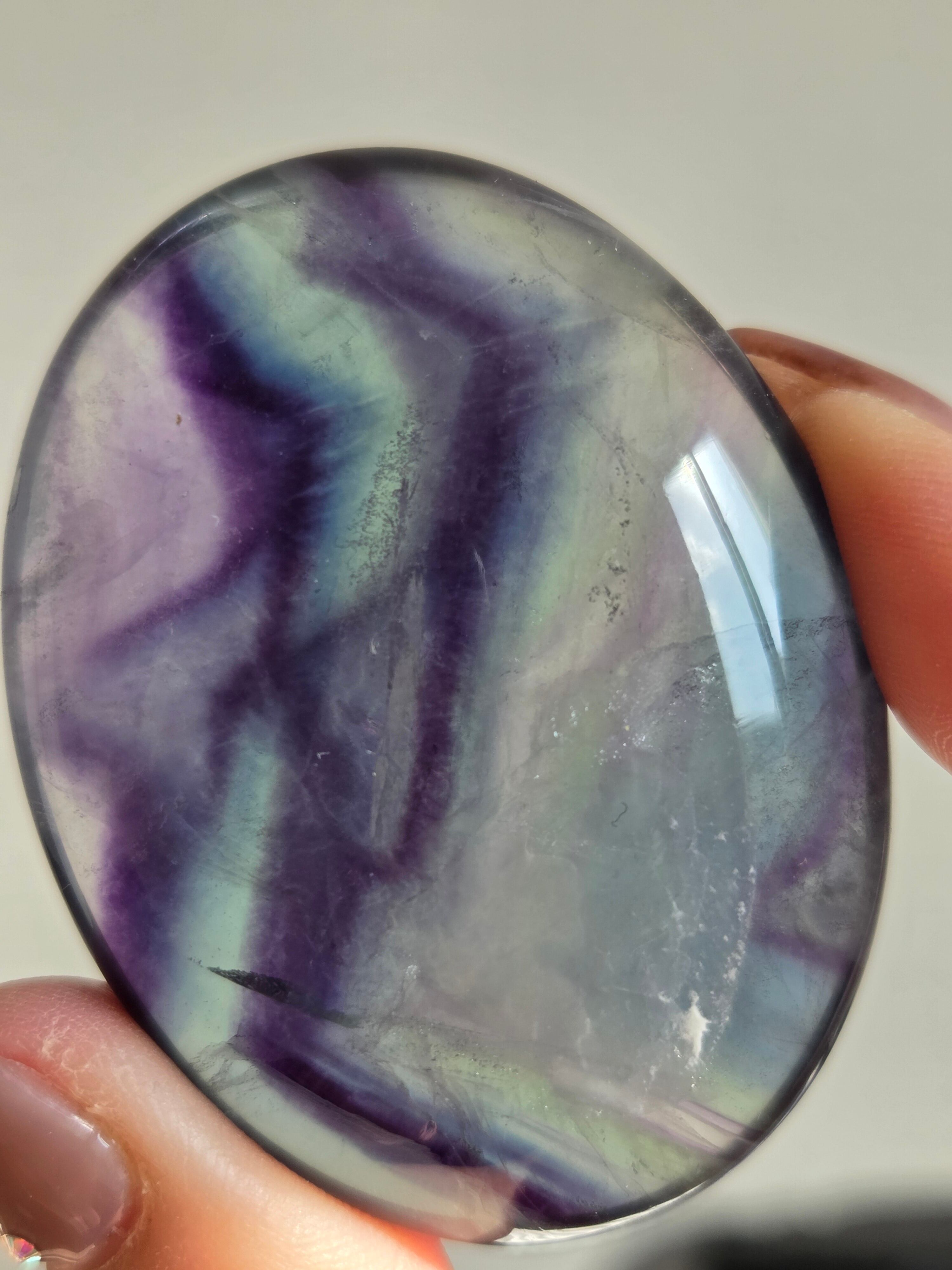 カラフルなカラーと、つやつやぷるぷる感が可愛いパームです。光に透かしてみるとカラー変化が見えたりと、フローライトは本当に魅力的です。