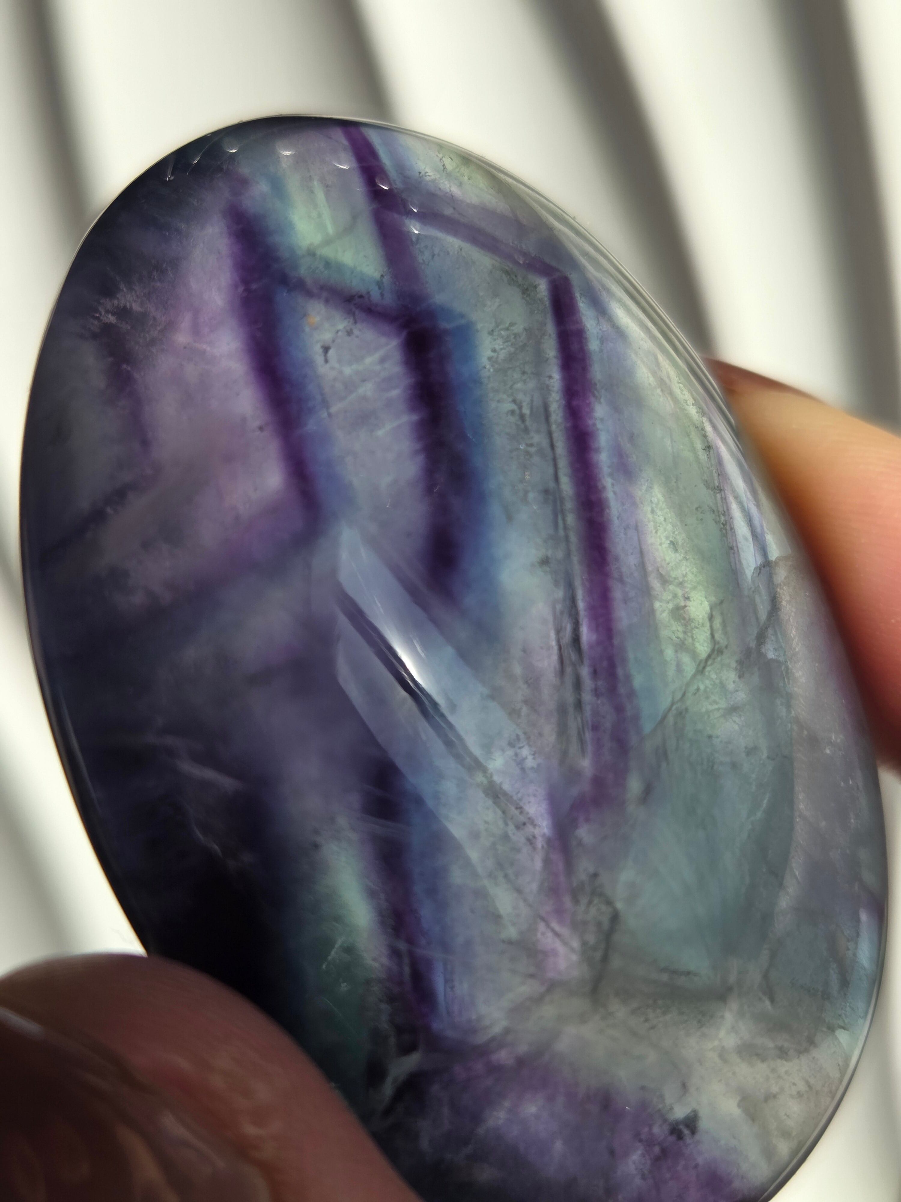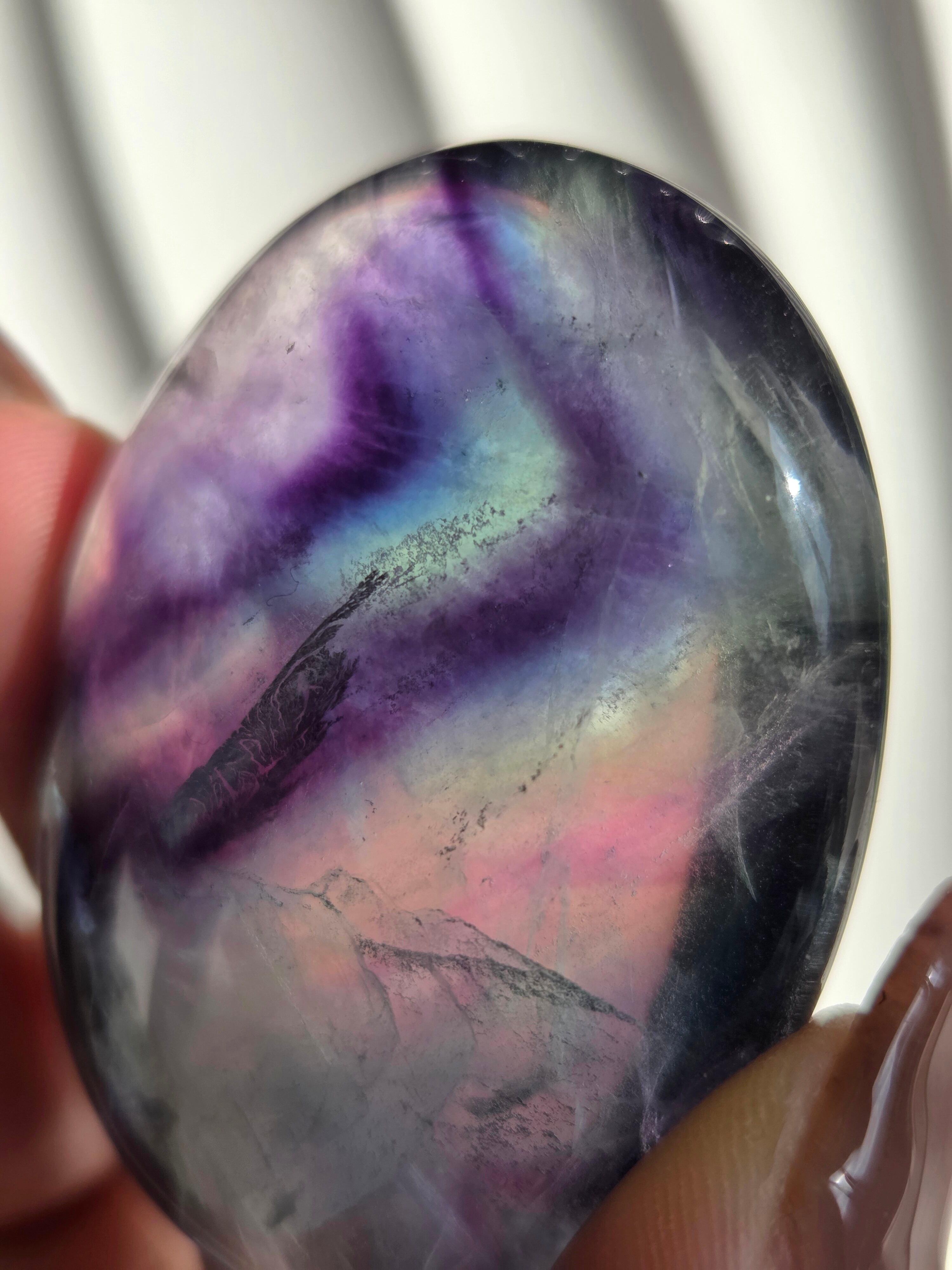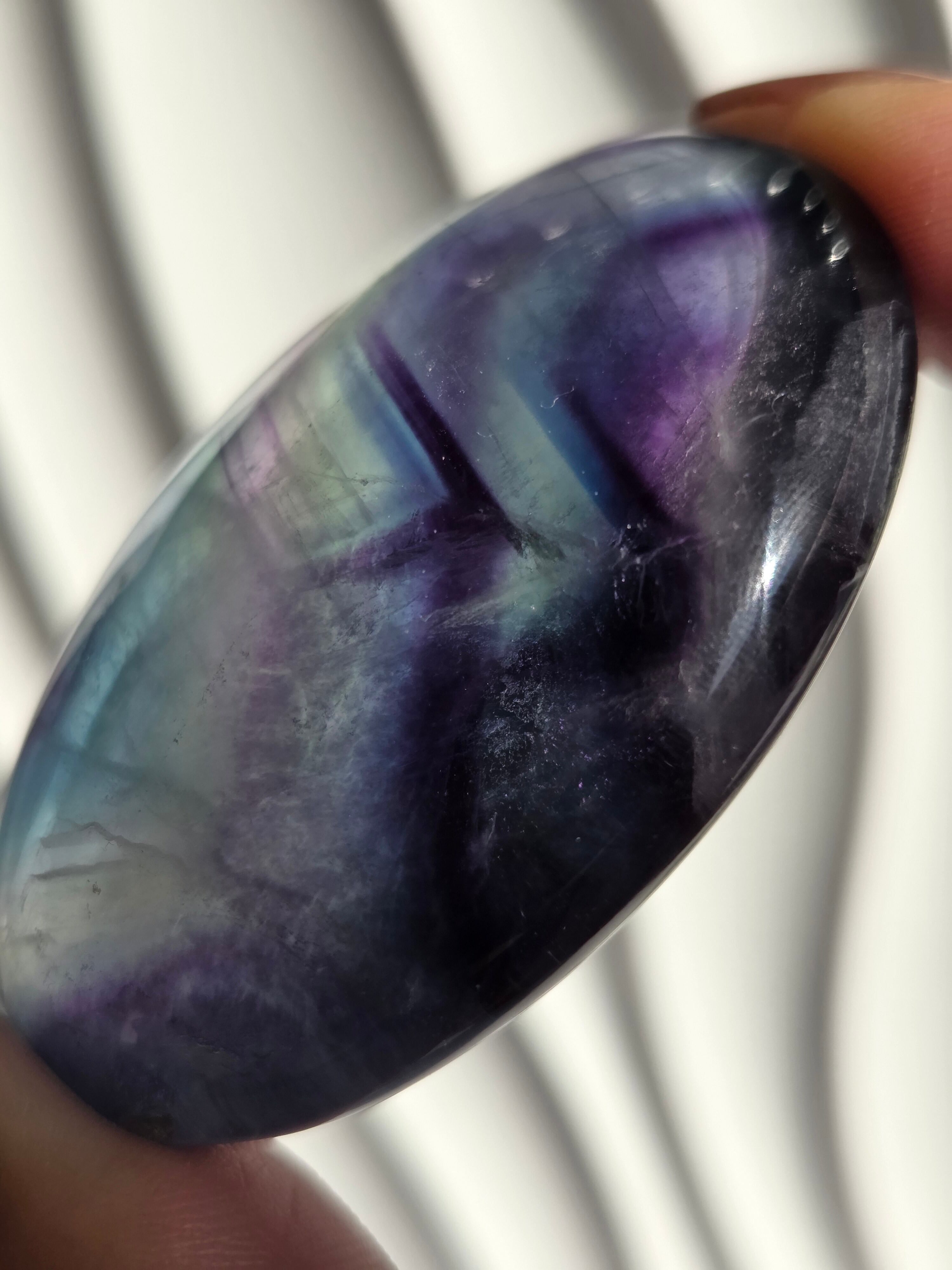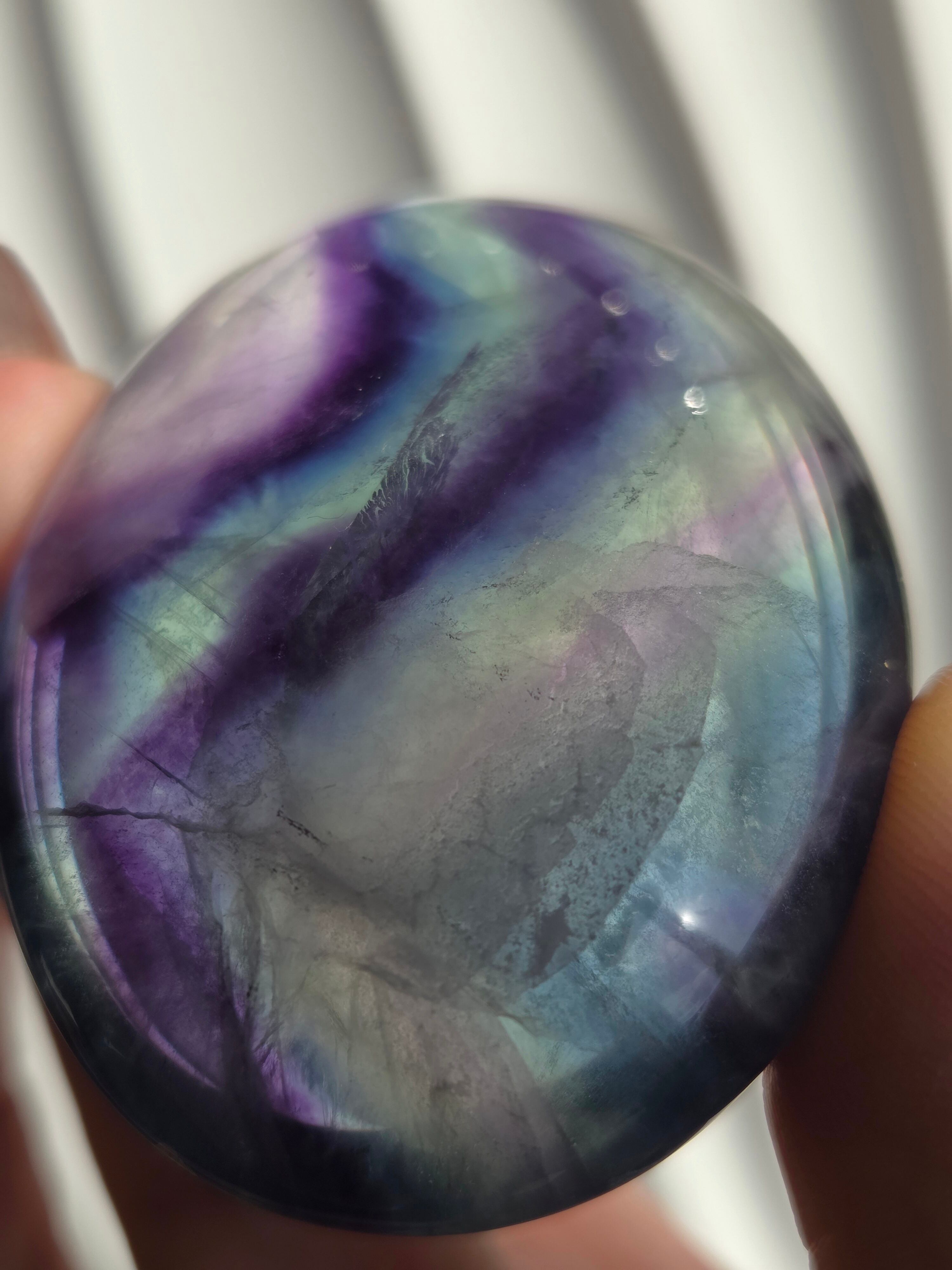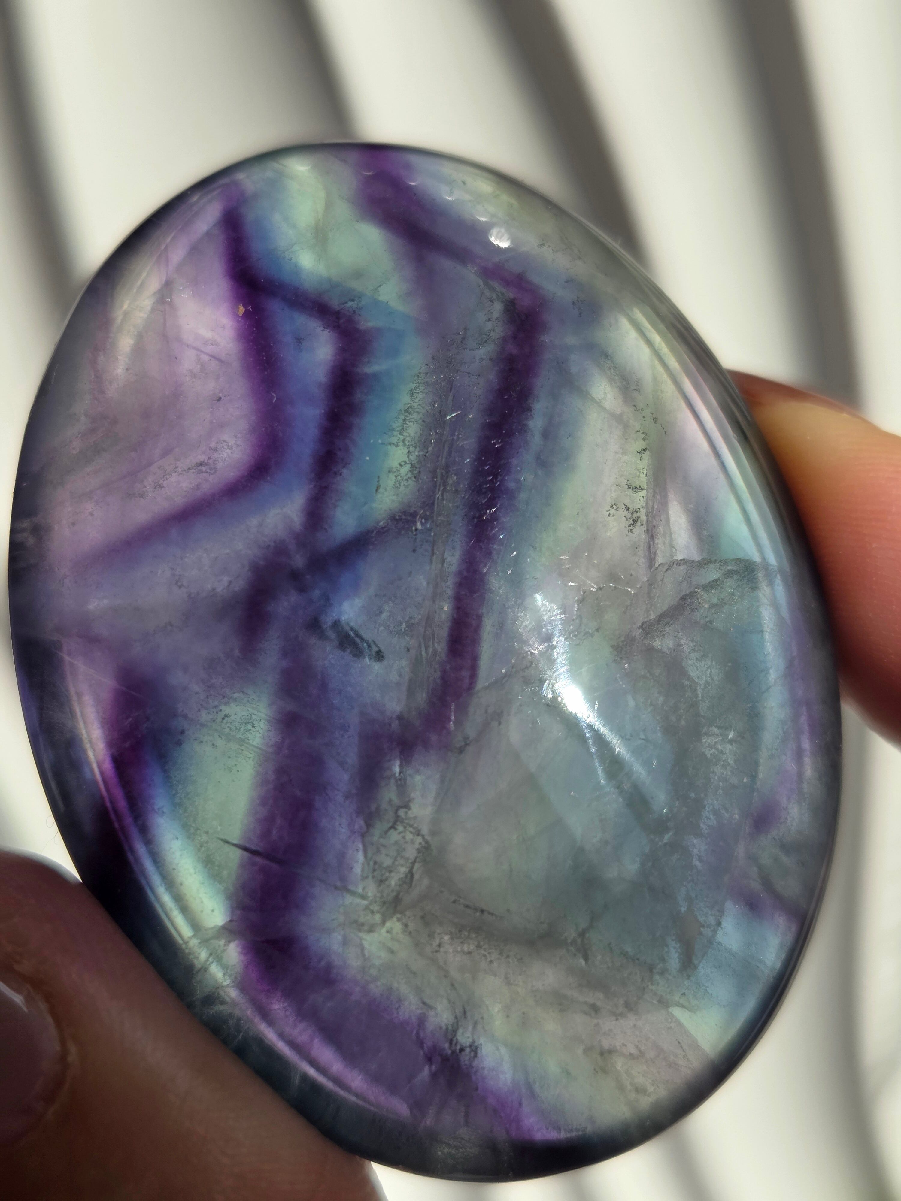 カラフルなカラーと、つやつやぷるぷる感が可愛いパームです。光に透かしてみるとカラー変化が見えたりと、フローライトは本当に魅力的です。