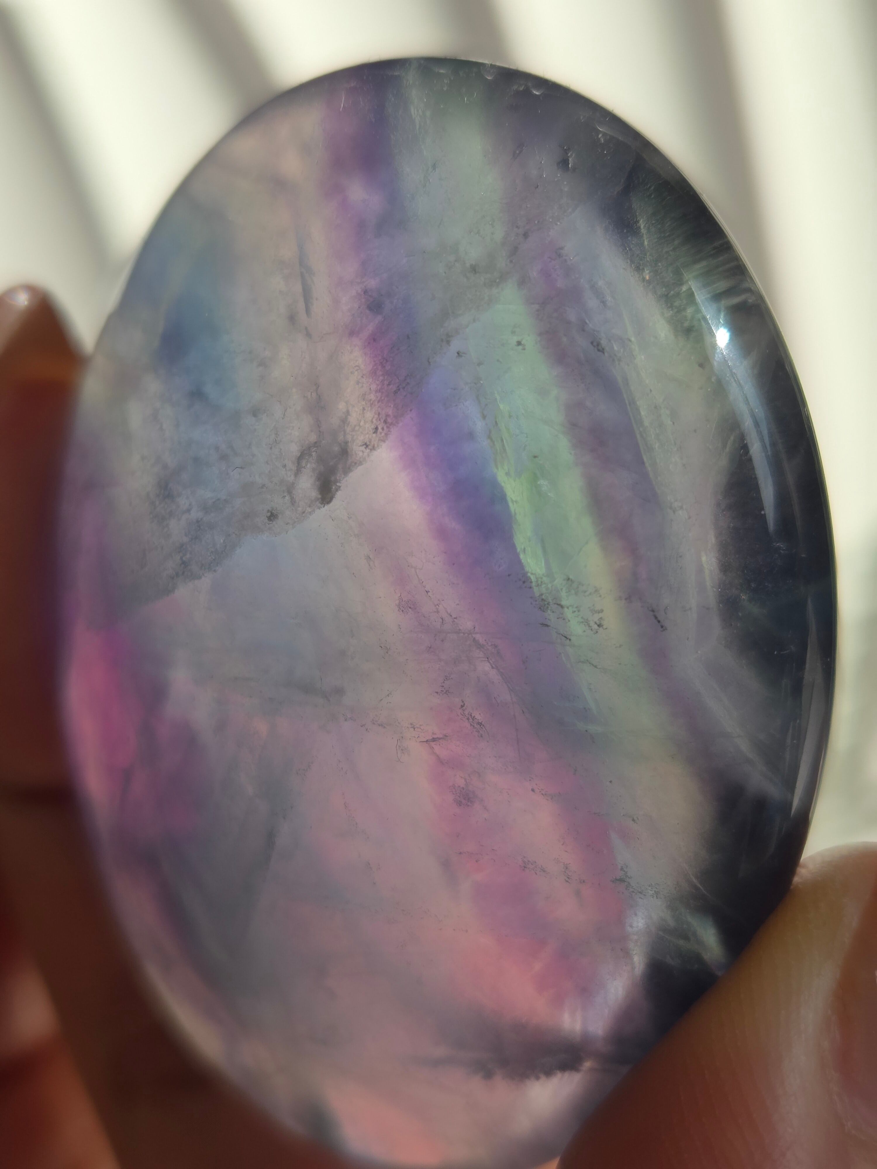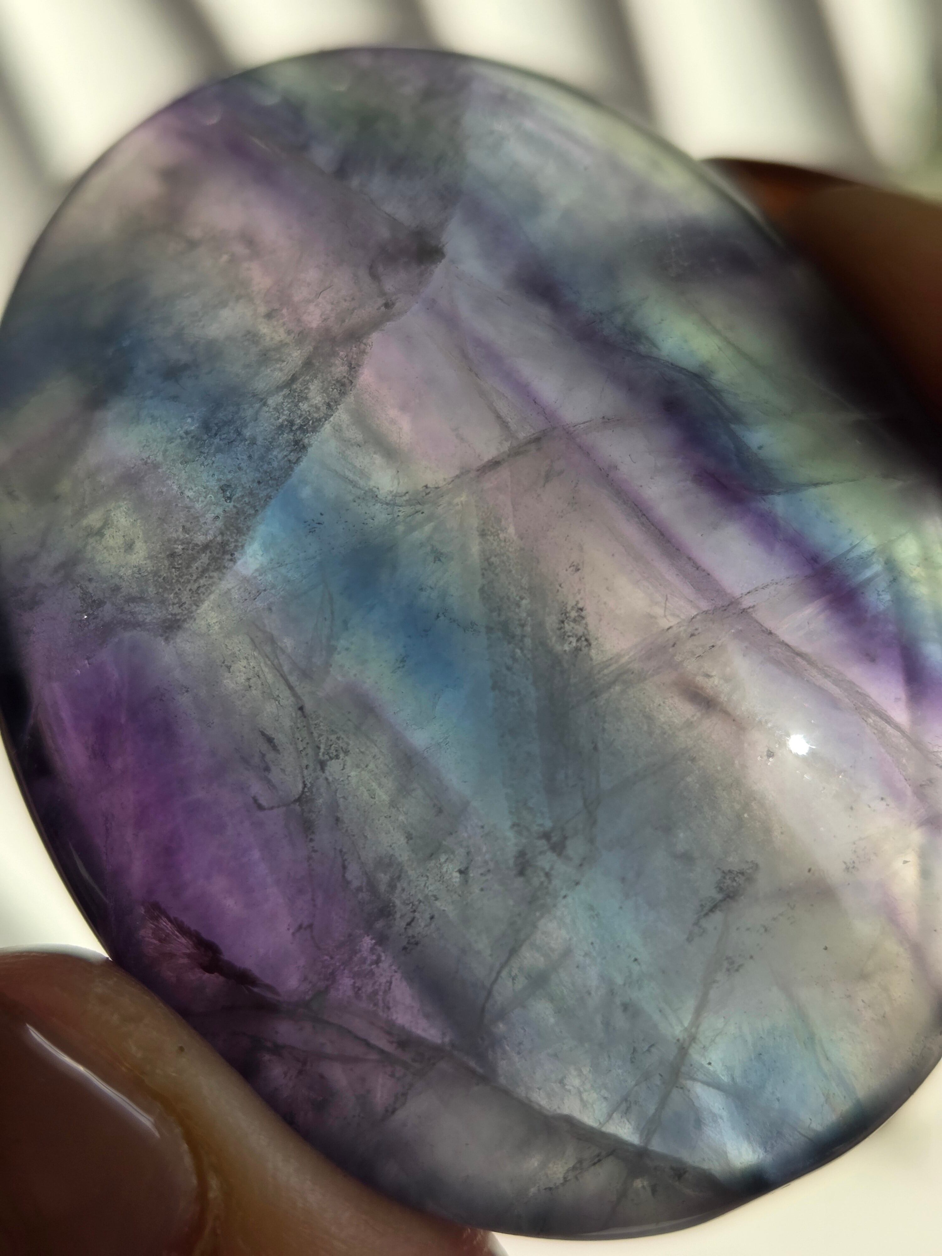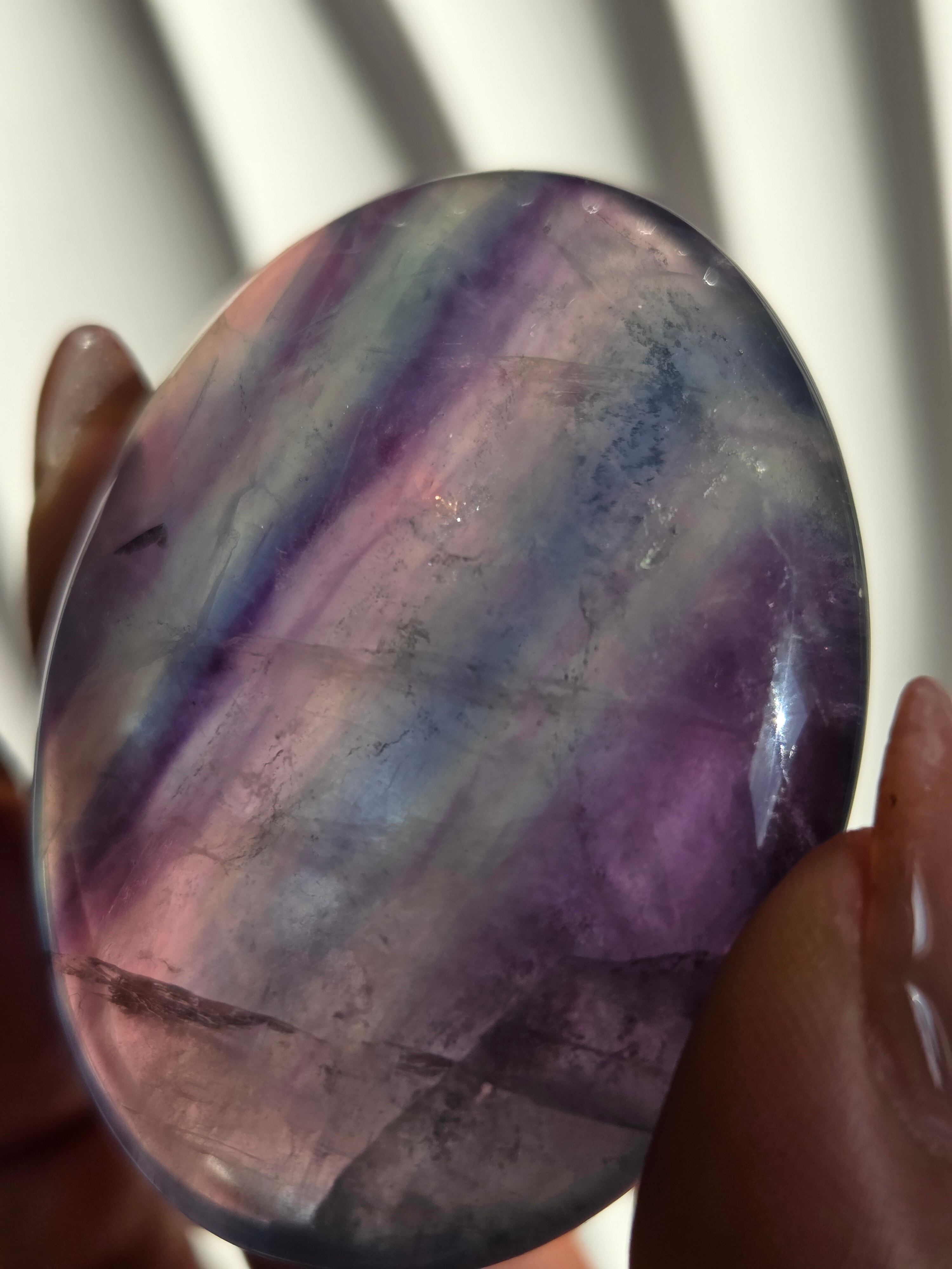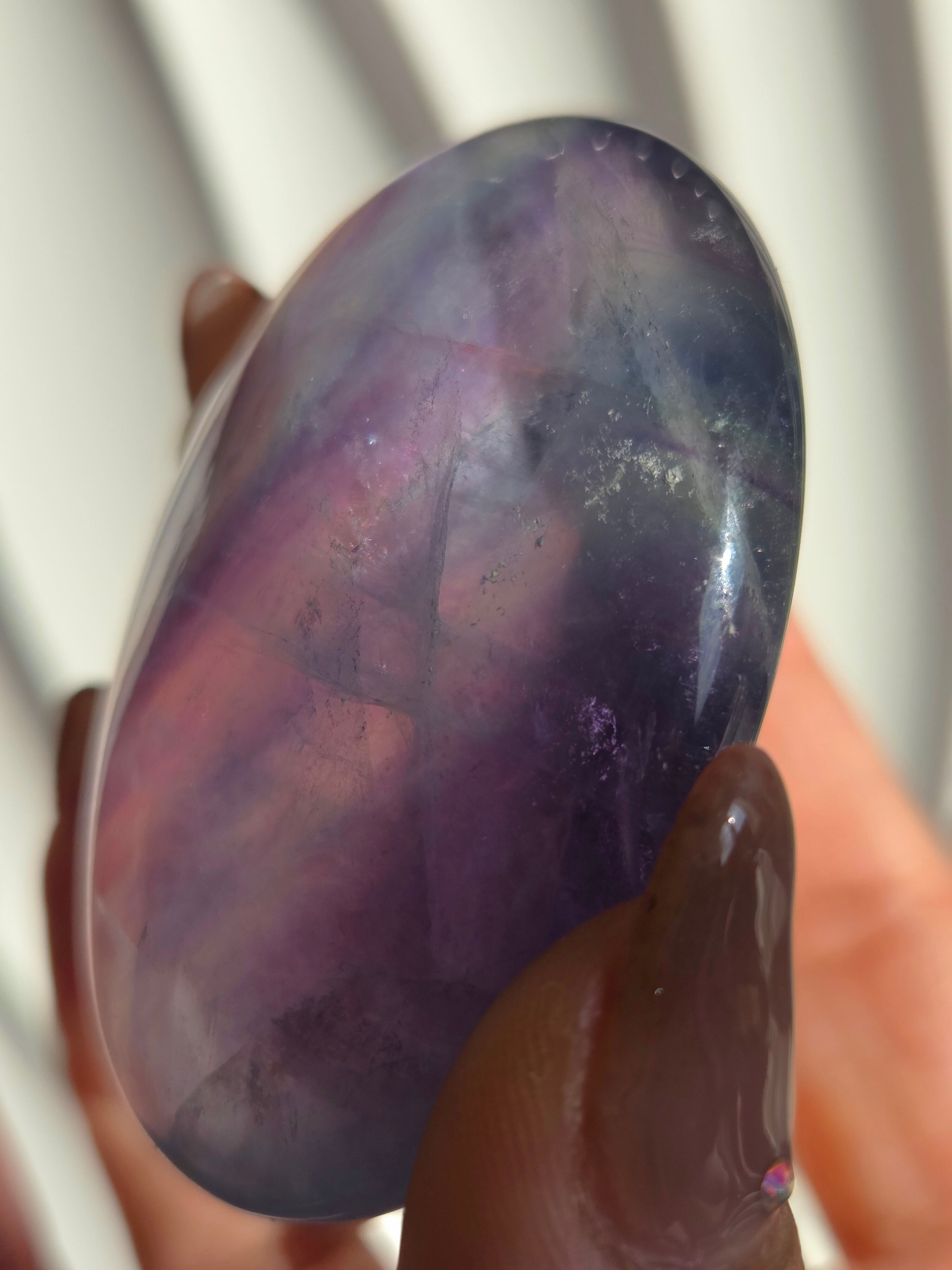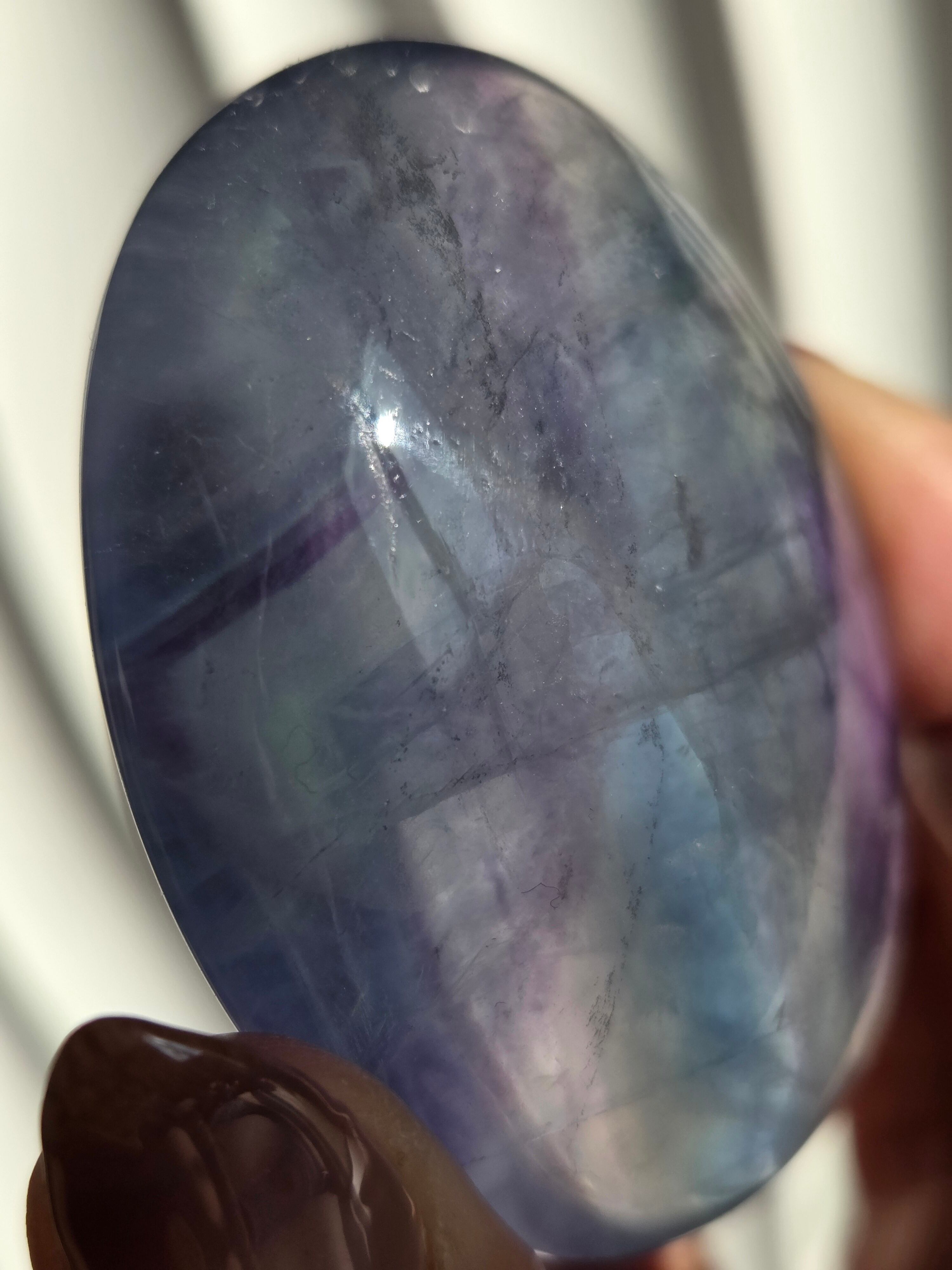 カラフルなカラーと、つやつやぷるぷる感が可愛いパームです。光に透かしてみるとカラー変化が見えたりと、フローライトは本当に魅力的です。