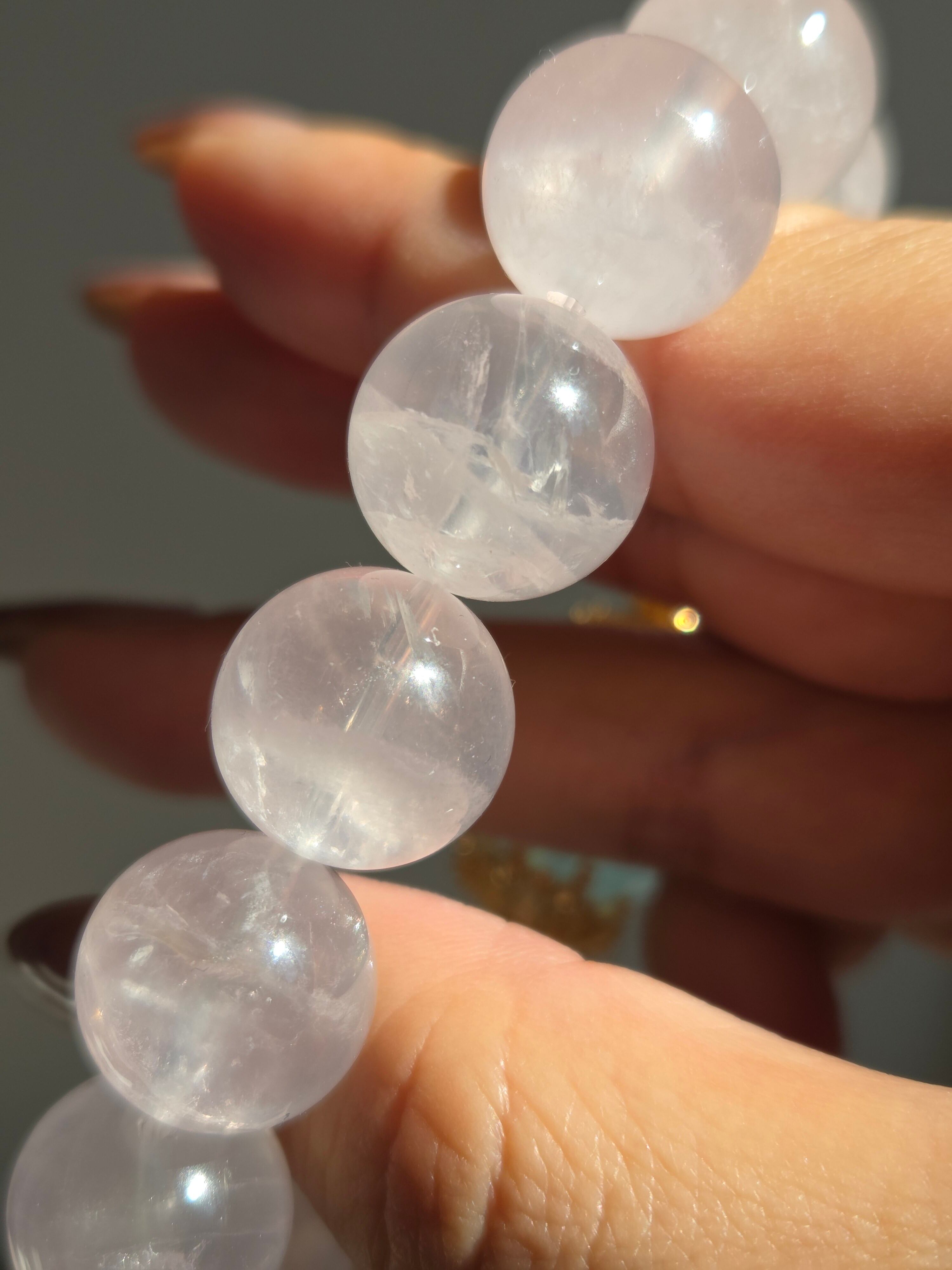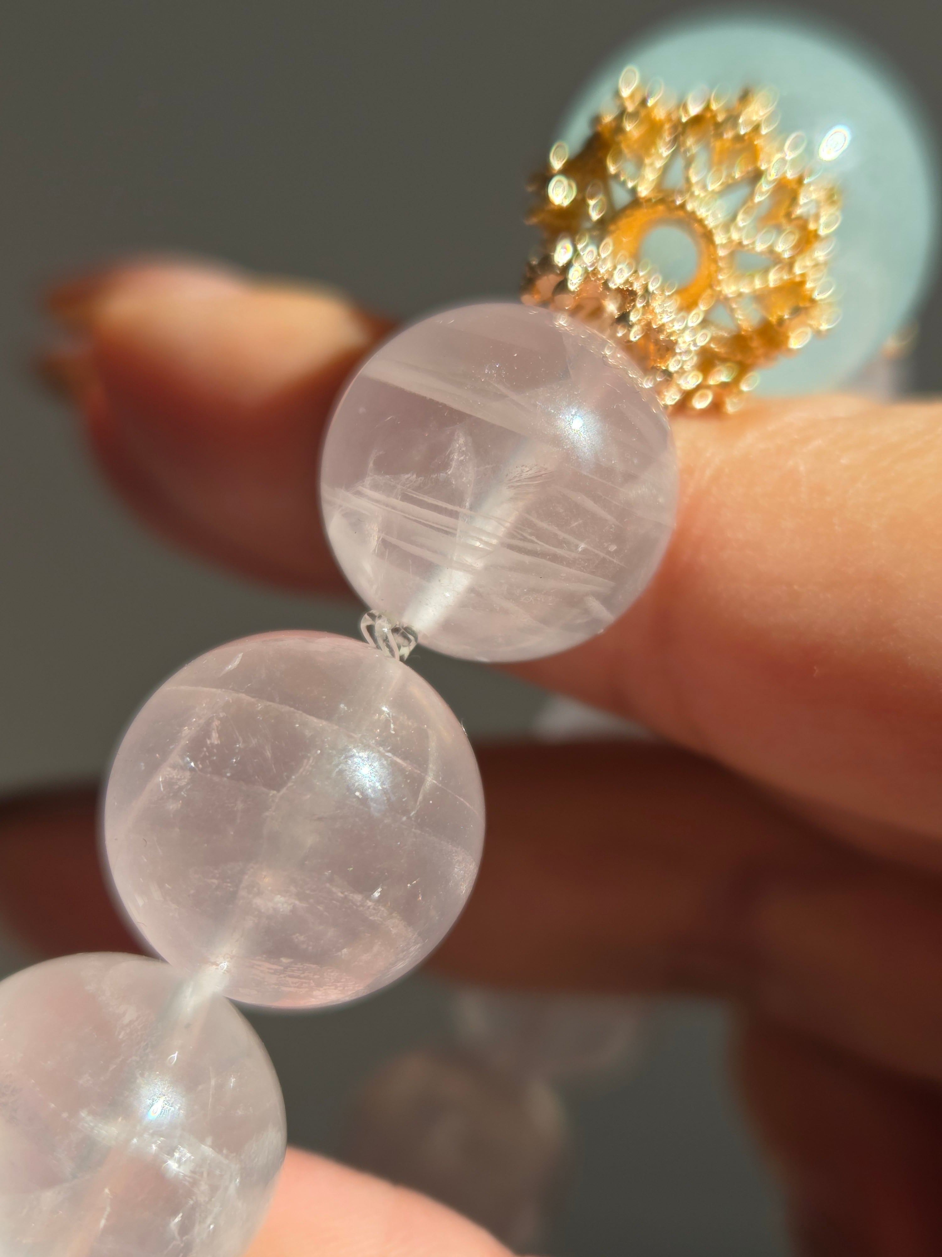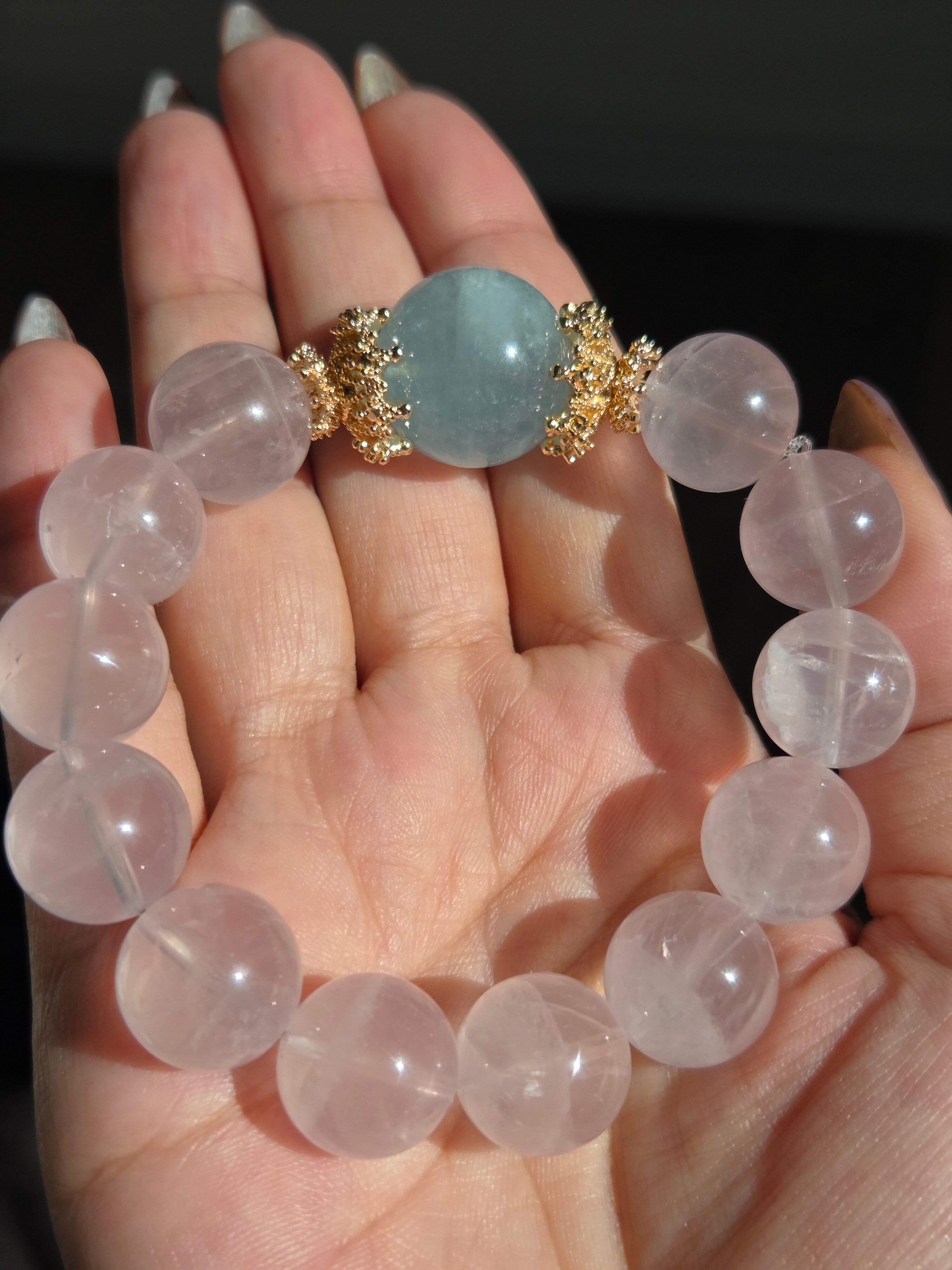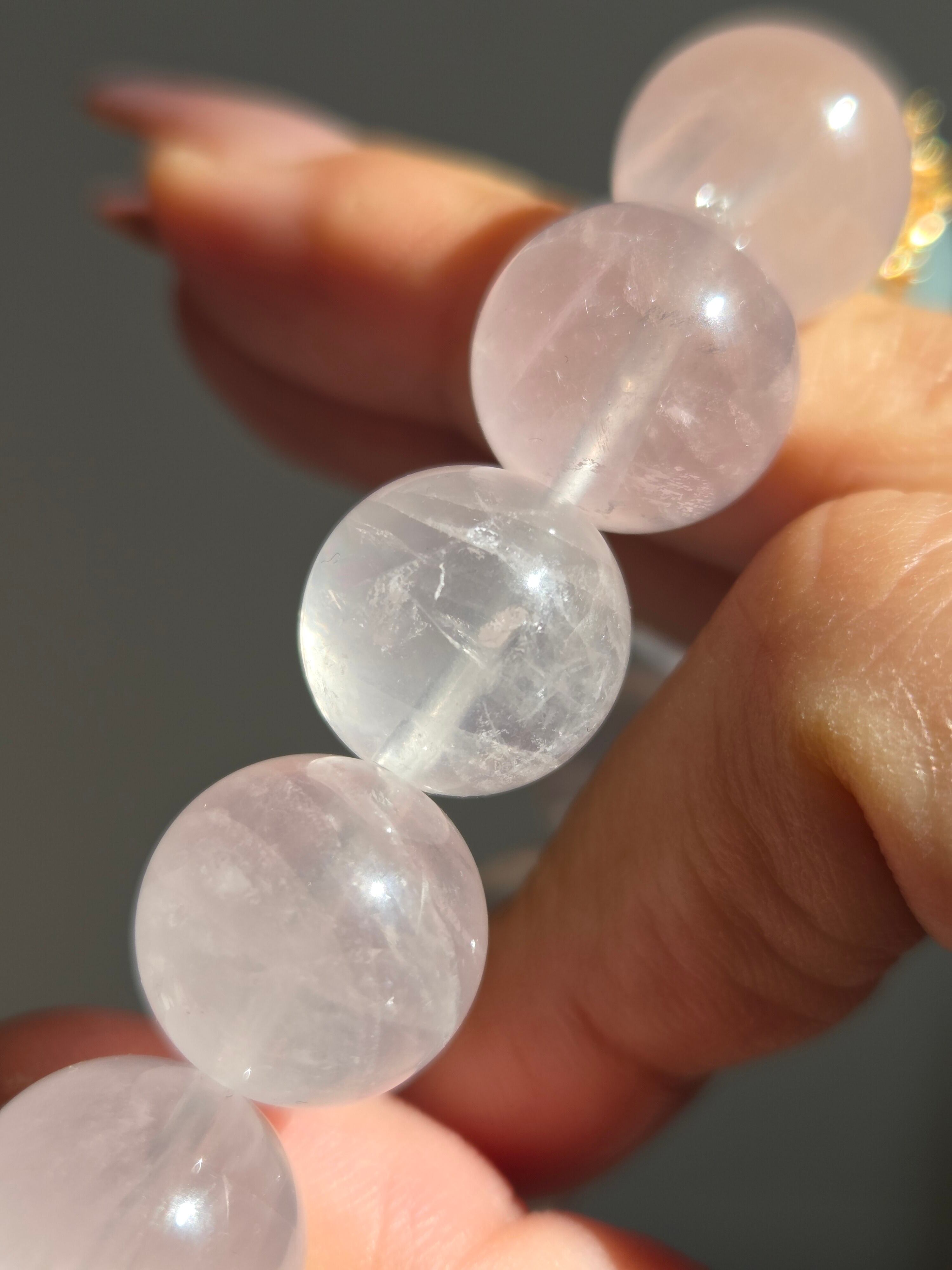 ローズクォーツは「無条件の愛」「自己愛」「癒し」の波動を持ち、心の奥に溜まった悲しみや過去の恋愛の痛みを、やさしく包み込むように癒してくれます。 ブレスレットとして身につけることで、常にその波動が肌を通して伝わり、自分を肯定し、愛する力を取り戻すサポートとなります。
