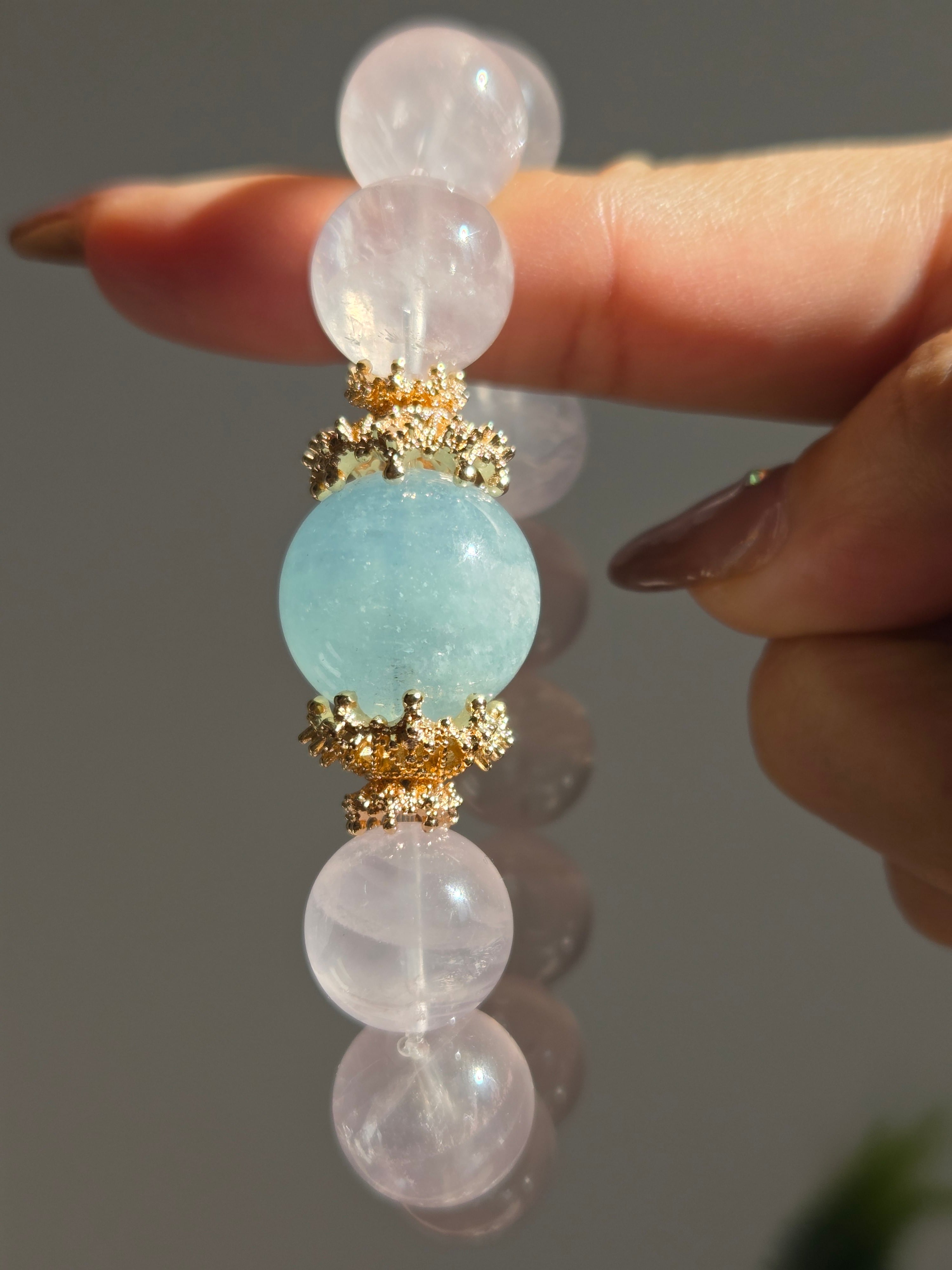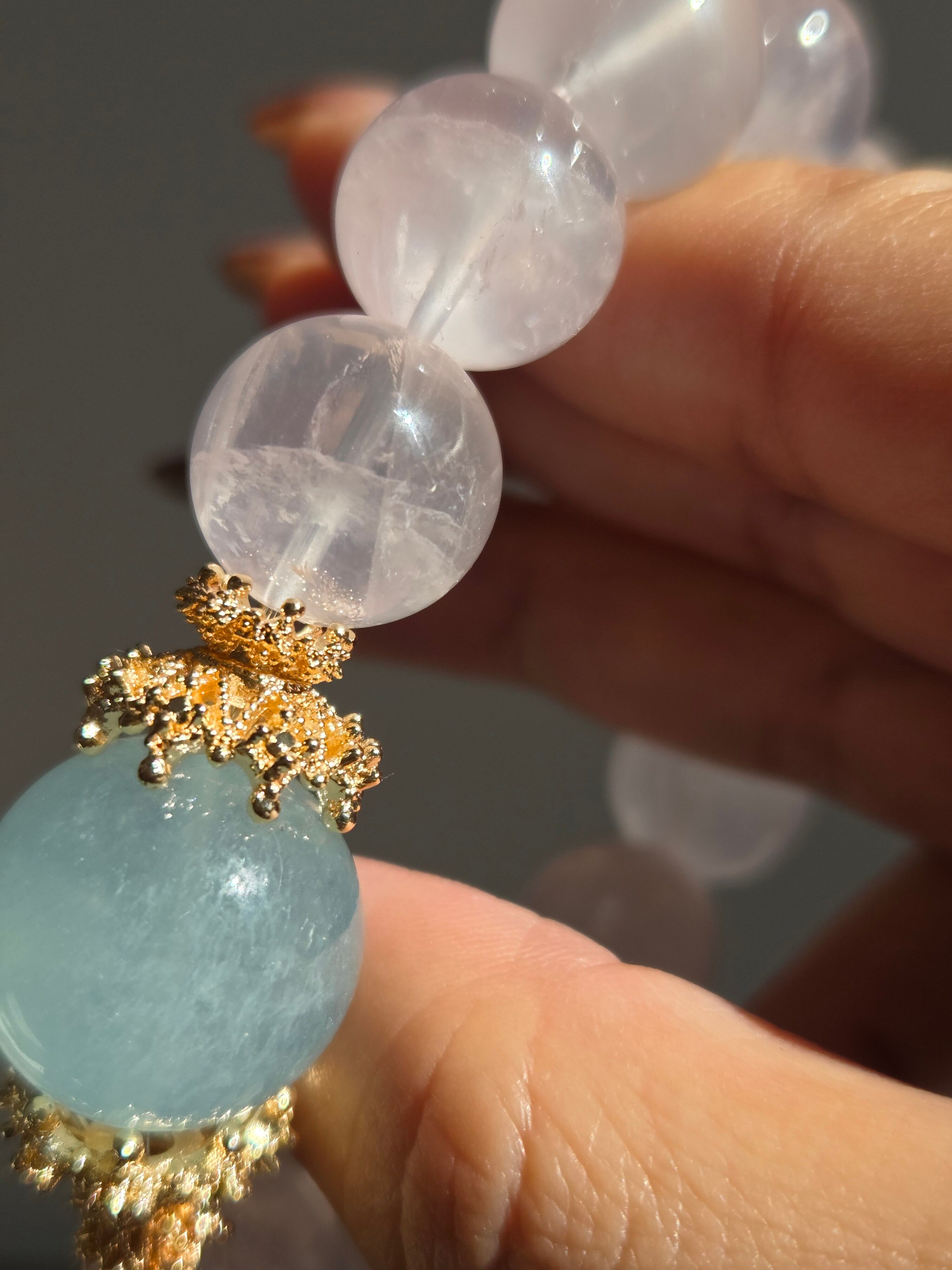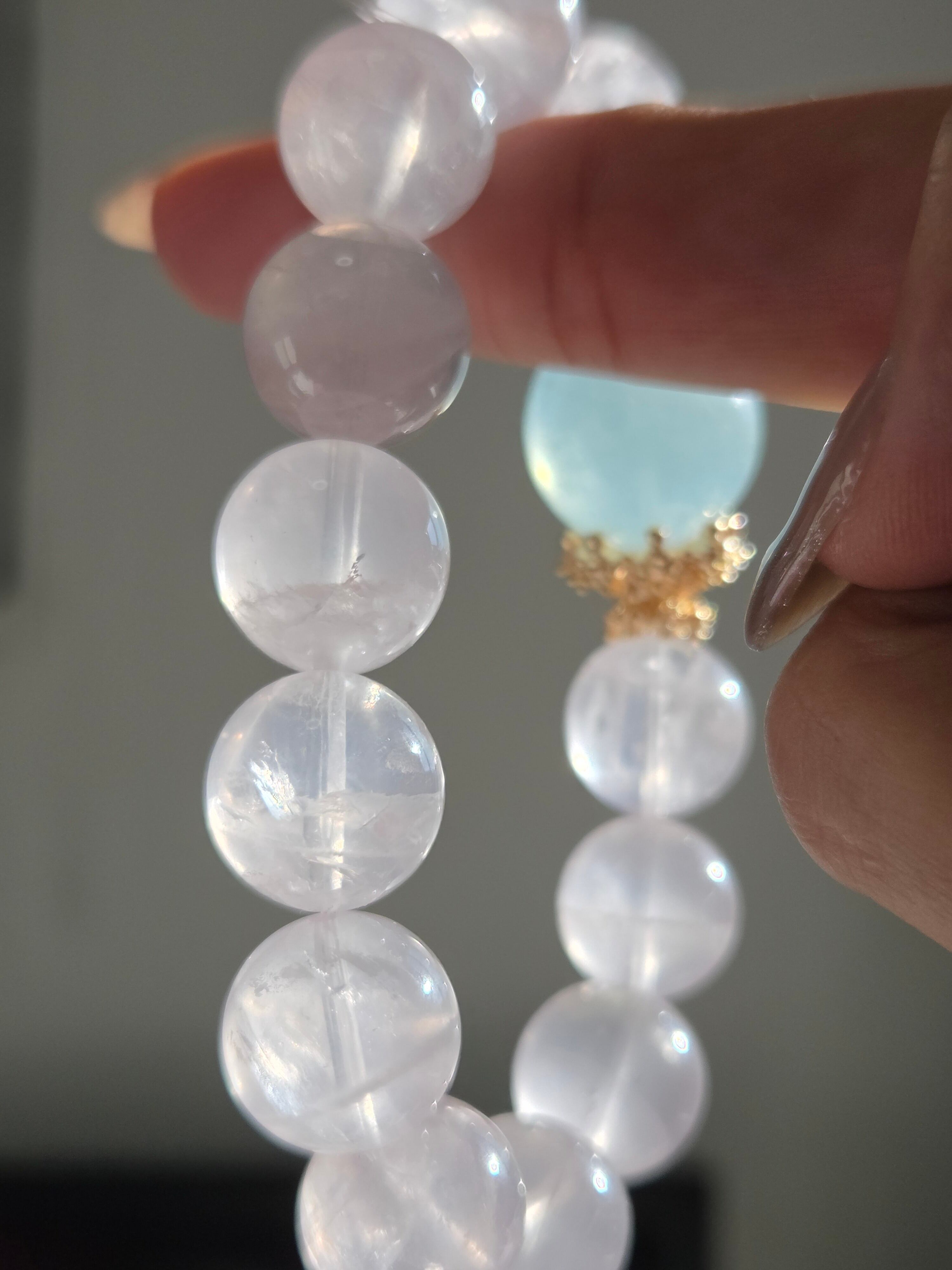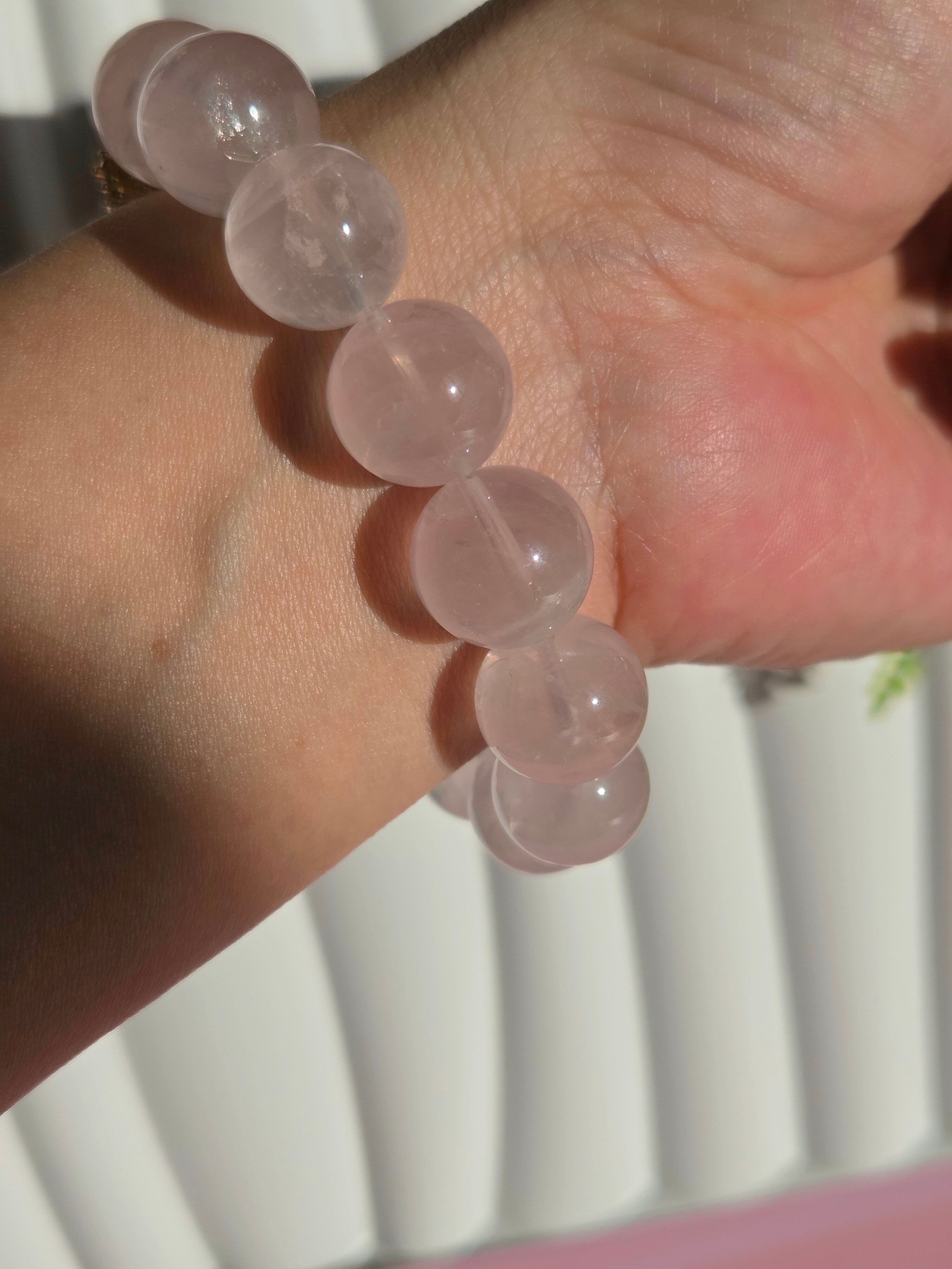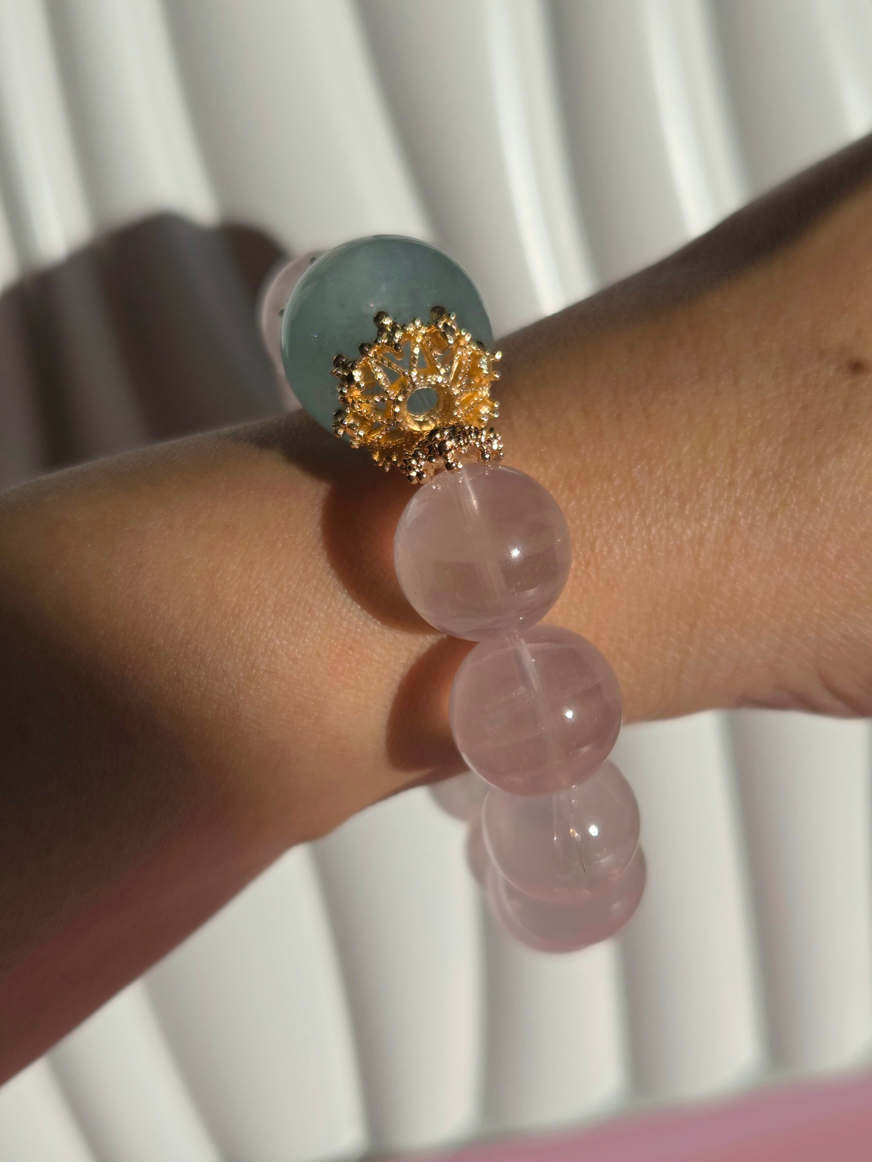 ローズクォーツは「無条件の愛」「自己愛」「癒し」の波動を持ち、心の奥に溜まった悲しみや過去の恋愛の痛みを、やさしく包み込むように癒してくれます。 ブレスレットとして身につけることで、常にその波動が肌を通して伝わり、自分を肯定し、愛する力を取り戻すサポートとなります。