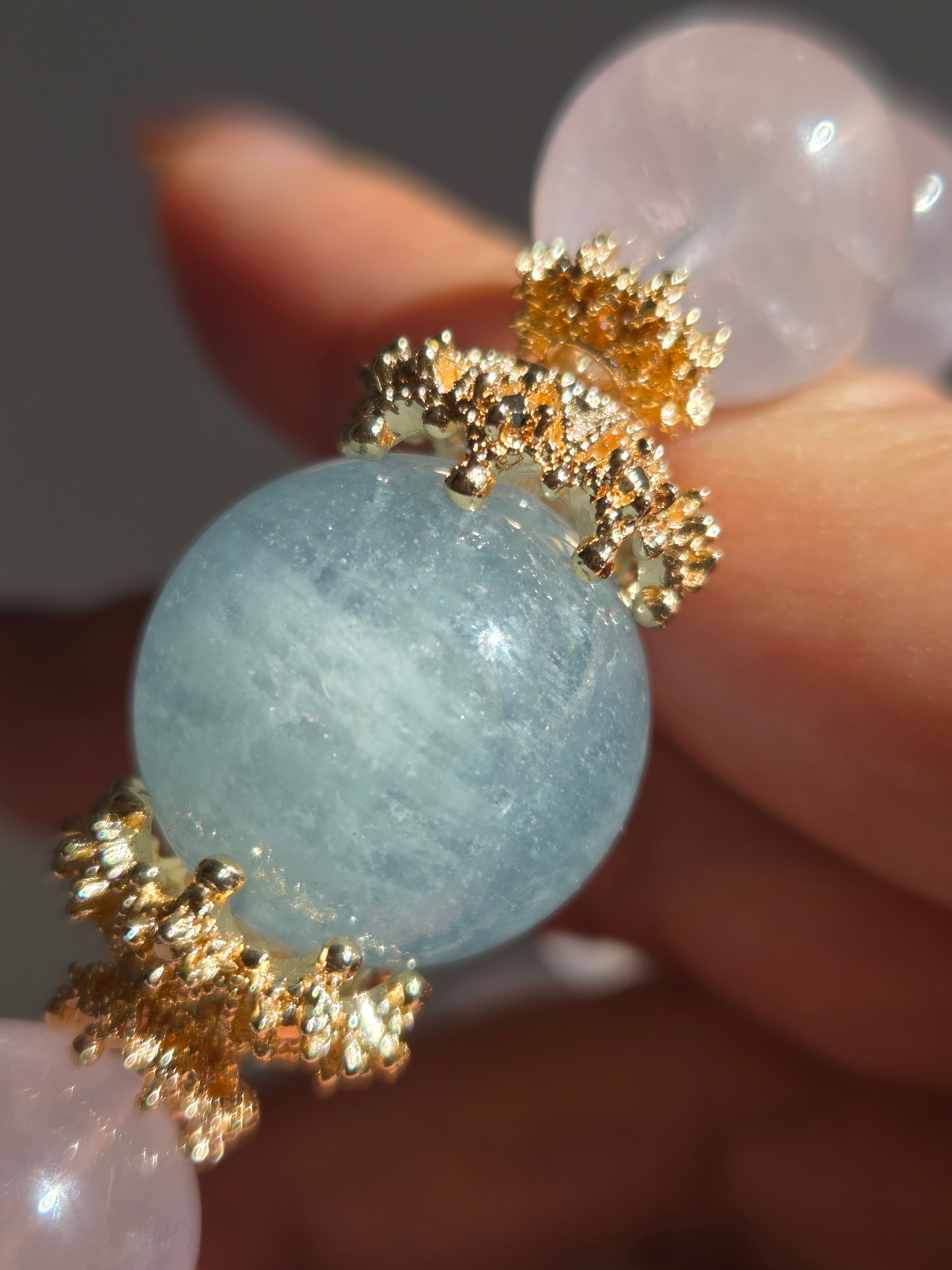 アクアマリンには、精神安定、人間関係の調和、旅の安全、そして癒しの効果があるとされています。具体的な効果として、心の平穏を保つ、コミュニケーション能力を高める、夫婦円満や恋愛運の向上、旅の安全祈願等いわれています。