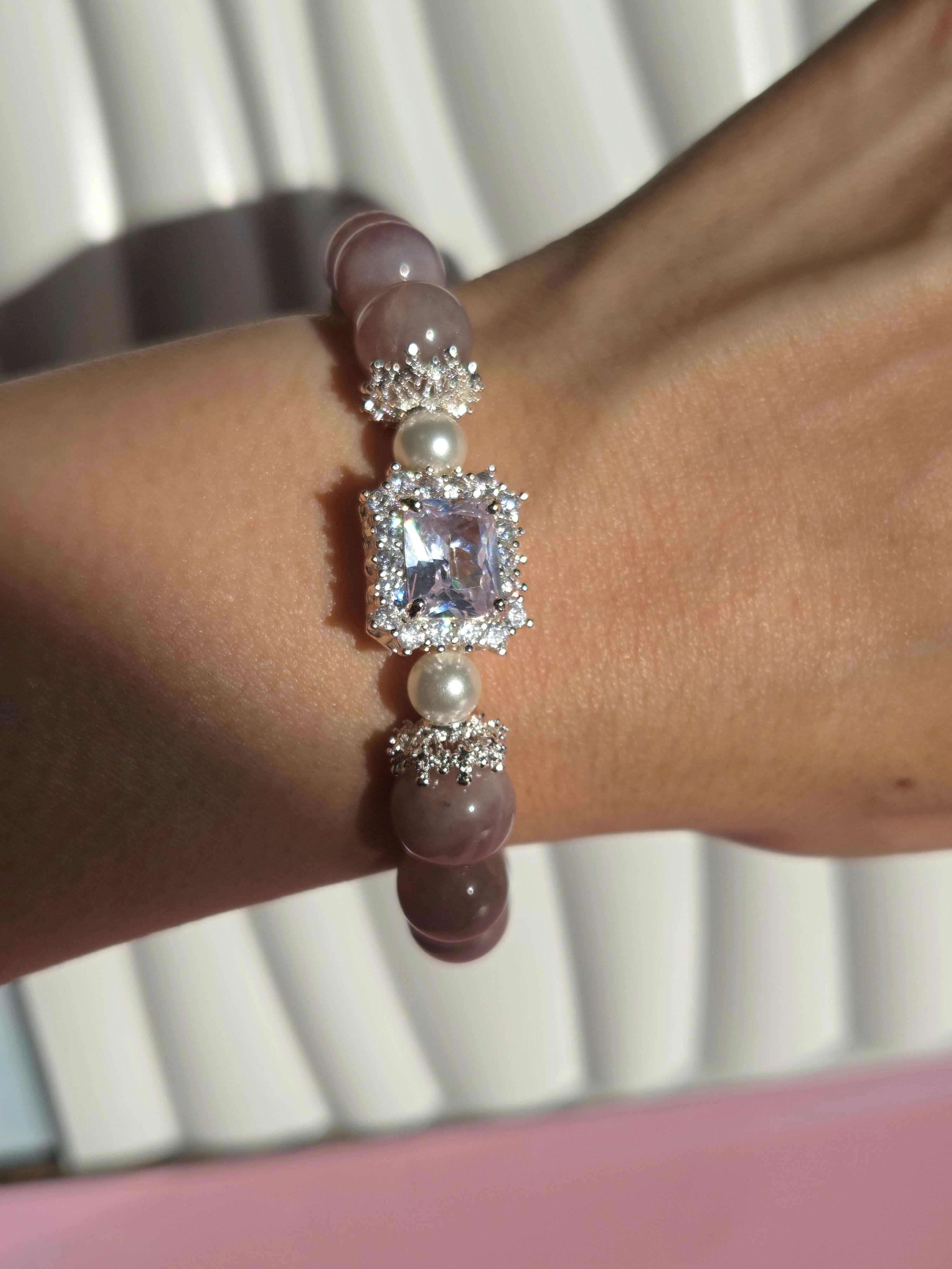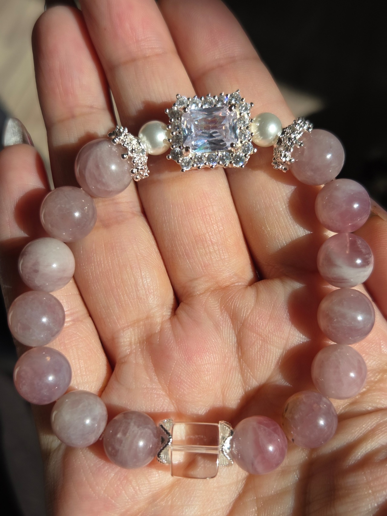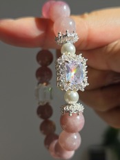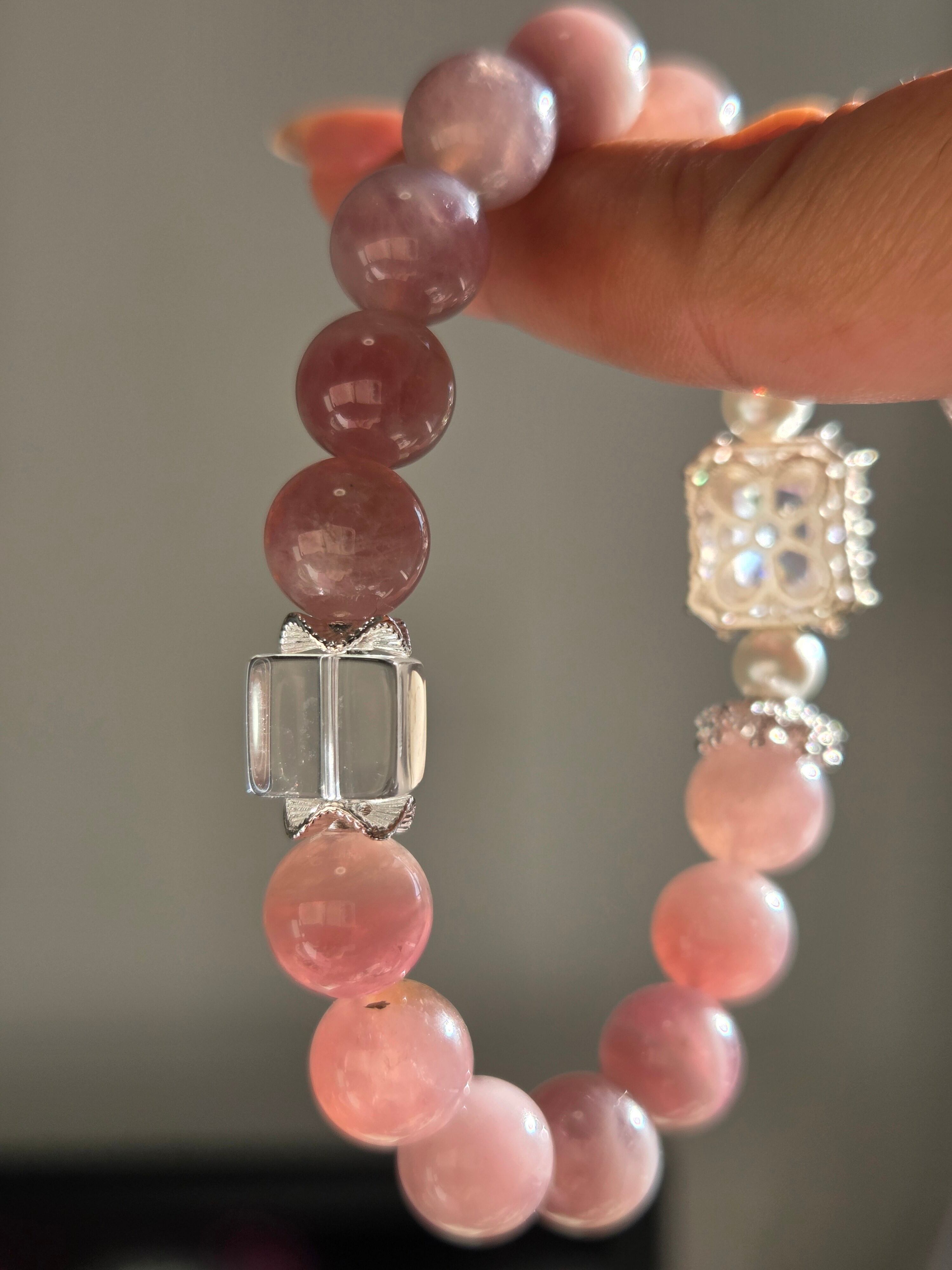 ラベンダーローズクォーツ×水晶デザインブレスレット