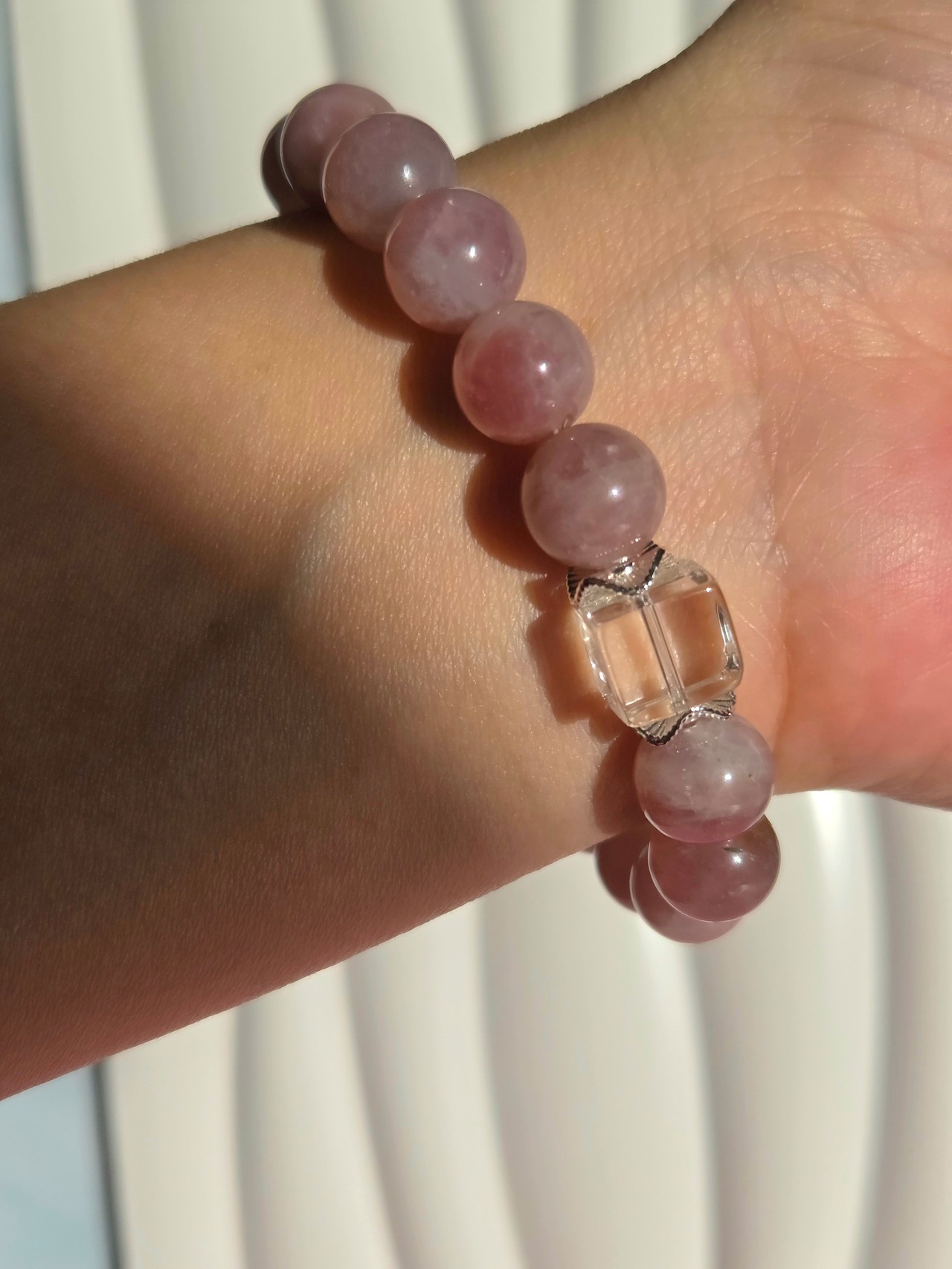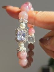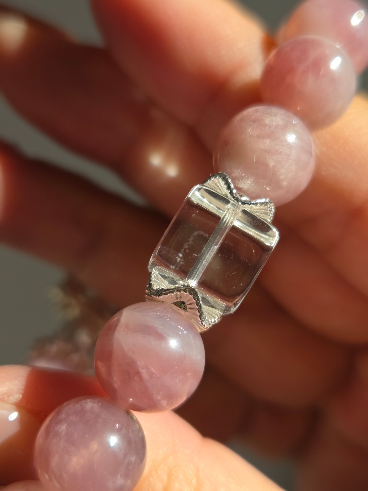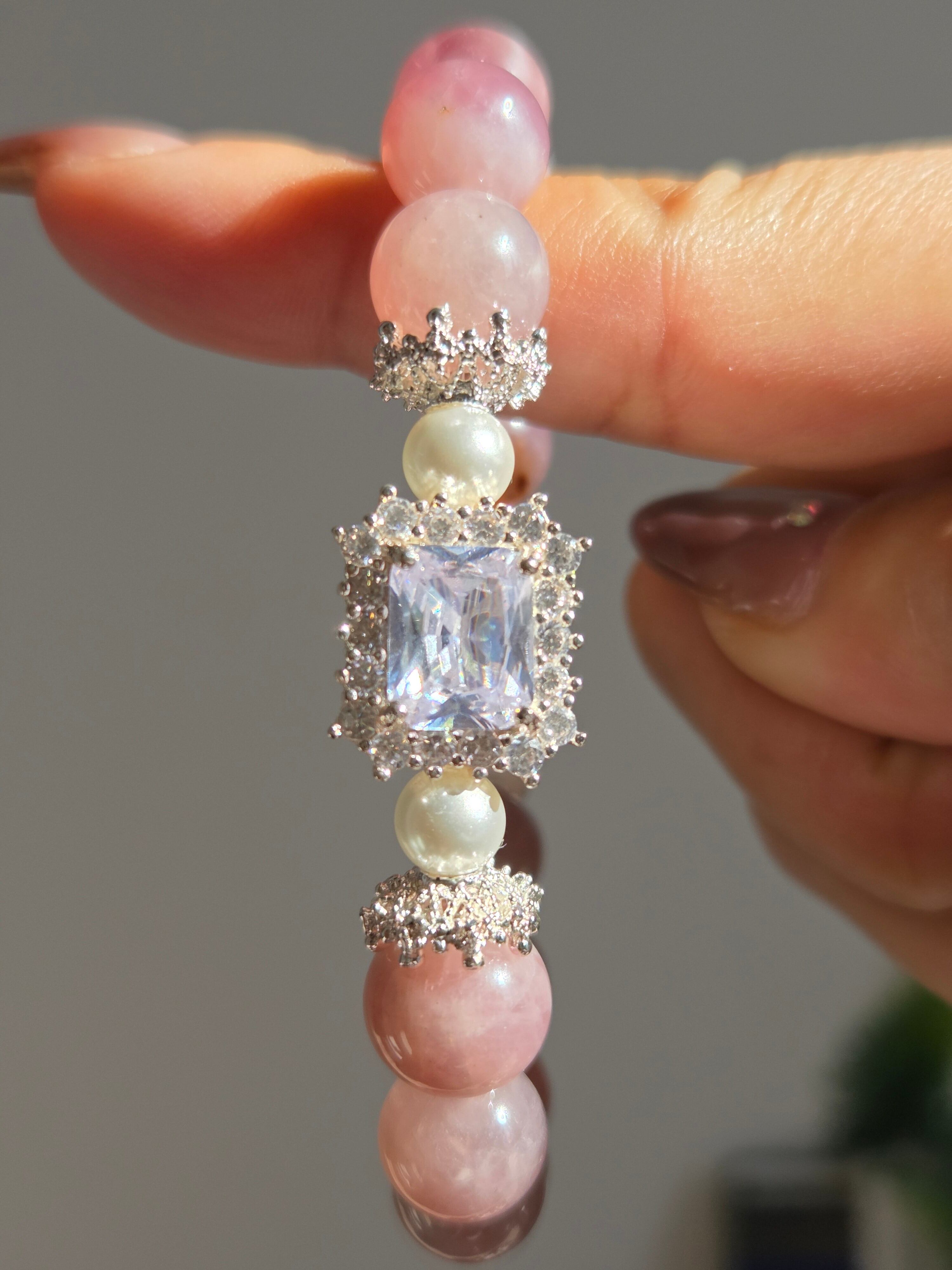 ラベンダーローズクォーツ×水晶デザインブレスレット