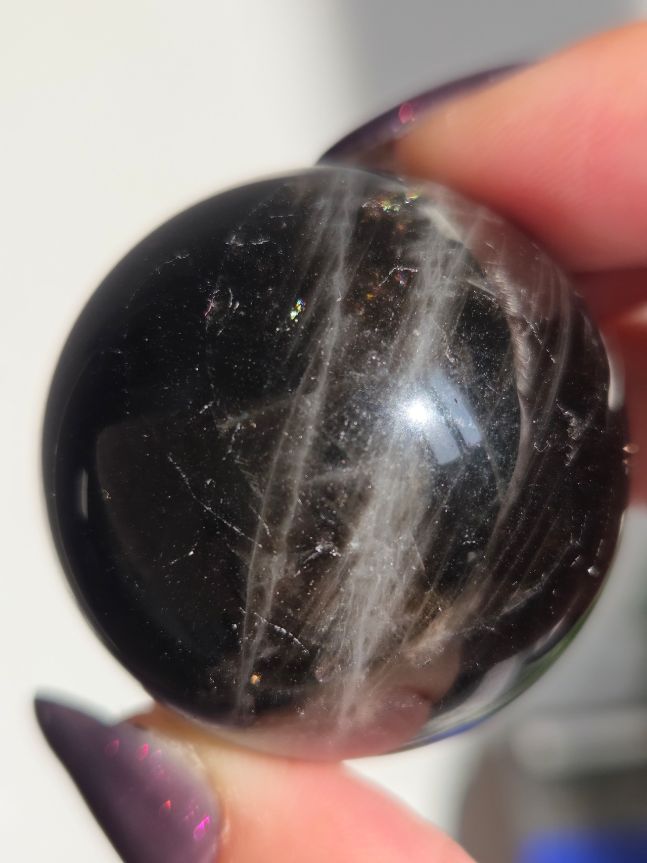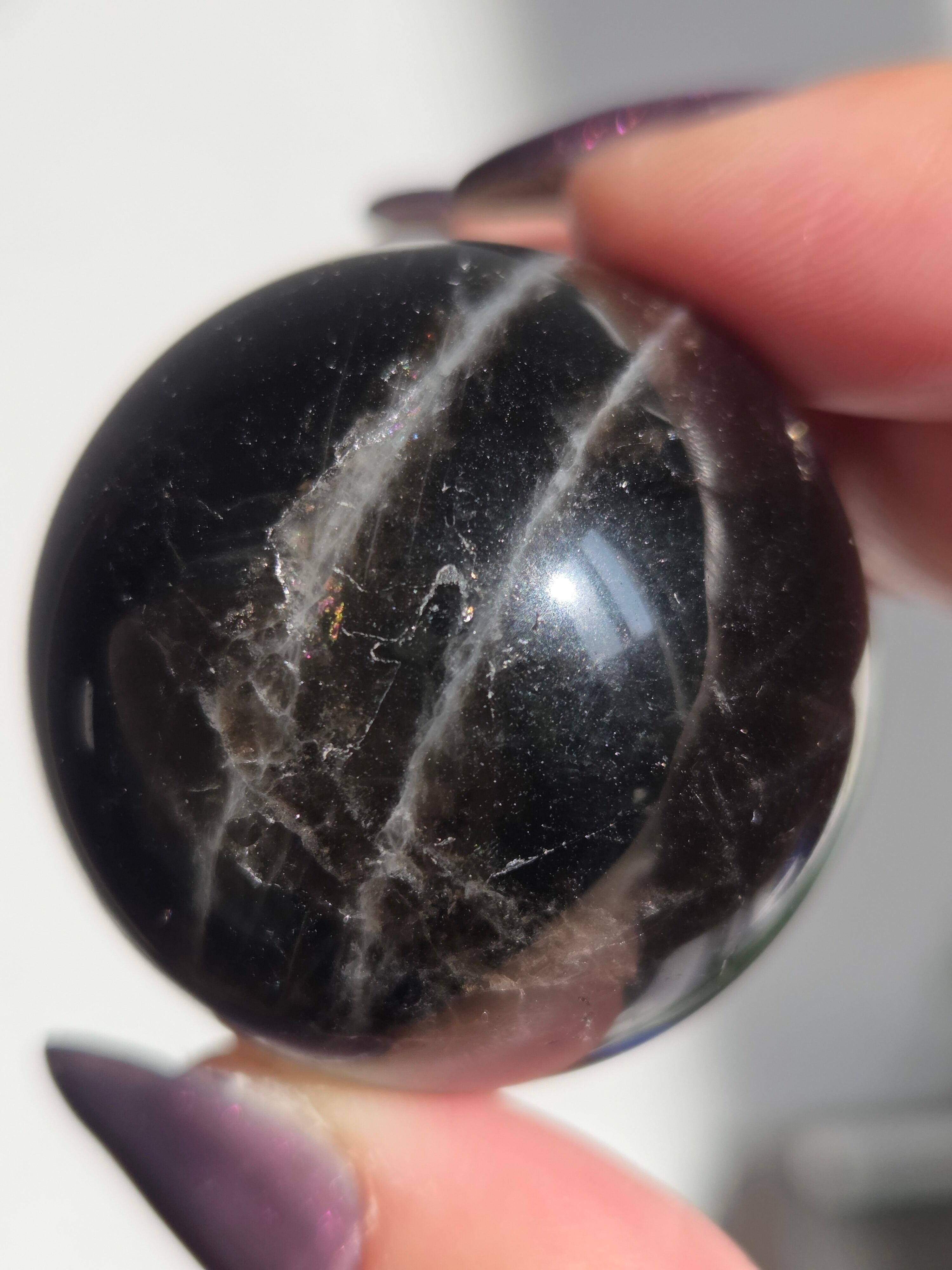 光の筋が何本にも走り、スター(六条タイプ)が映し出されるスターモリオンの丸玉です。