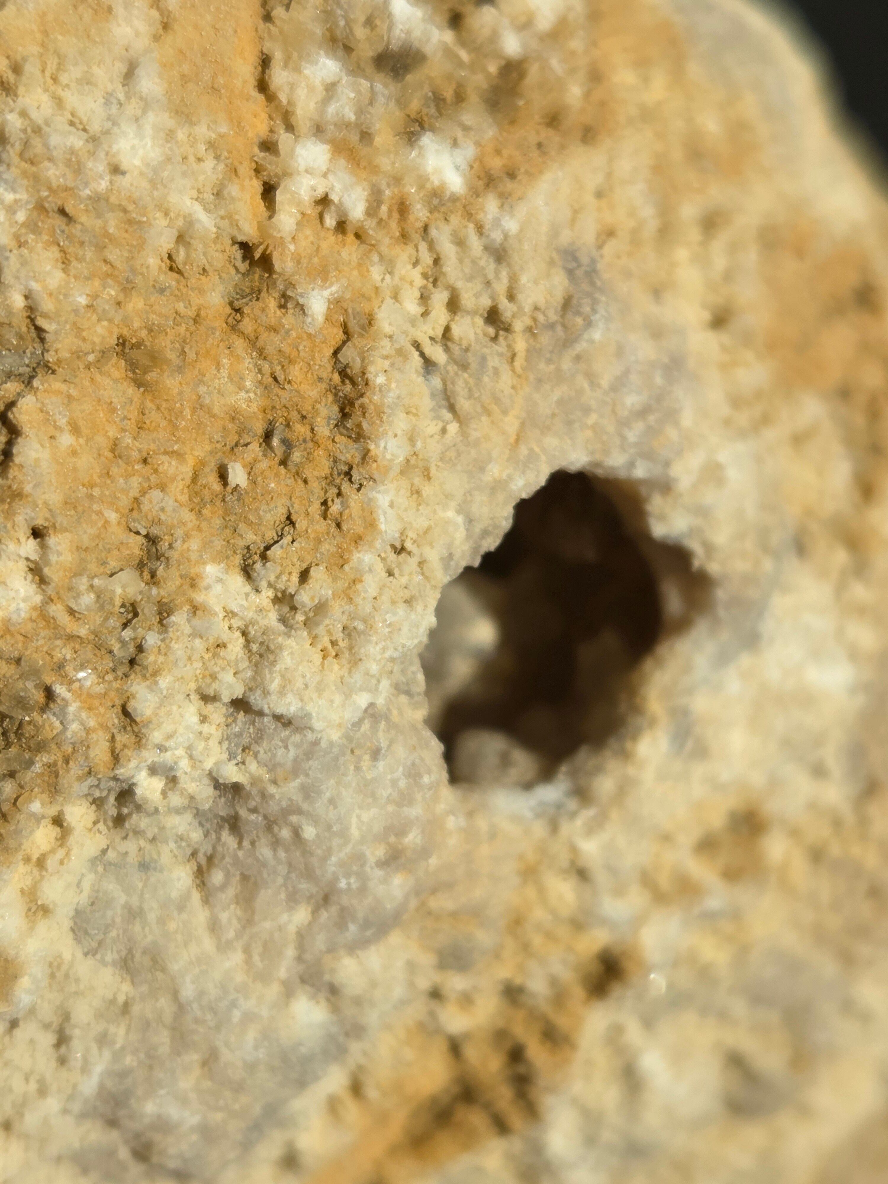 トレジャーメノウ(財宝瑪瑙)は、瑪瑙の原石が内部で空洞化し、その中に水晶などの美しい結晶が成長した天然石で、中国の伝説の「聚宝盆(宝が湧き出る鉢)」に由来し、金運・財運・開運を呼び込む縁起の良い石として親しまれ、龍穴(りゅうけつ)と呼ばれるパワースポットを作り出し、他のパワーストーンの浄化やエネルギー増幅にも使われる、風水と関連の深いインテリアとしても人気のパワーストーンです。