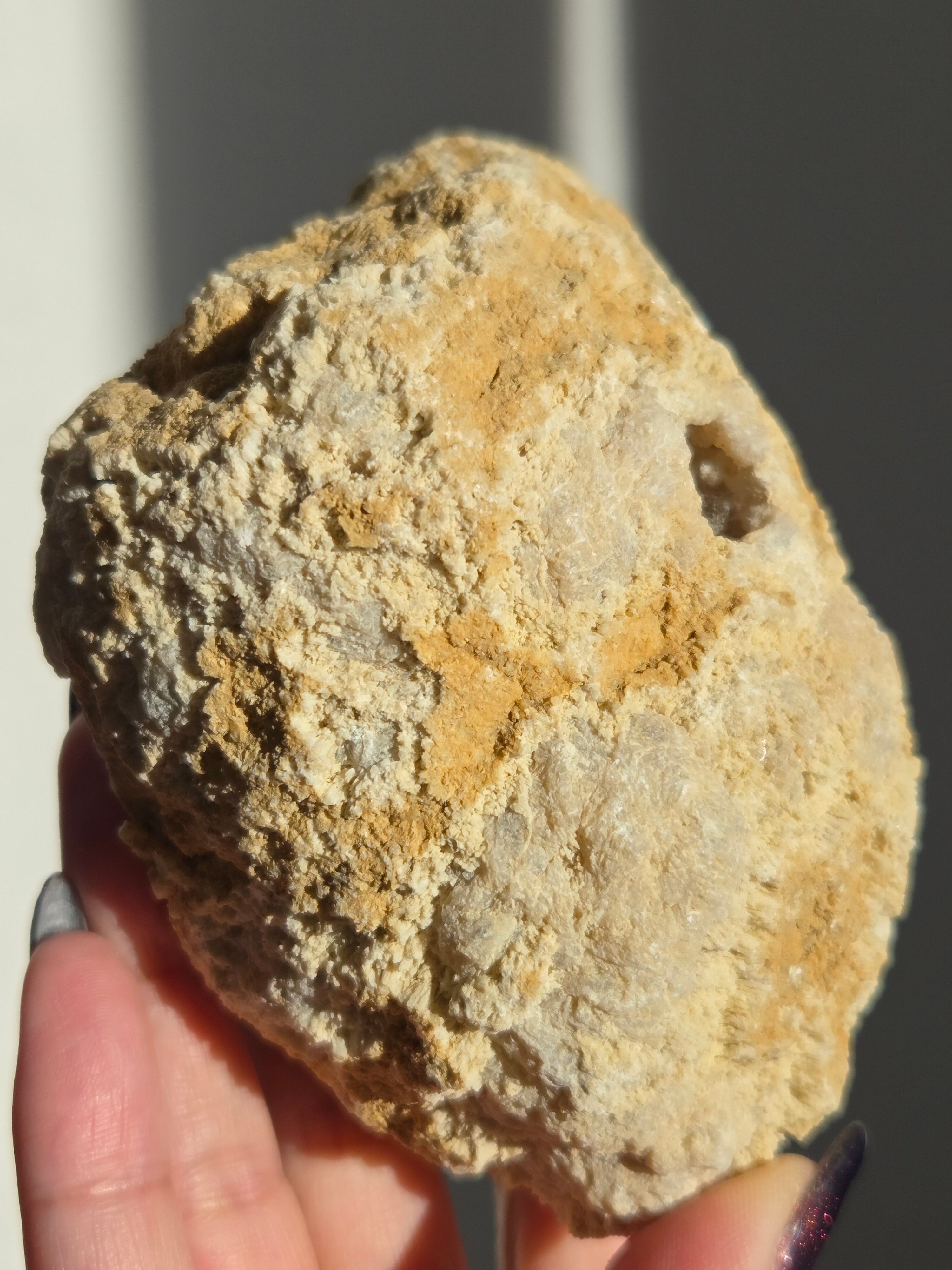 市場に出回っているトレジャーメノウは、既に割られている商品が多いですが、こちらは塊のままなので、ご自身で、ハンマーで割って頂く必要があります。