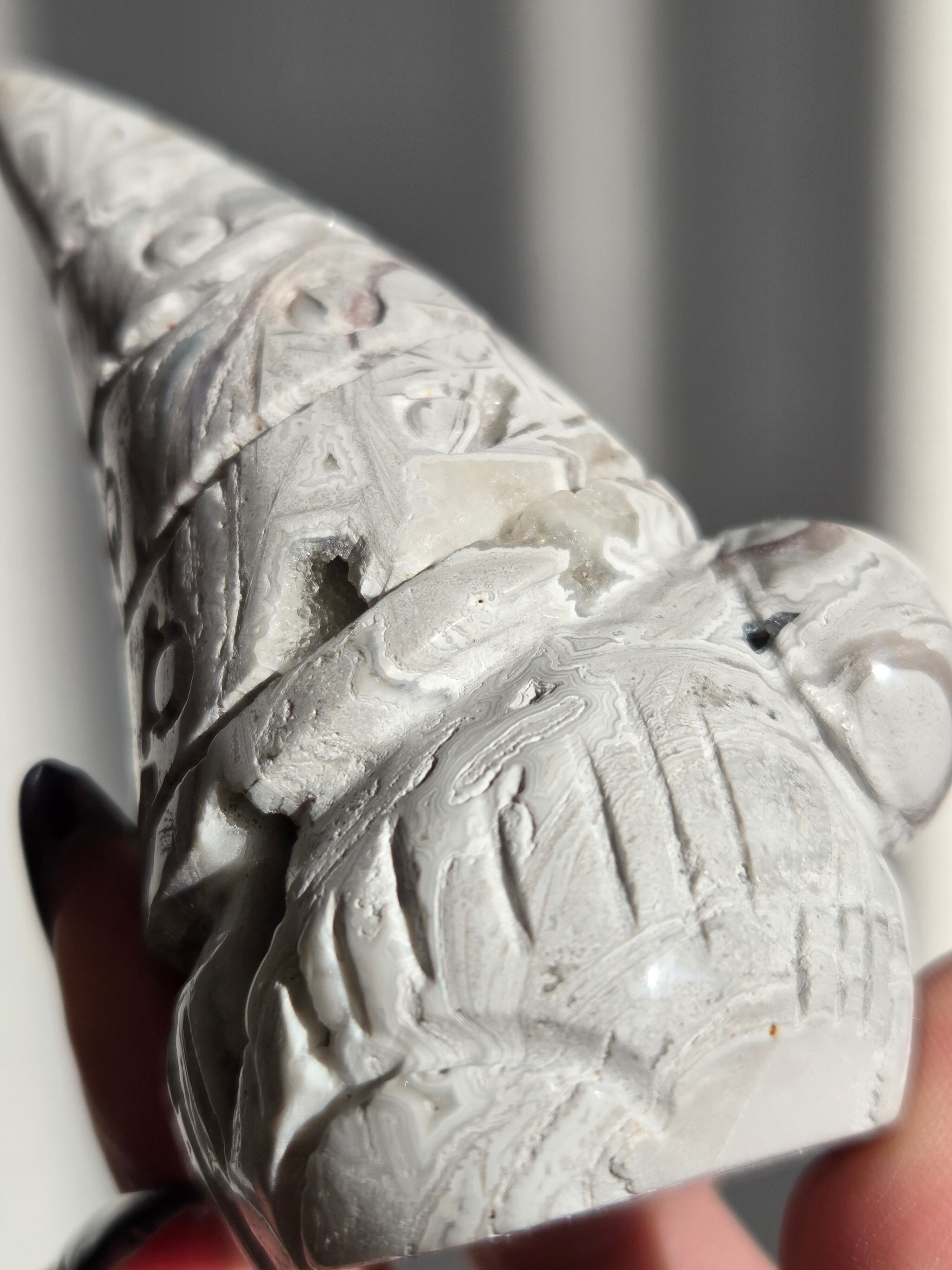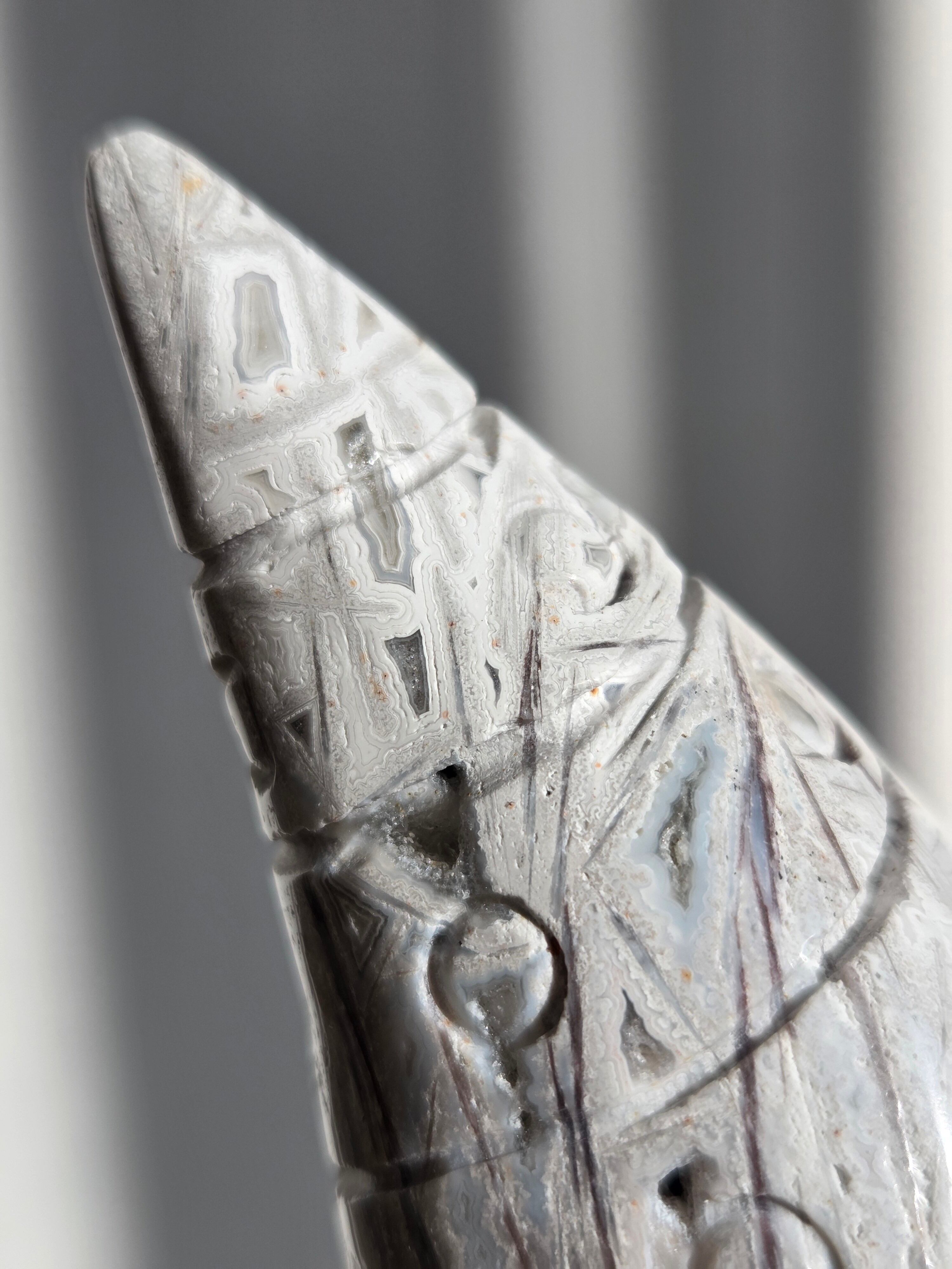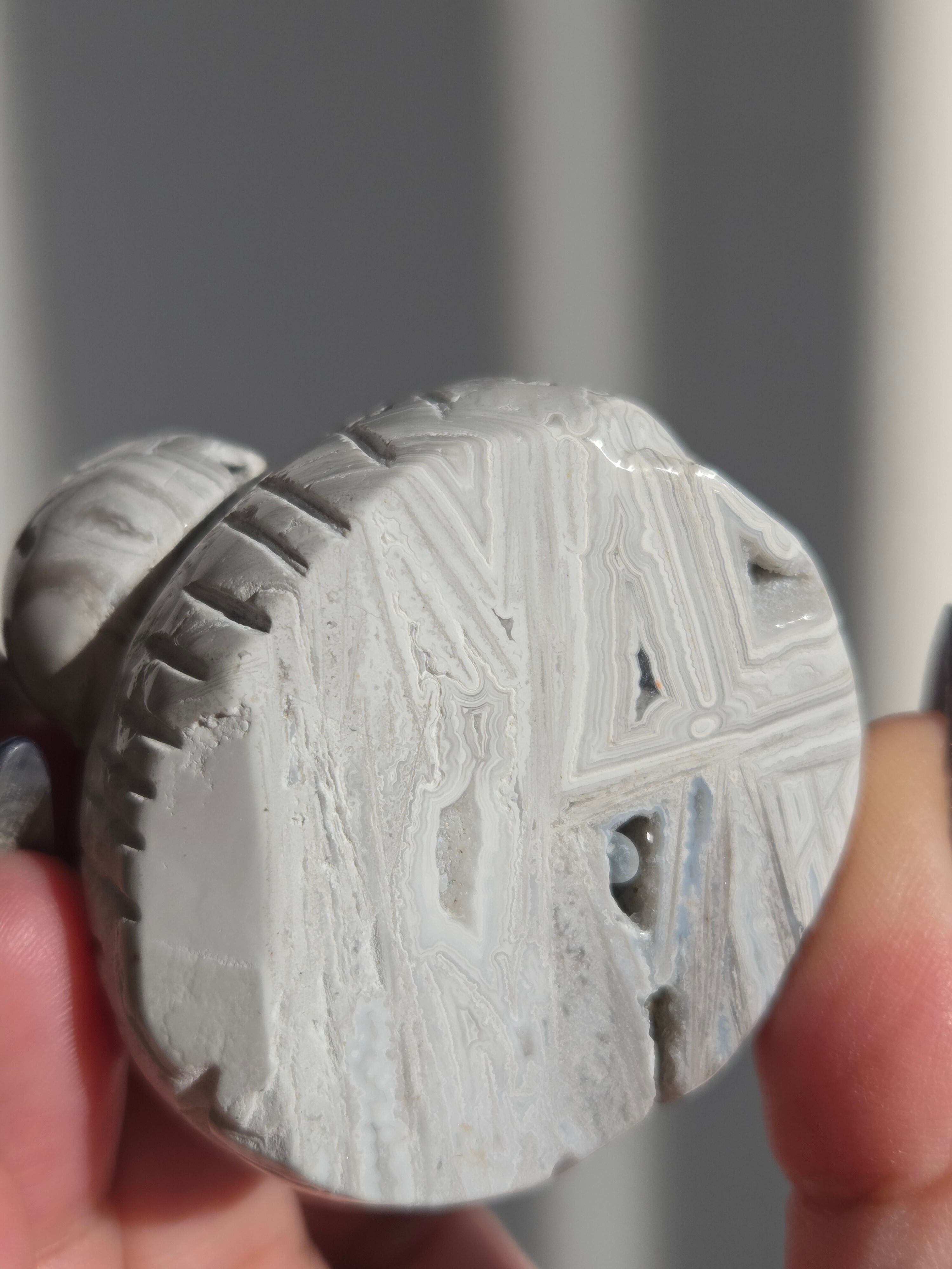 ホワイトアゲートの効果は、精神安定・心身の浄化・人間関係の調和・過去への執着を断ち切るサポートなど多岐にわたります。清らかな輝きが持ち主の心を穏やかにし、ネガティブな感情を取り除き、安堵感をもたらしてくれるとされています。また、他者への許しを促し、深い家族の絆を育む効果もあるとされています。