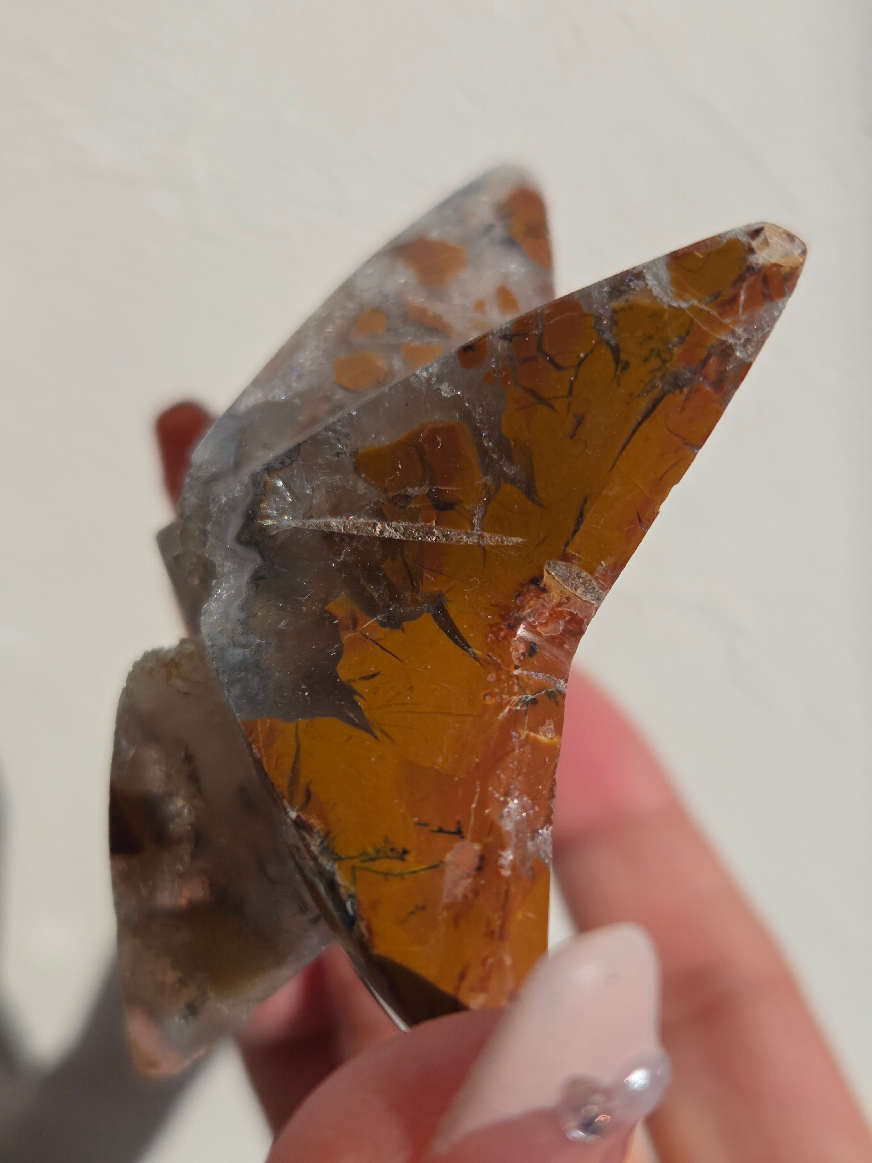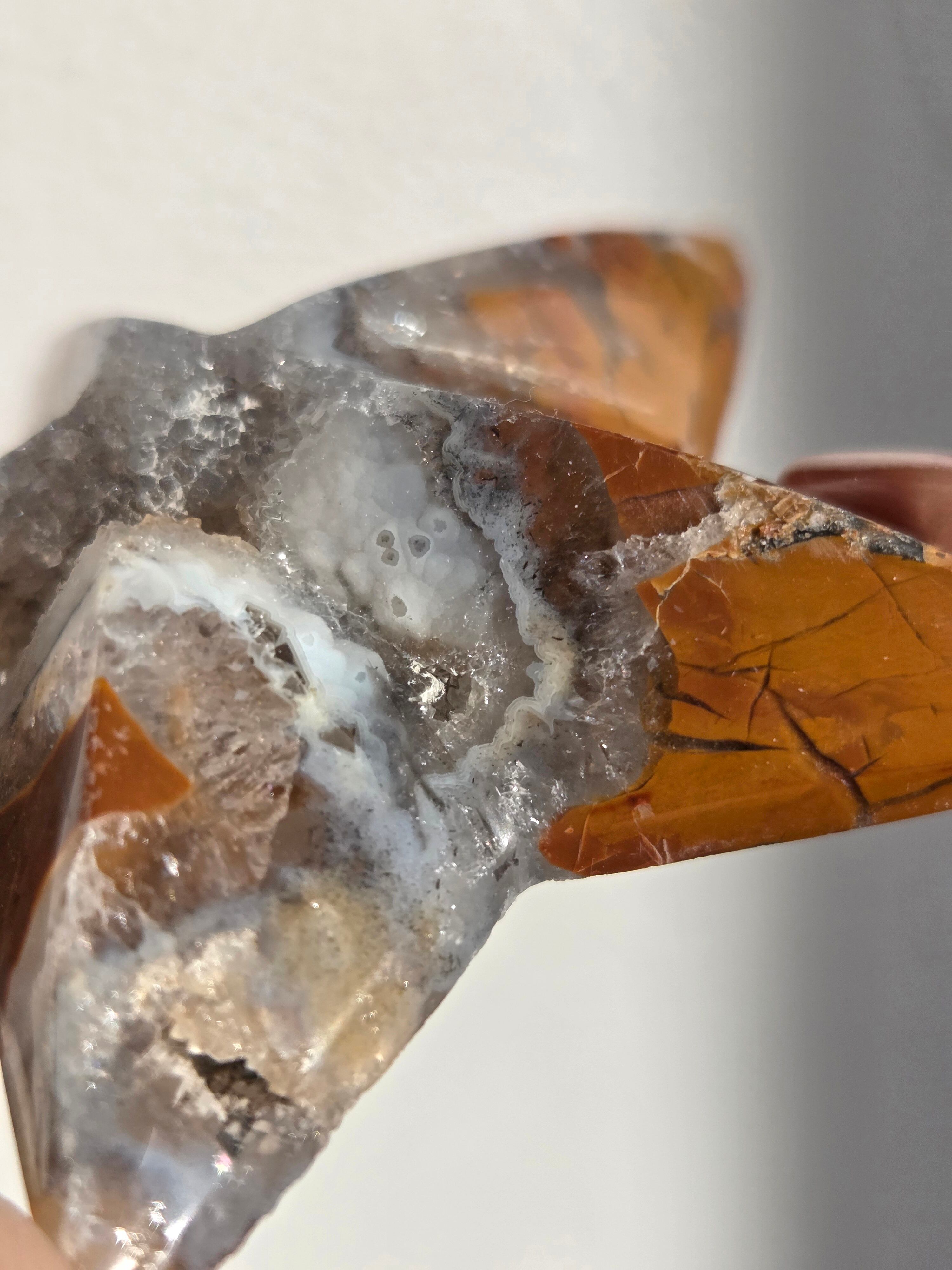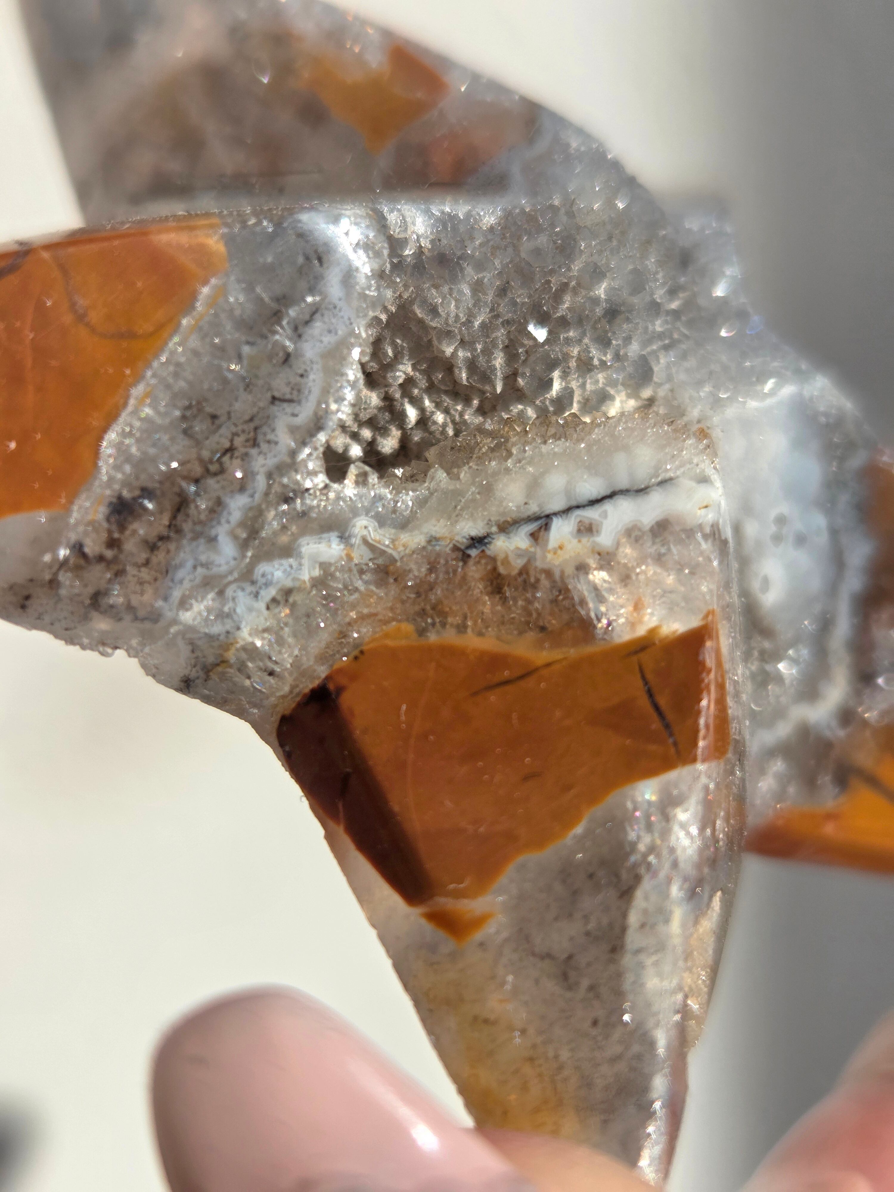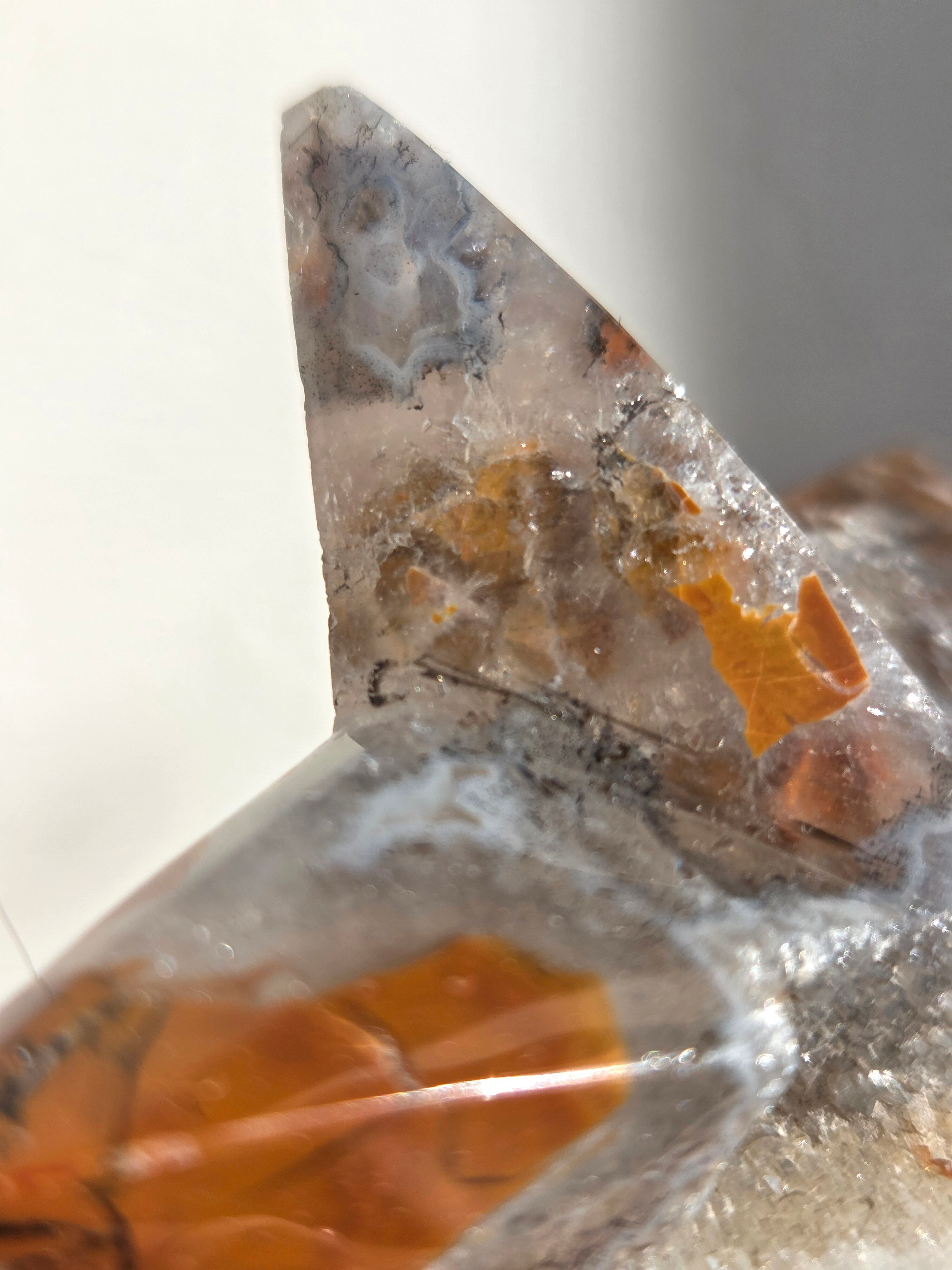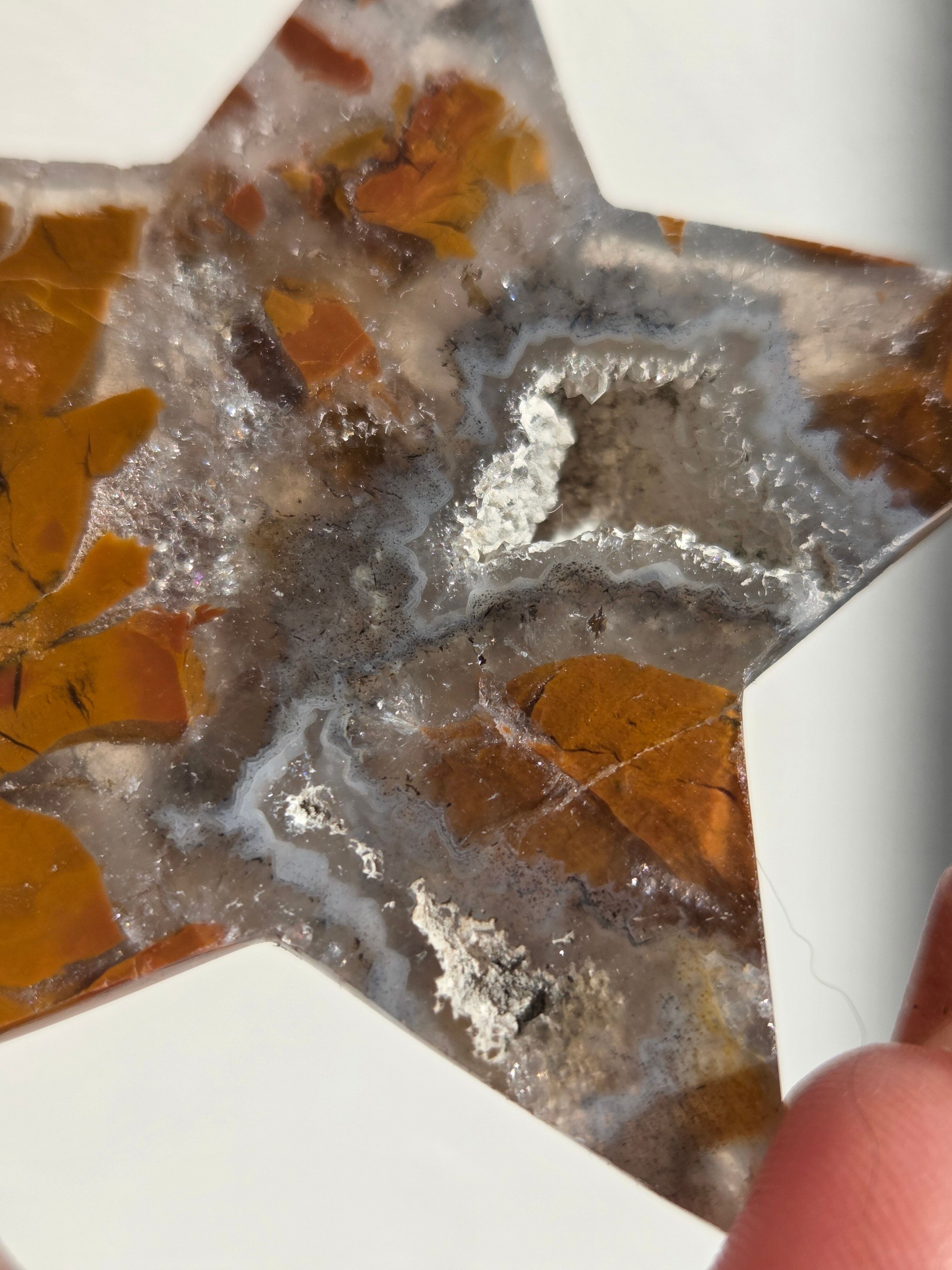 オレンジカラーをメインに、合間からクォーツの煌めきが見えるスターカービングです。