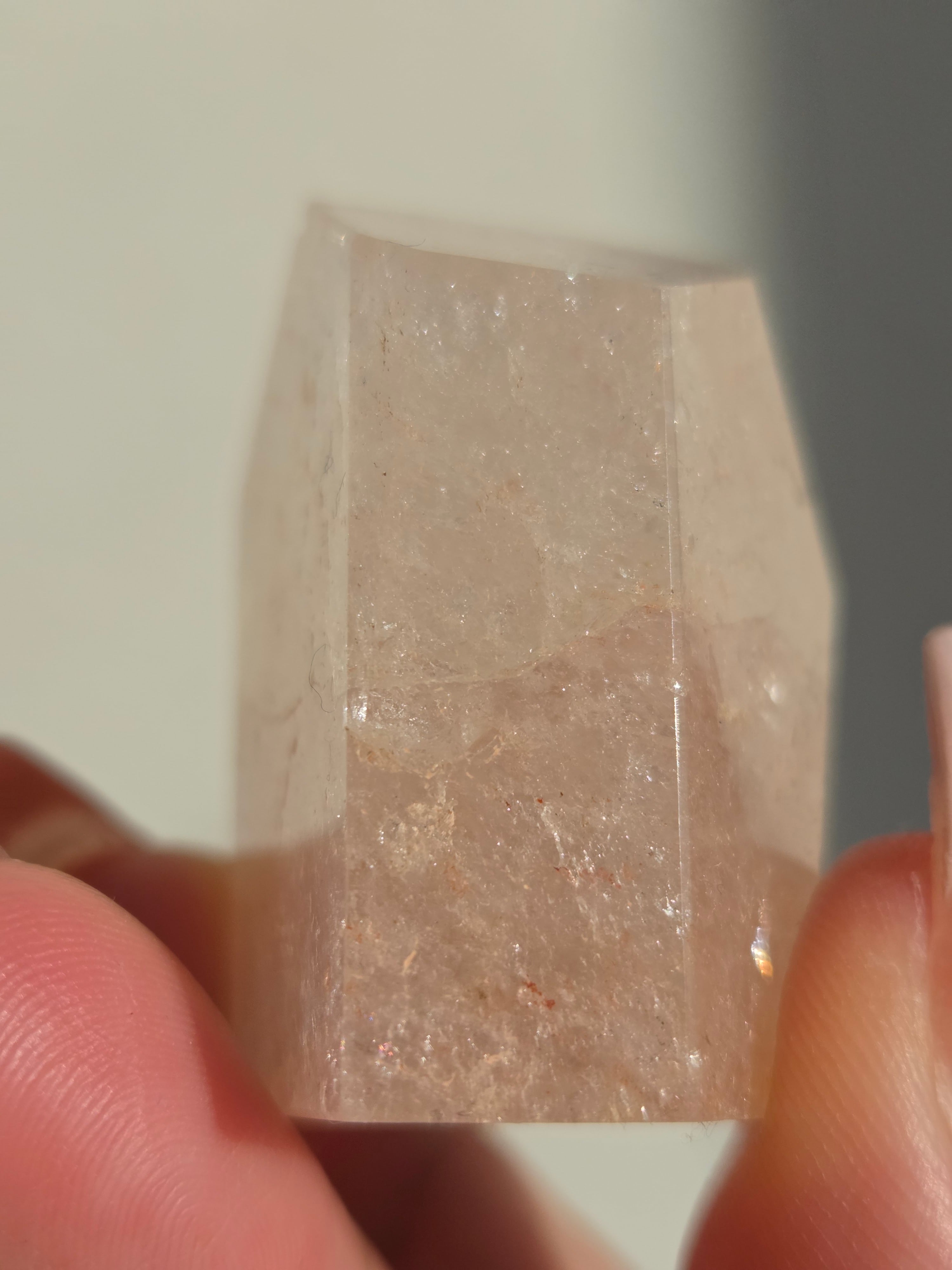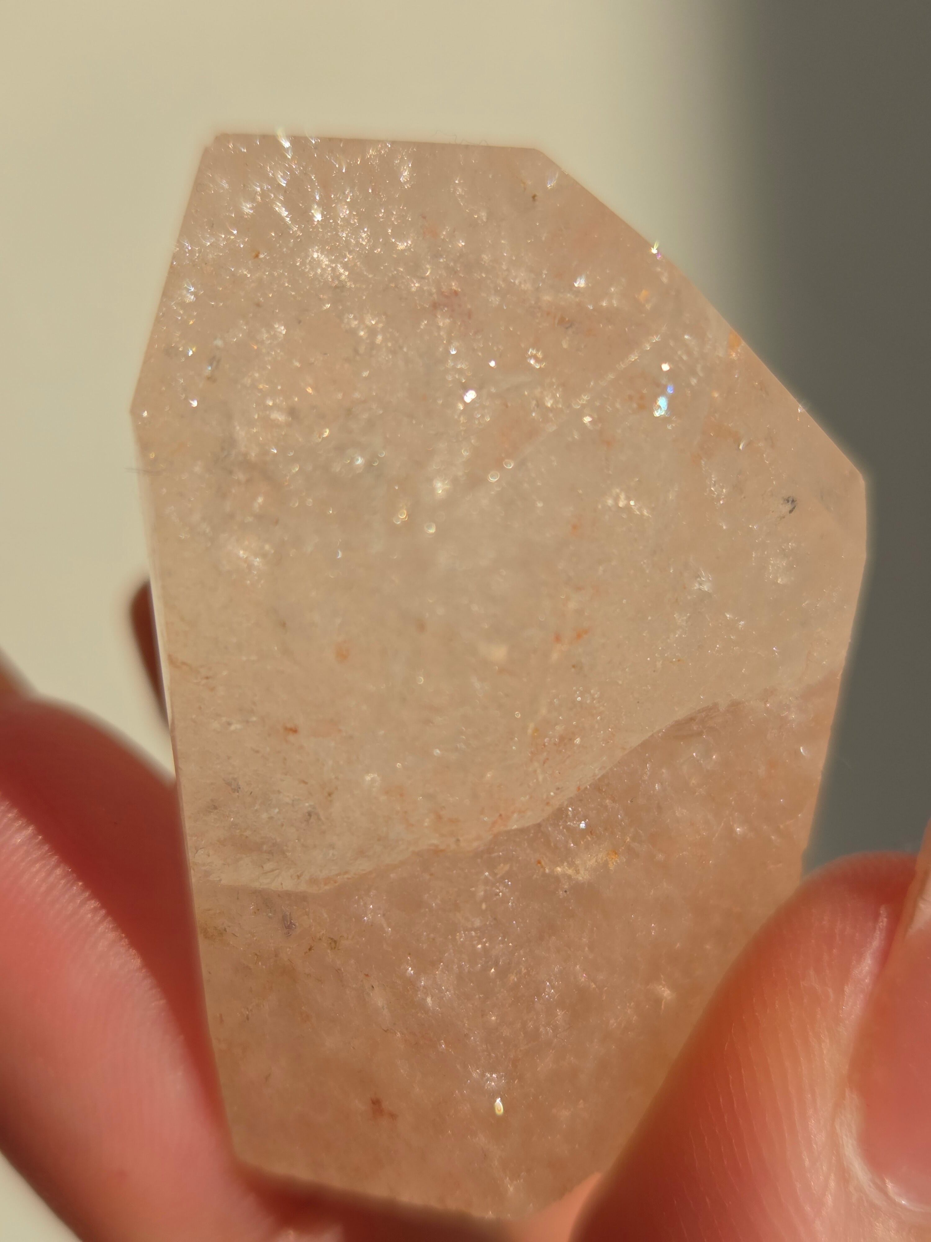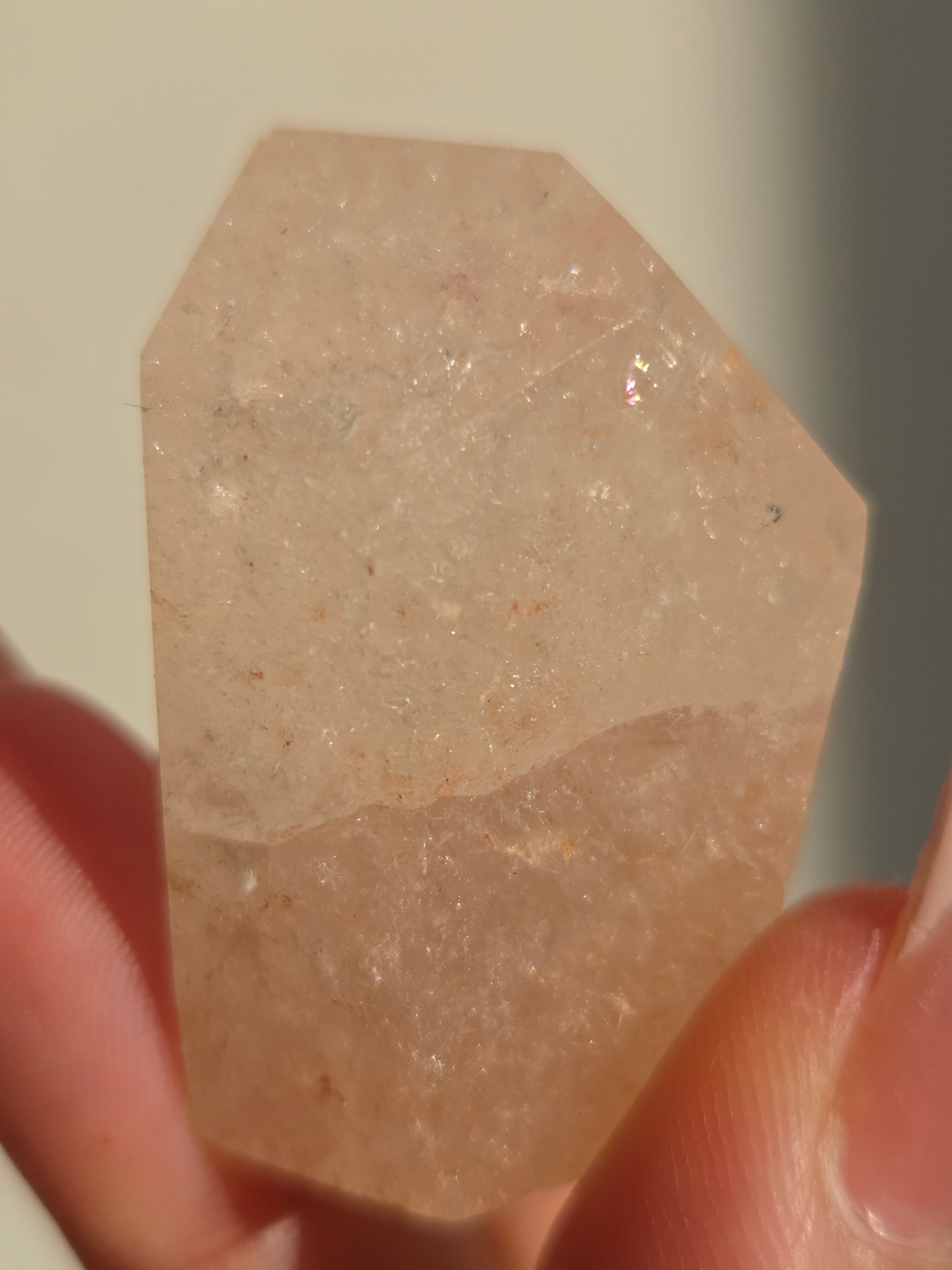 ほんのりピンクに色づいた、虹が煌めくフリーフォームです。