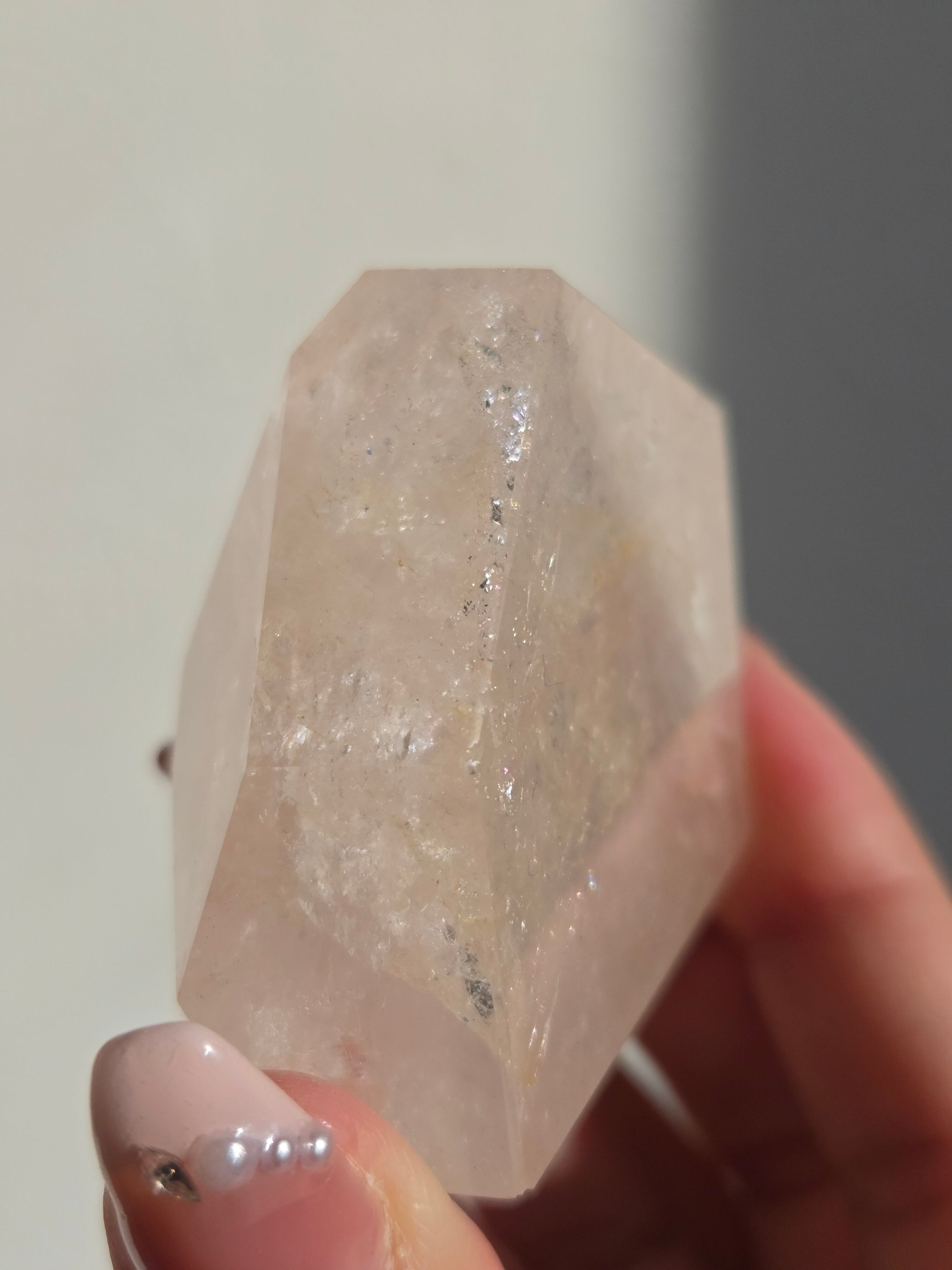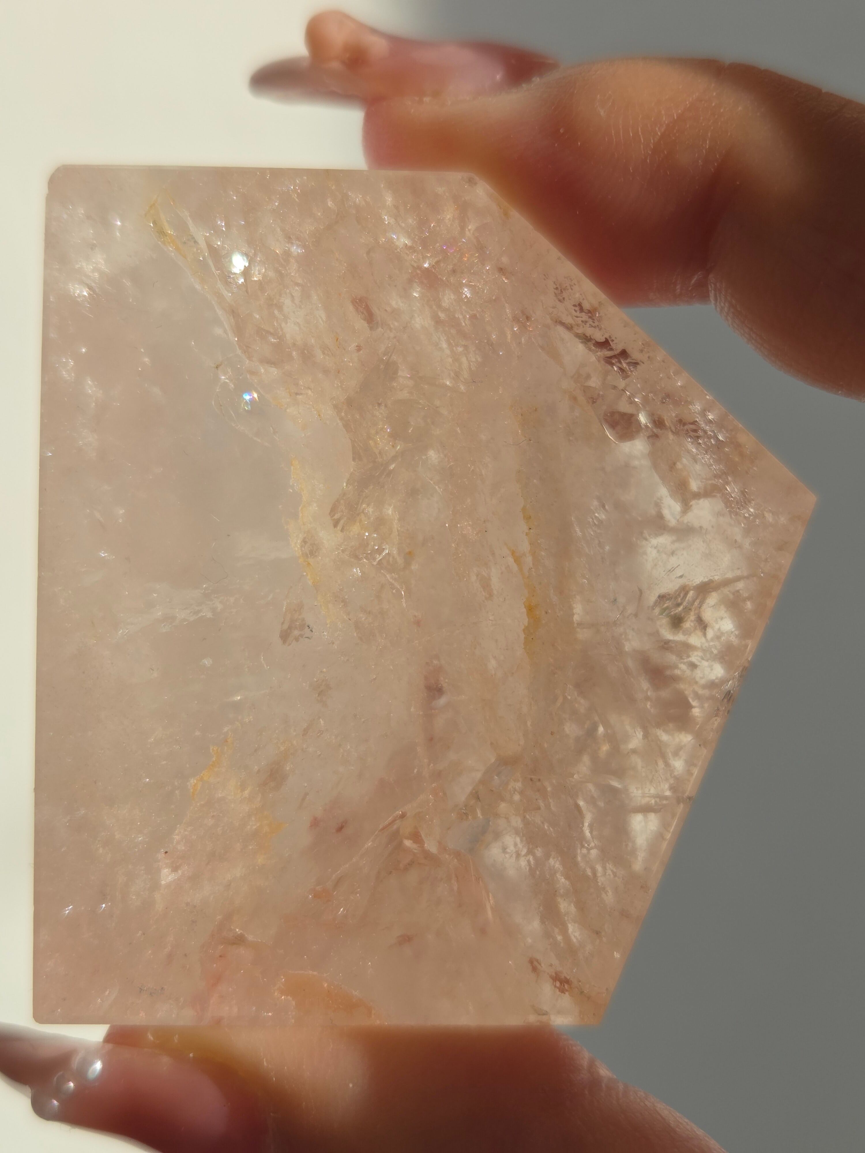ほんのりピンクに色づいた、虹が煌めくフリーフォームです。