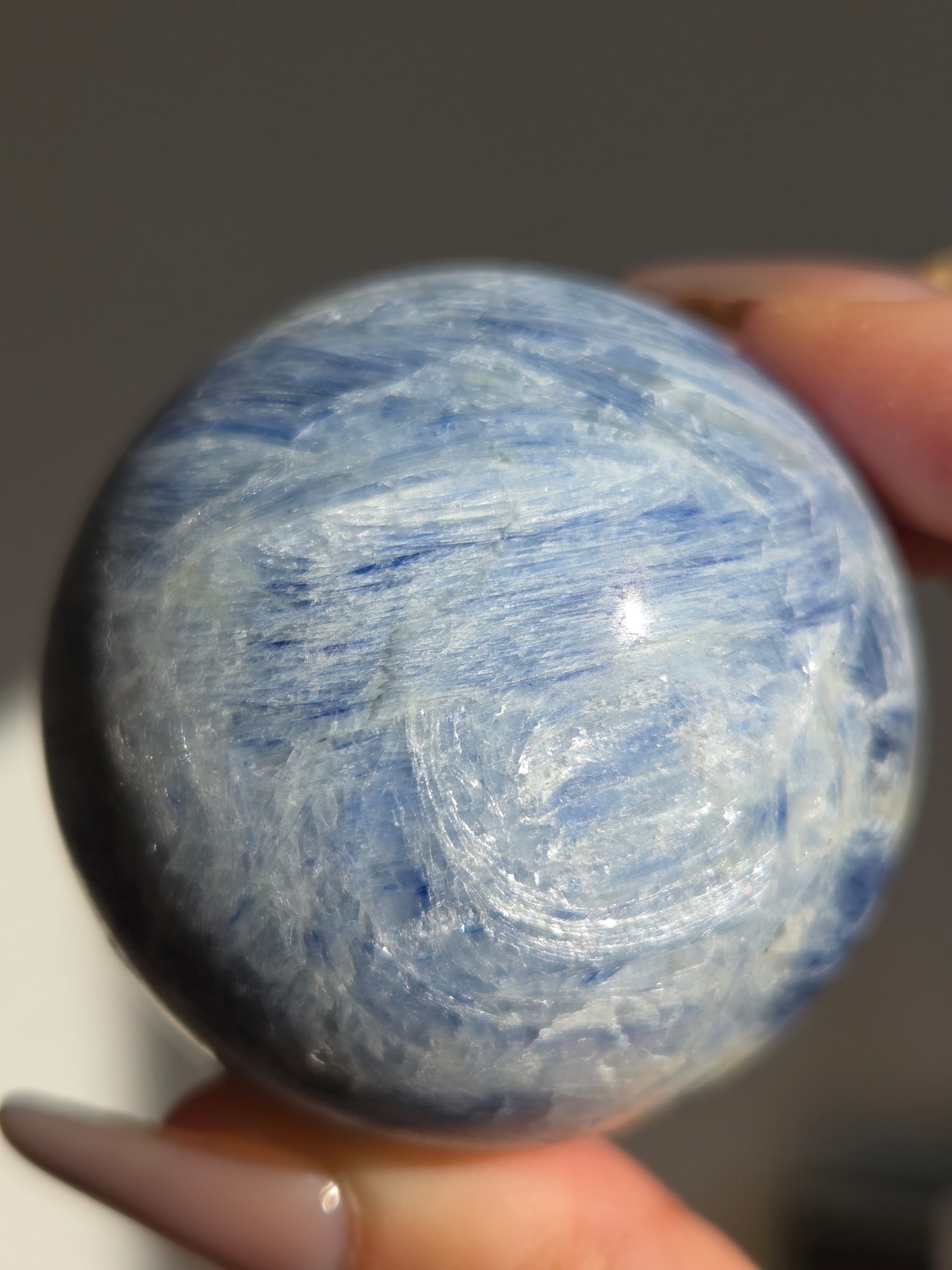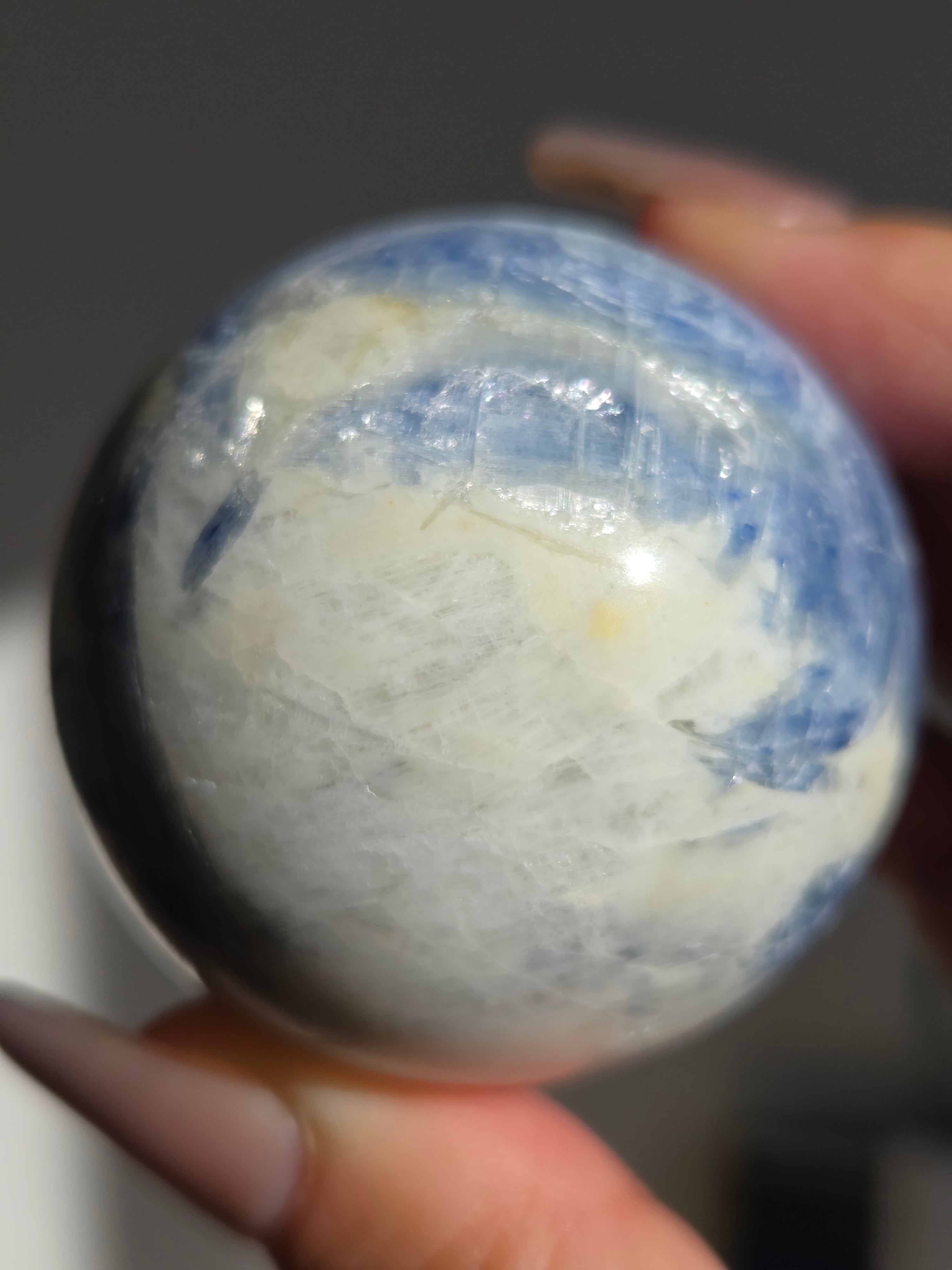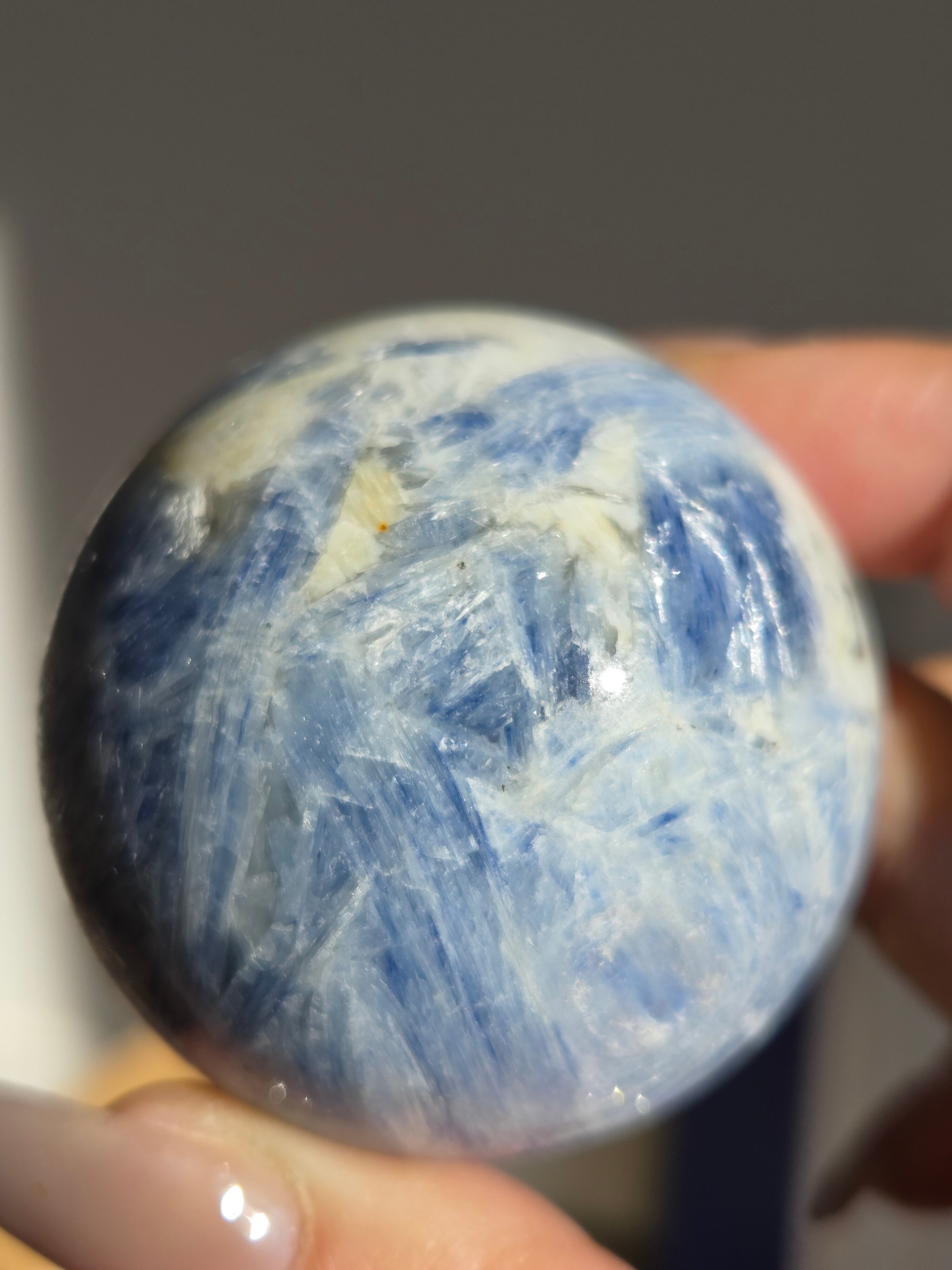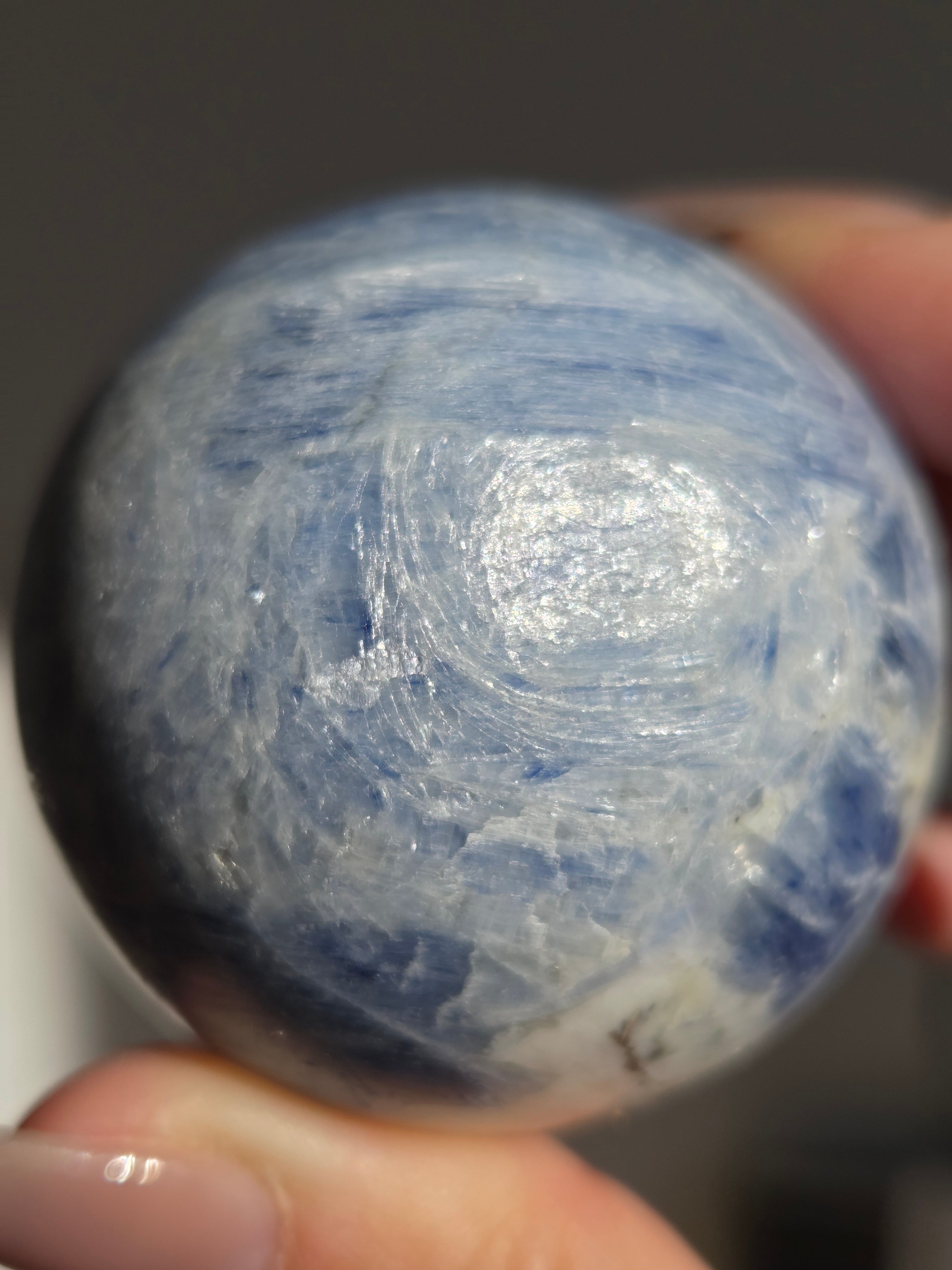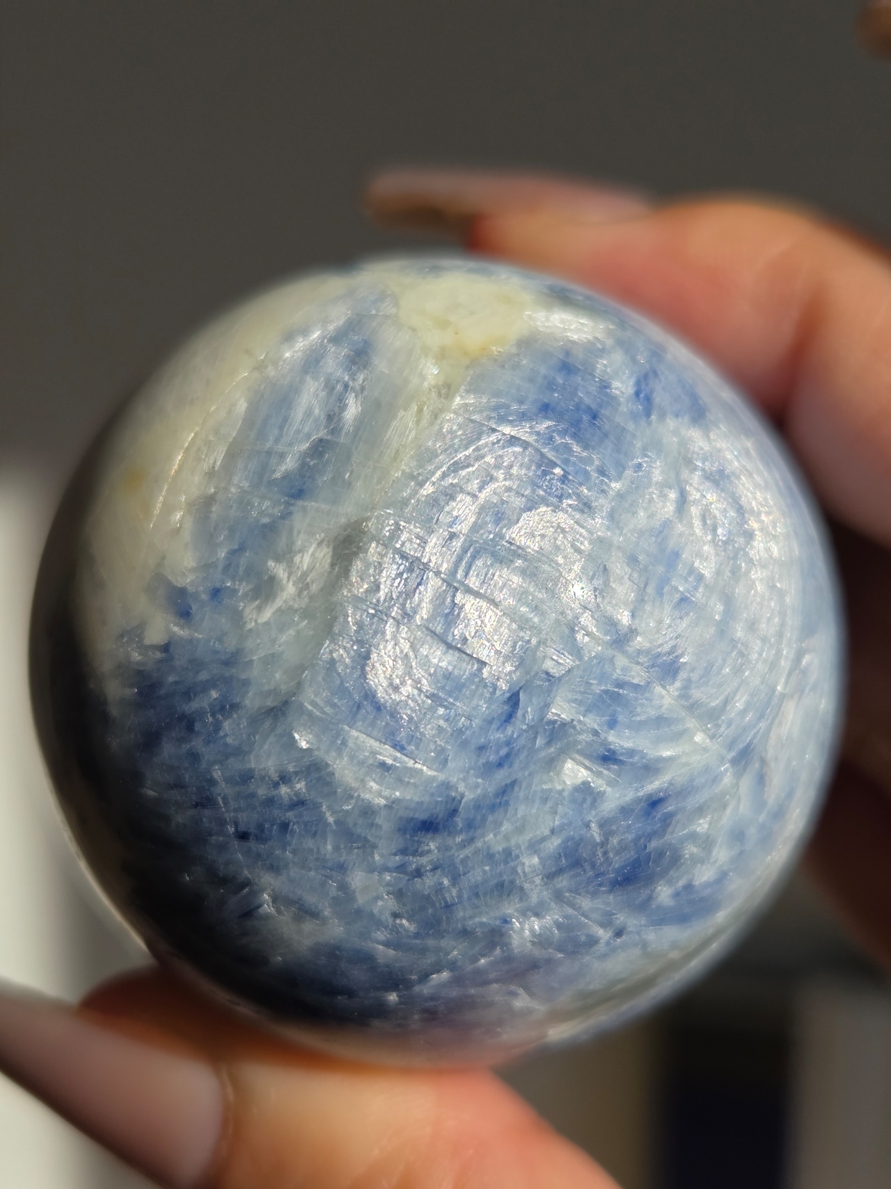 美しいブルーカイヤナイトから見える煌めきかわ素敵なスフィアです。