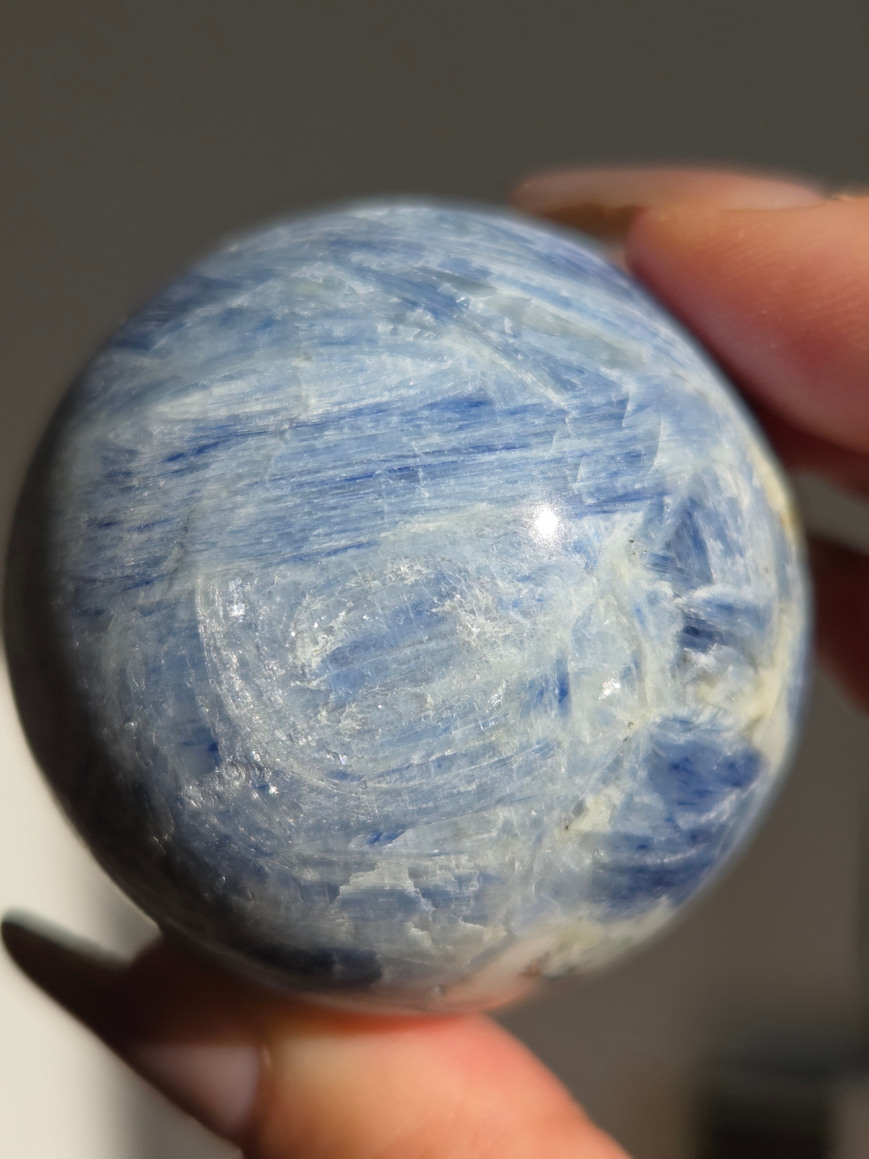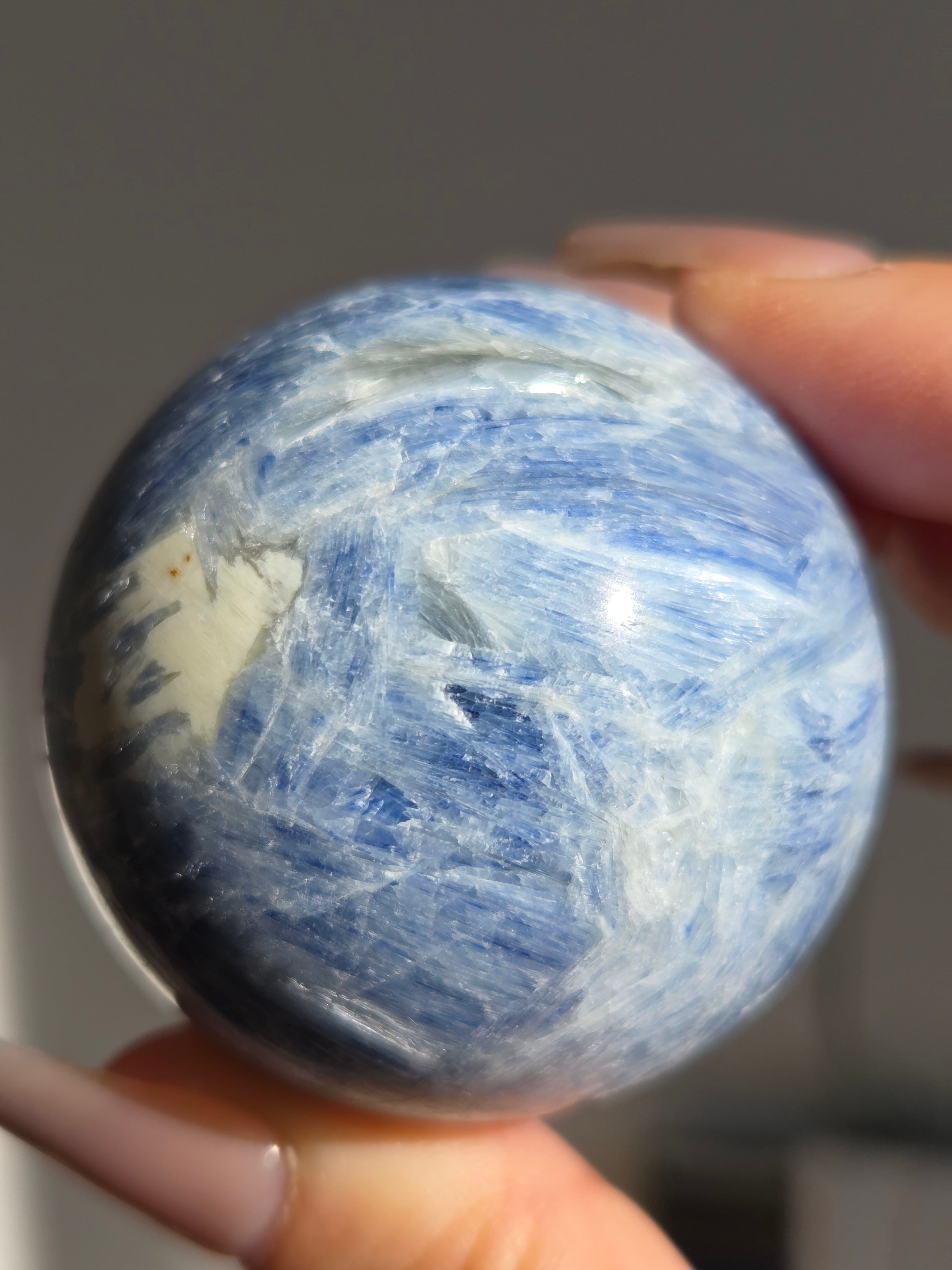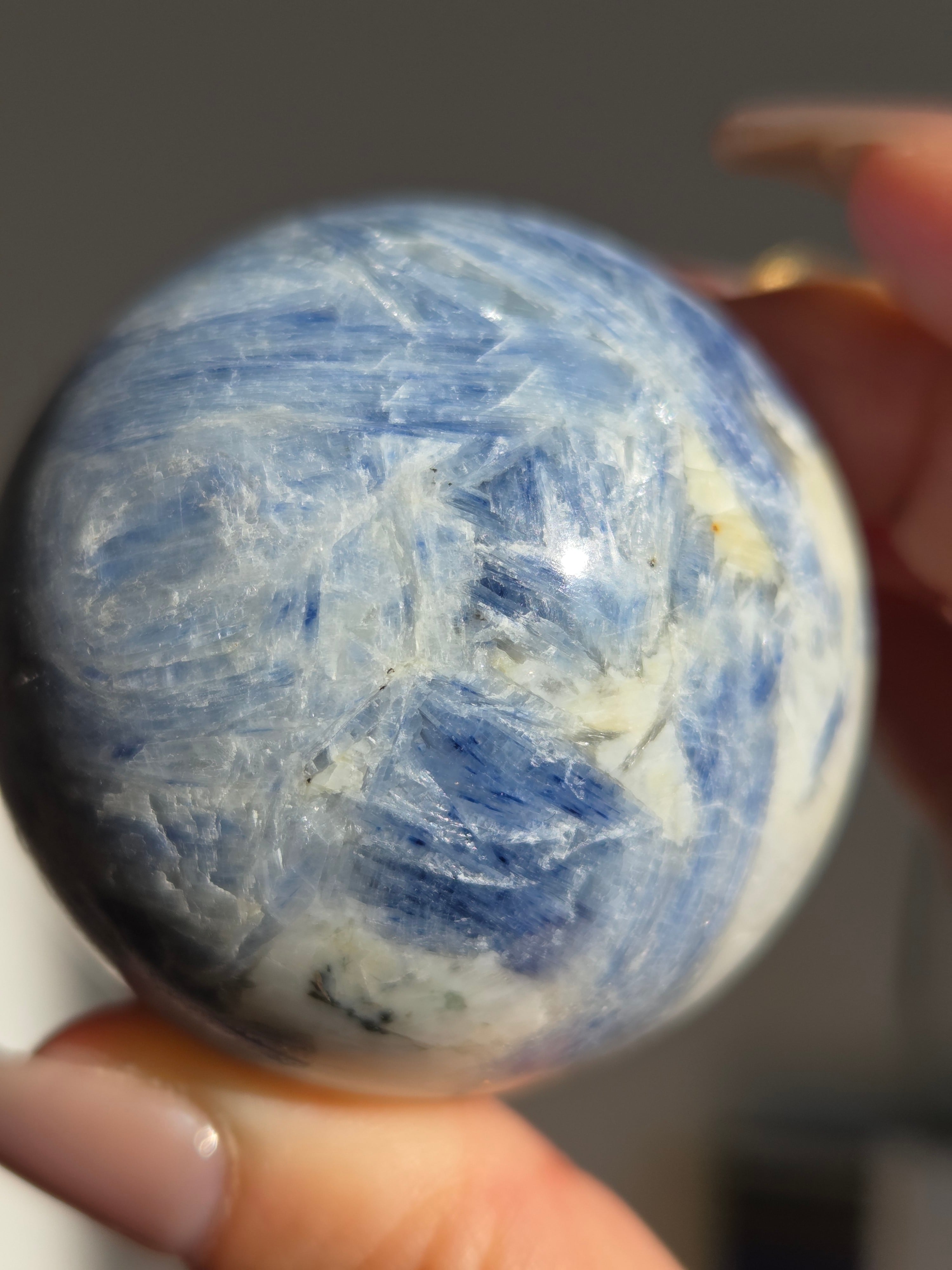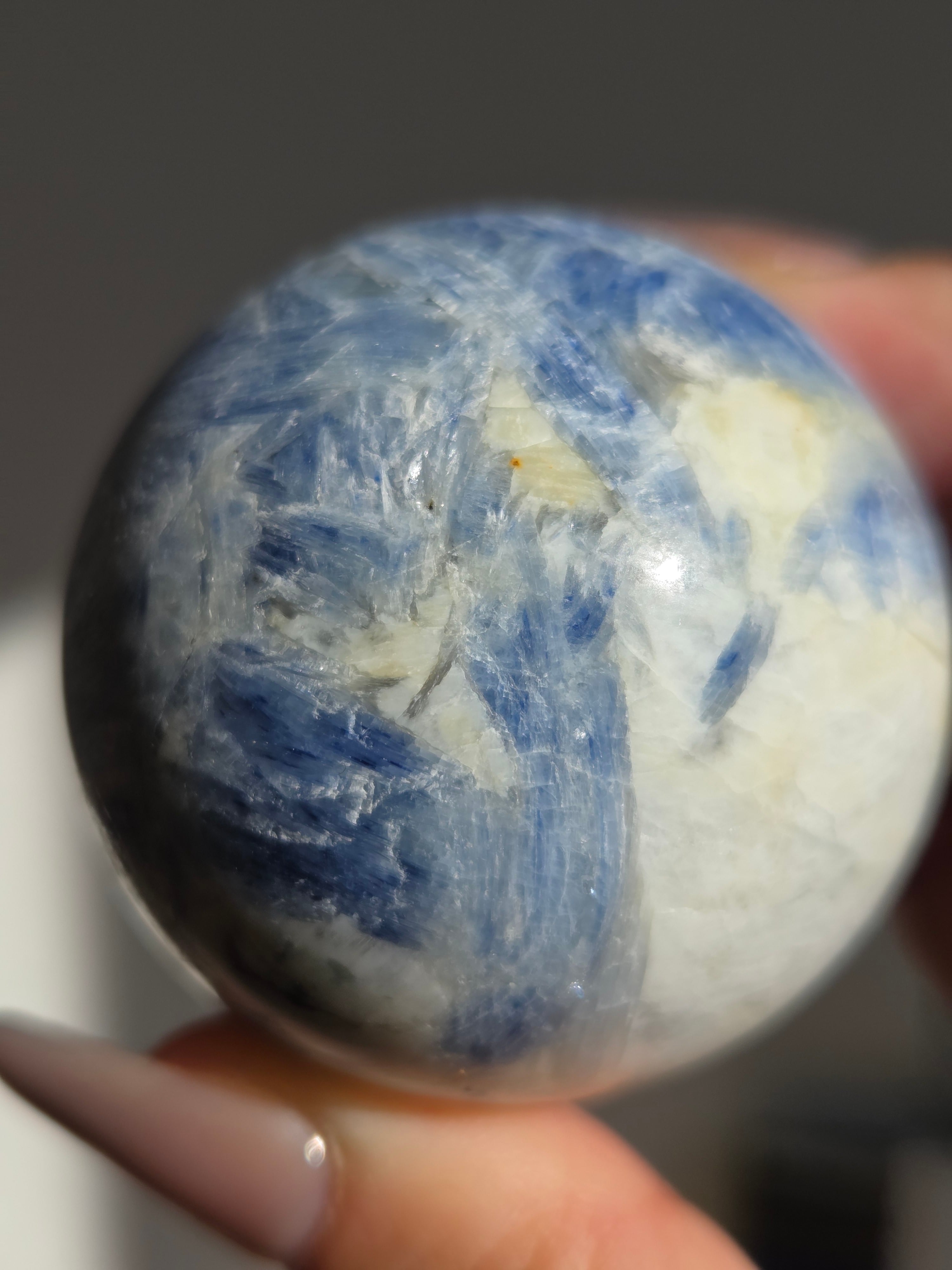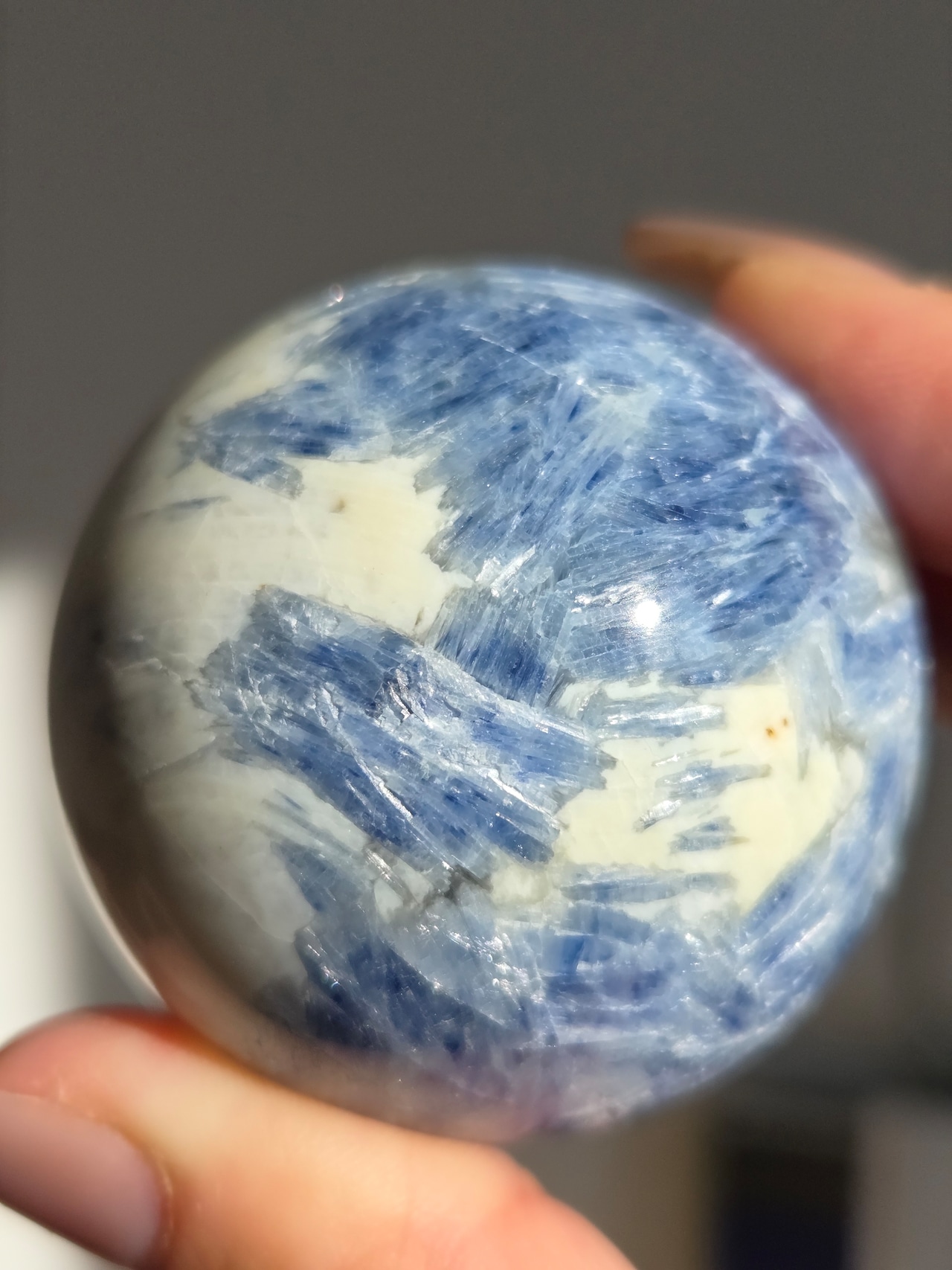 美しいブルーカイヤナイトから見える煌めきかわ素敵なスフィアです。