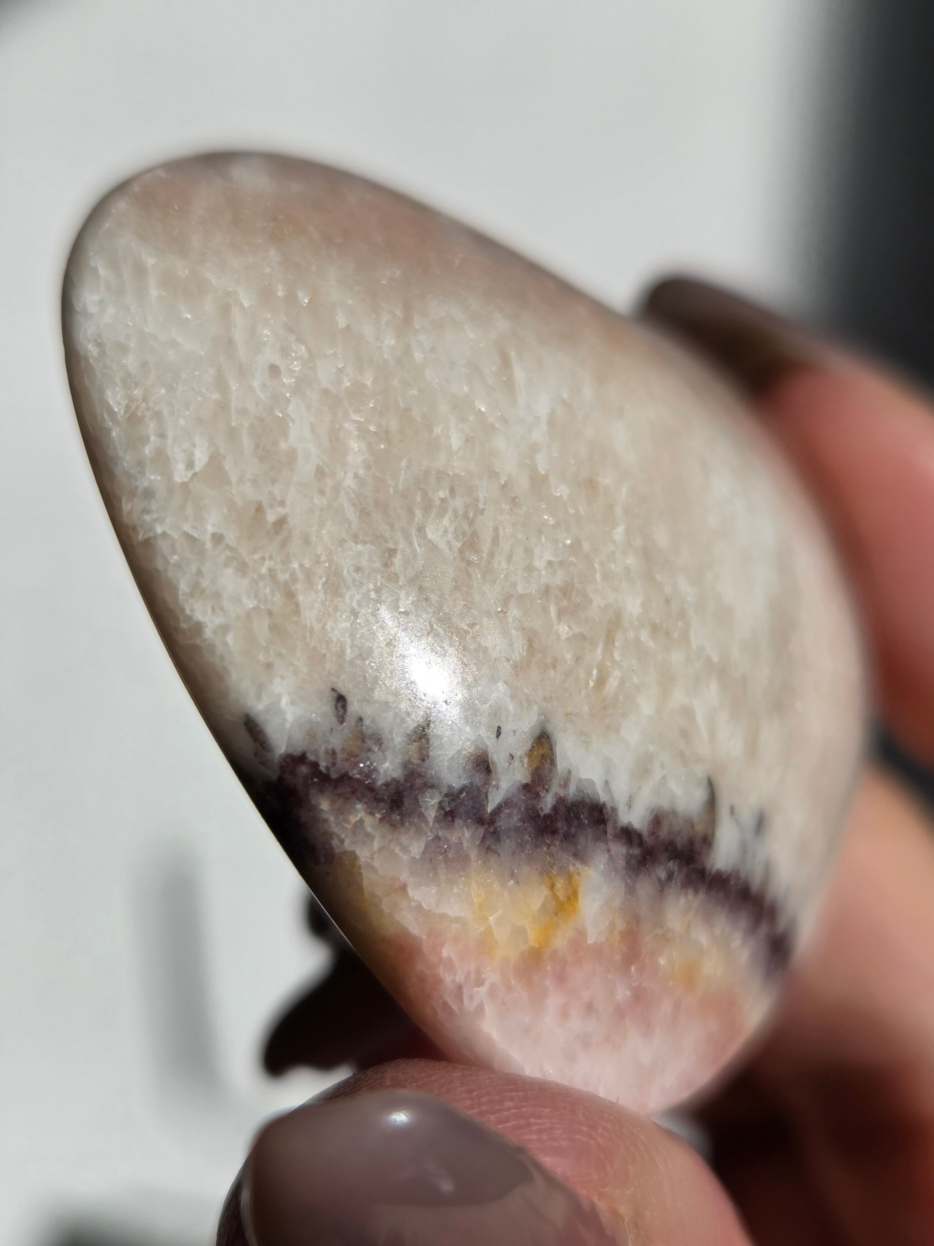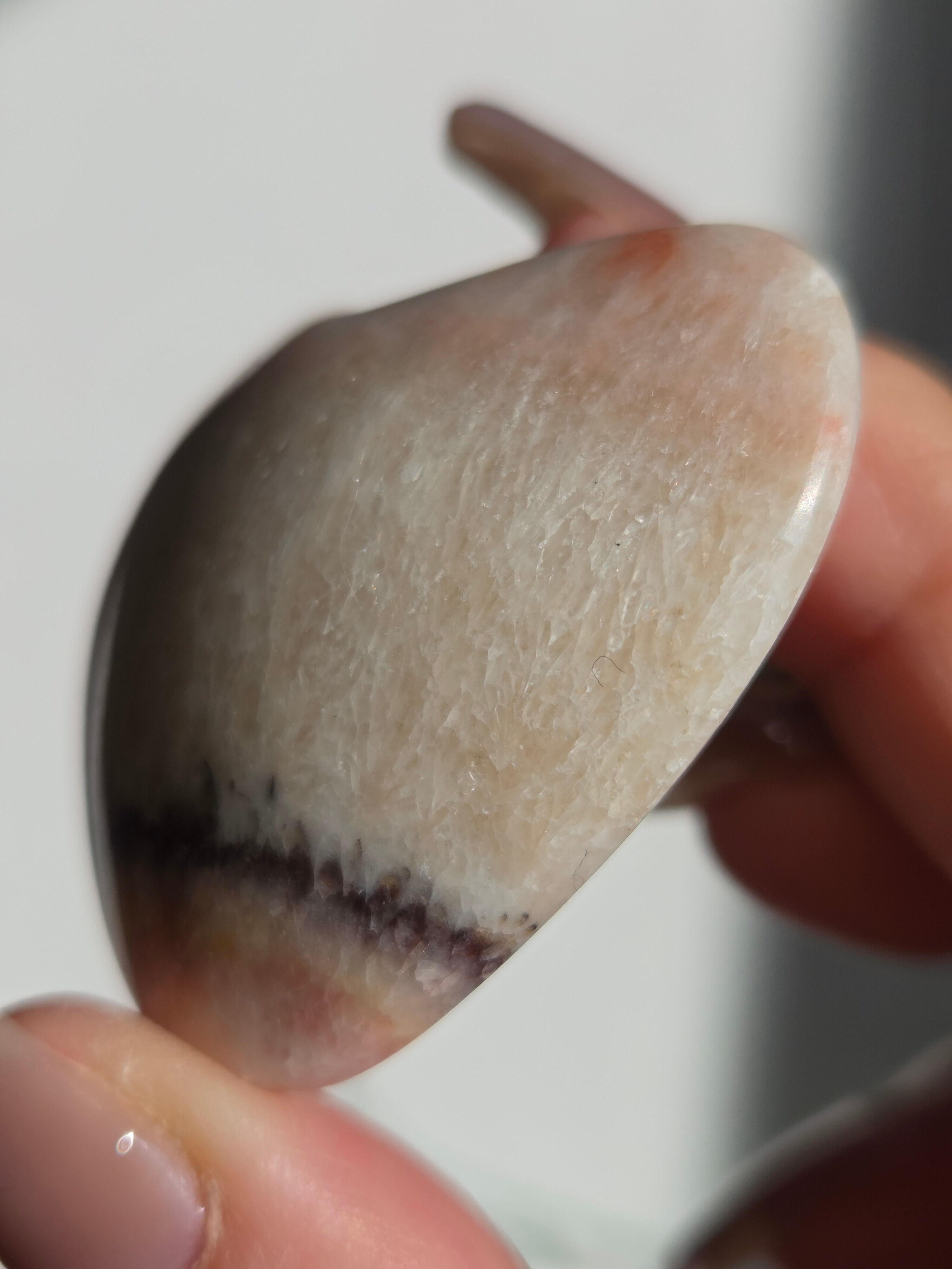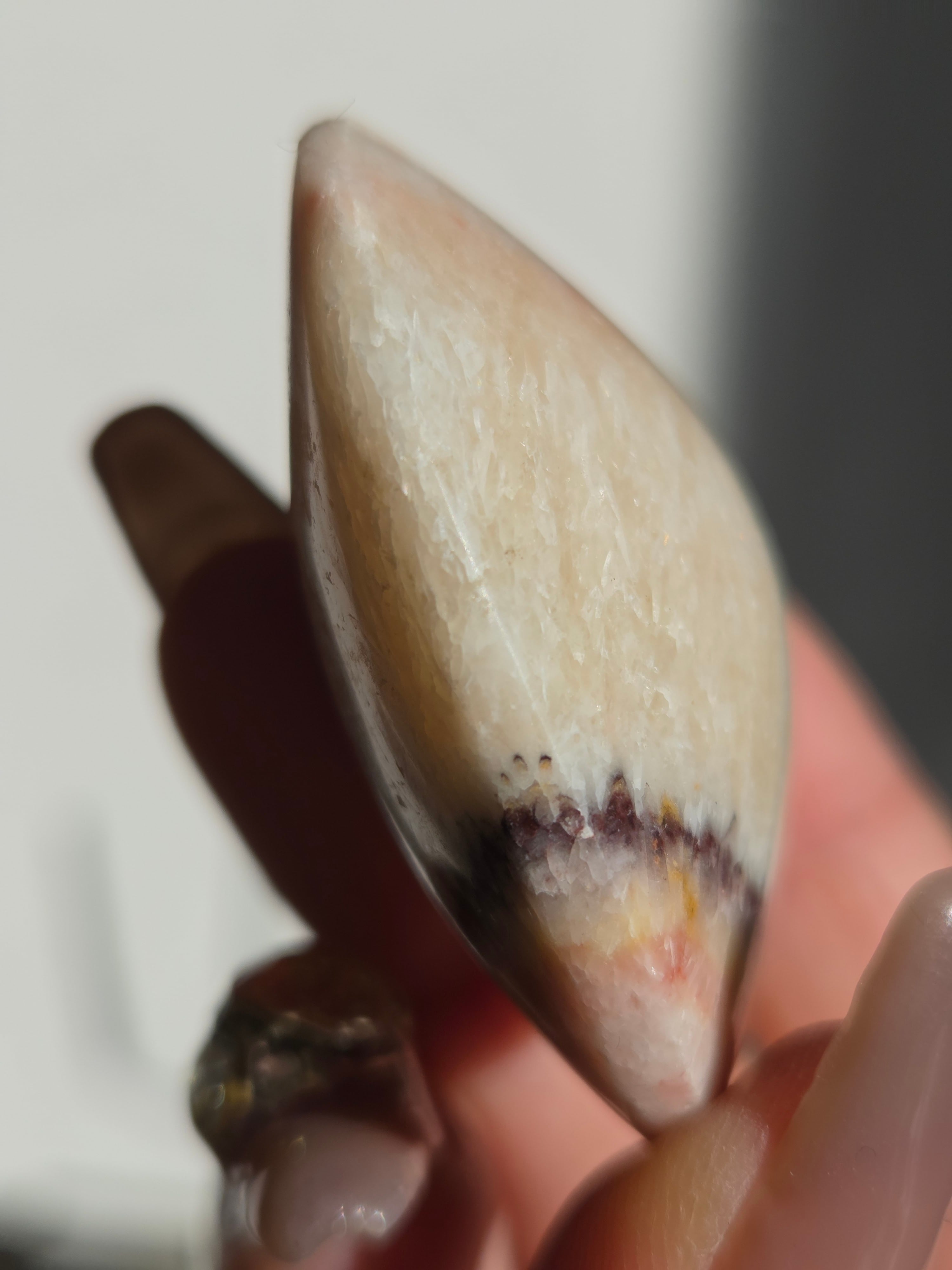 ポークストーンとは、カルサイトの一種で、赤色の部分は酸化鉄の影響で色づいており、アラゴナイト化していると言われてます。