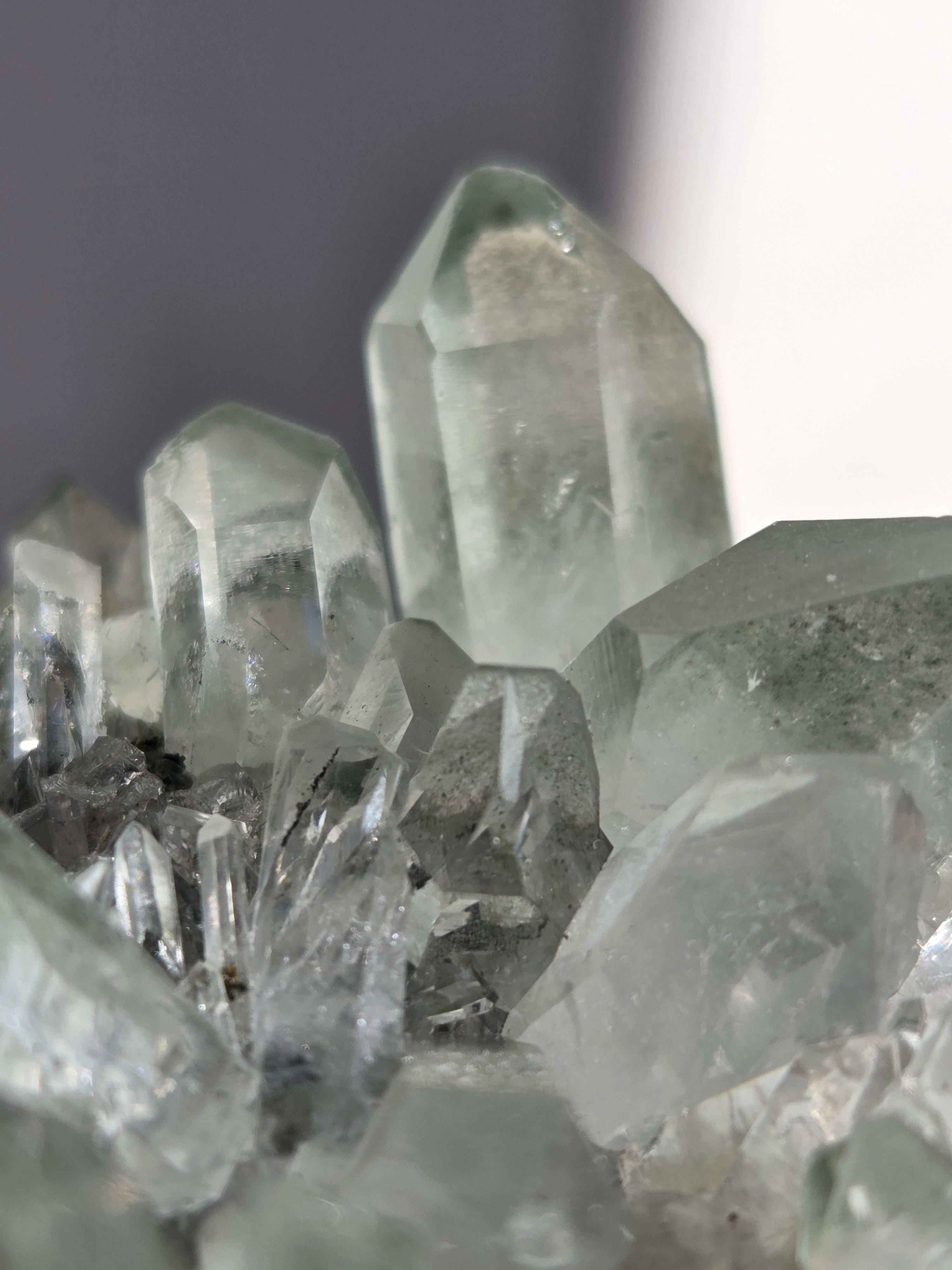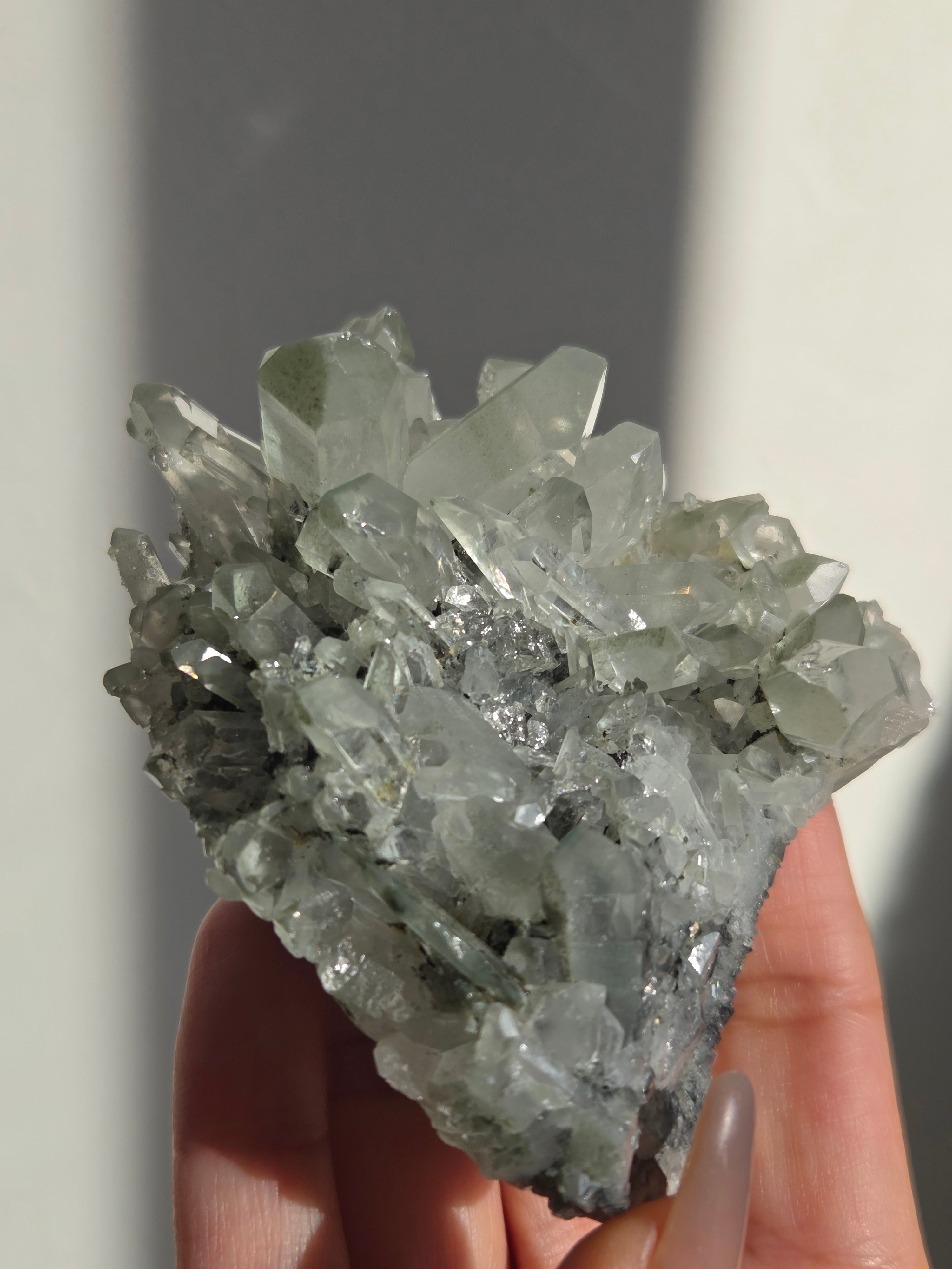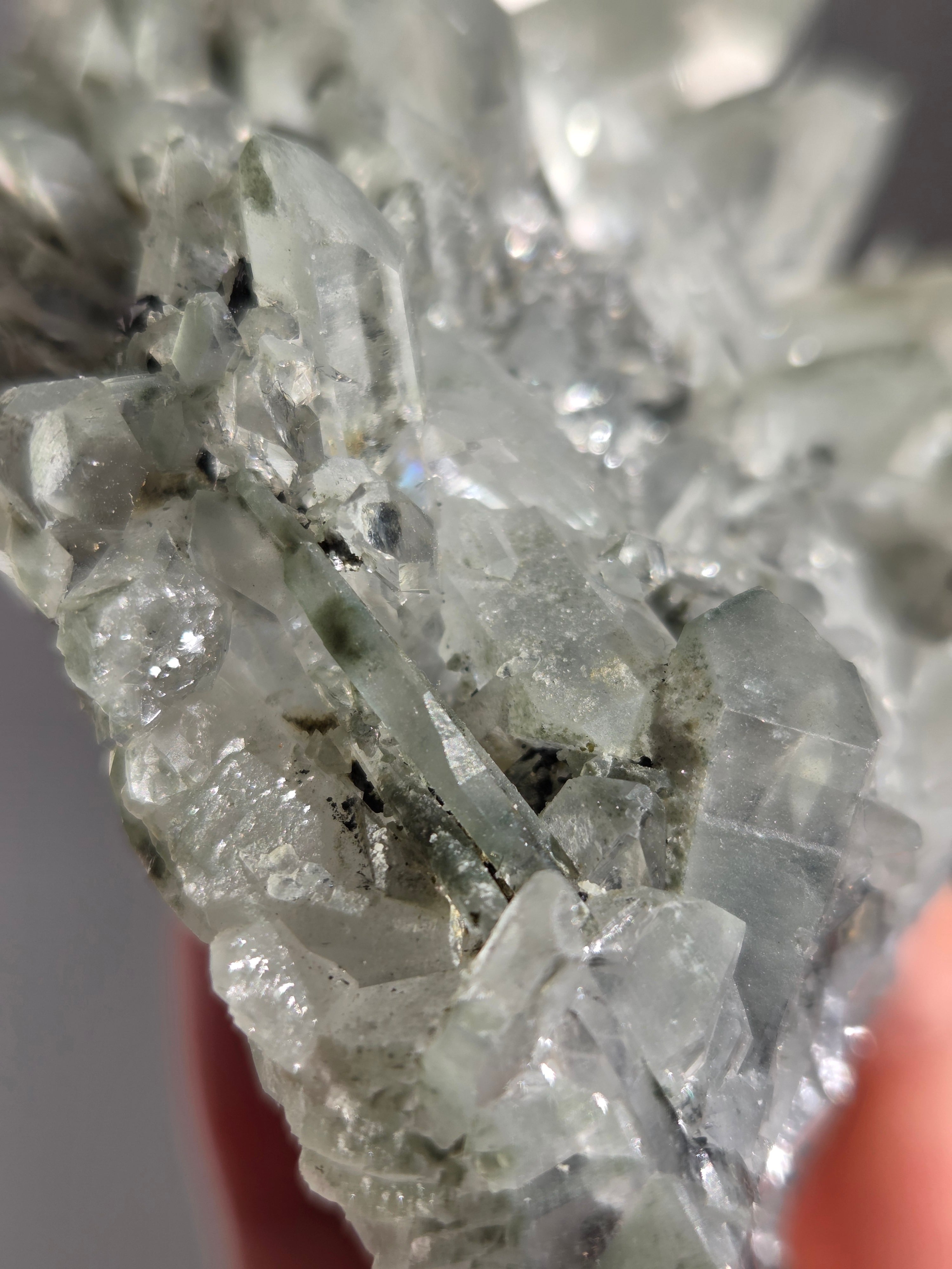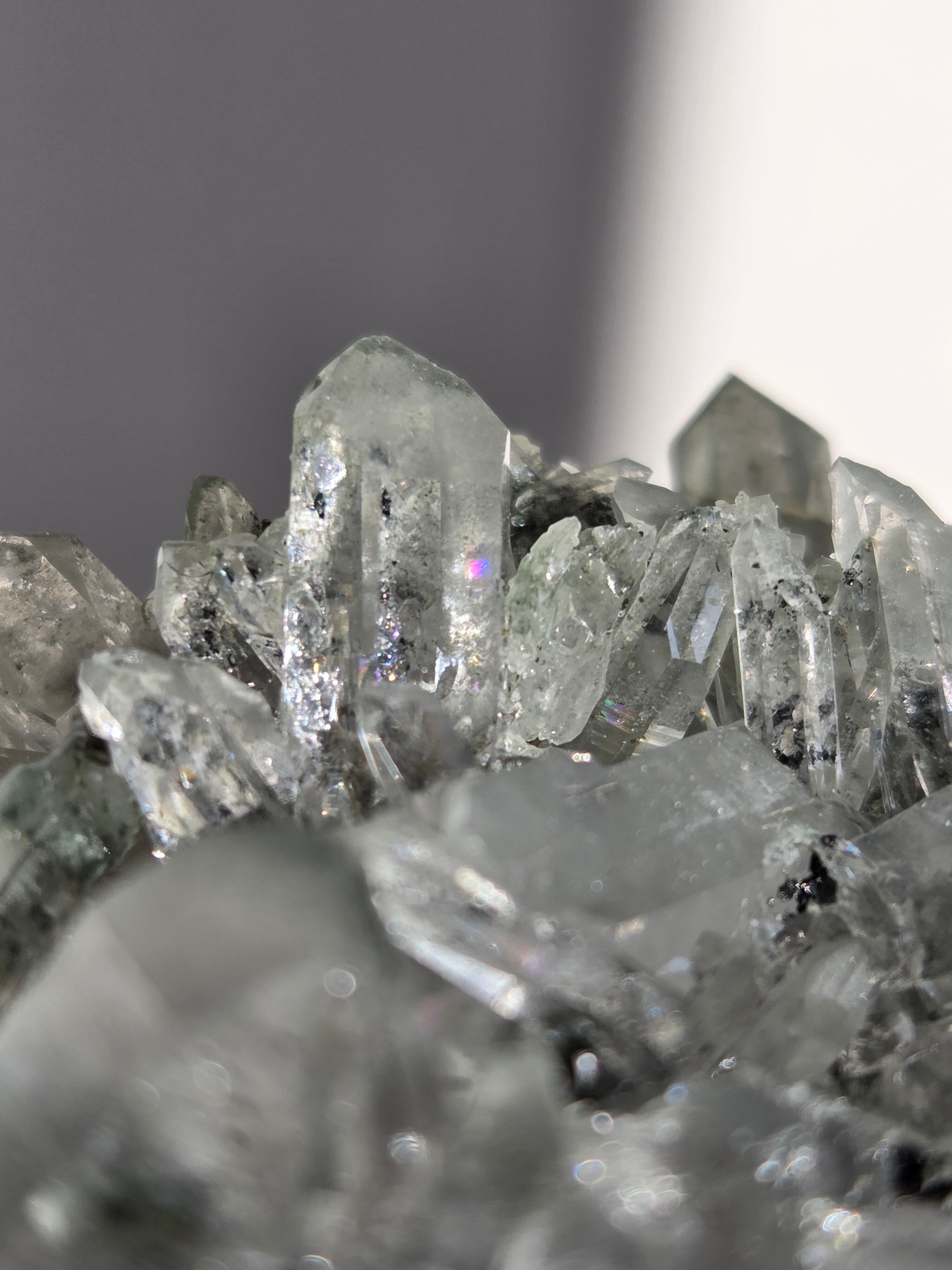 クローライト(Chlorite)は「緑泥石(りょくでいせき)」というケイ酸塩鉱物のグループ名で、水晶などに含まれる緑色のインクルージョン(内包物)としてよく知られ、パワーストーンの世界では強力な浄化作用と癒しの効果を持つとされ、心身のバランス調整やネガティブな感情の浄化、生命力回復などに良いとされています。