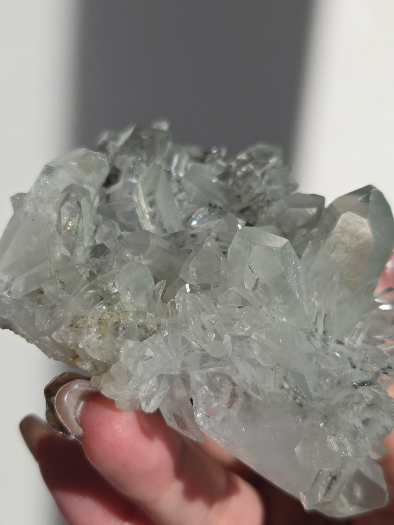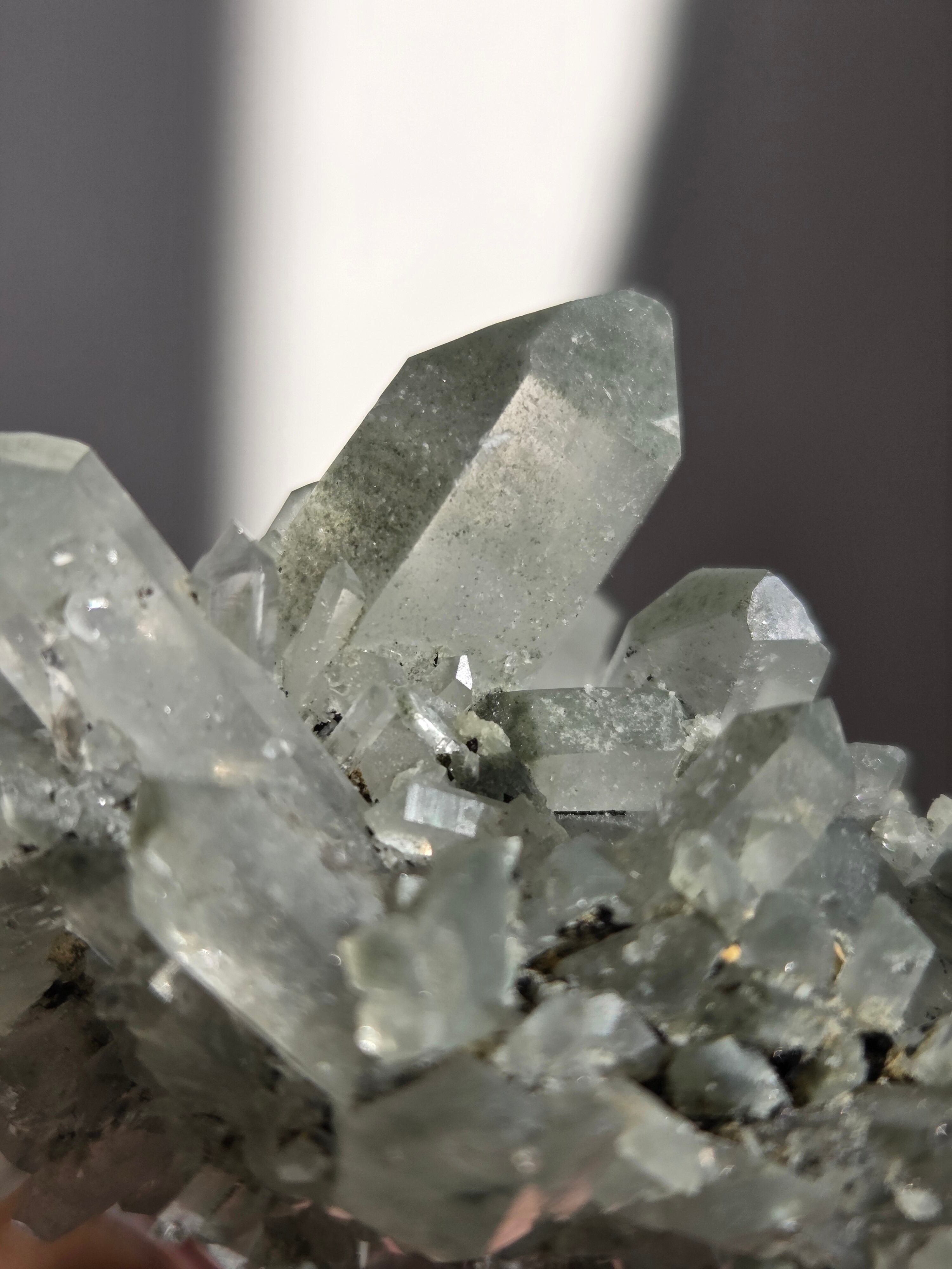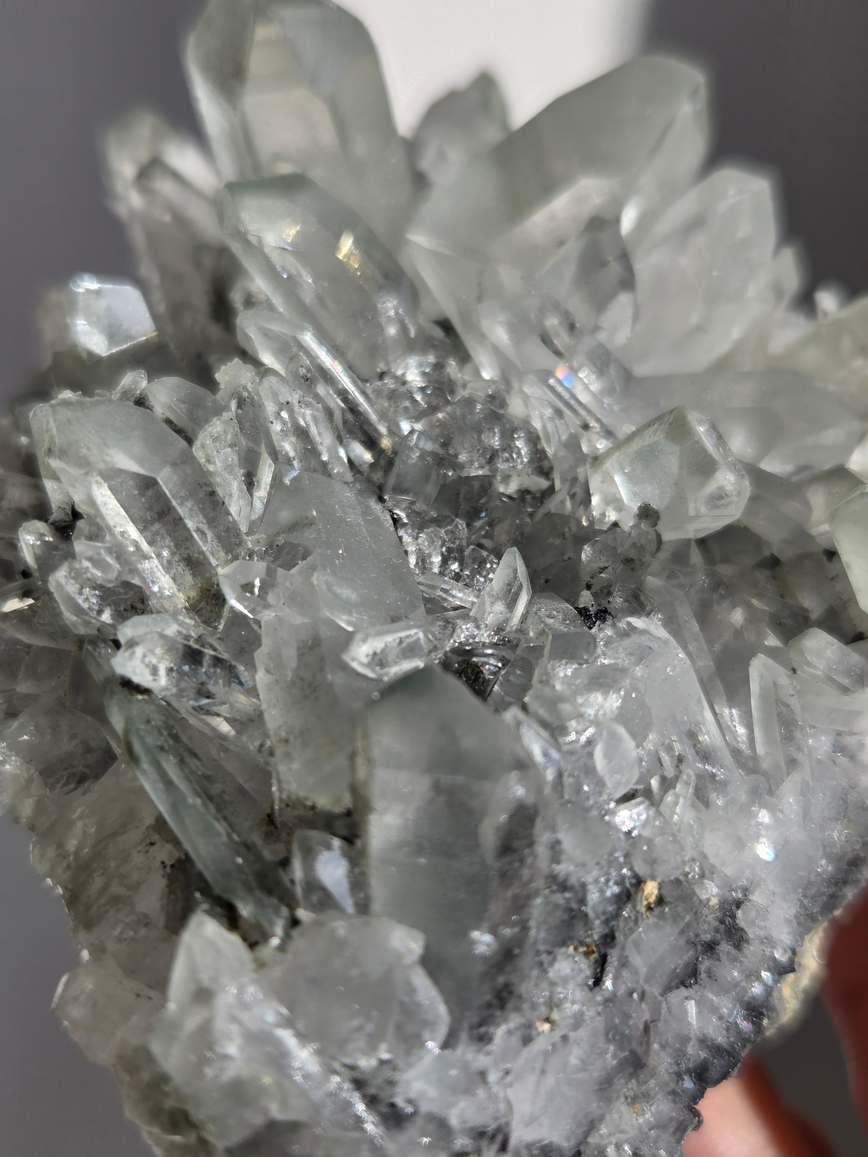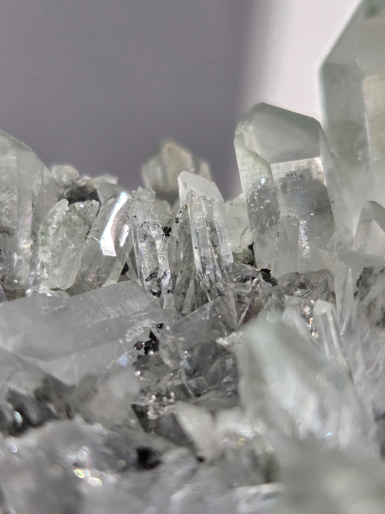 クローライト(Chlorite)は「緑泥石(りょくでいせき)」というケイ酸塩鉱物のグループ名で、水晶などに含まれる緑色のインクルージョン(内包物)としてよく知られ、パワーストーンの世界では強力な浄化作用と癒しの効果を持つとされ、心身のバランス調整やネガティブな感情の浄化、生命力回復などに良いとされています。