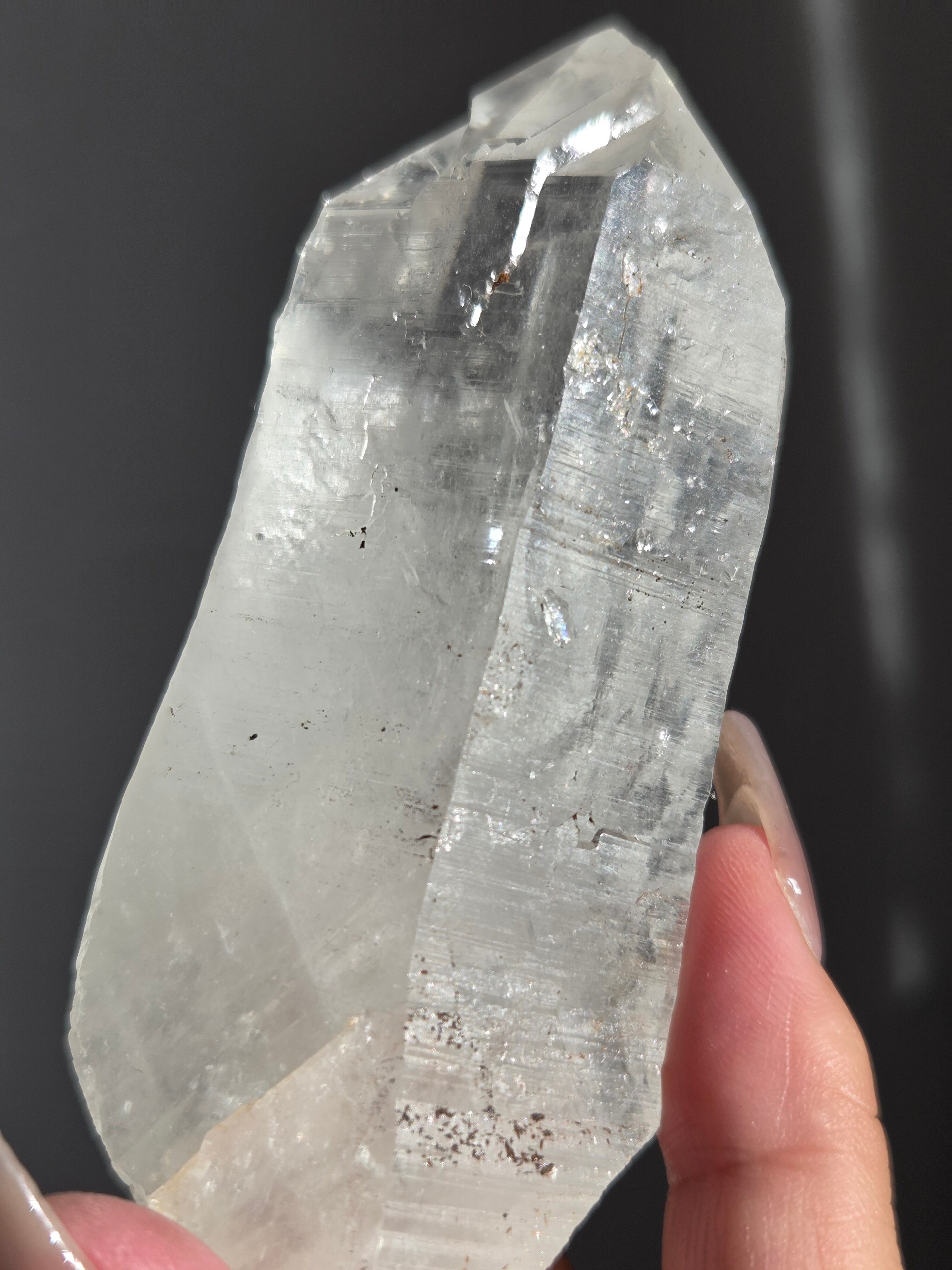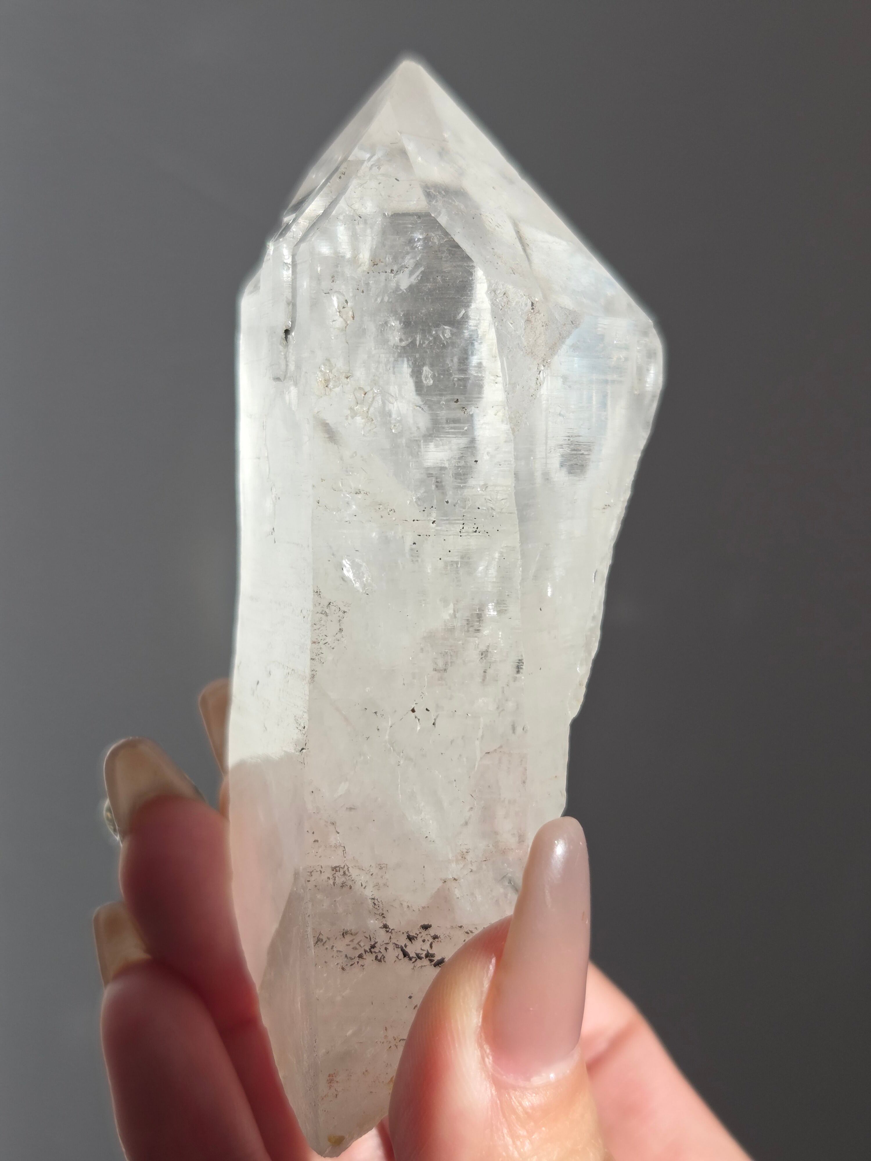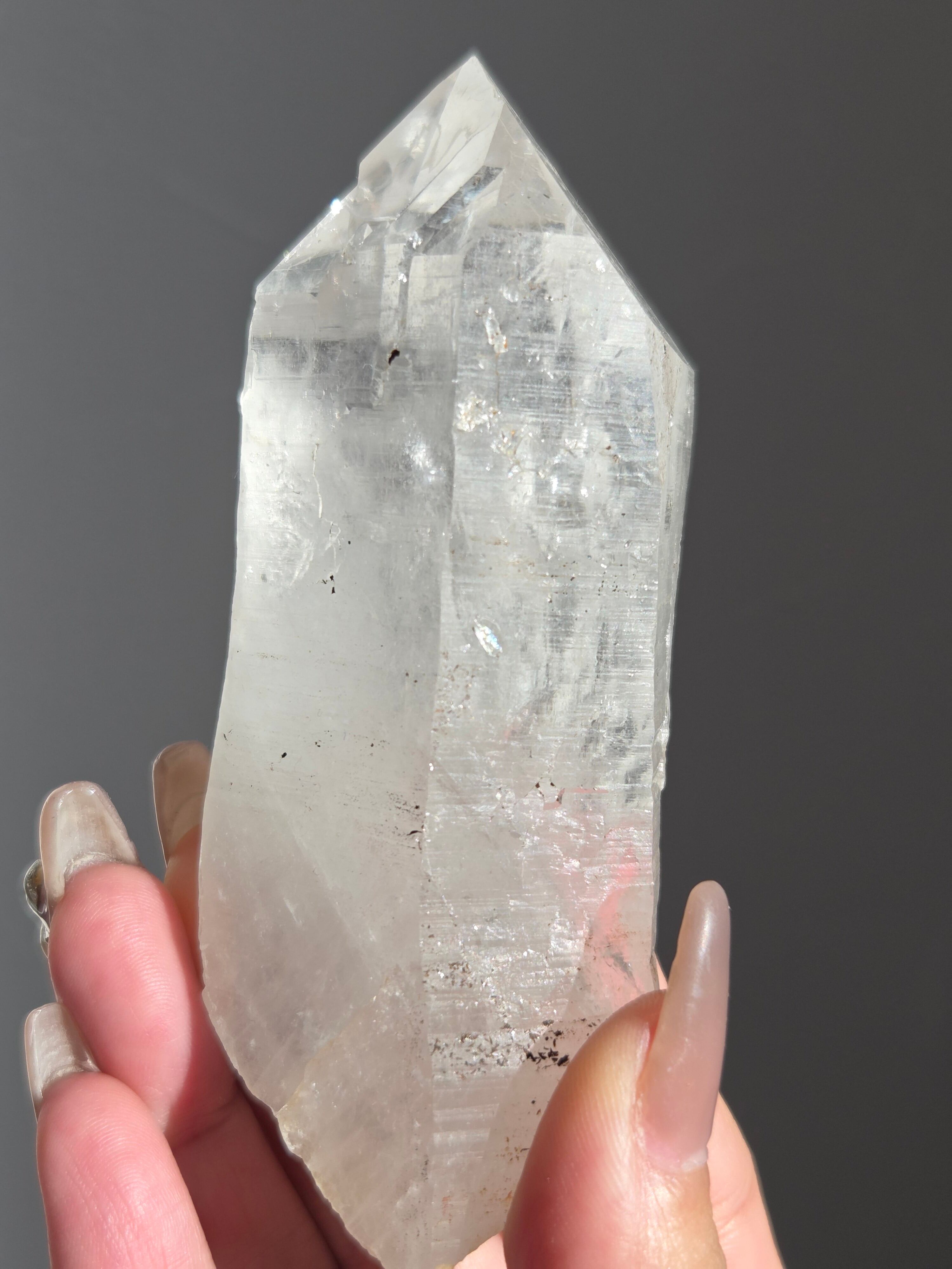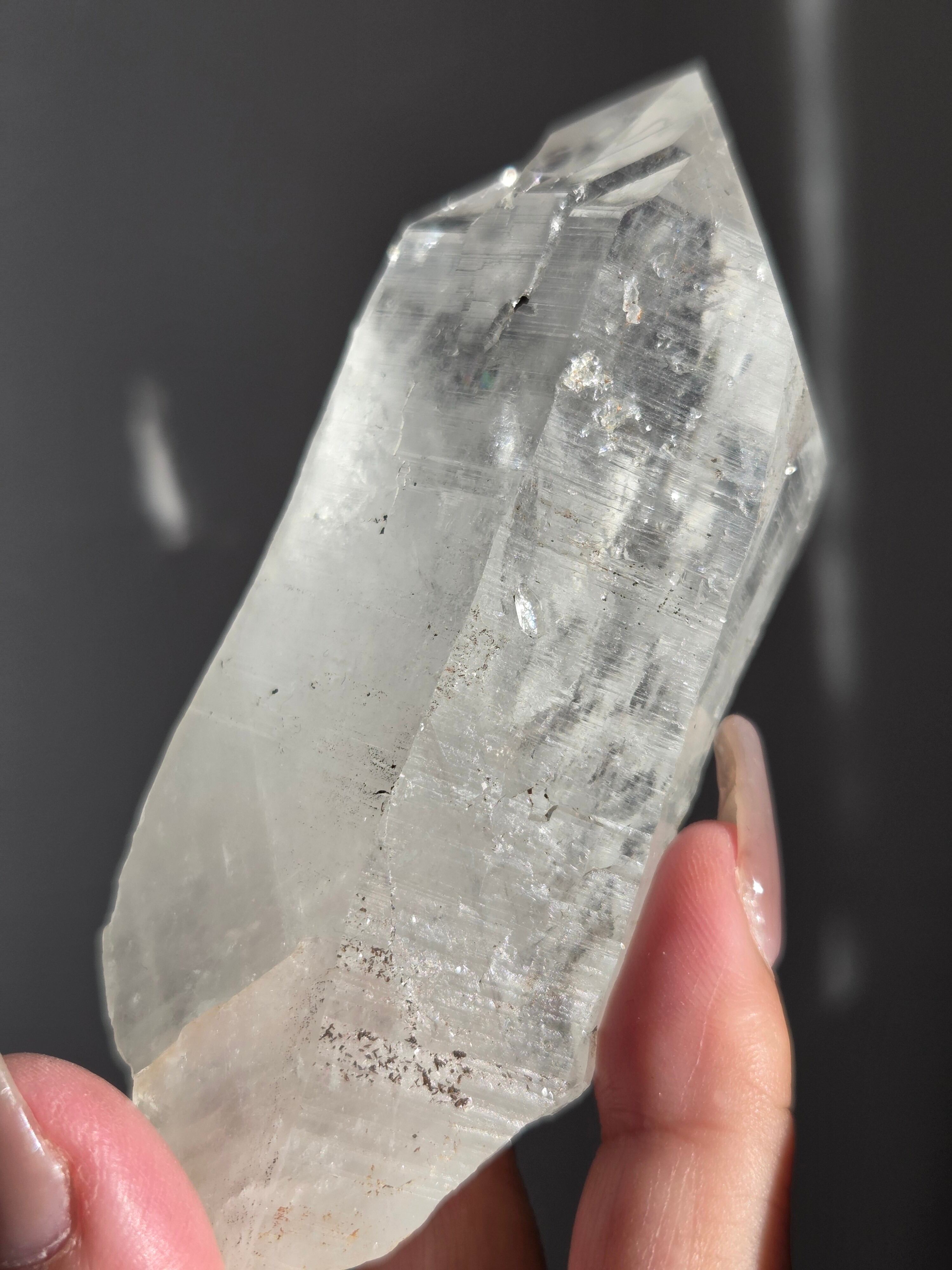 ヒマラヤ水晶サインジ産は、インド北部ヒマラヤ山脈のサインジ渓谷で採掘される、高い透明度と美しい輝きが特徴の水晶で、マニカラン産などと並び人気があり、希少性も高いとされています。澄んだ雪解け水のような美しさや、クローライト(緑泥石)やヘマタイト(赤鉄鉱)を含むものもあり、内部のレインボーも魅力で、強力な浄化力を持つと信じられています。