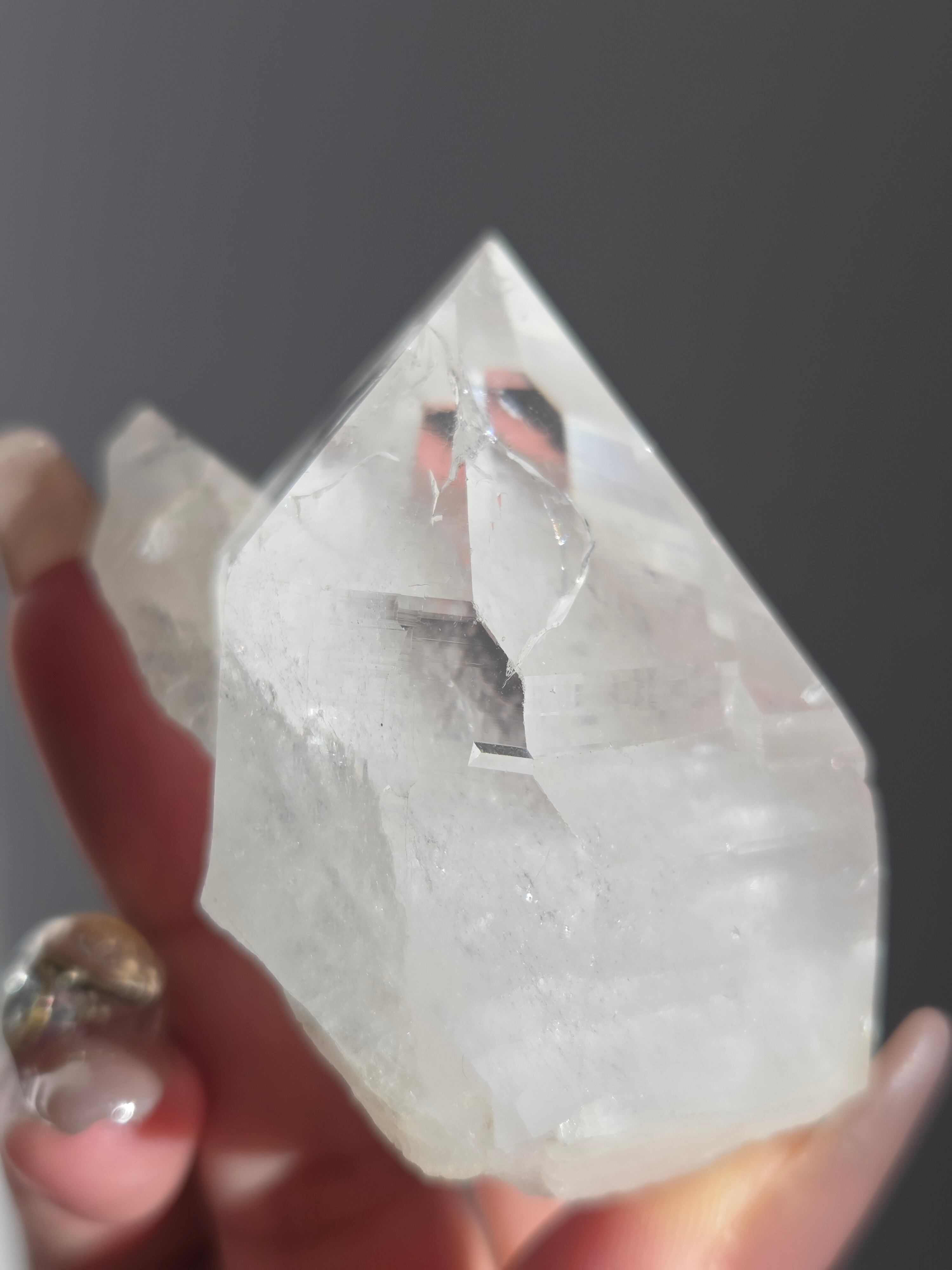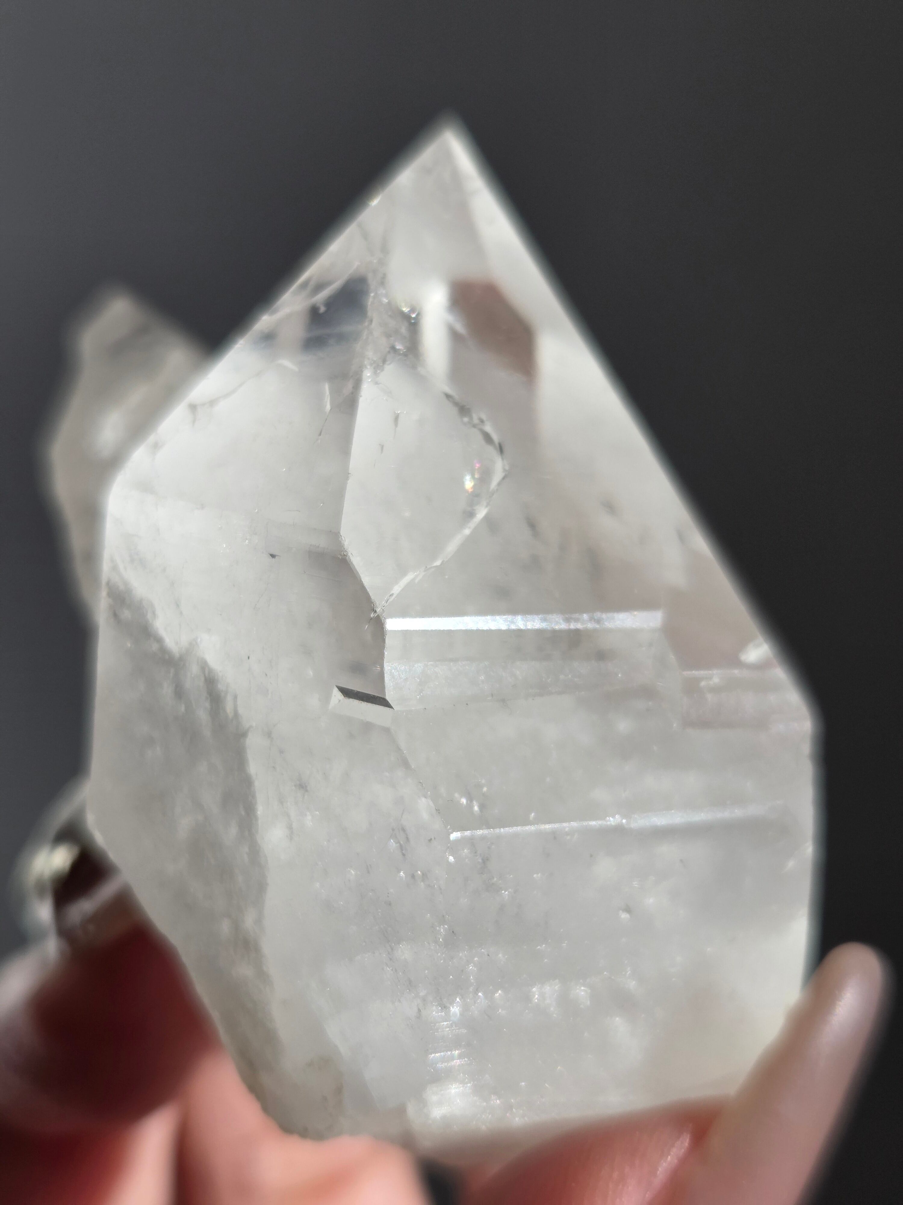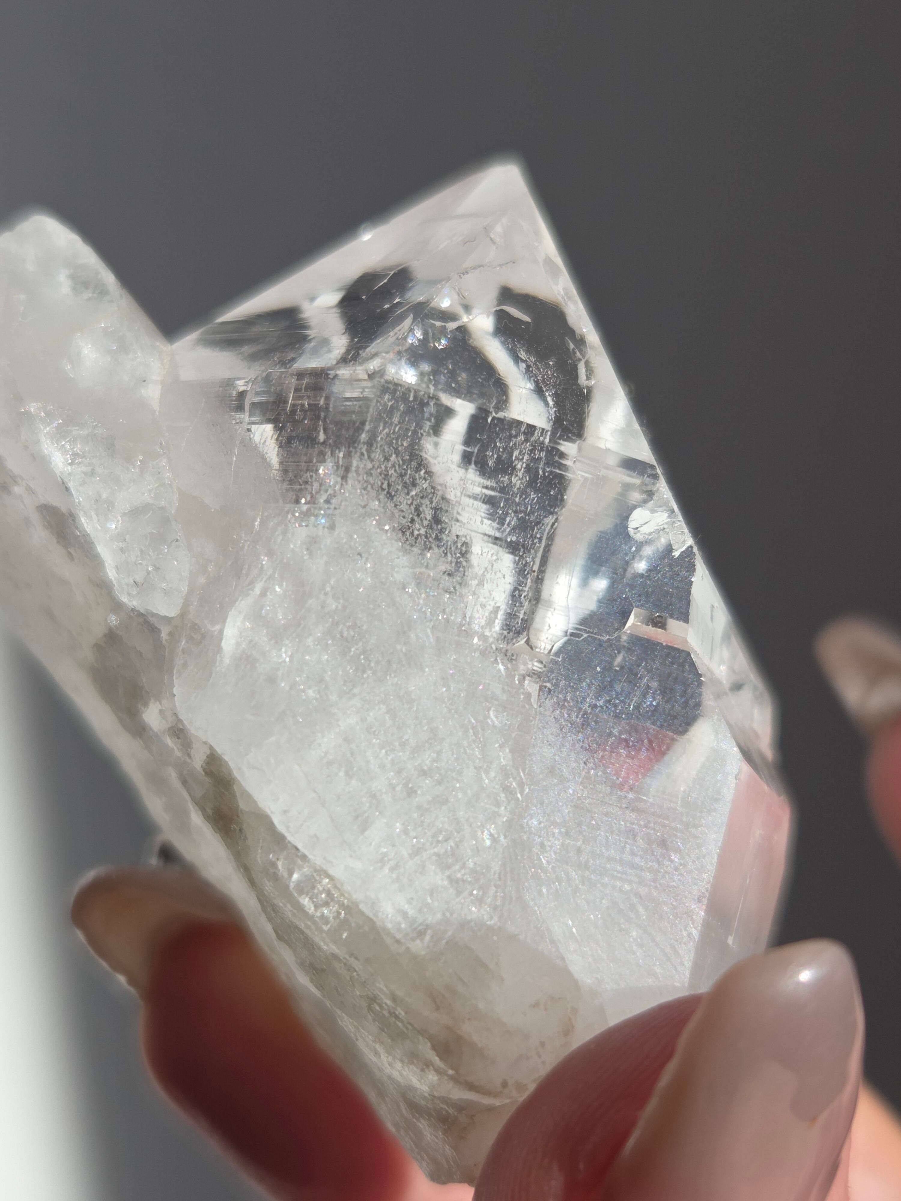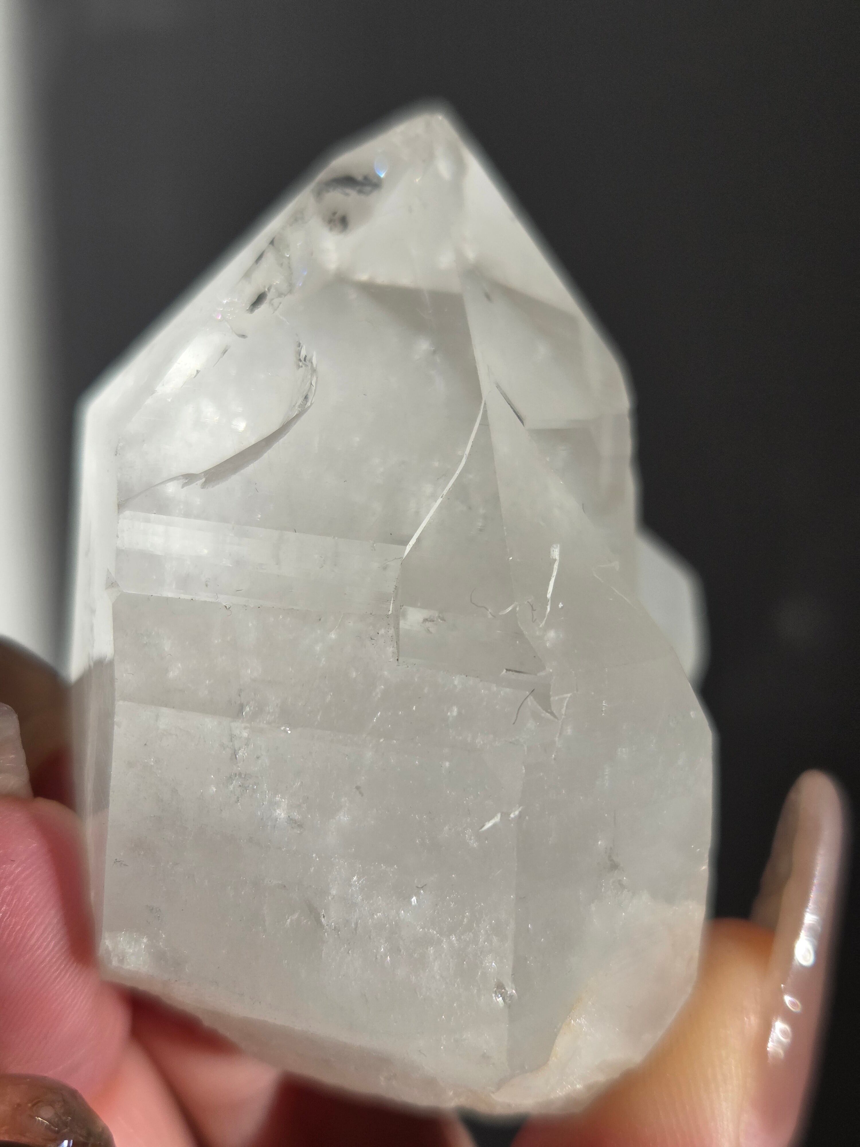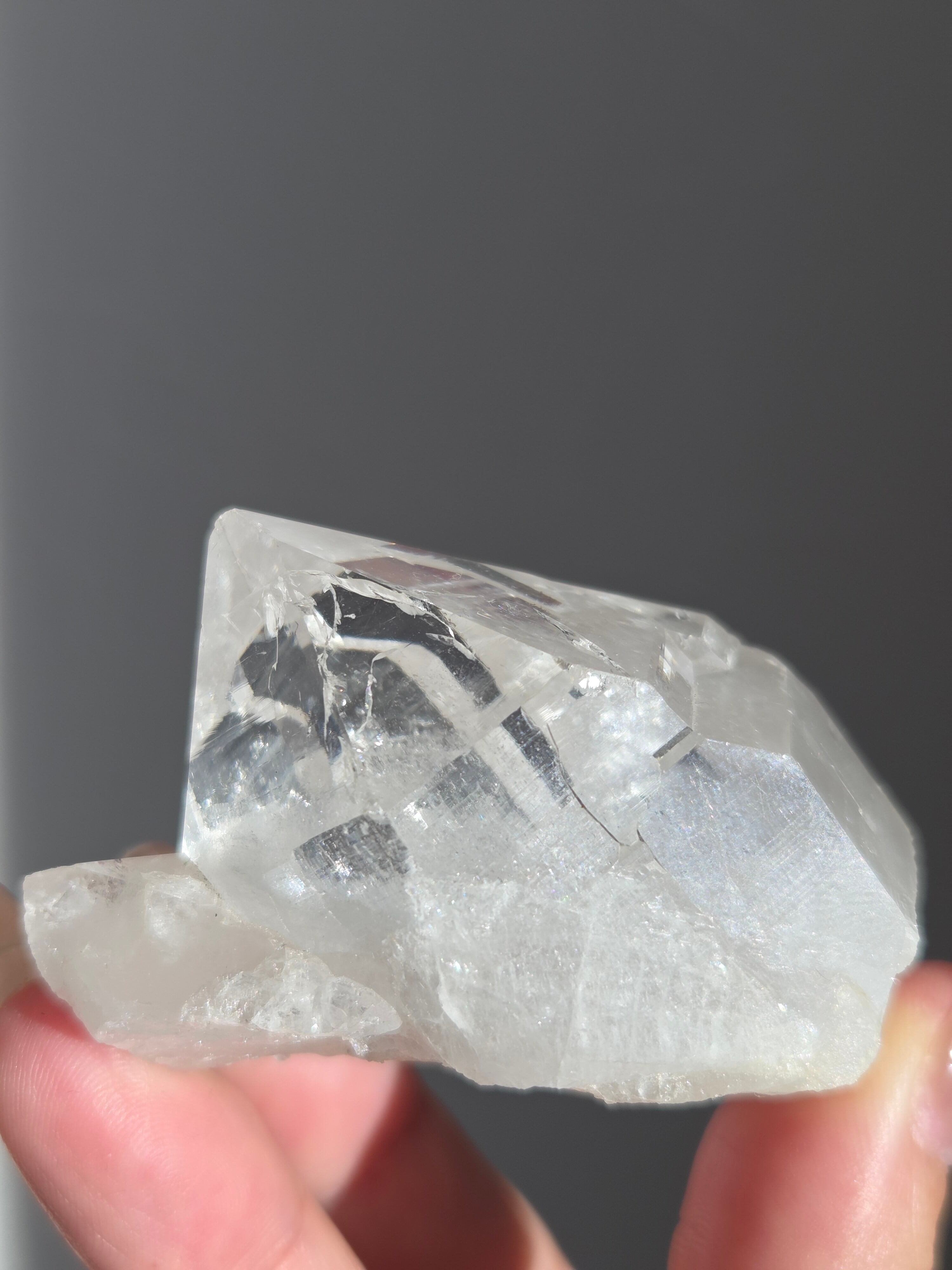 うっすらピンクに色付いた子で、どうしても写真ではその美しさを映し出せなかった子です。自信を持って実物は写真より何倍も美しいと豪語できるピースです。下からフワーっと湧き上がるような煌めきがあり、上部の透明感も美しいです。