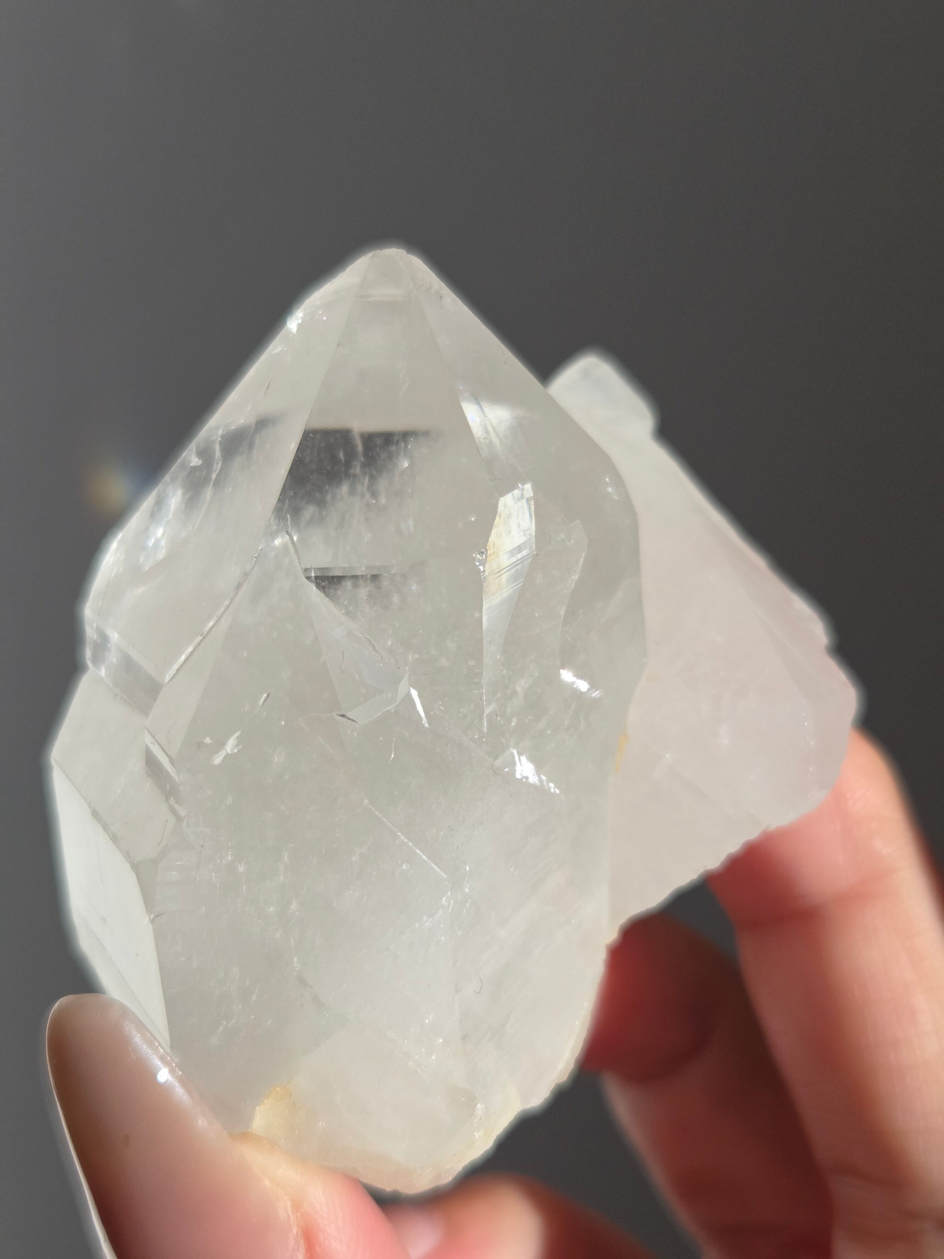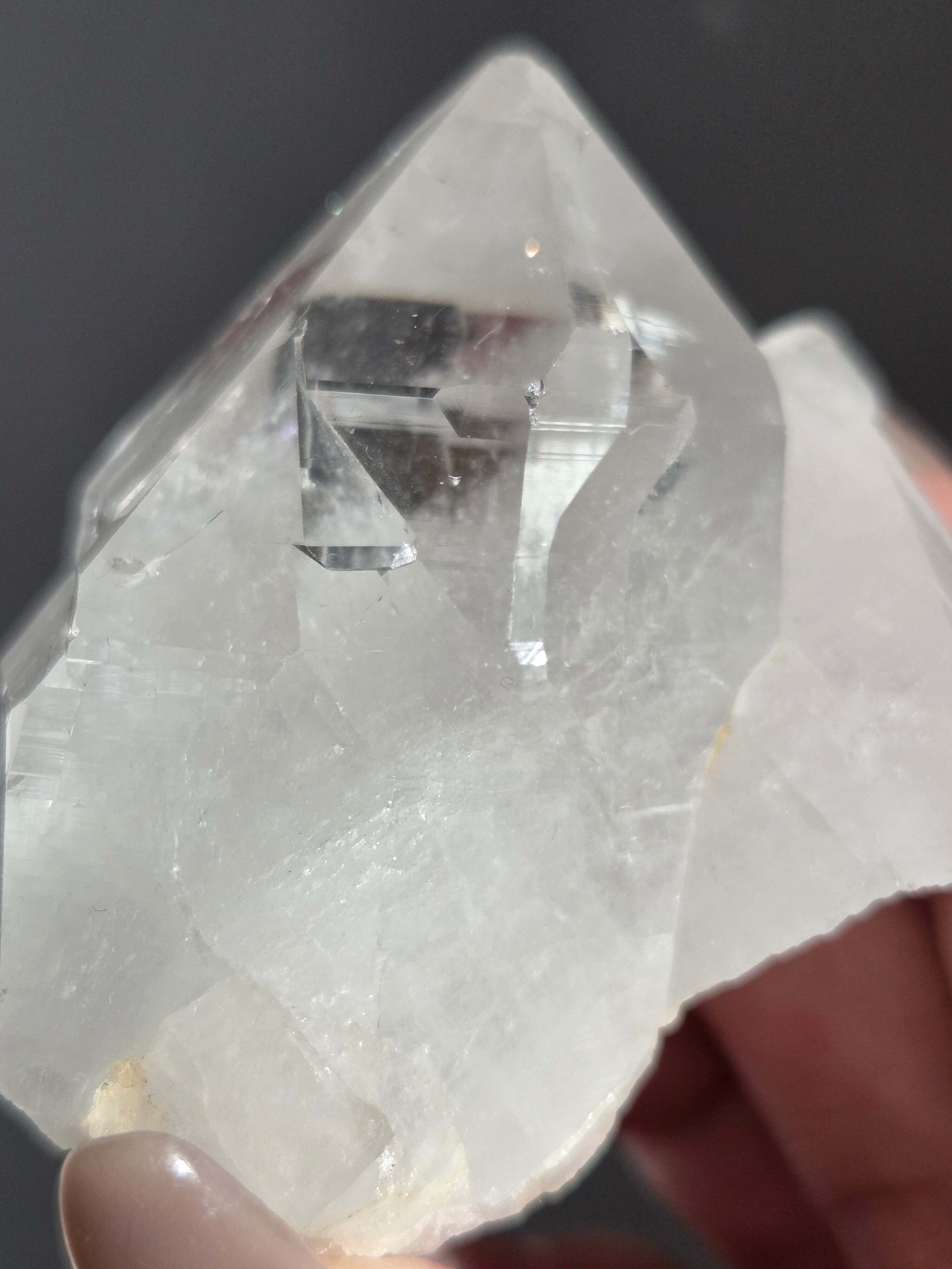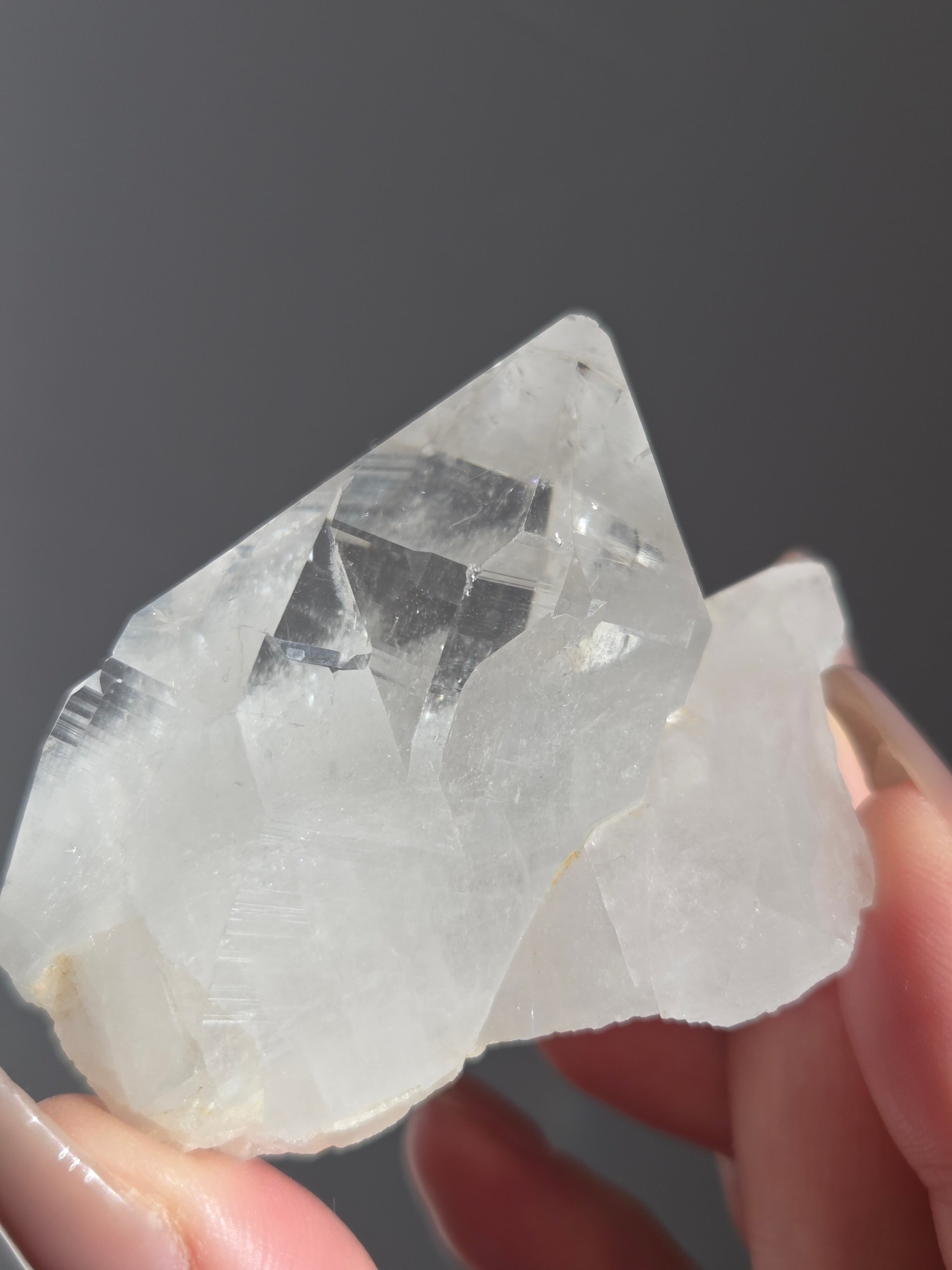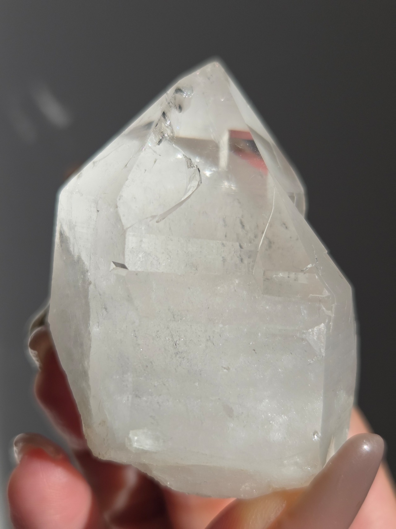 うっすらピンクに色付いた子で、どうしても写真ではその美しさを映し出せなかった子です。自信を持って実物は写真より何倍も美しいと豪語できるピースです。下からフワーっと湧き上がるような煌めきがあり、上部の透明感も美しいです。