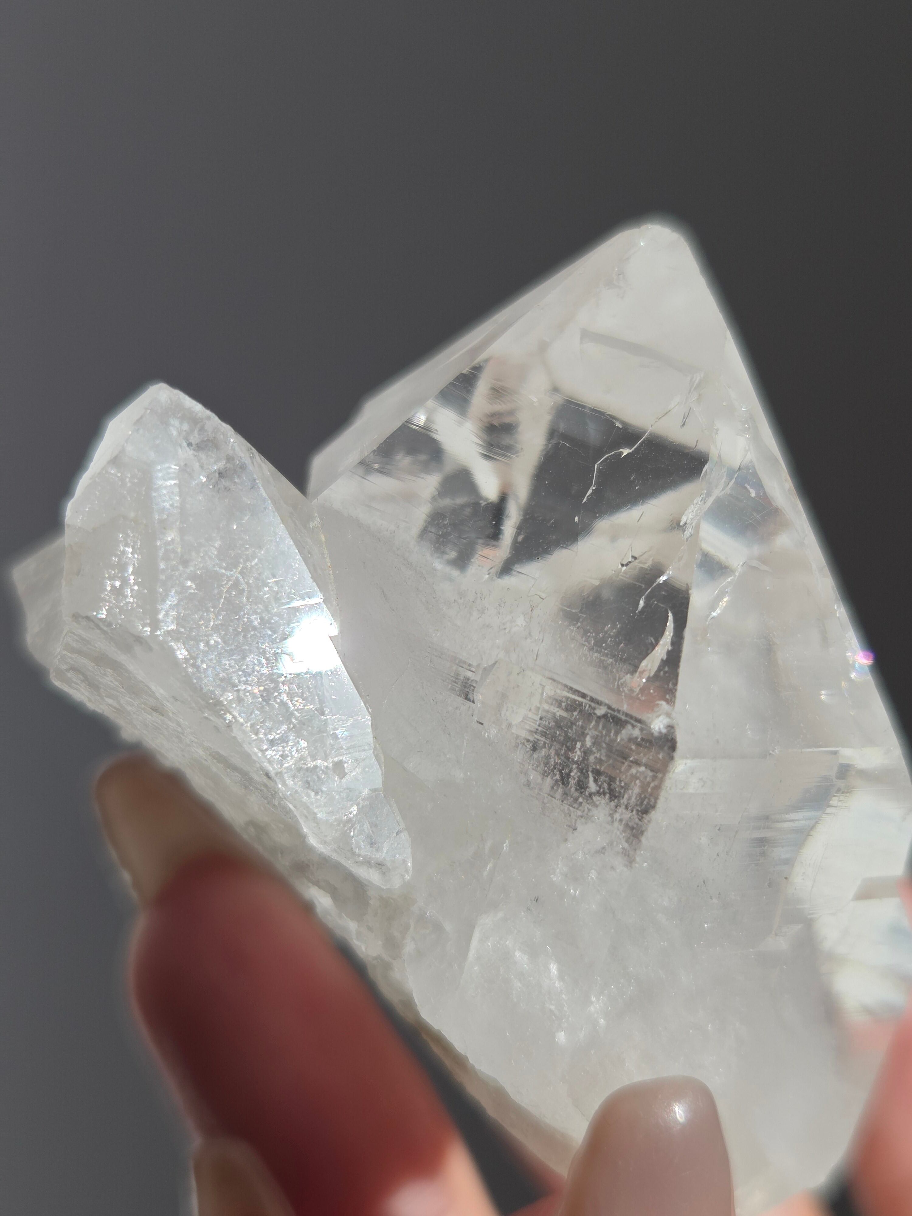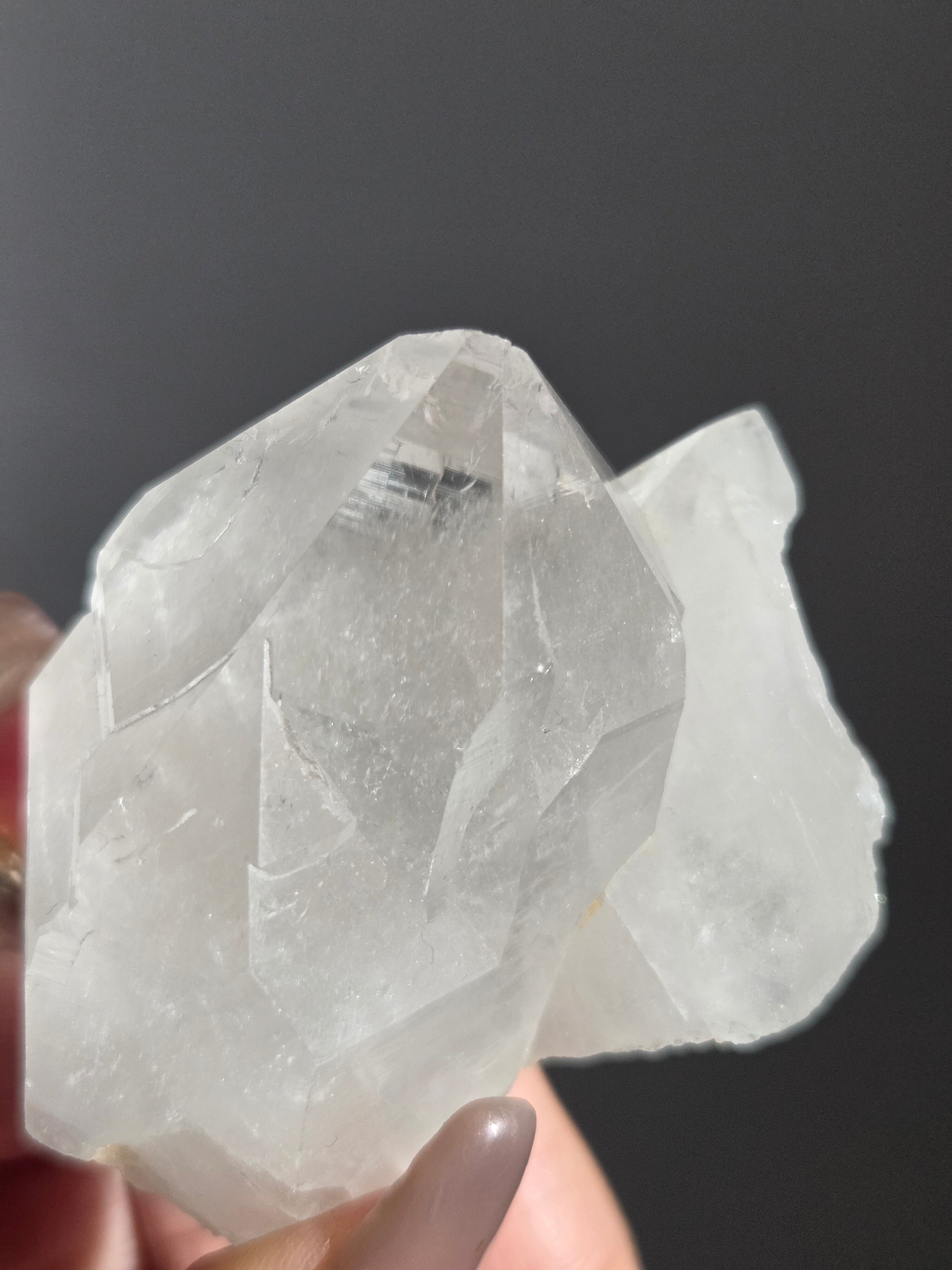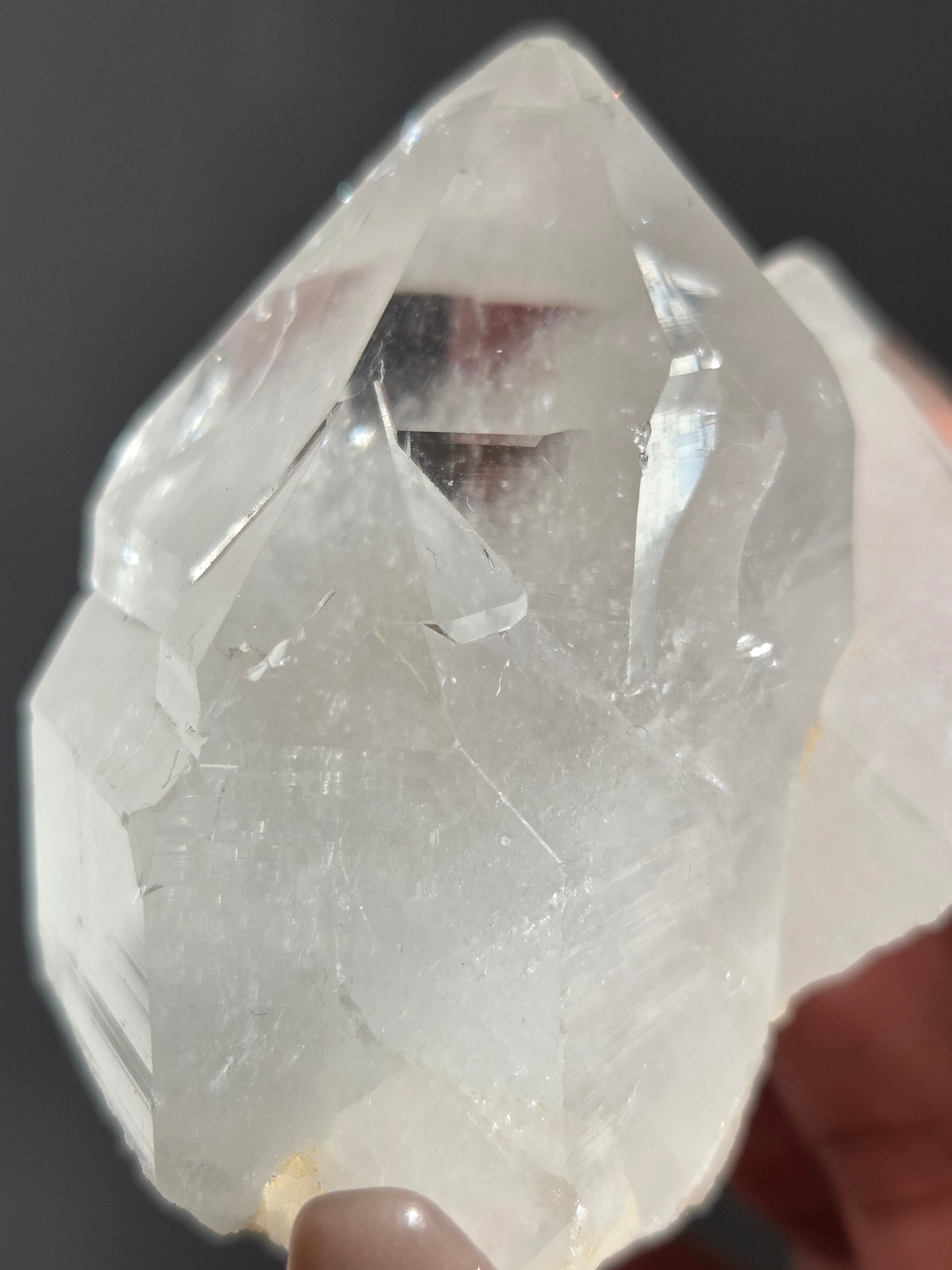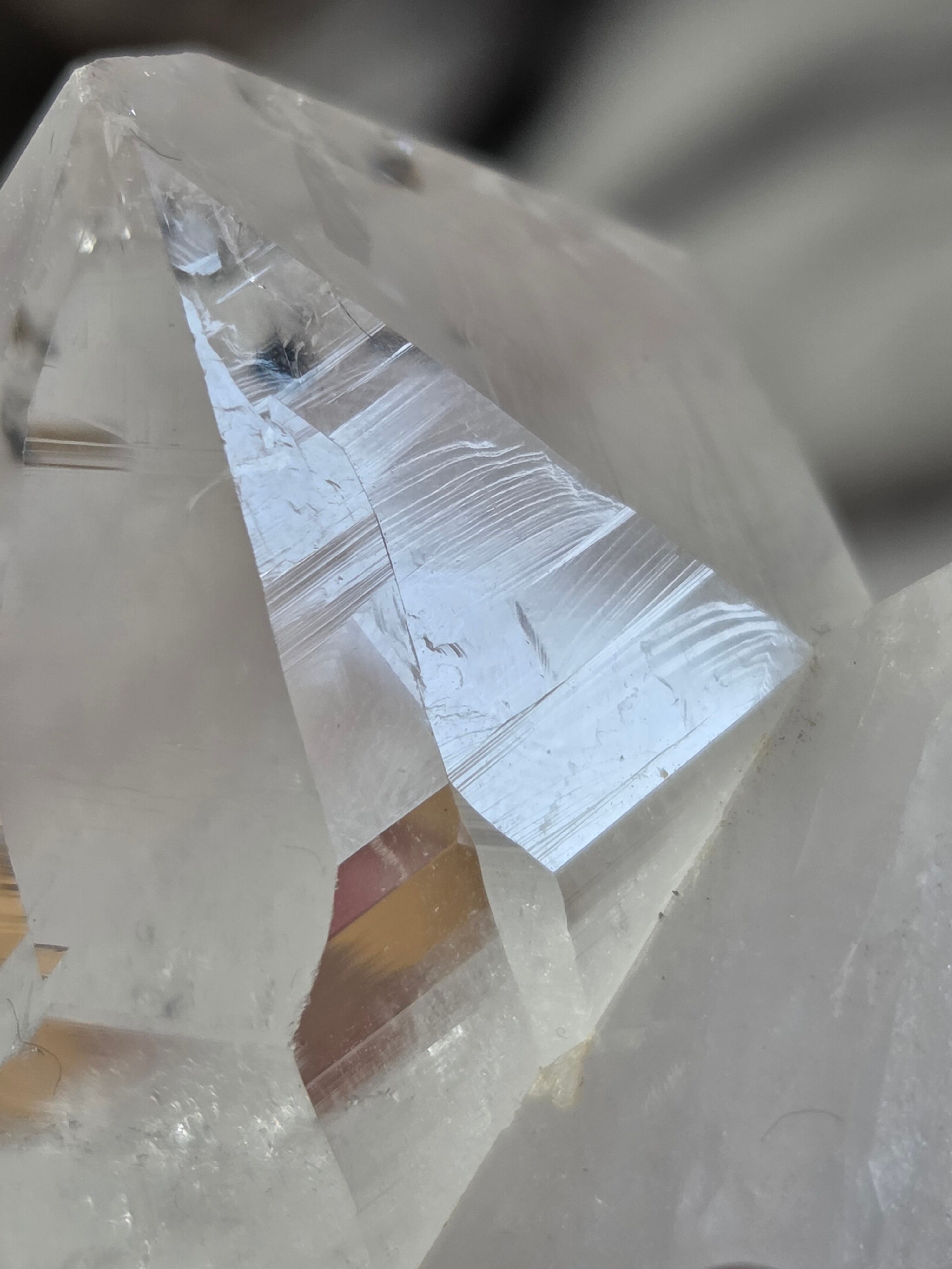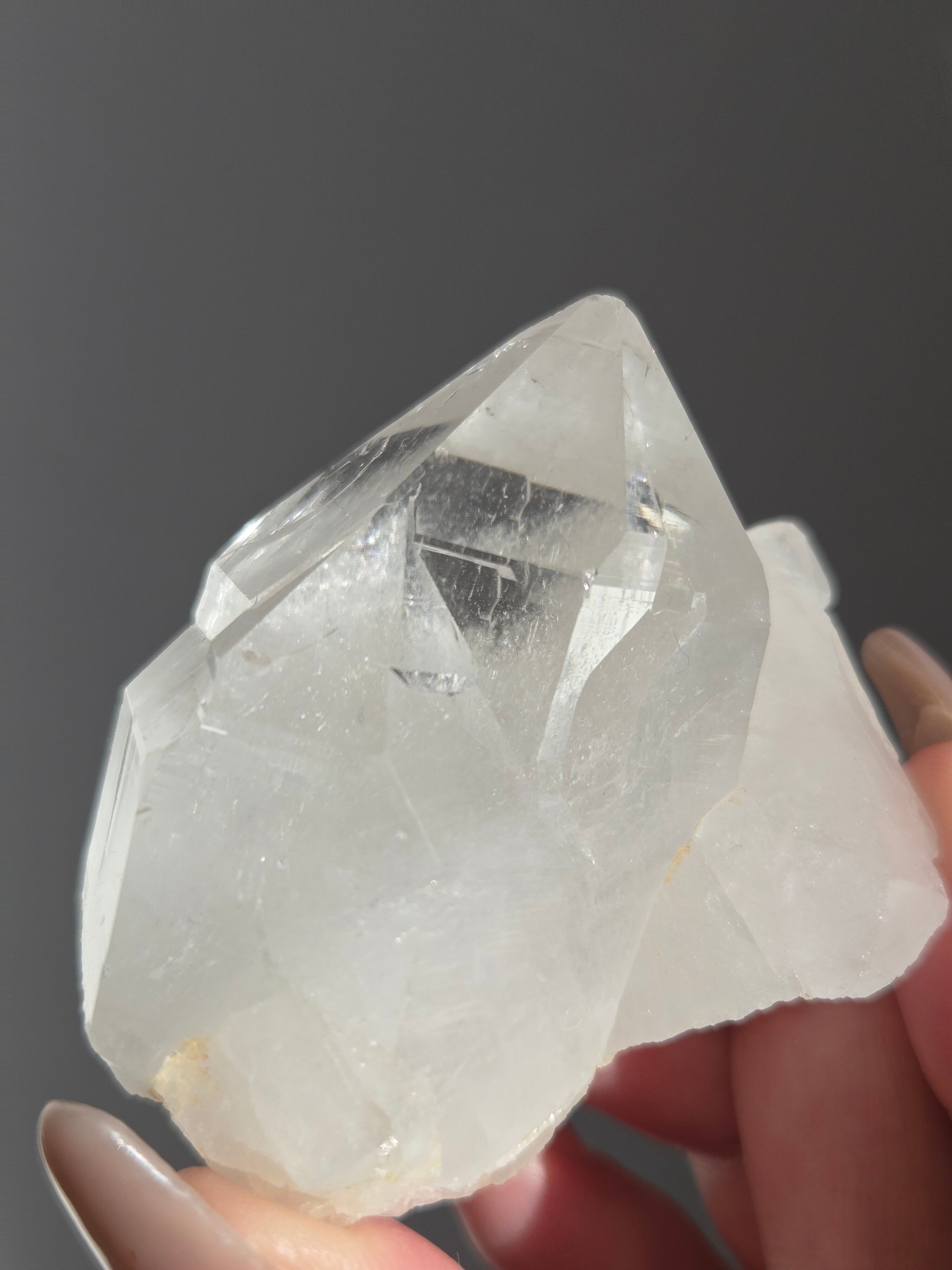 うっすらピンクに色付いた子で、どうしても写真ではその美しさを映し出せなかった子です。自信を持って実物は写真より何倍も美しいと豪語できるピースです。下からフワーっと湧き上がるような煌めきがあり、上部の透明感も美しいです。