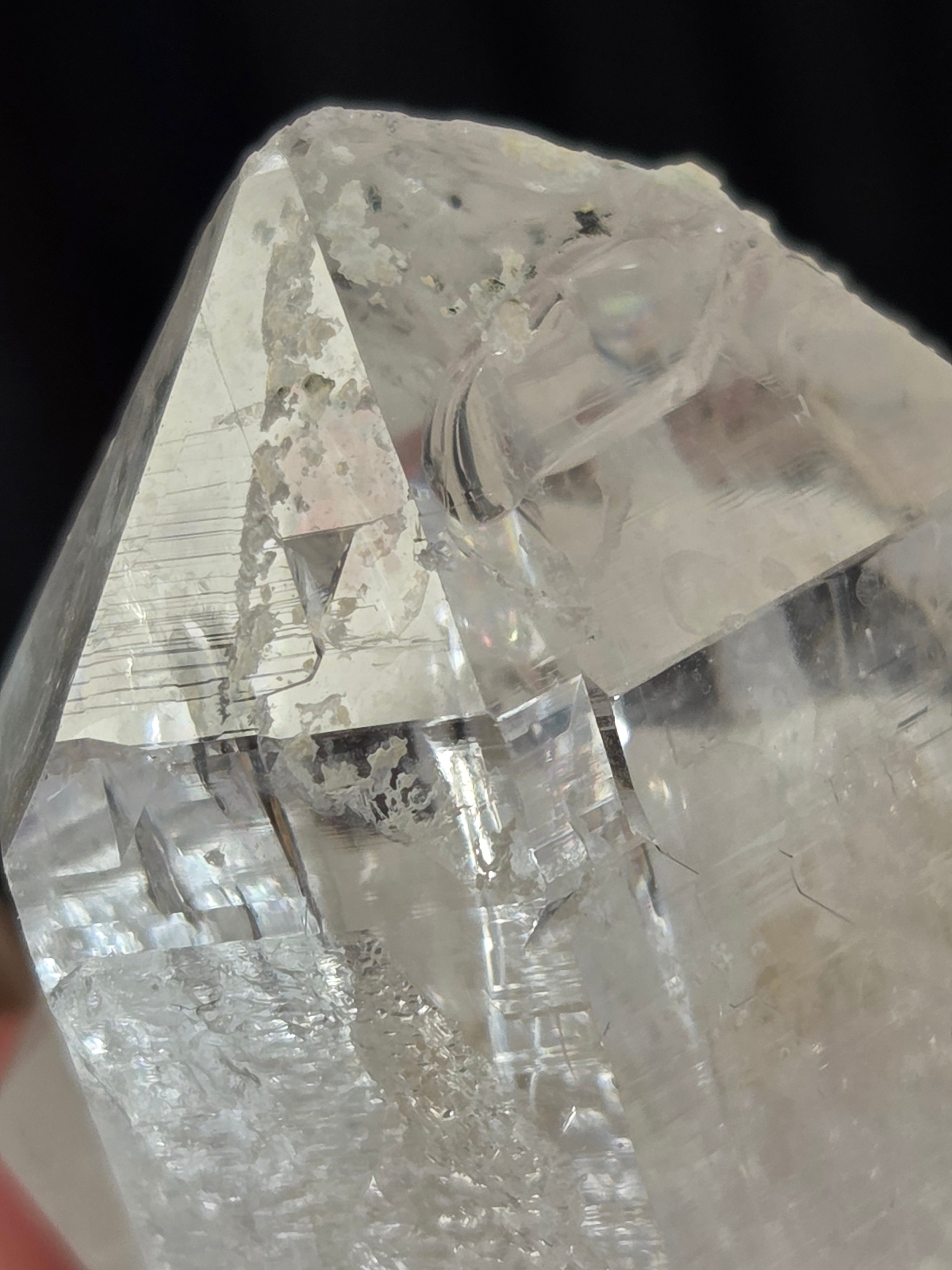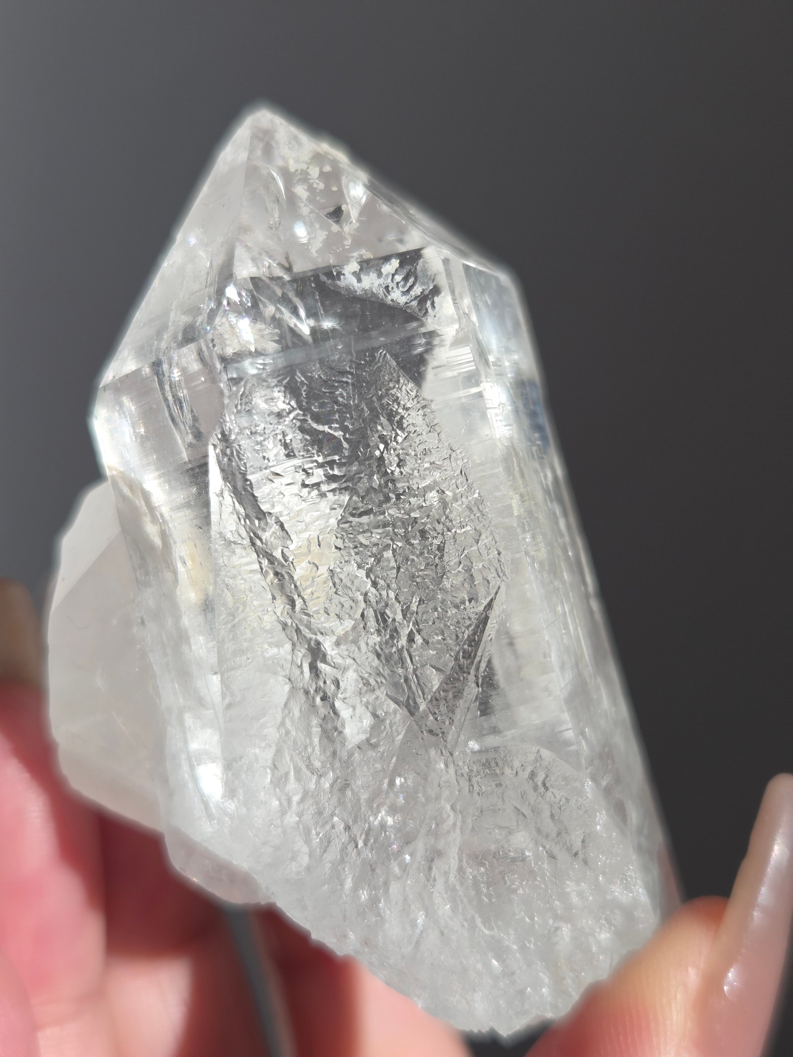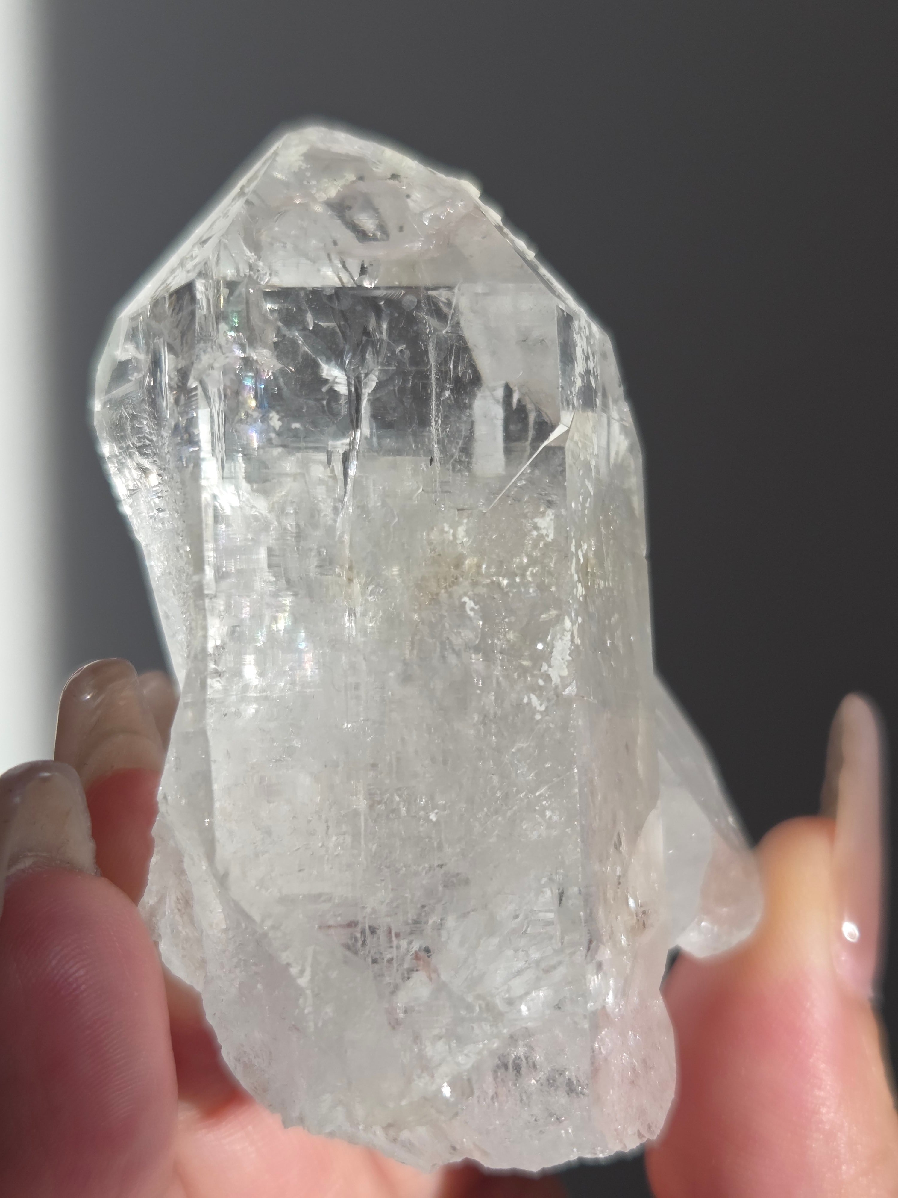 ヒマラヤ水晶サインジ産は、インド北部ヒマラヤ山脈のサインジ渓谷で採掘される、高い透明度と美しい輝きが特徴の水晶で、マニカラン産などと並び人気があり、希少性も高いとされています。澄んだ雪解け水のような美しさや、クローライト(緑泥石)やヘマタイト(赤鉄鉱)を含むものもあり、内部のレインボーも魅力で、強力な浄化力を持つと信じられています。