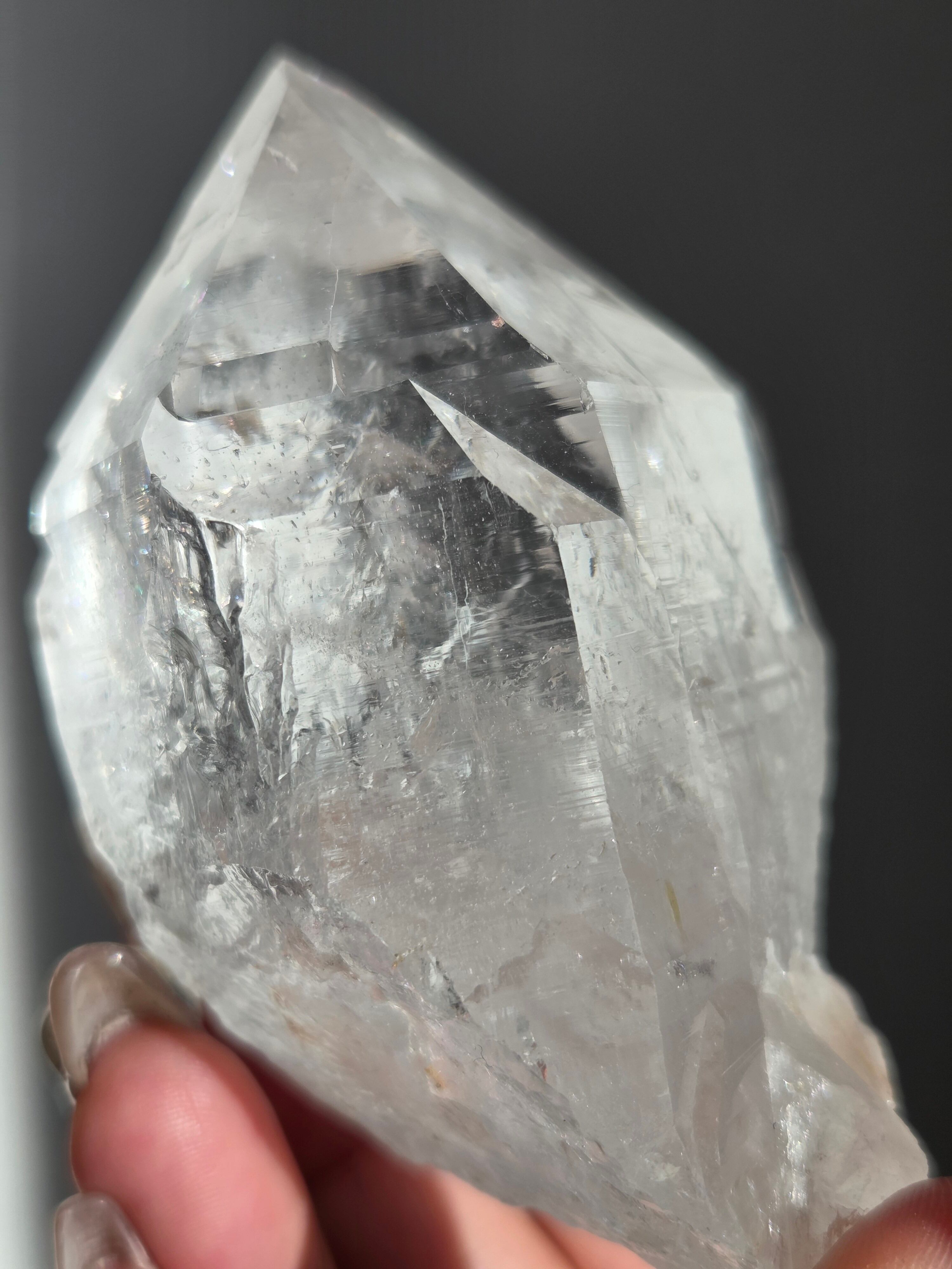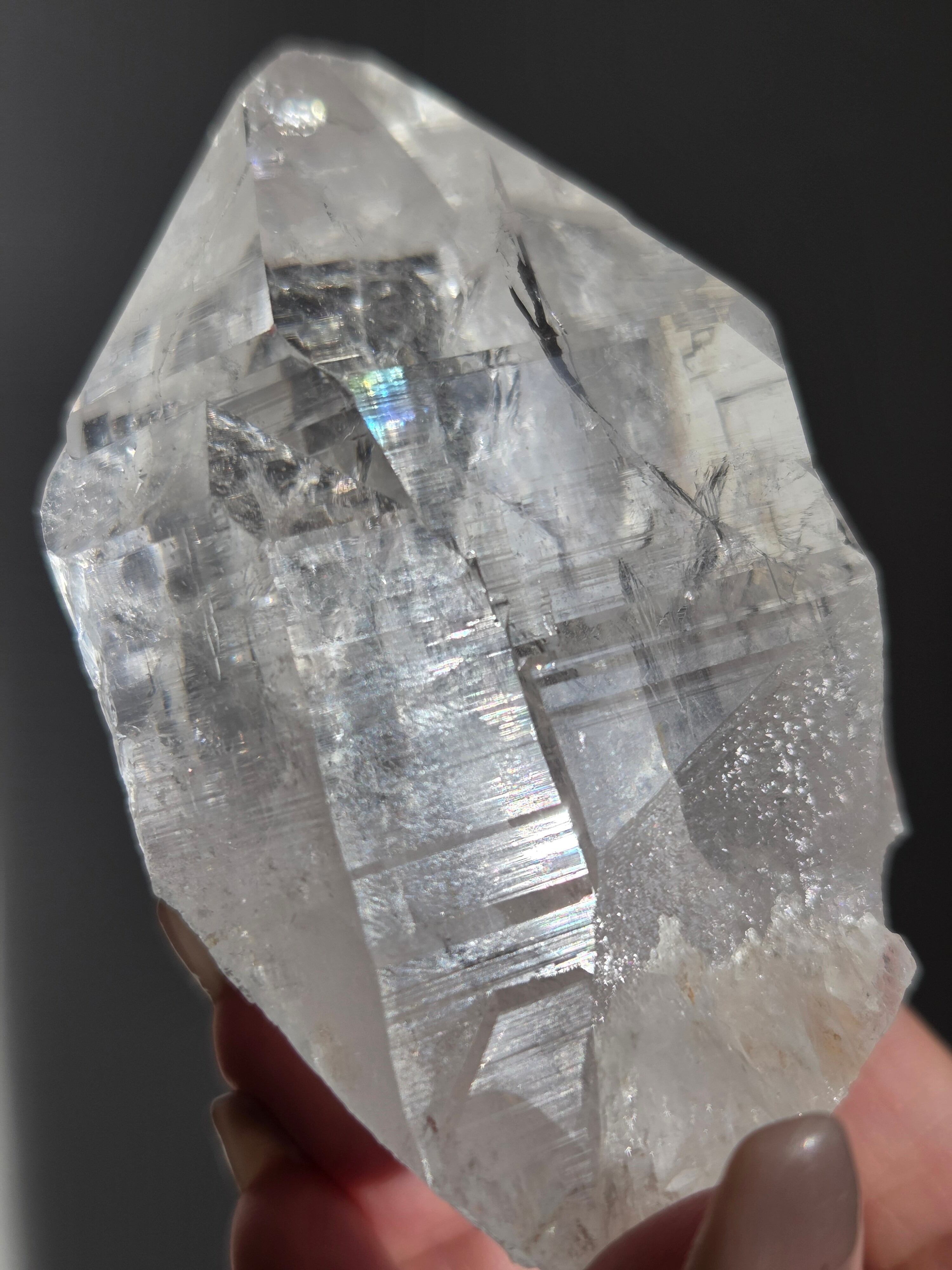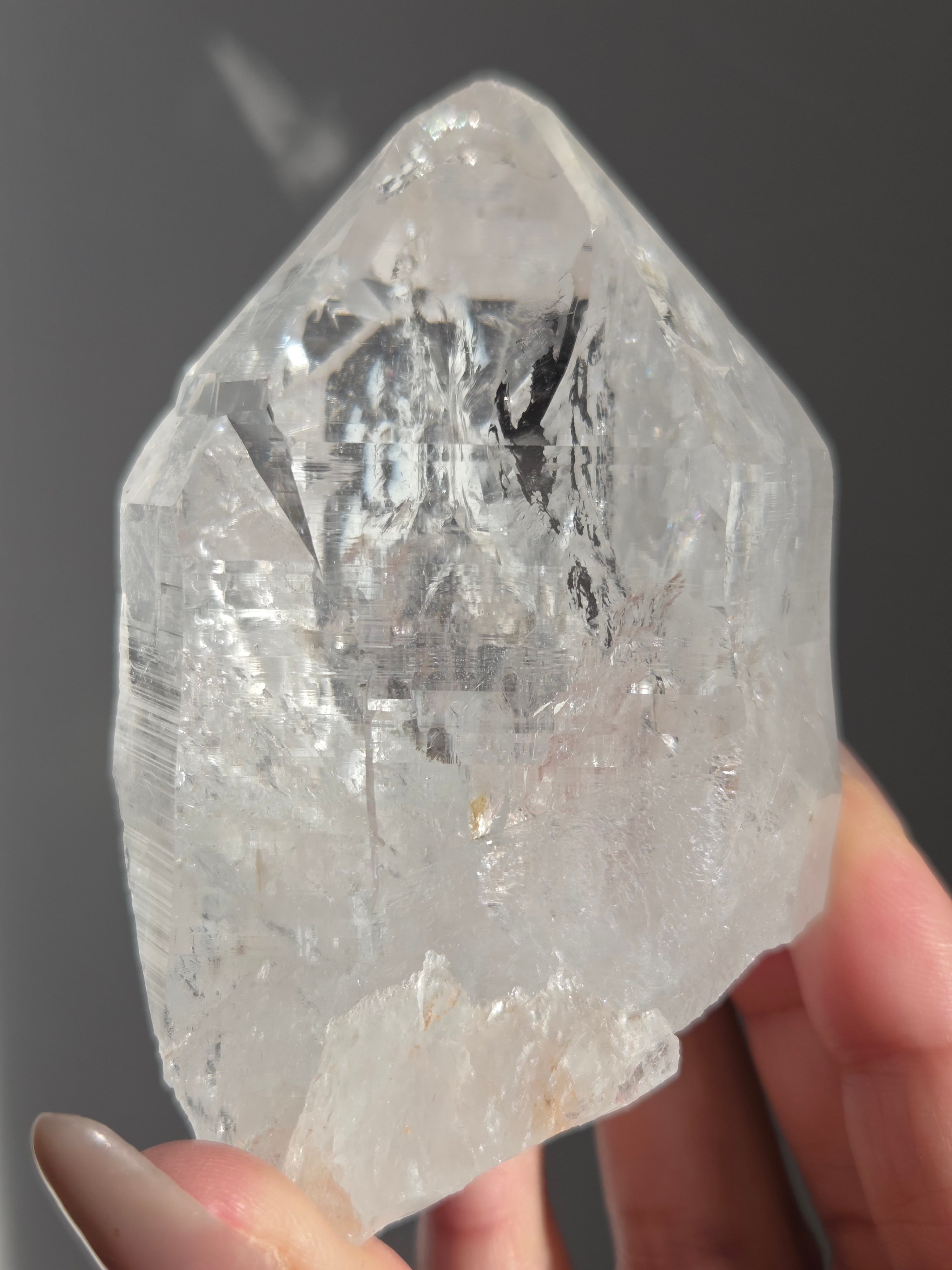 ヒマラヤ水晶サインジ産は、インド北部ヒマラヤ山脈のサインジ渓谷で採掘される、高い透明度と美しい輝きが特徴の水晶で、マニカラン産などと並び人気があり、希少性も高いとされています。澄んだ雪解け水のような美しさや、クローライト(緑泥石)やヘマタイト(赤鉄鉱)を含むものもあり、内部のレインボーも魅力で、強力な浄化力を持つと信じられています。