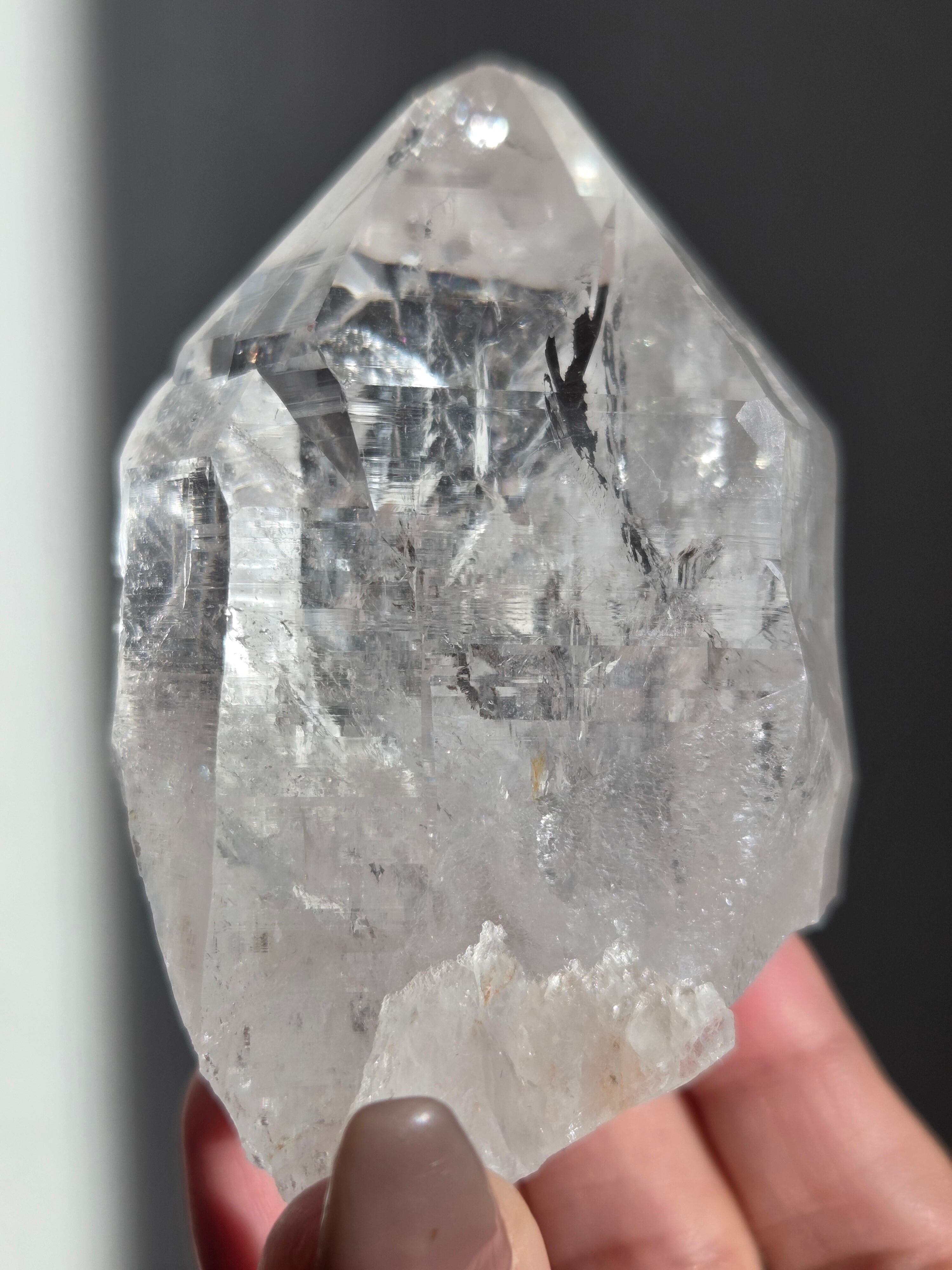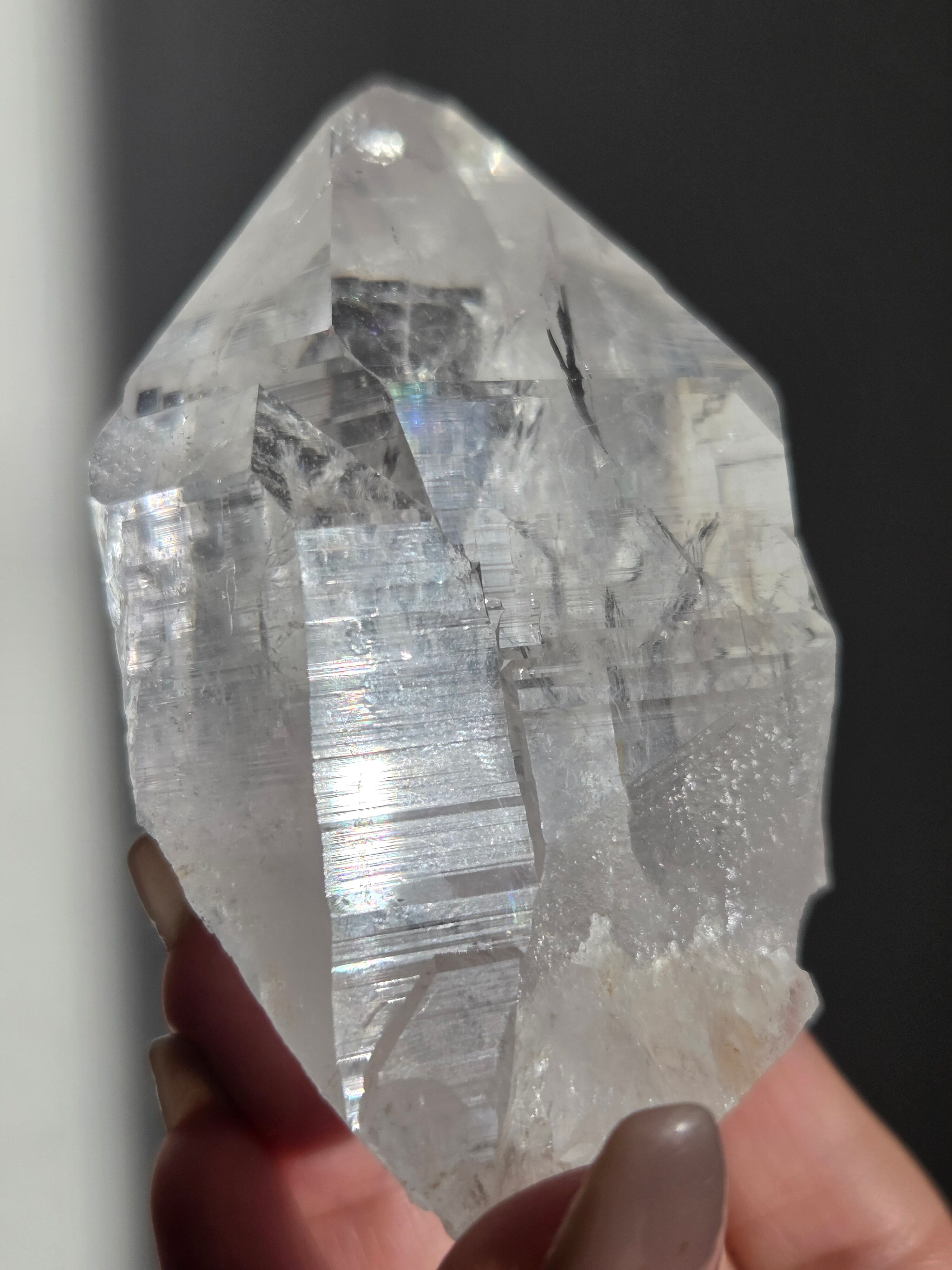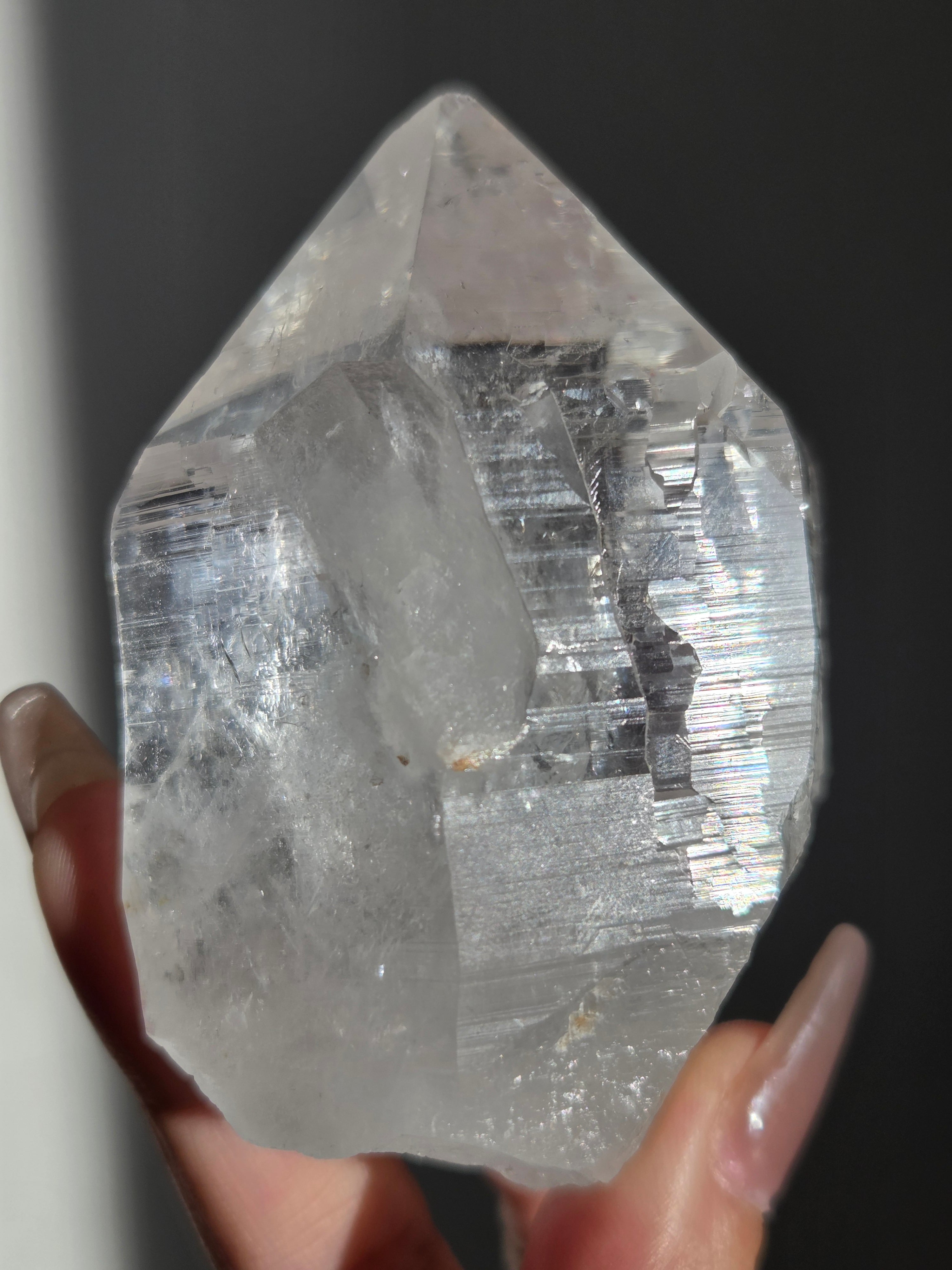 ヒマラヤ水晶サインジ産は、インド北部ヒマラヤ山脈のサインジ渓谷で採掘される、高い透明度と美しい輝きが特徴の水晶で、マニカラン産などと並び人気があり、希少性も高いとされています。澄んだ雪解け水のような美しさや、クローライト(緑泥石)やヘマタイト(赤鉄鉱)を含むものもあり、内部のレインボーも魅力で、強力な浄化力を持つと信じられています。