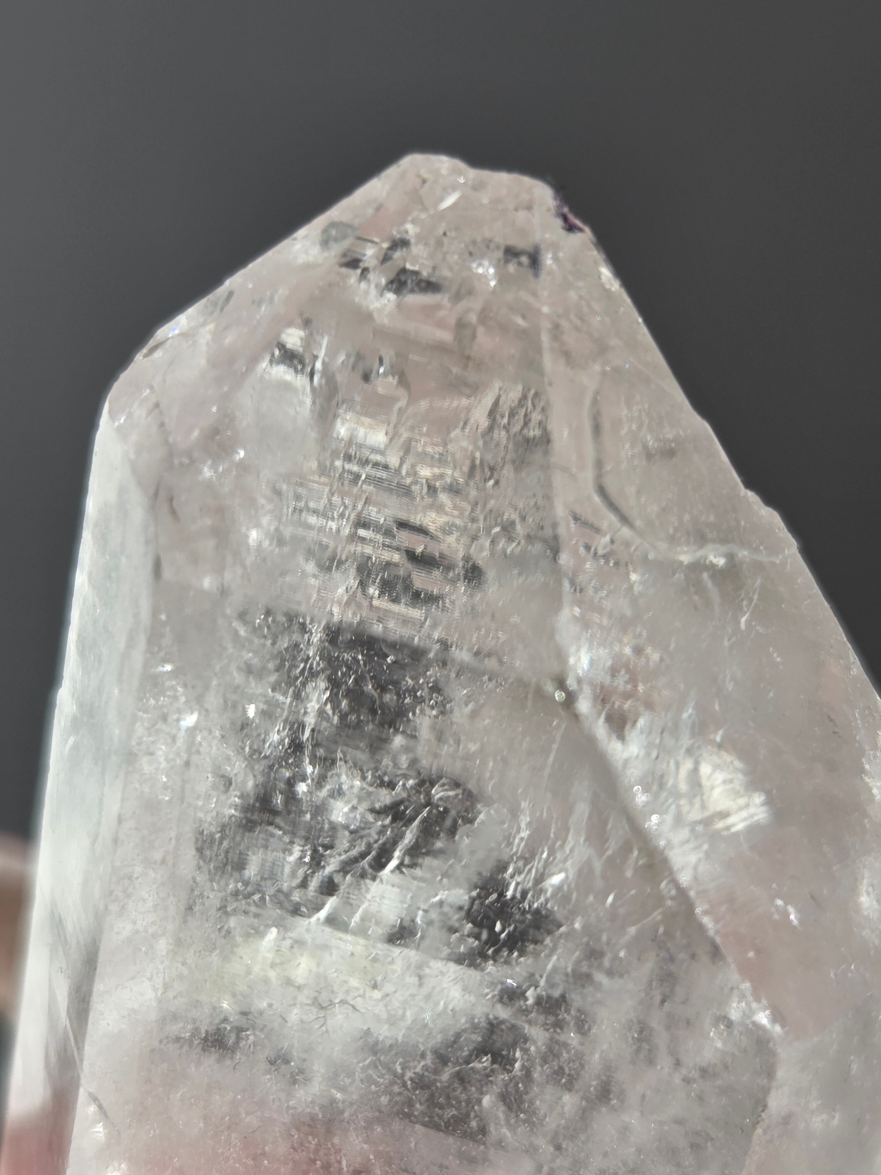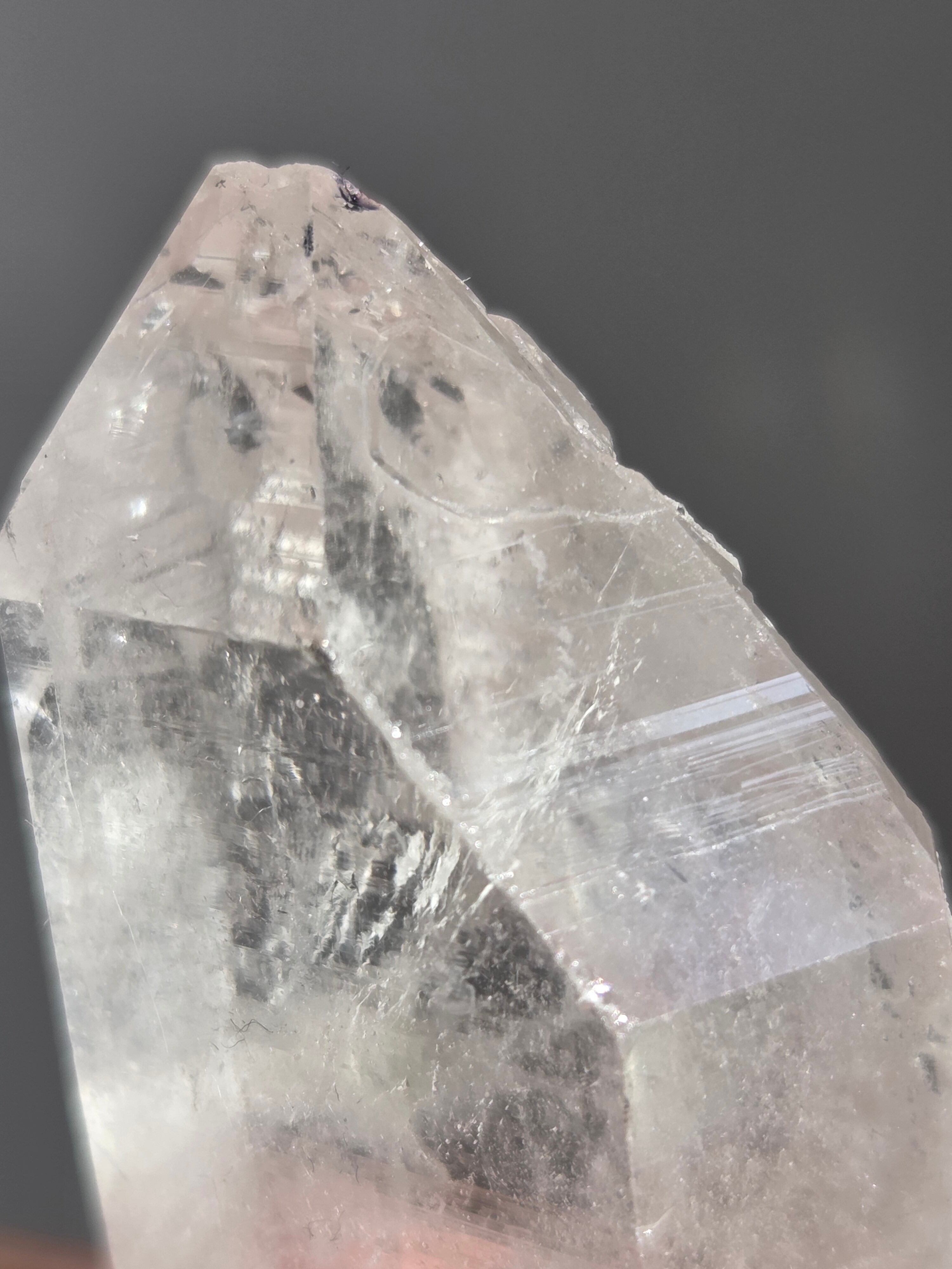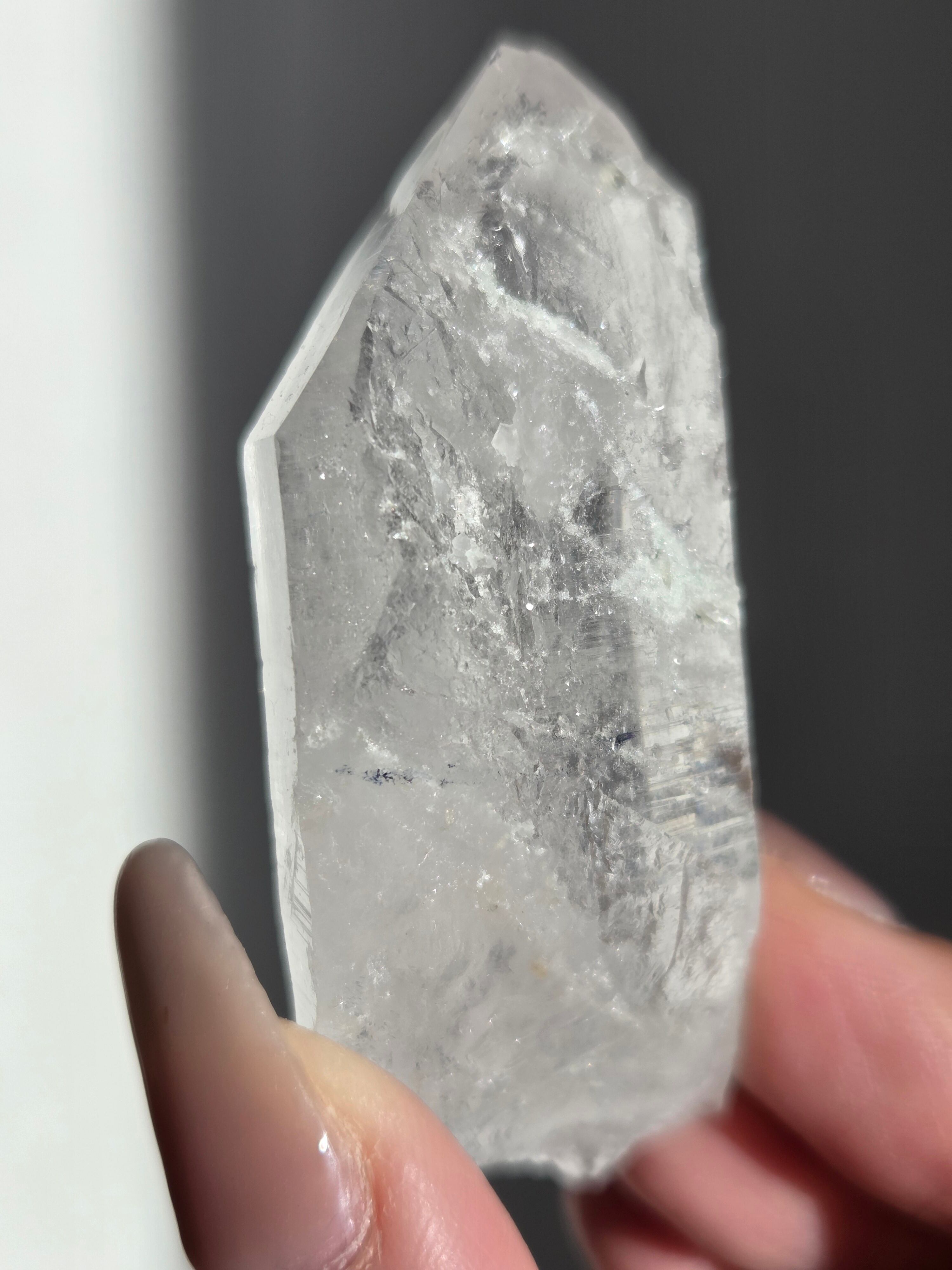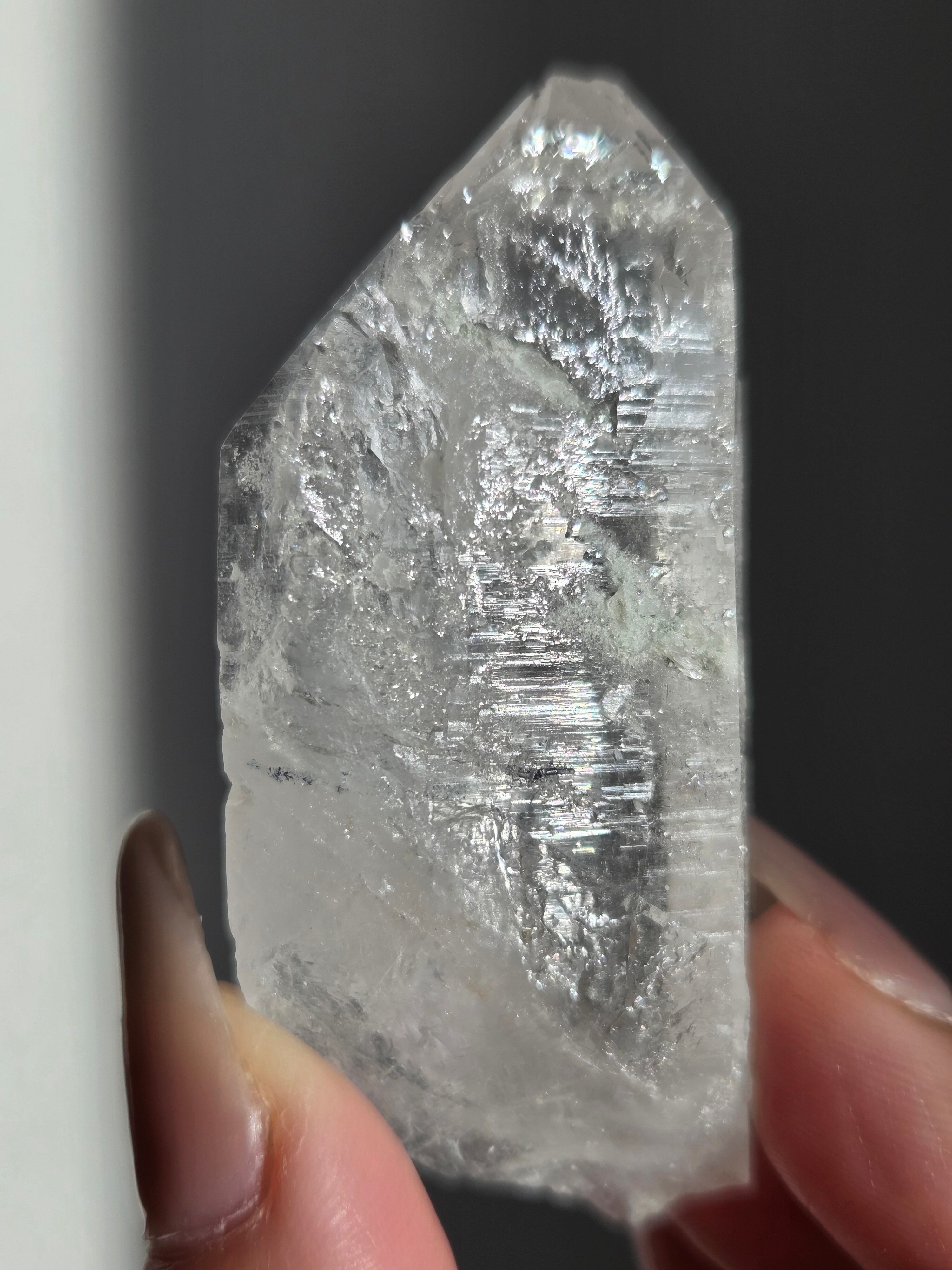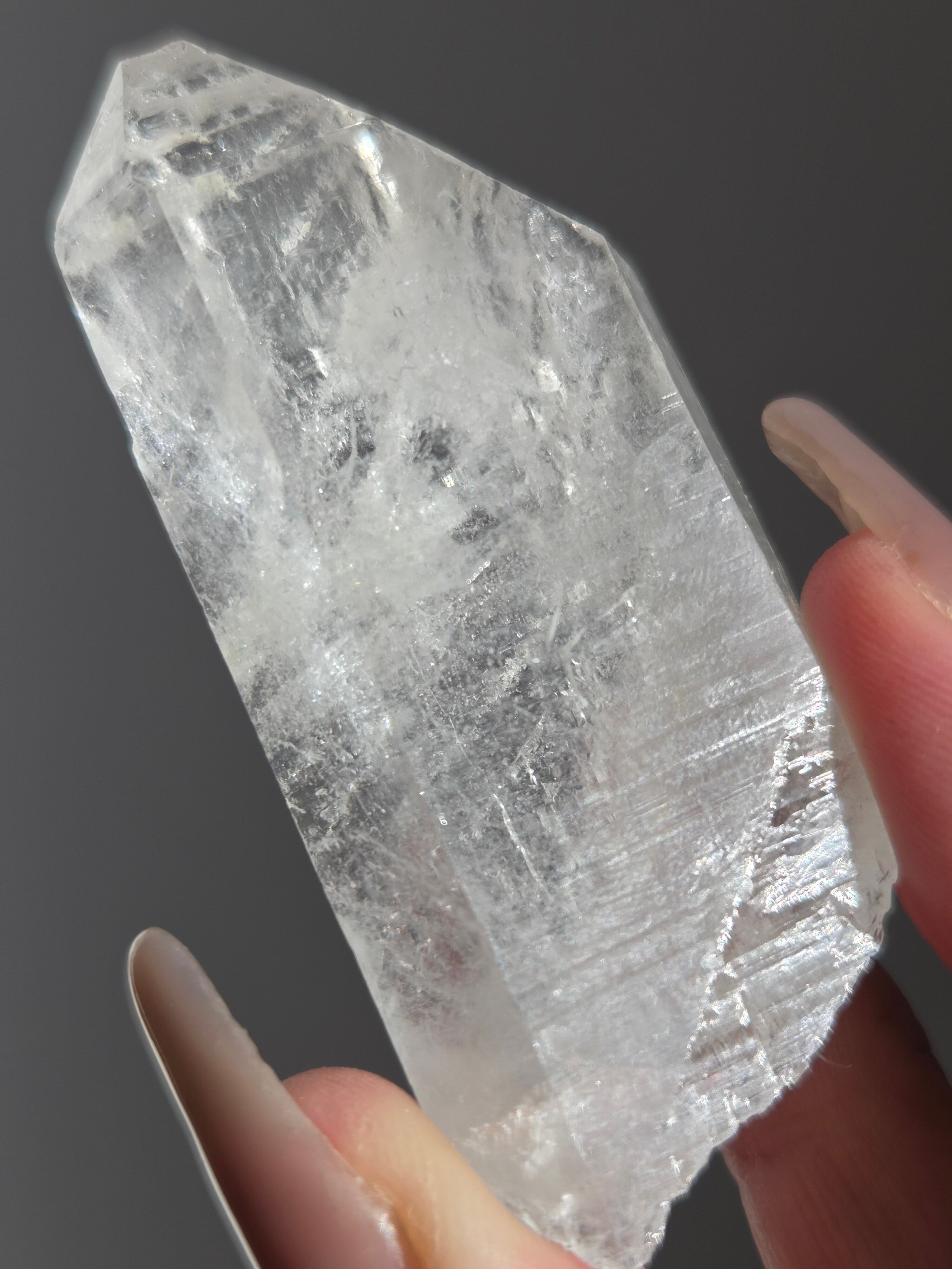 ヒマラヤ水晶サインジ産は、インド北部ヒマラヤ山脈のサインジ渓谷で採掘される、高い透明度と美しい輝きが特徴の水晶で、マニカラン産などと並び人気があり、希少性も高いとされています。澄んだ雪解け水のような美しさや、クローライト(緑泥石)やヘマタイト(赤鉄鉱)を含むものもあり、内部のレインボーも魅力で、強力な浄化力を持つと信じられています。