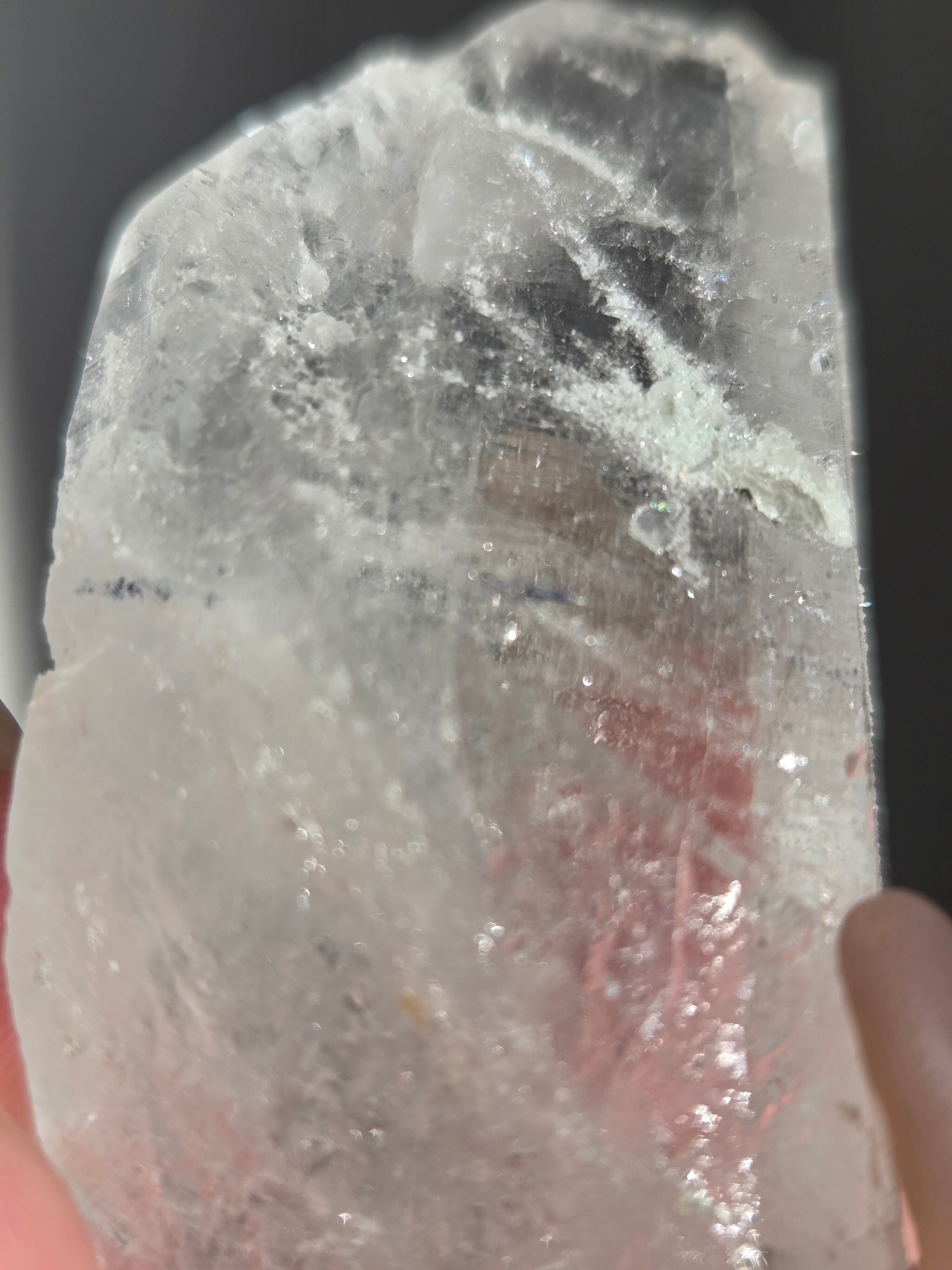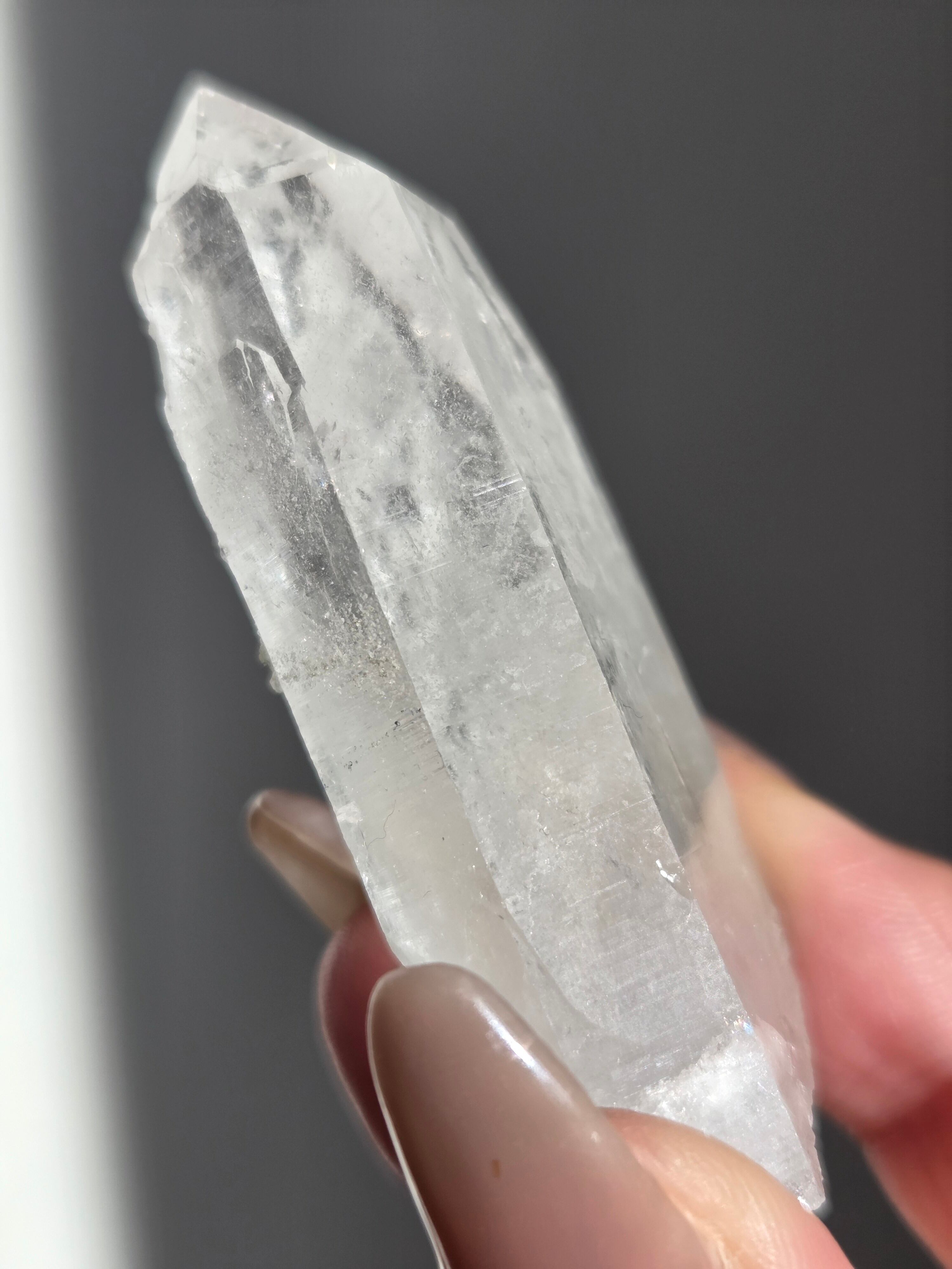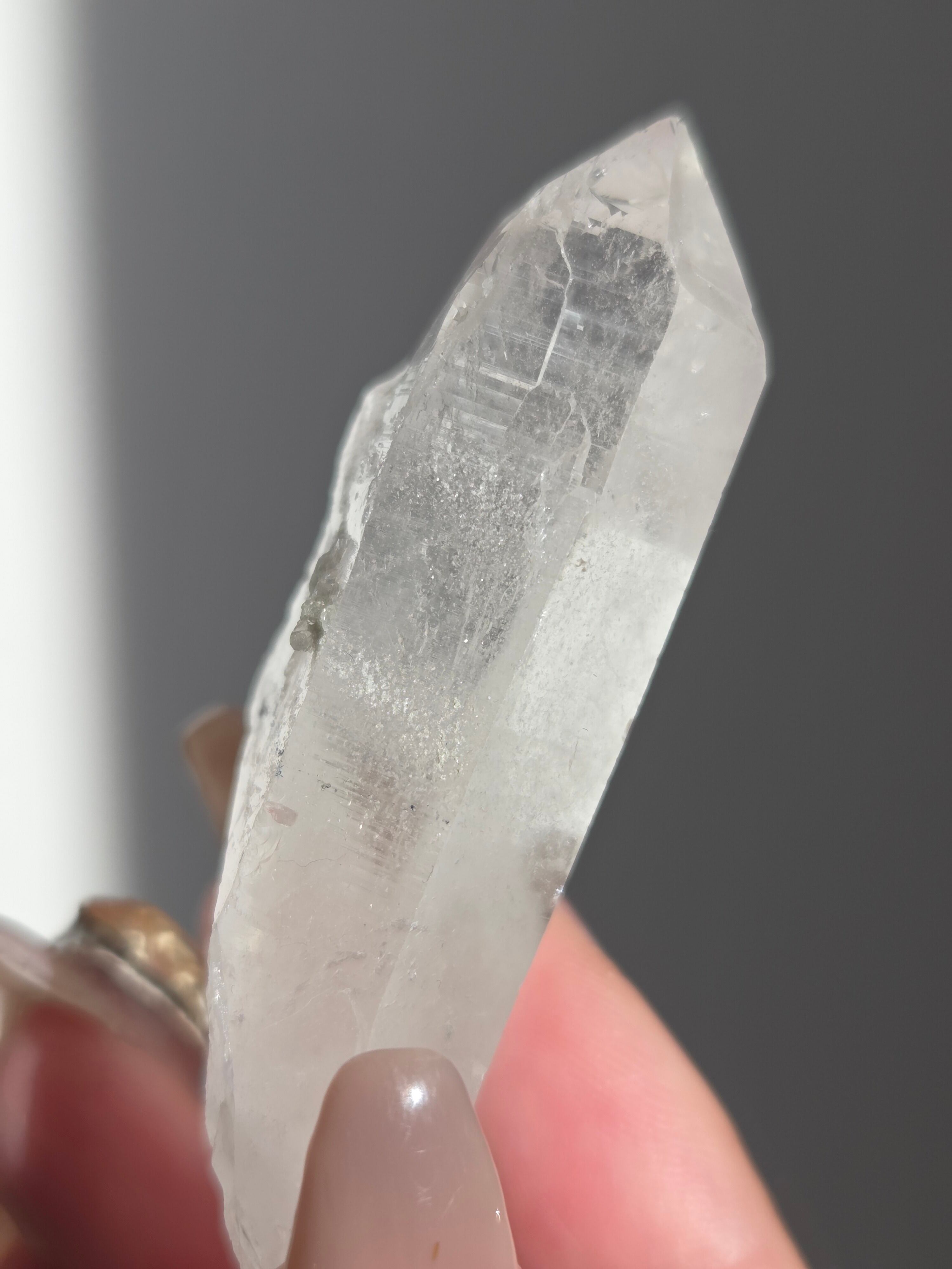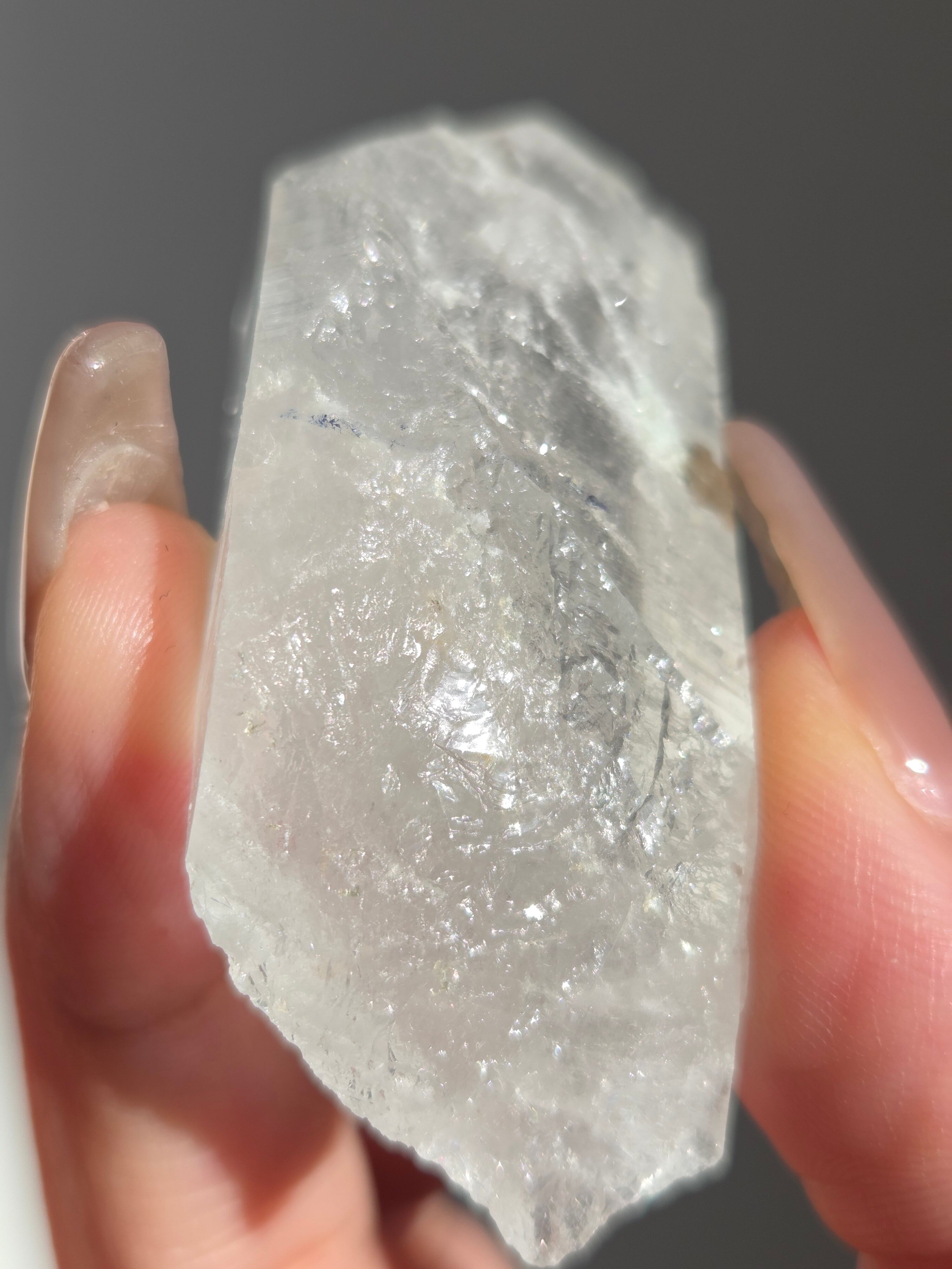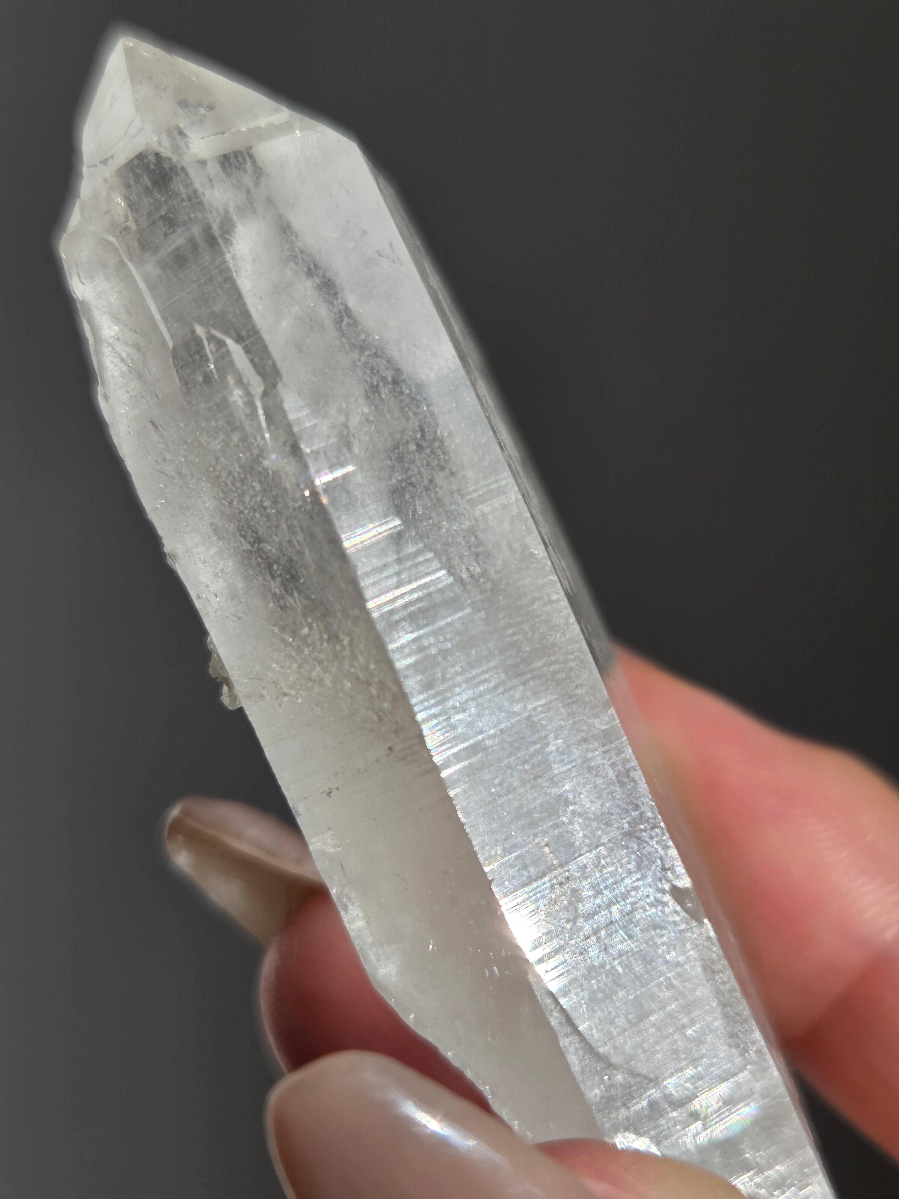 ヒマラヤ水晶サインジ産は、インド北部ヒマラヤ山脈のサインジ渓谷で採掘される、高い透明度と美しい輝きが特徴の水晶で、マニカラン産などと並び人気があり、希少性も高いとされています。澄んだ雪解け水のような美しさや、クローライト(緑泥石)やヘマタイト(赤鉄鉱)を含むものもあり、内部のレインボーも魅力で、強力な浄化力を持つと信じられています。
