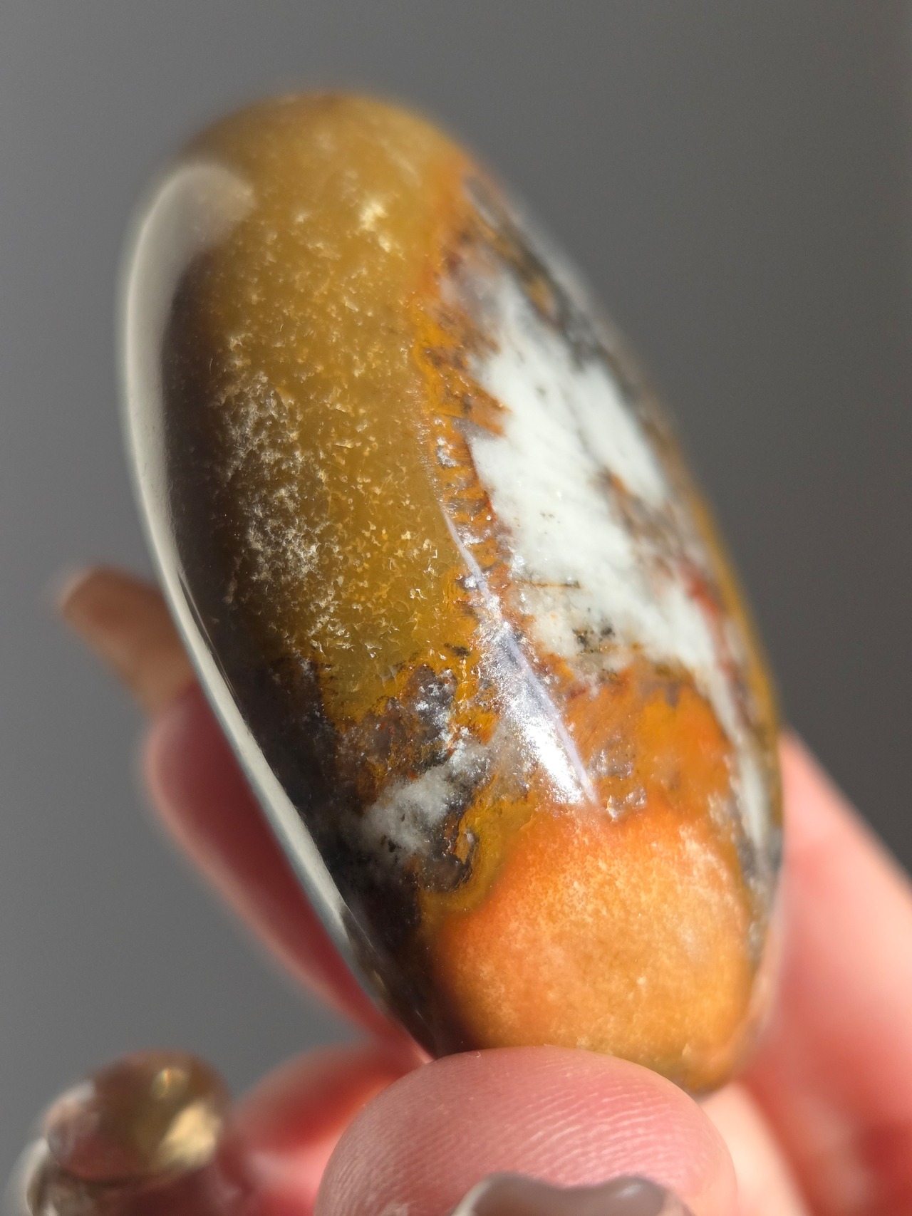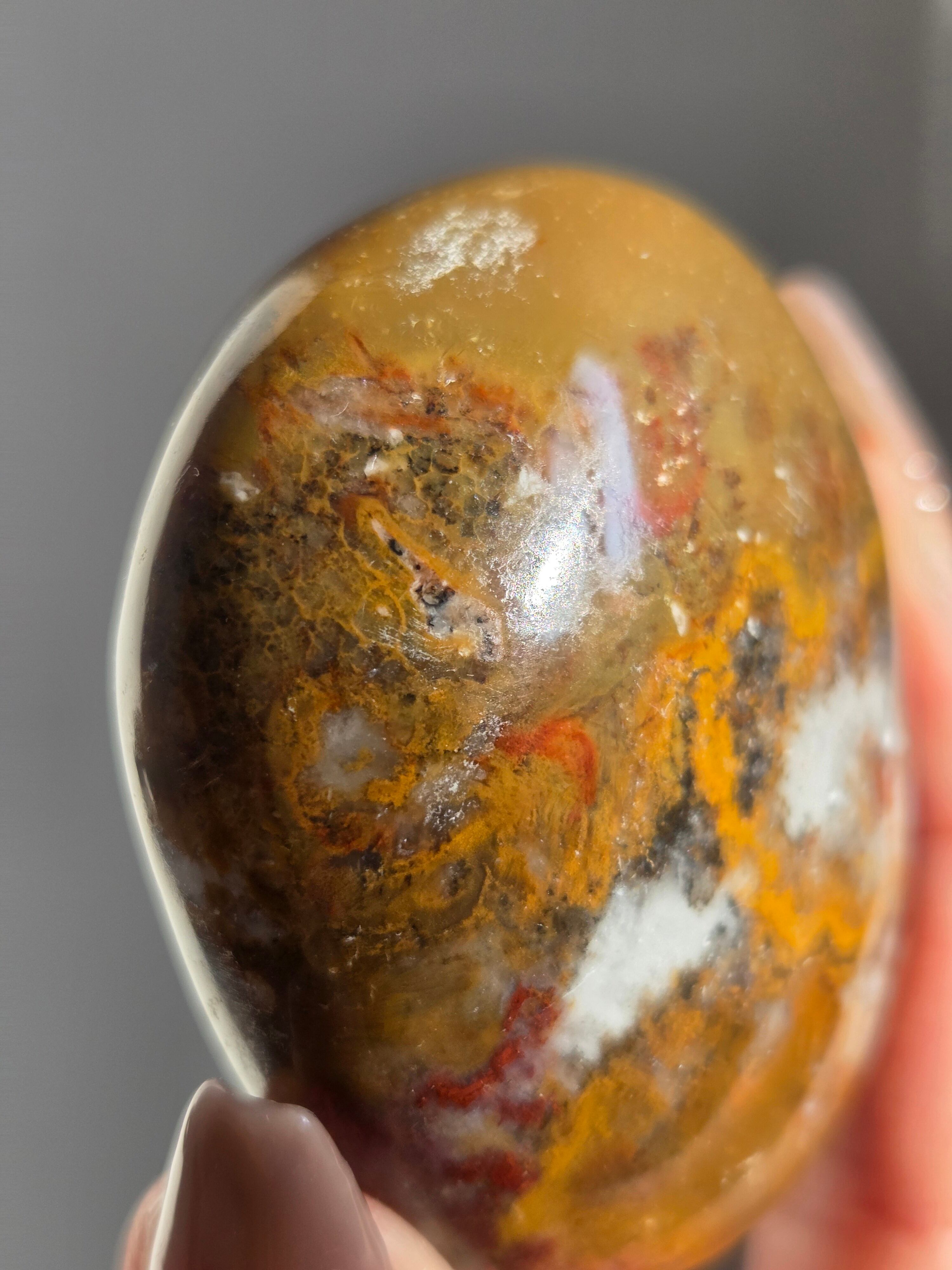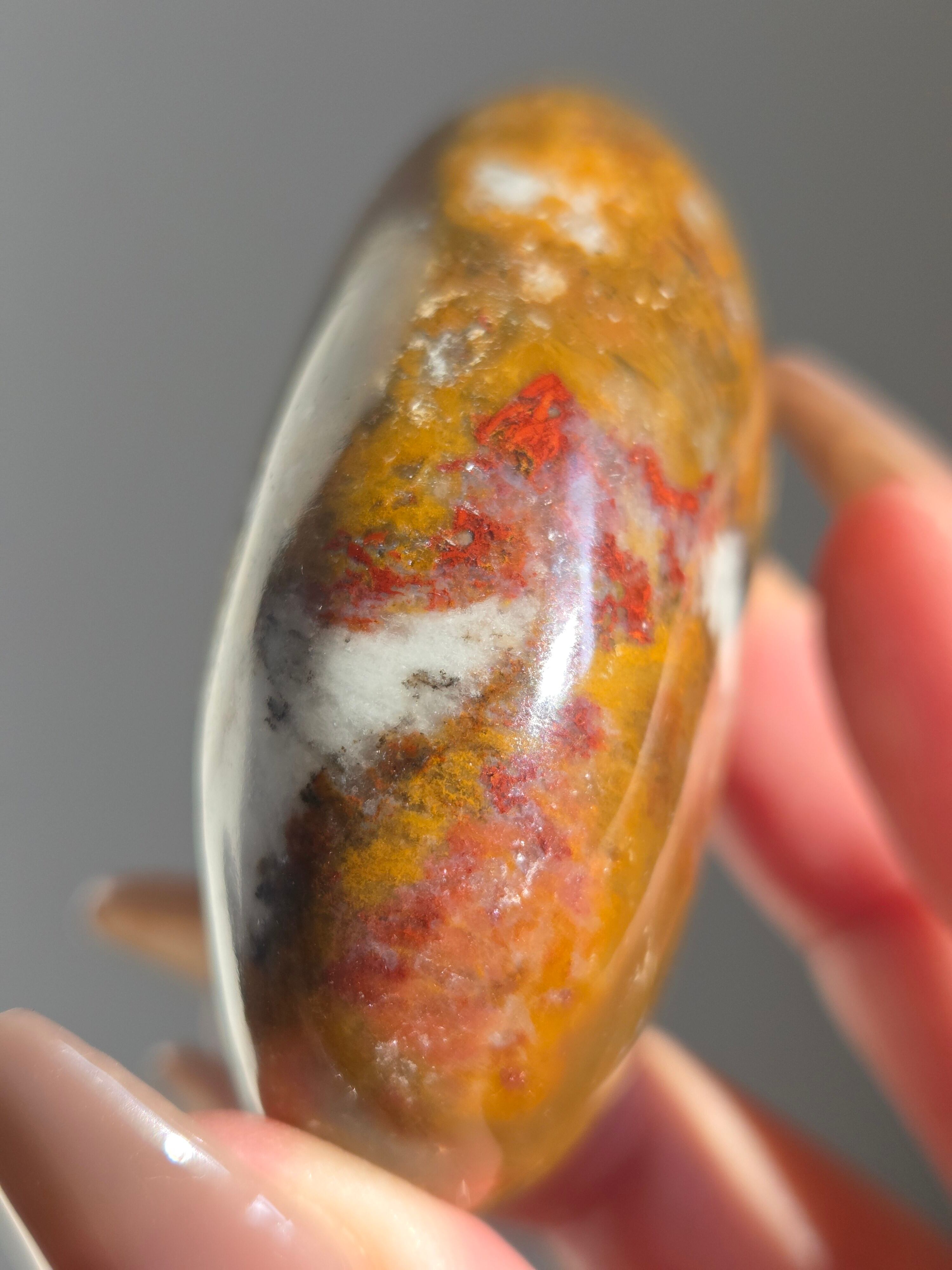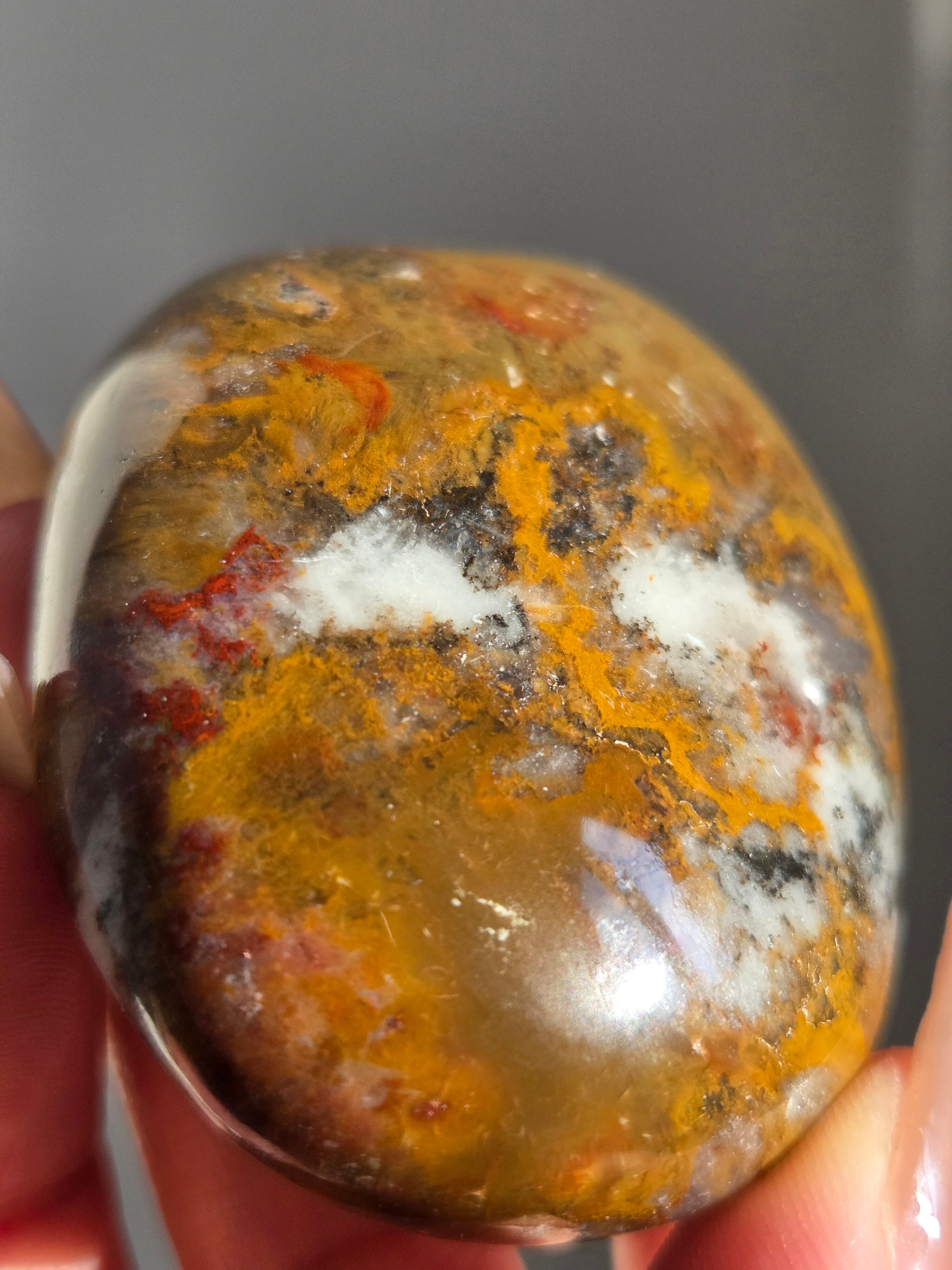 様々な名前で呼ばれるカラフルなジャスパーで、ボンベイジャスパーの他、キングコブラジャスパー、カラフルジャスパー、オービュキュラージャスパーなどなど、様々な愛称で呼ばれています。