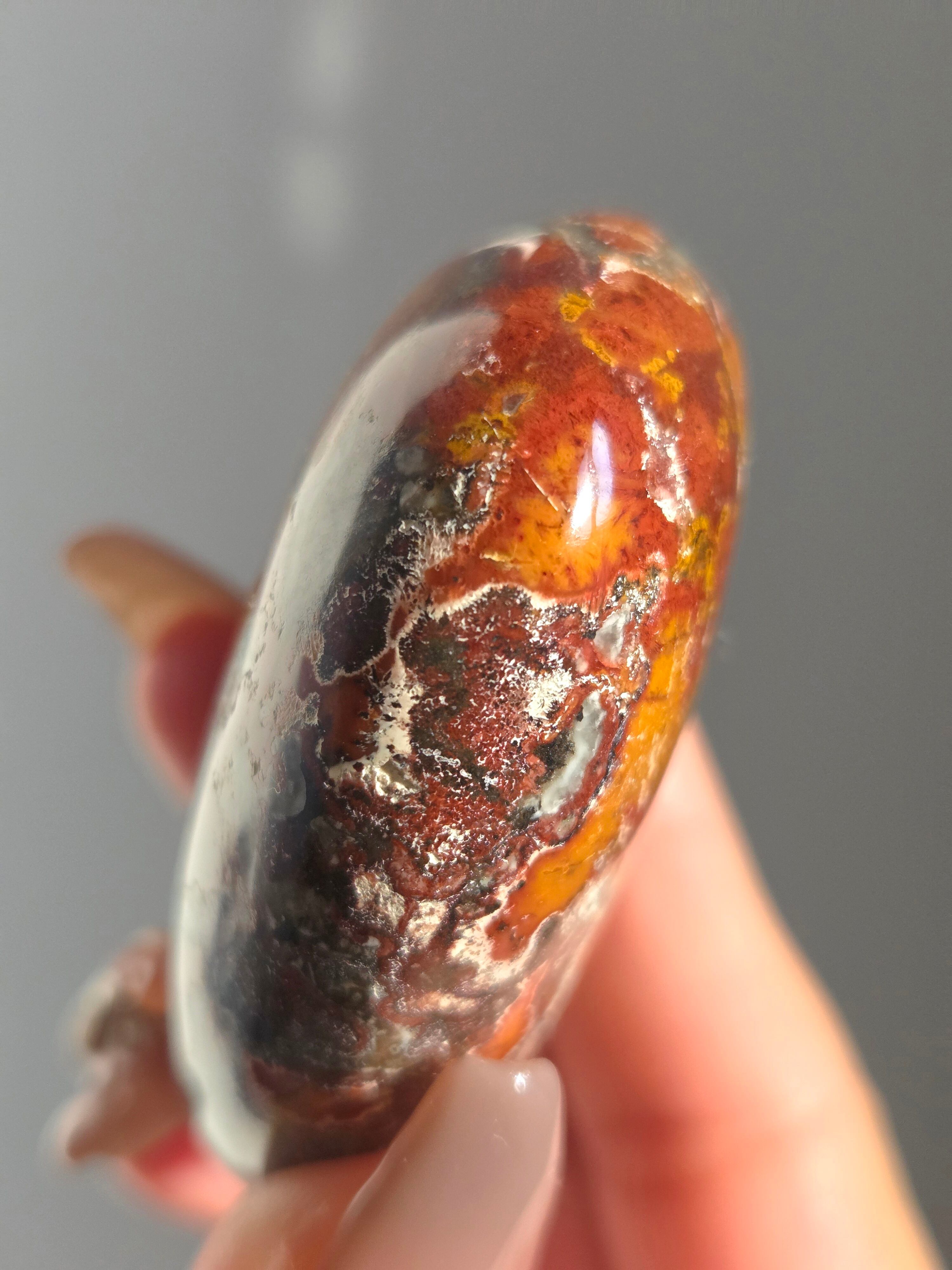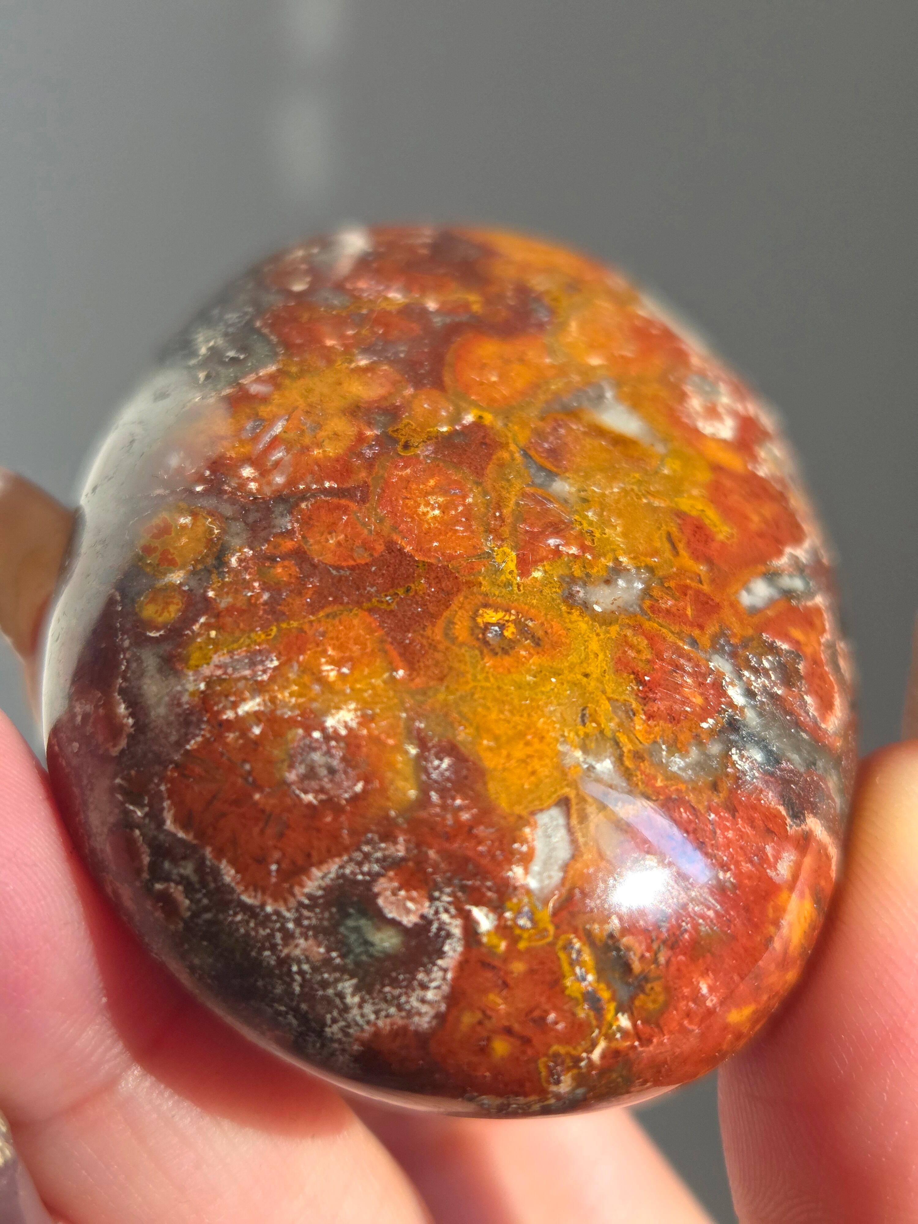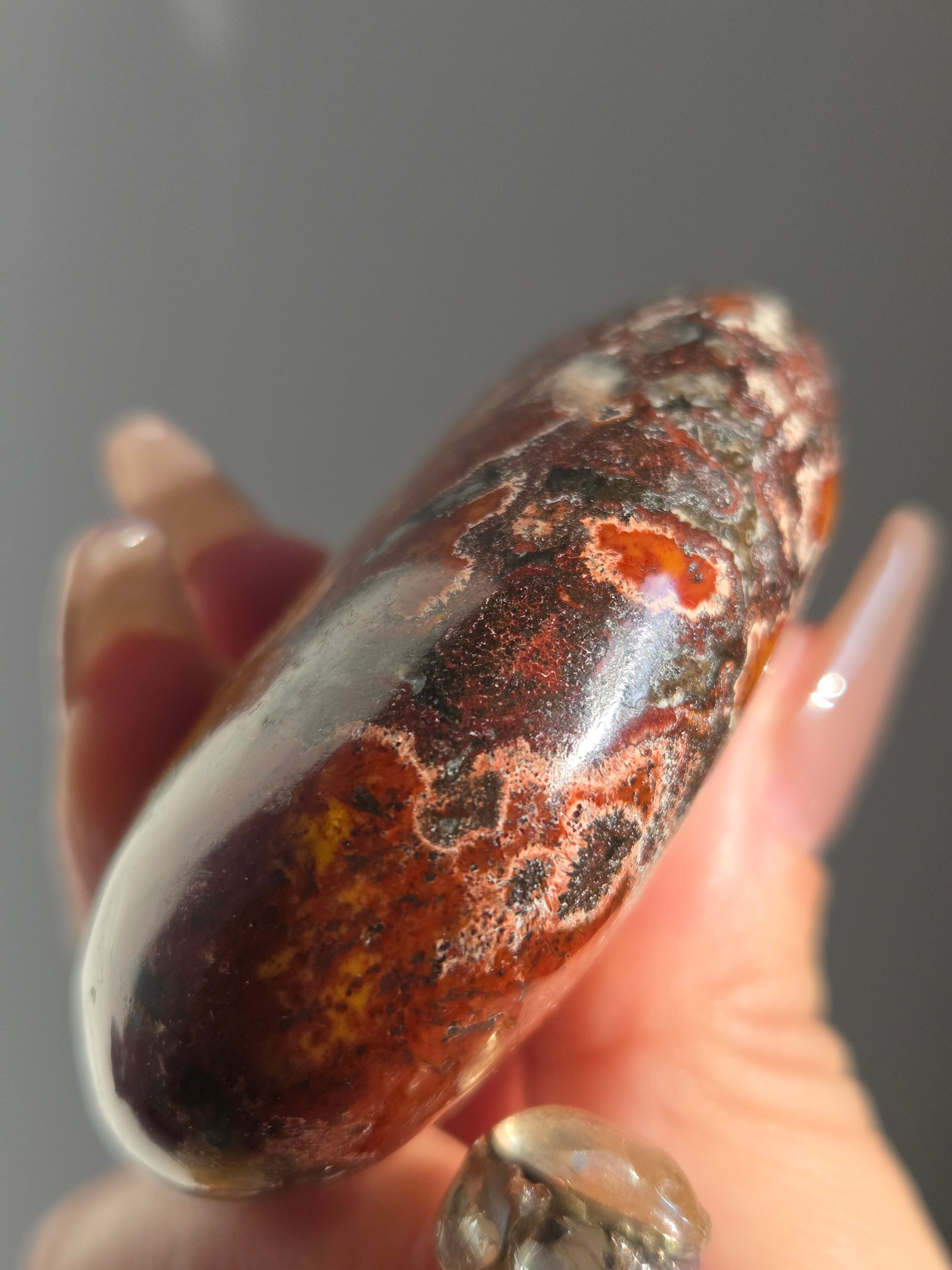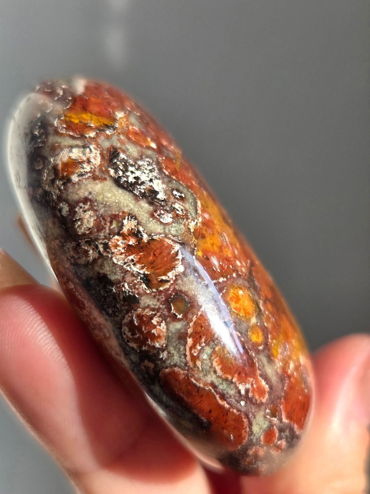 様々な名前で呼ばれるカラフルなジャスパーで、ボンベイジャスパーの他、キングコブラジャスパー、カラフルジャスパー、オービュキュラージャスパーなどなど、様々な愛称で呼ばれています。