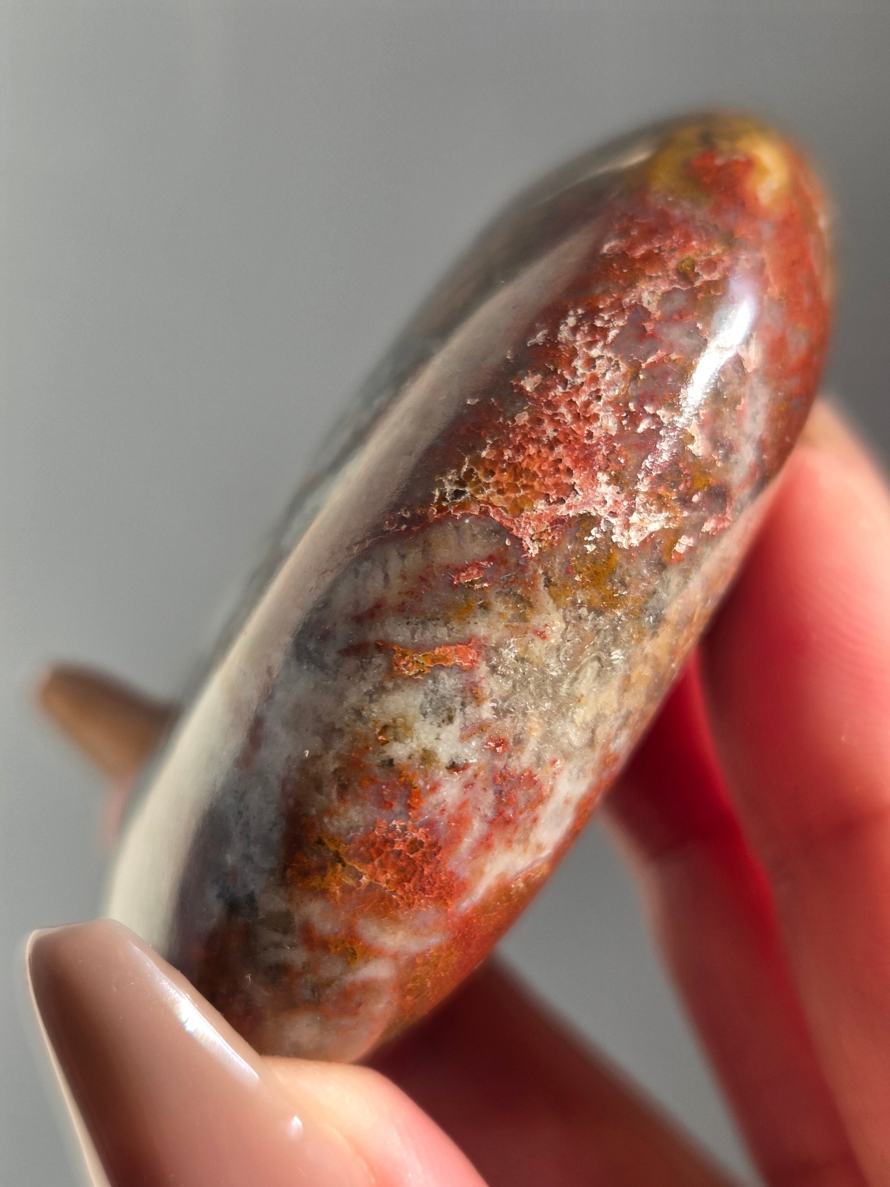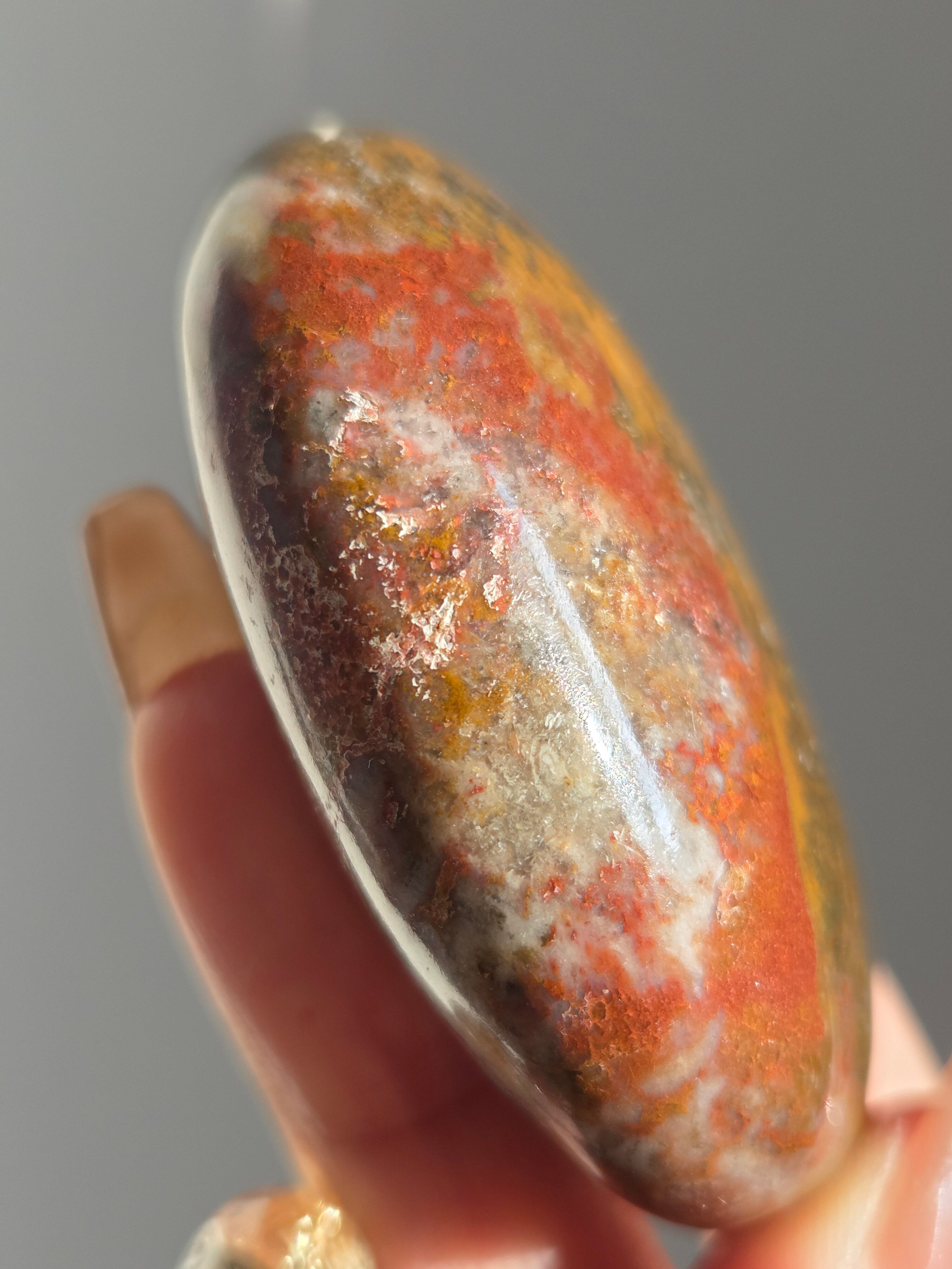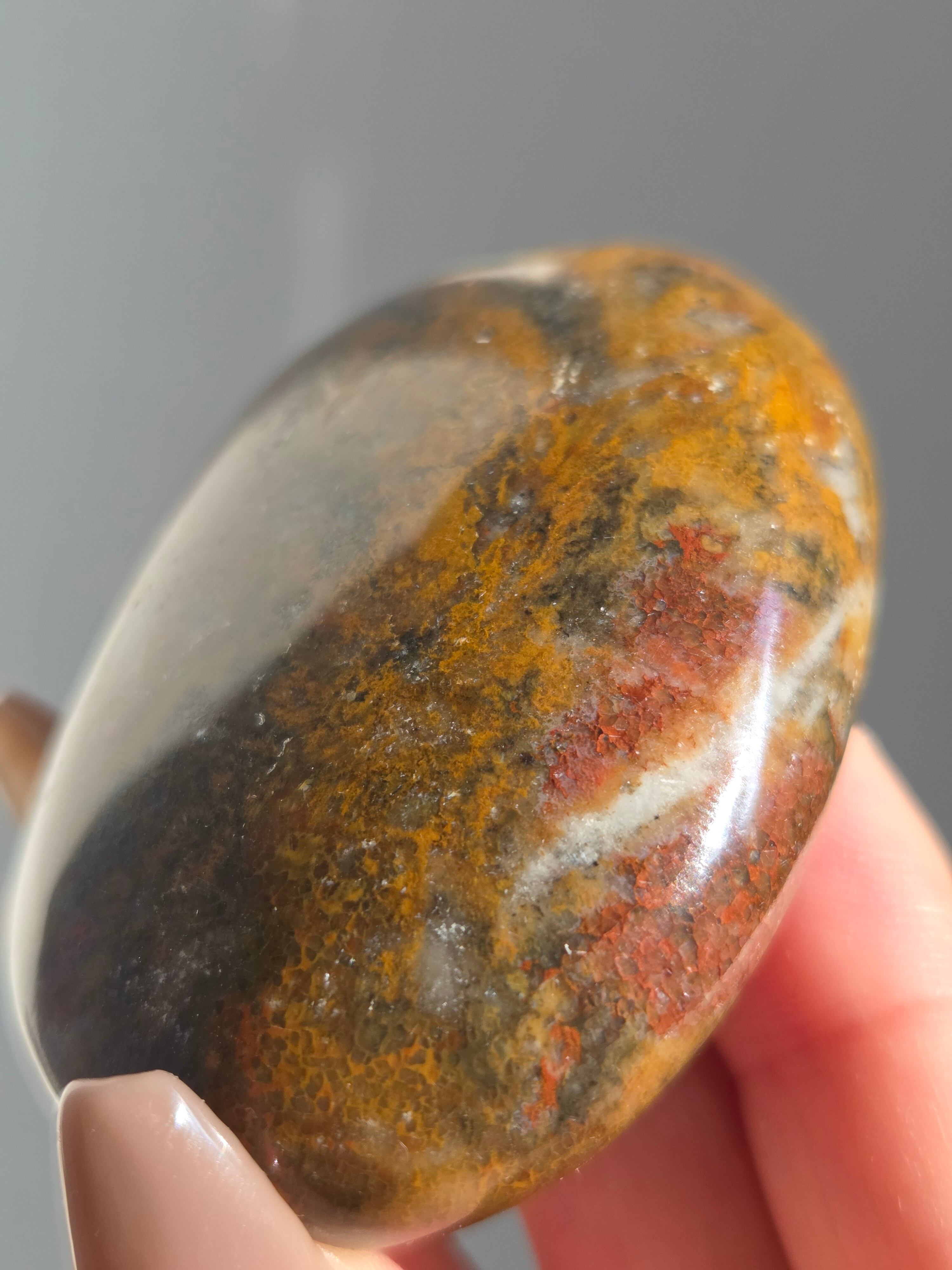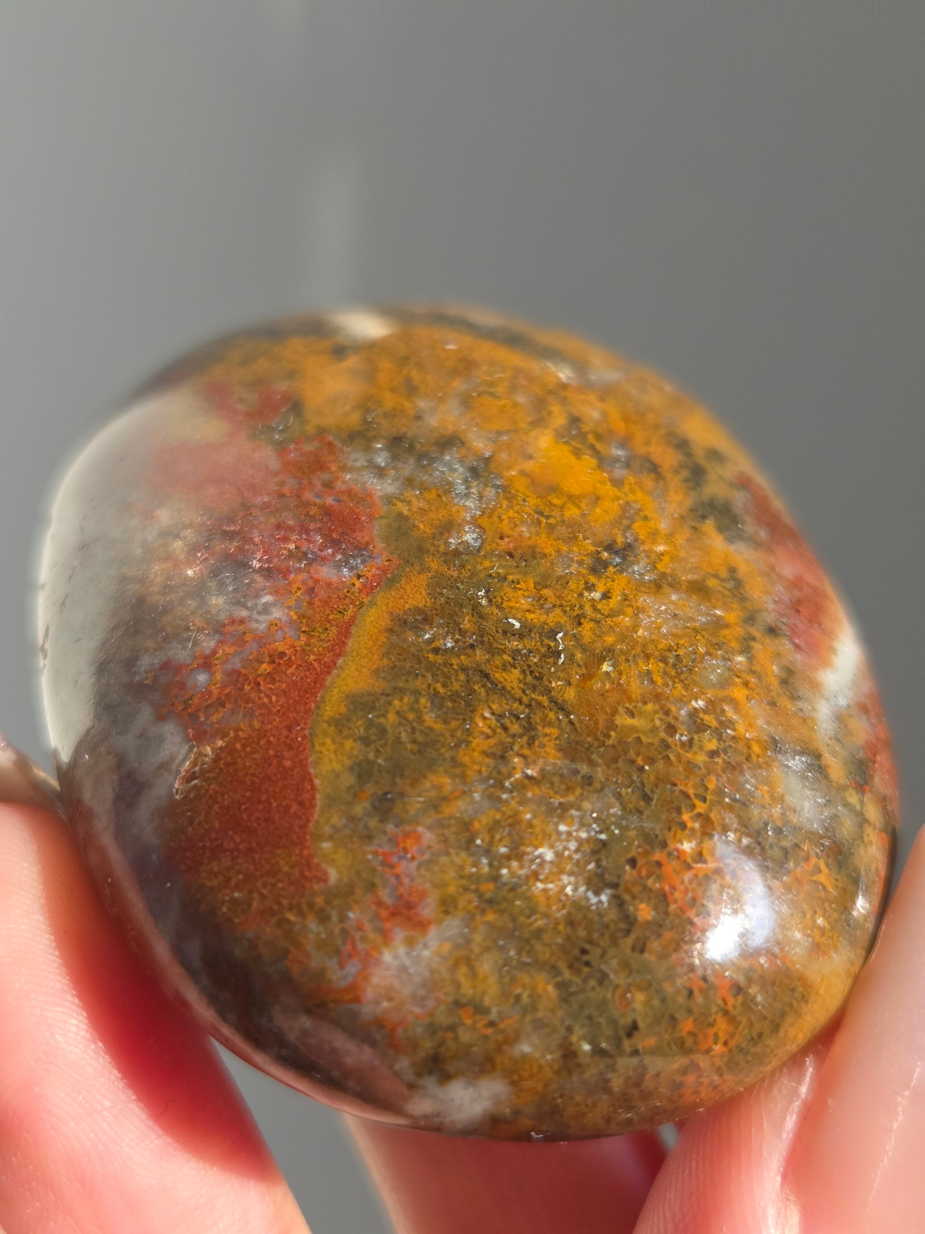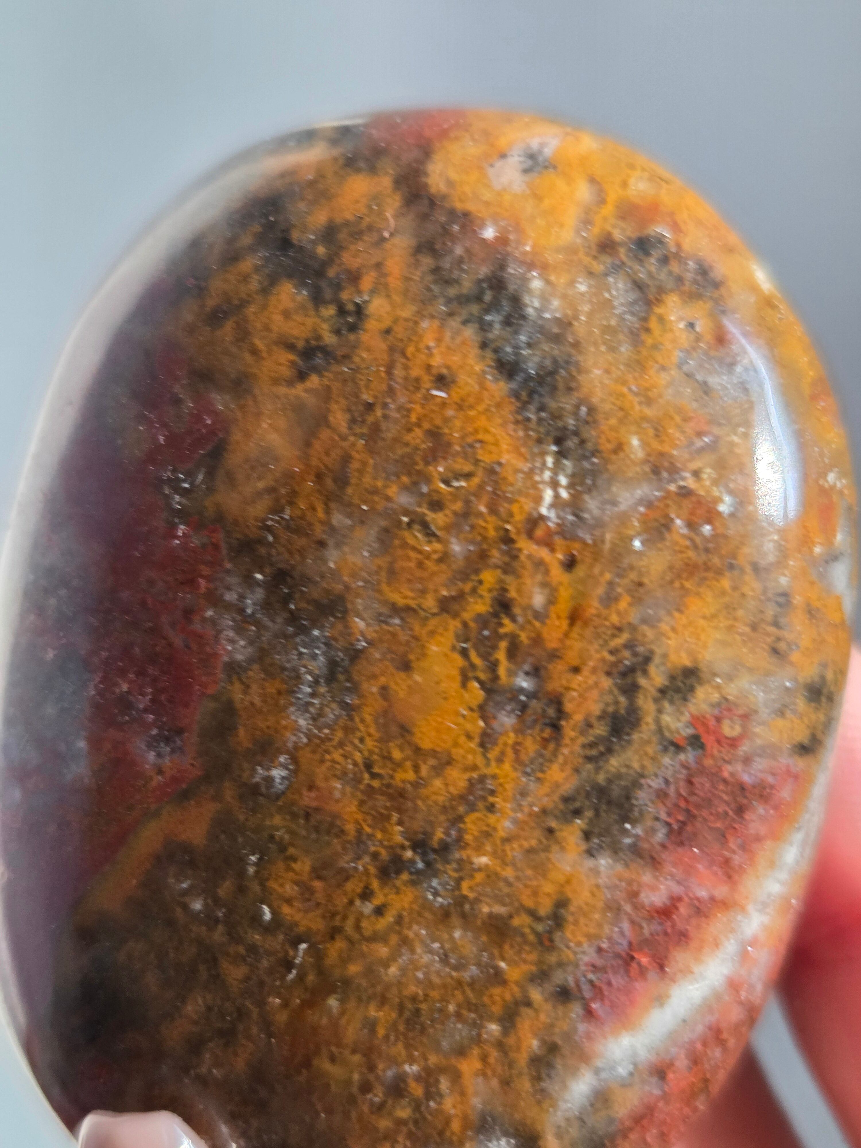 様々な名前で呼ばれるカラフルなジャスパーで、ボンベイジャスパーの他、キングコブラジャスパー、カラフルジャスパー、オービュキュラージャスパーなどなど、様々な愛称で呼ばれています。