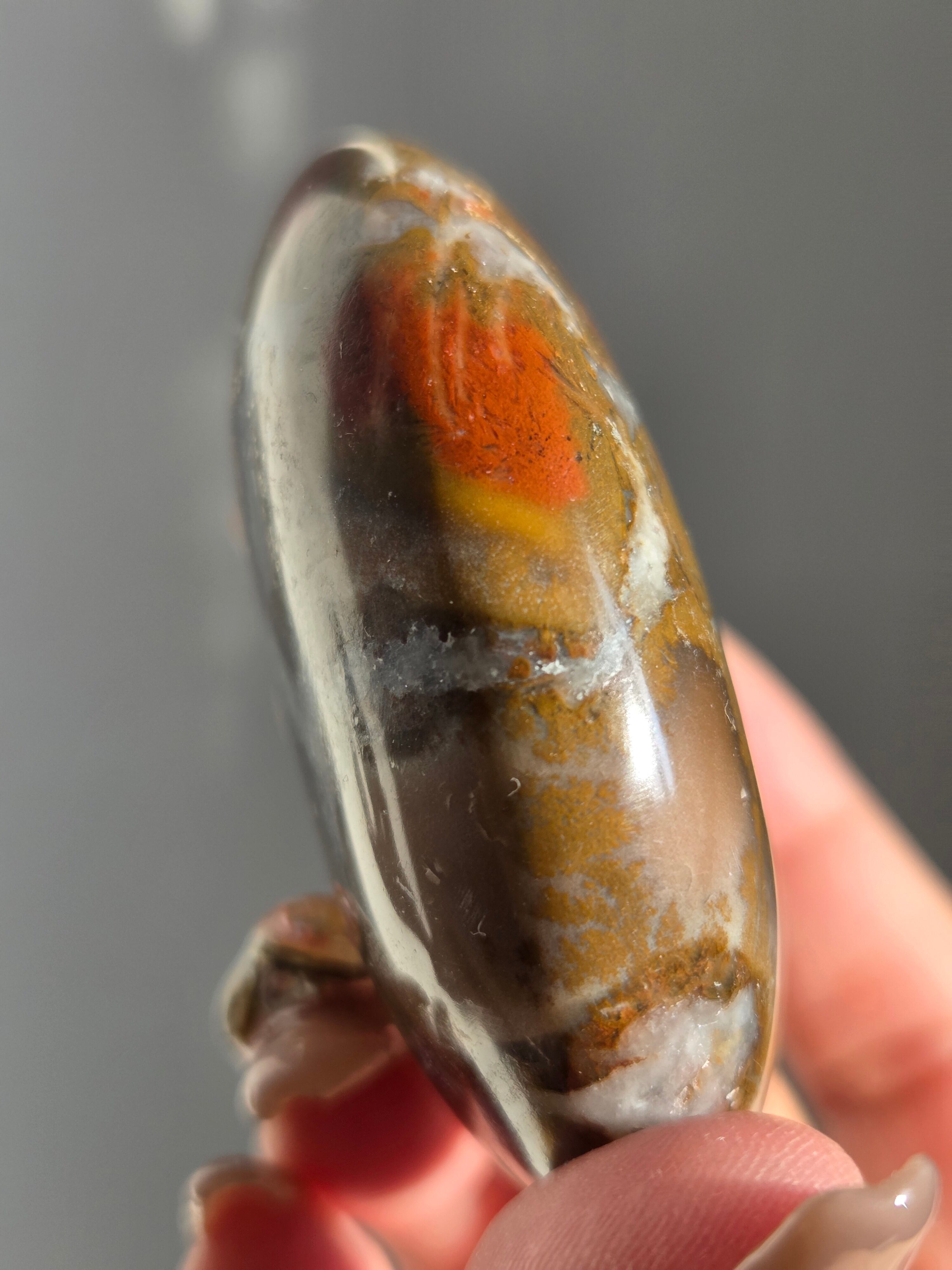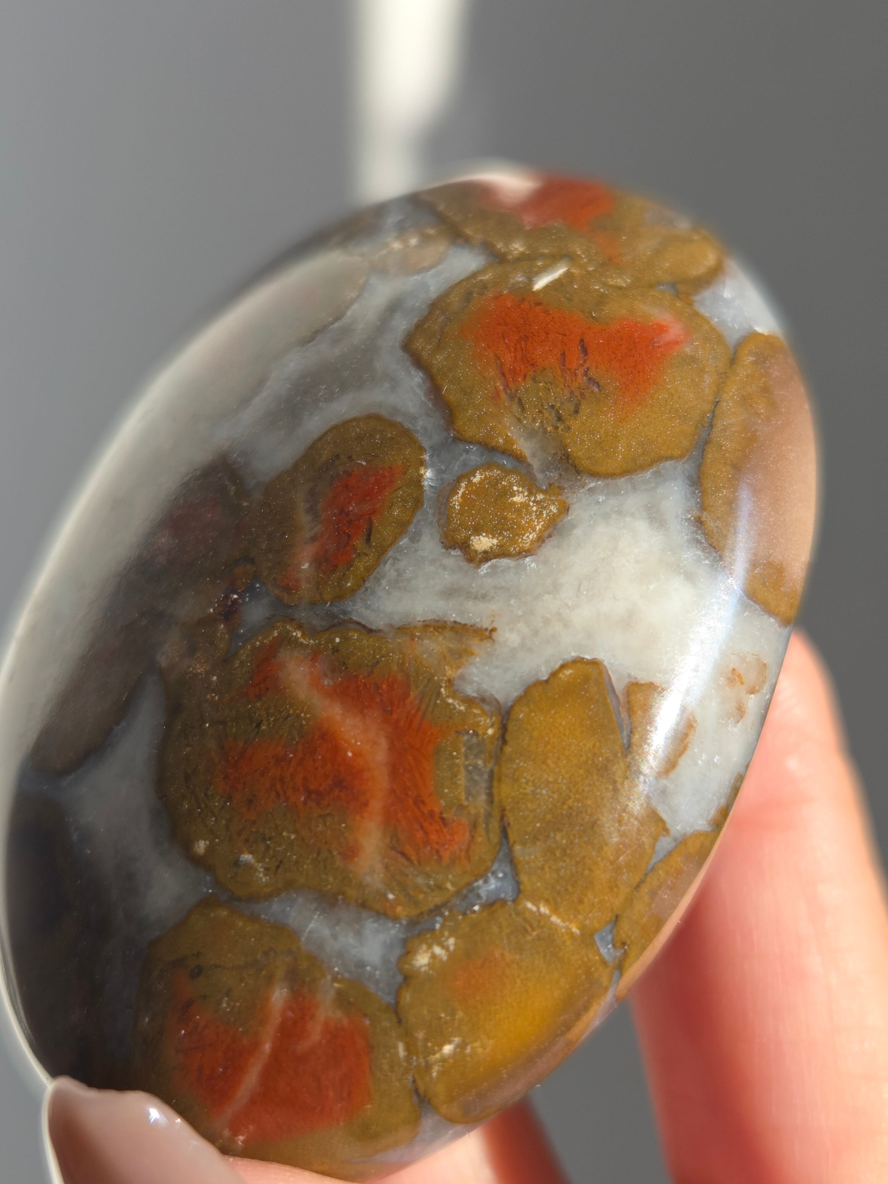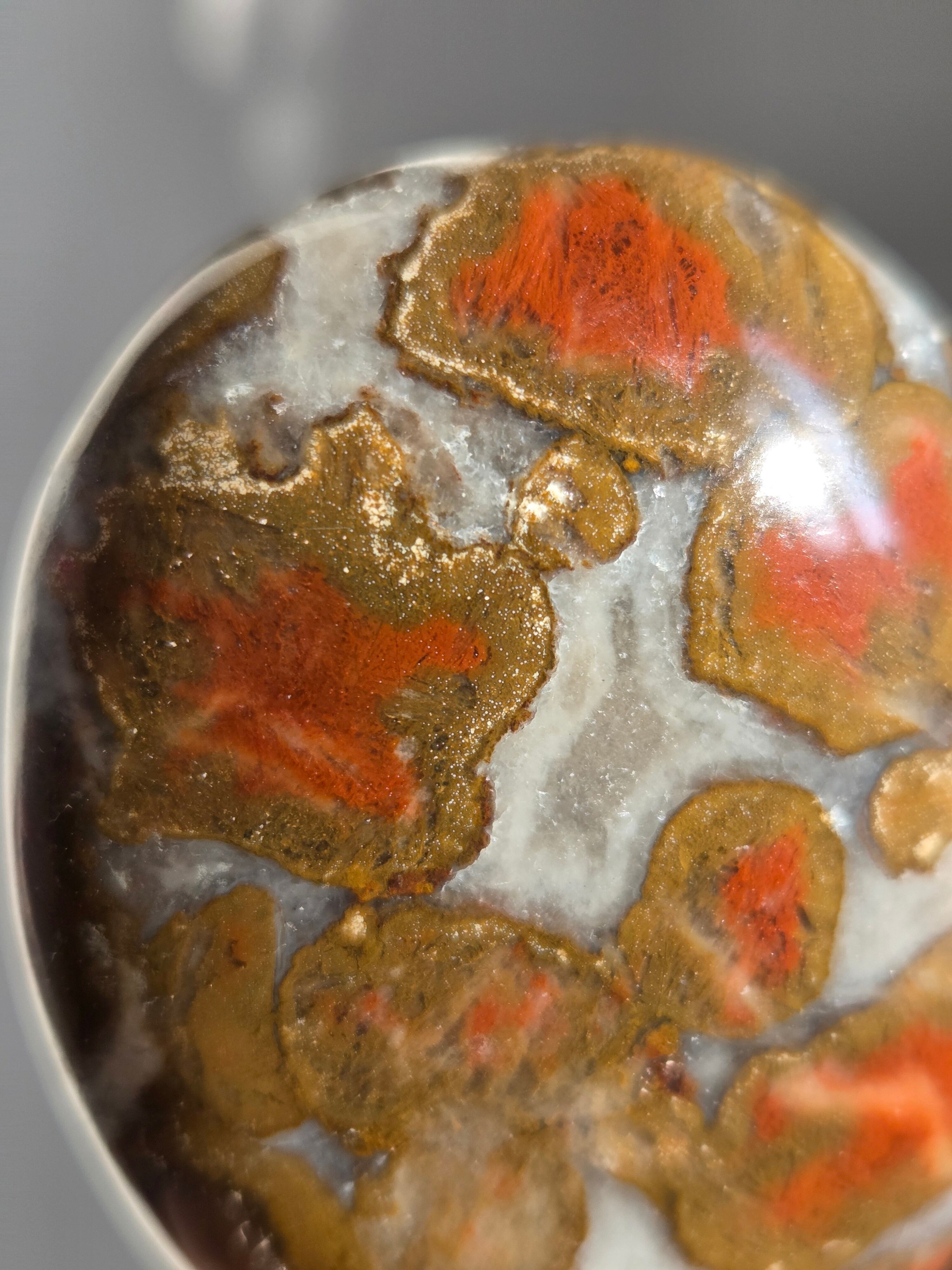 様々な名前で呼ばれるカラフルなジャスパーで、ボンベイジャスパーの他、キングコブラジャスパー、カラフルジャスパー、オービュキュラージャスパーなどなど、様々な愛称で呼ばれています。
