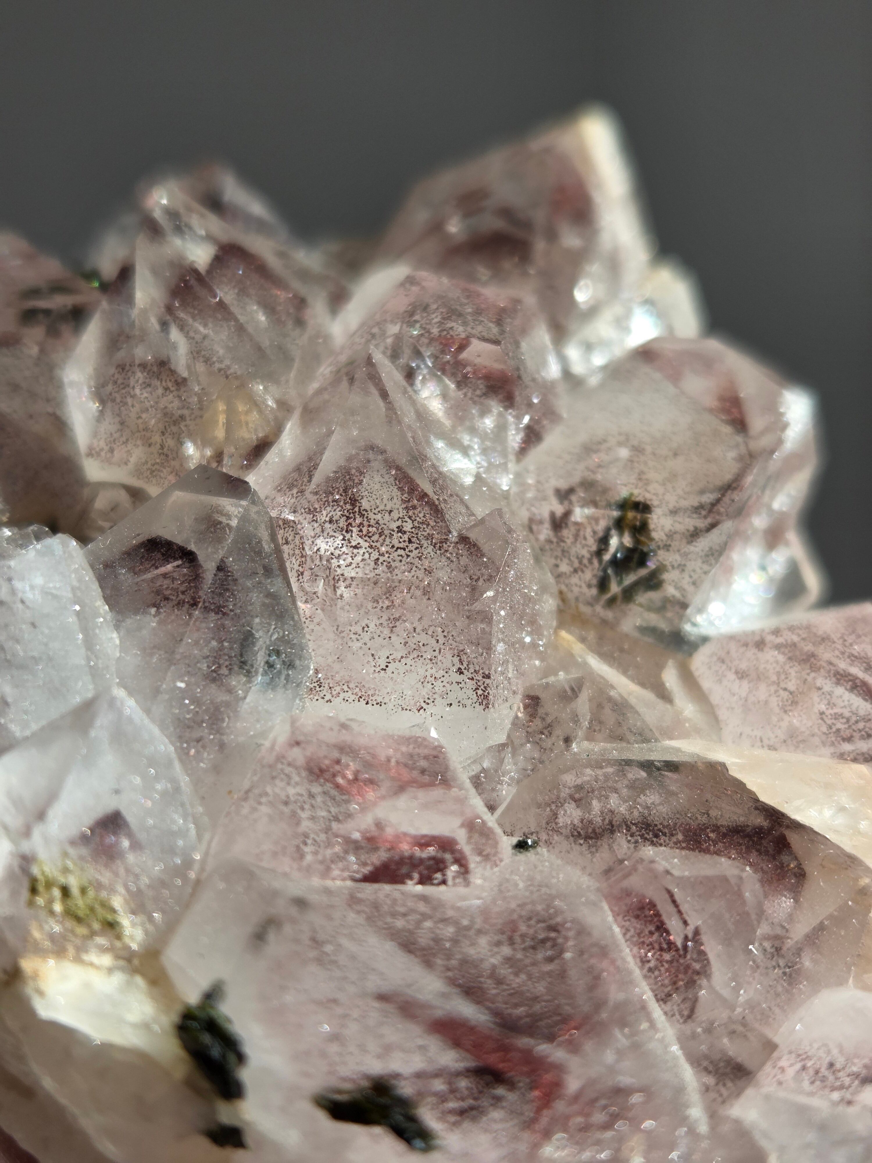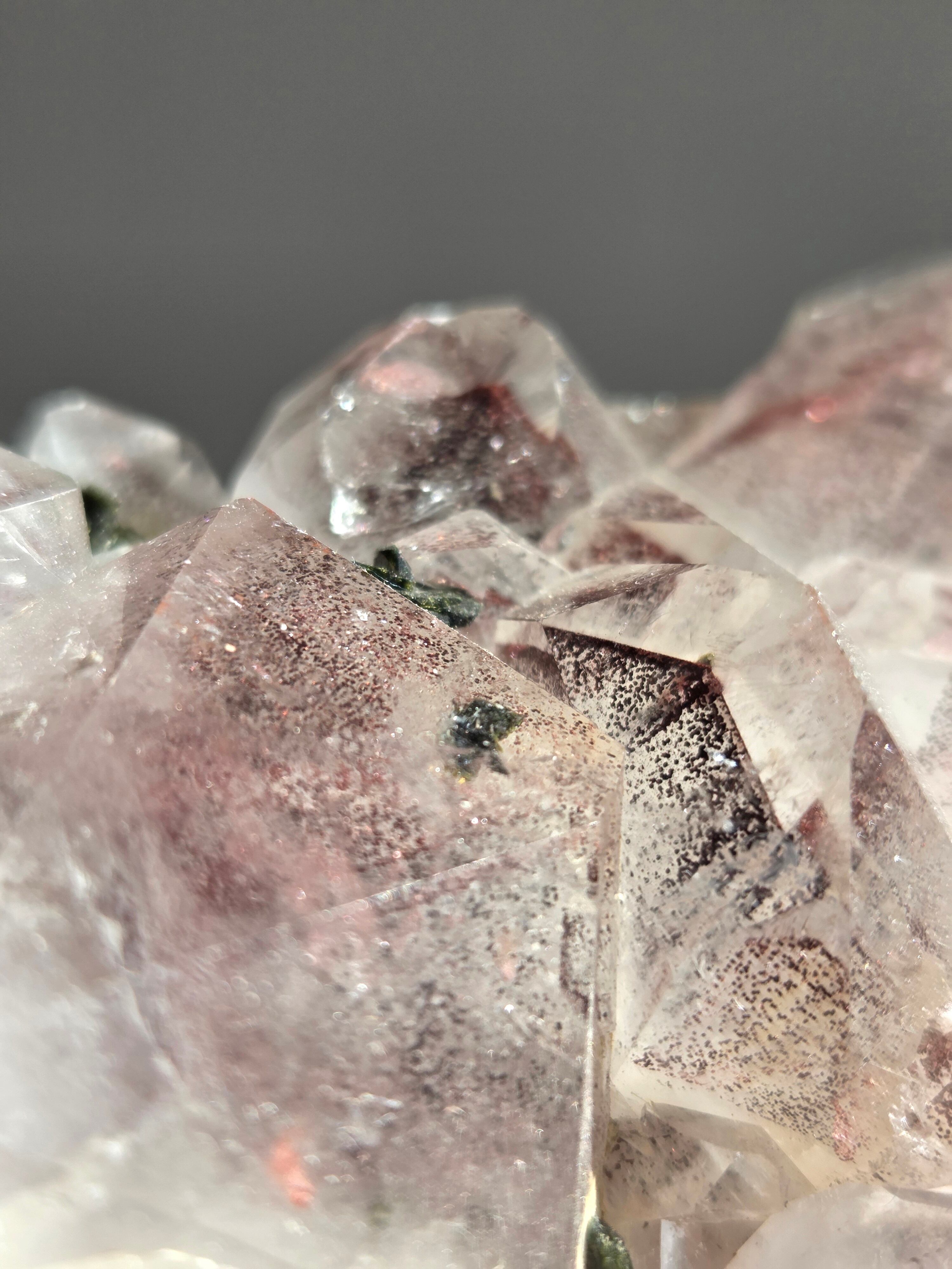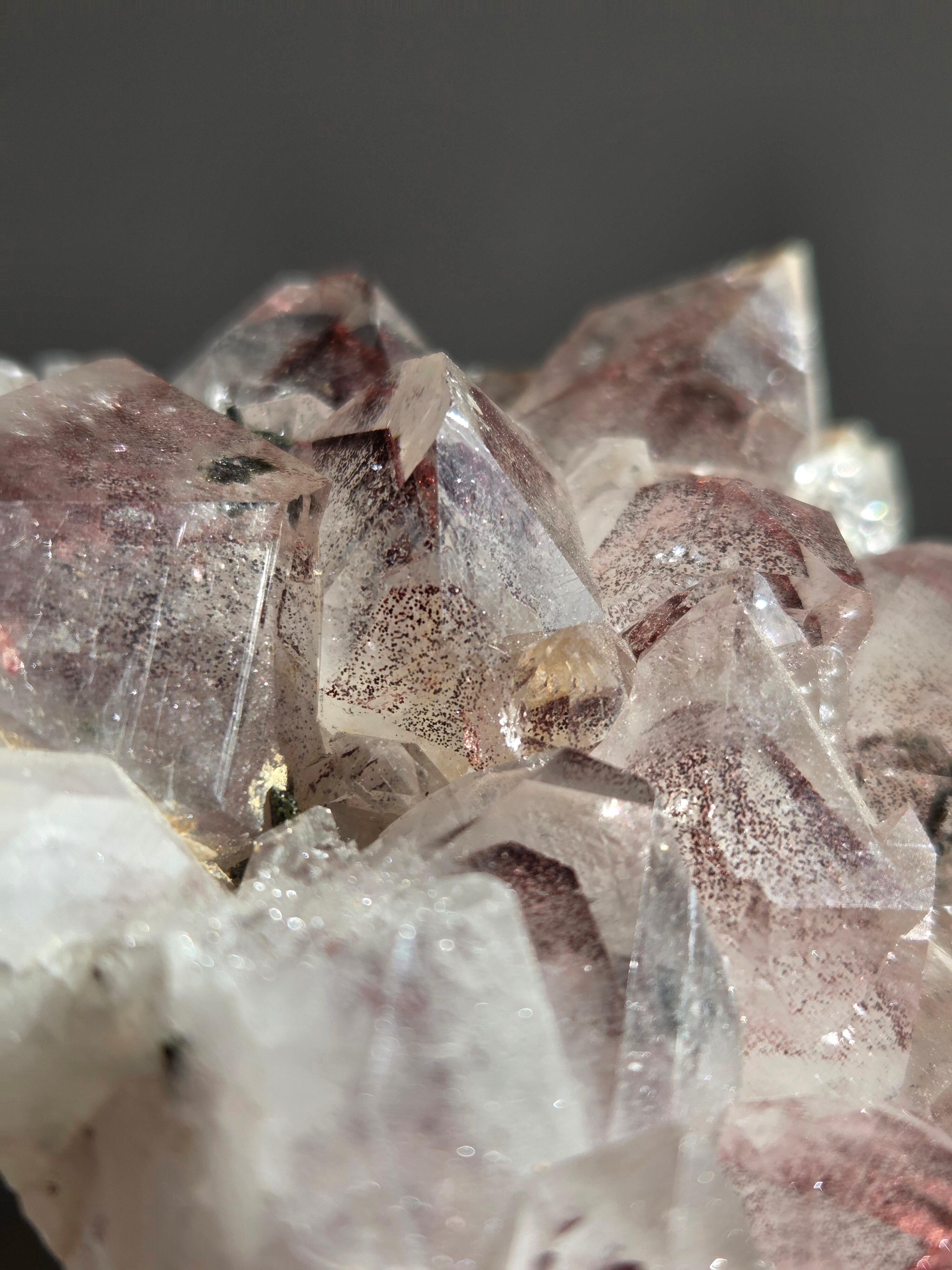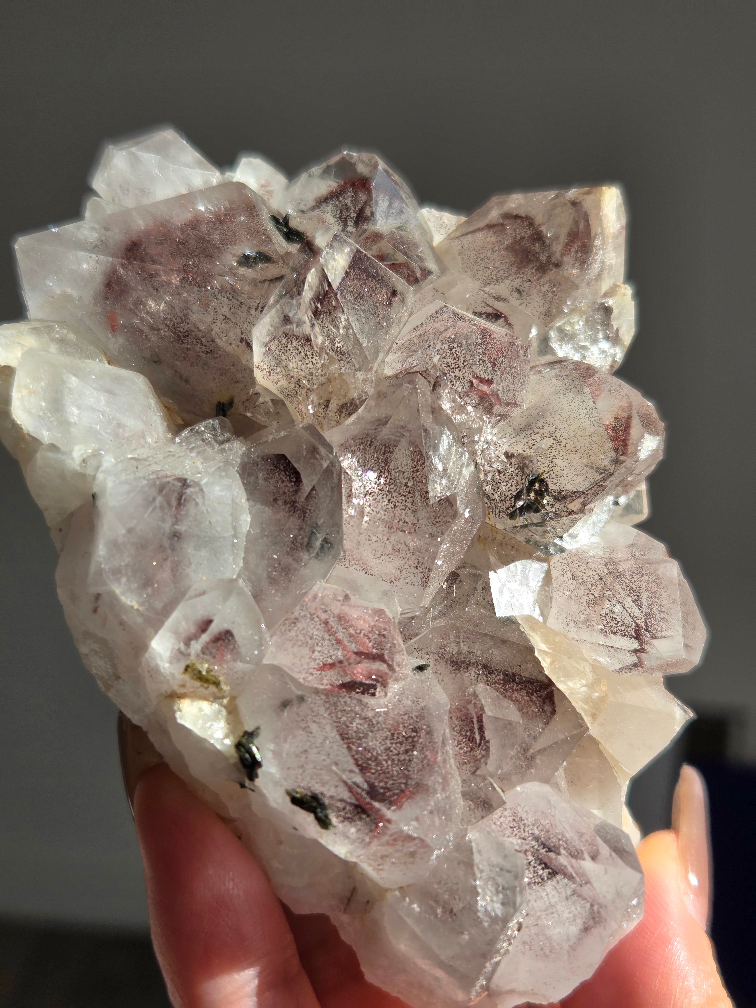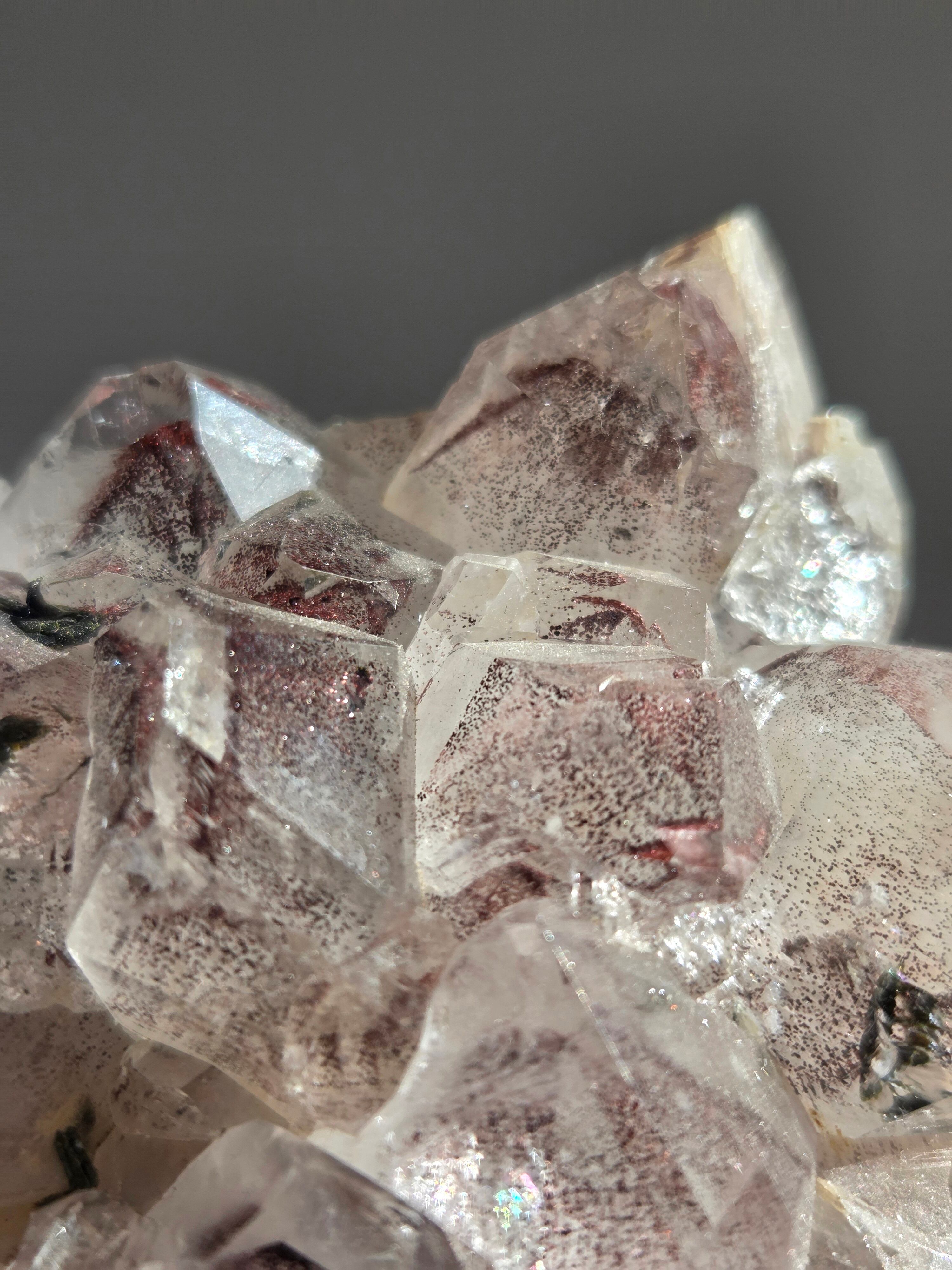 「レッドファントムクォーツ」とは、水晶の成長過程でヘマタイト(赤鉄鉱)が覆い被さり、その後再成長することで水晶と水晶の間に “山の形に閉じ込められ形成” された幻想的で希少な天然石です。