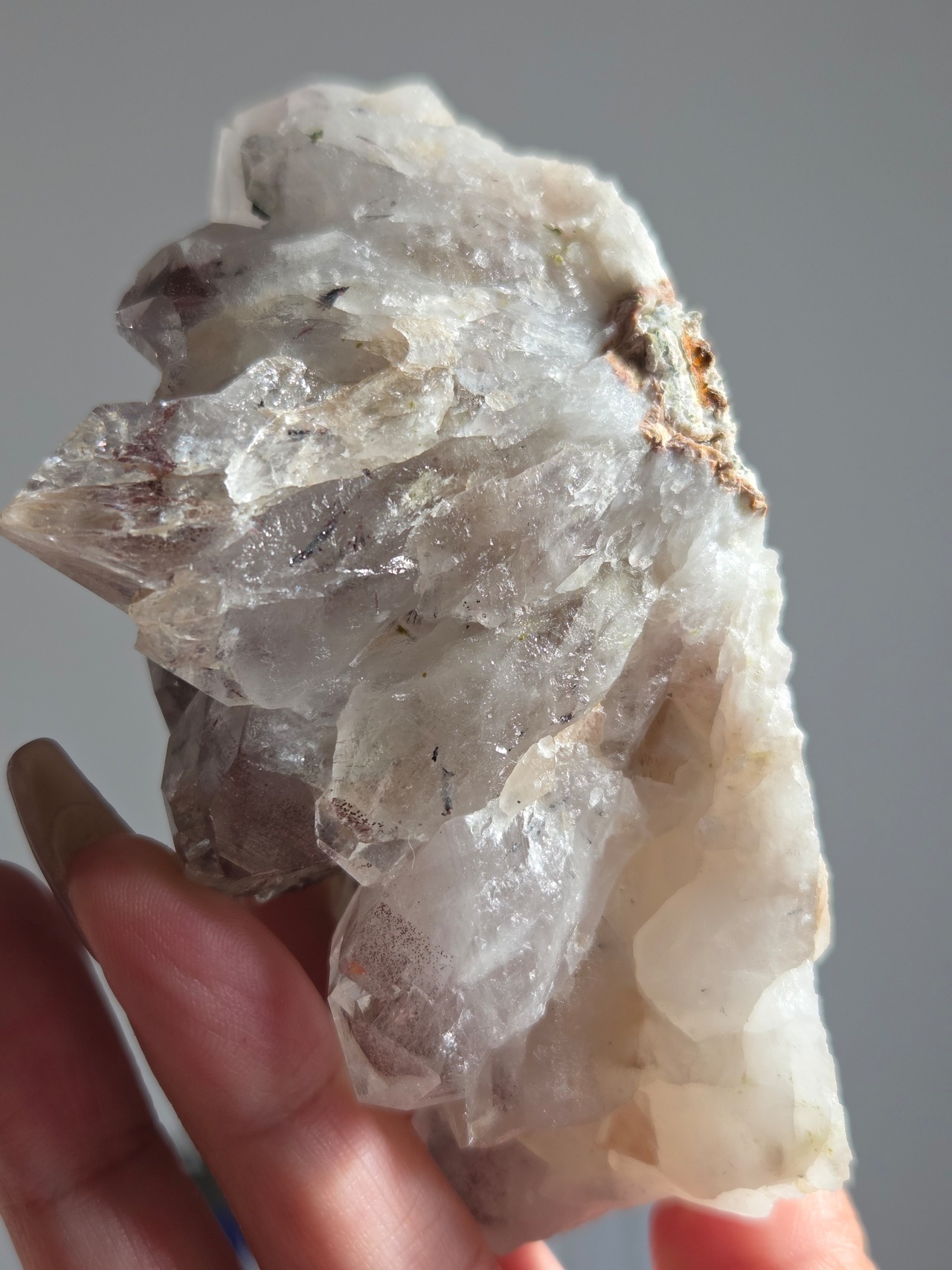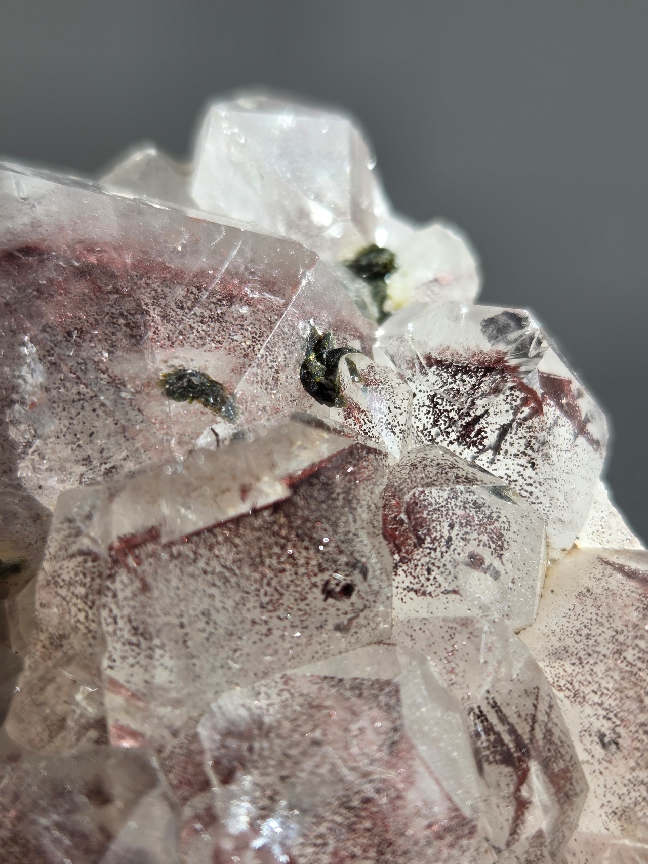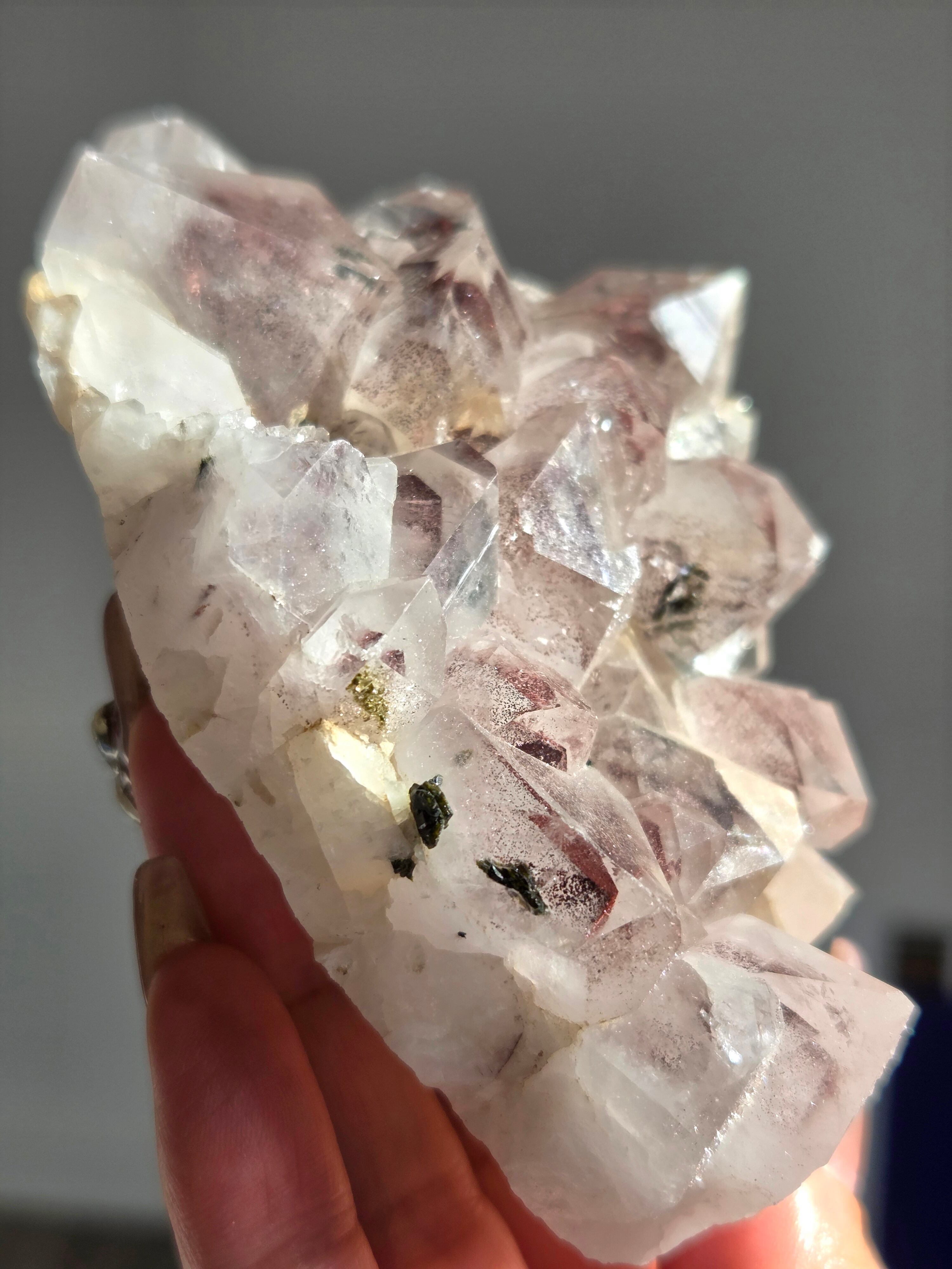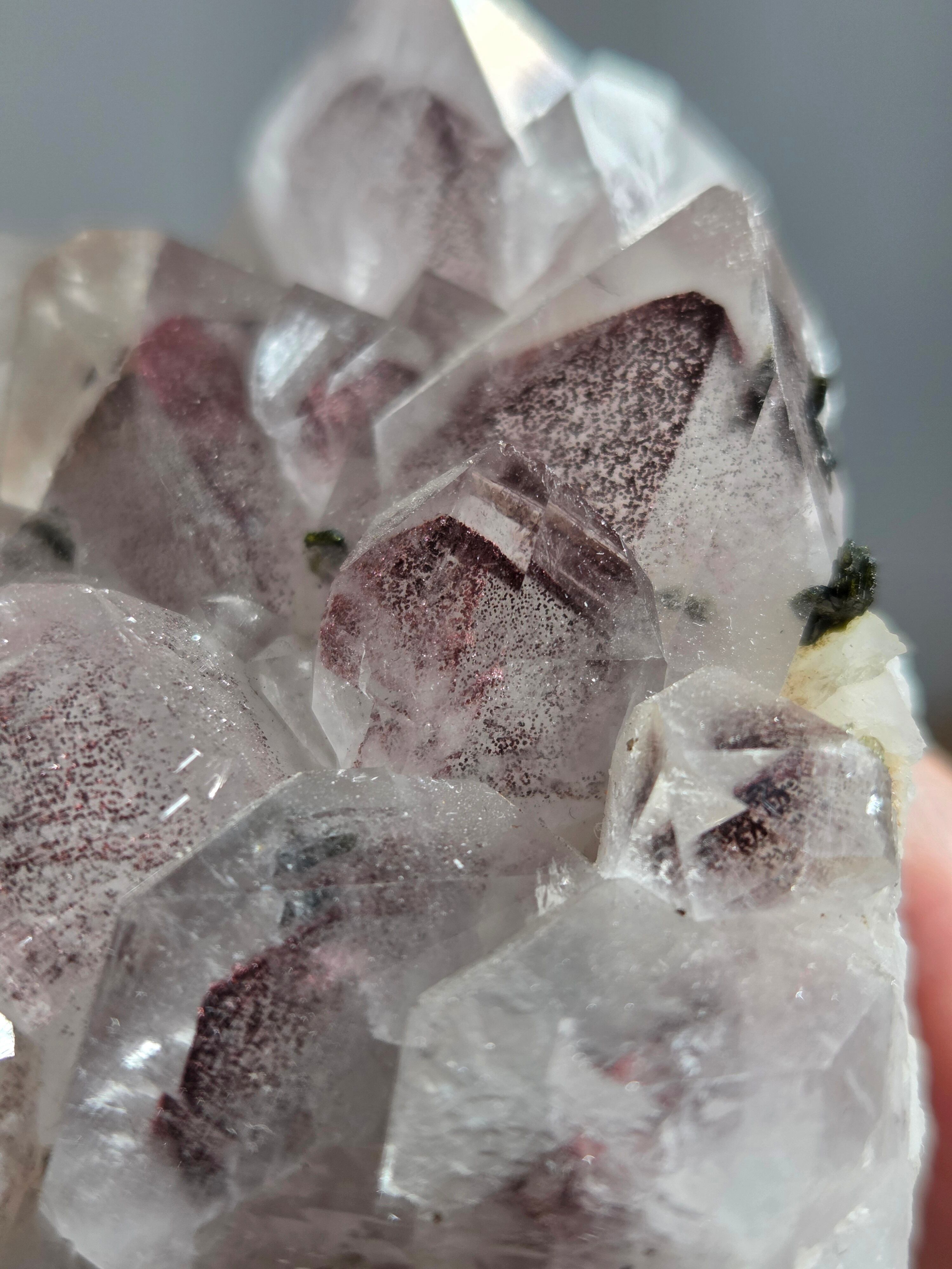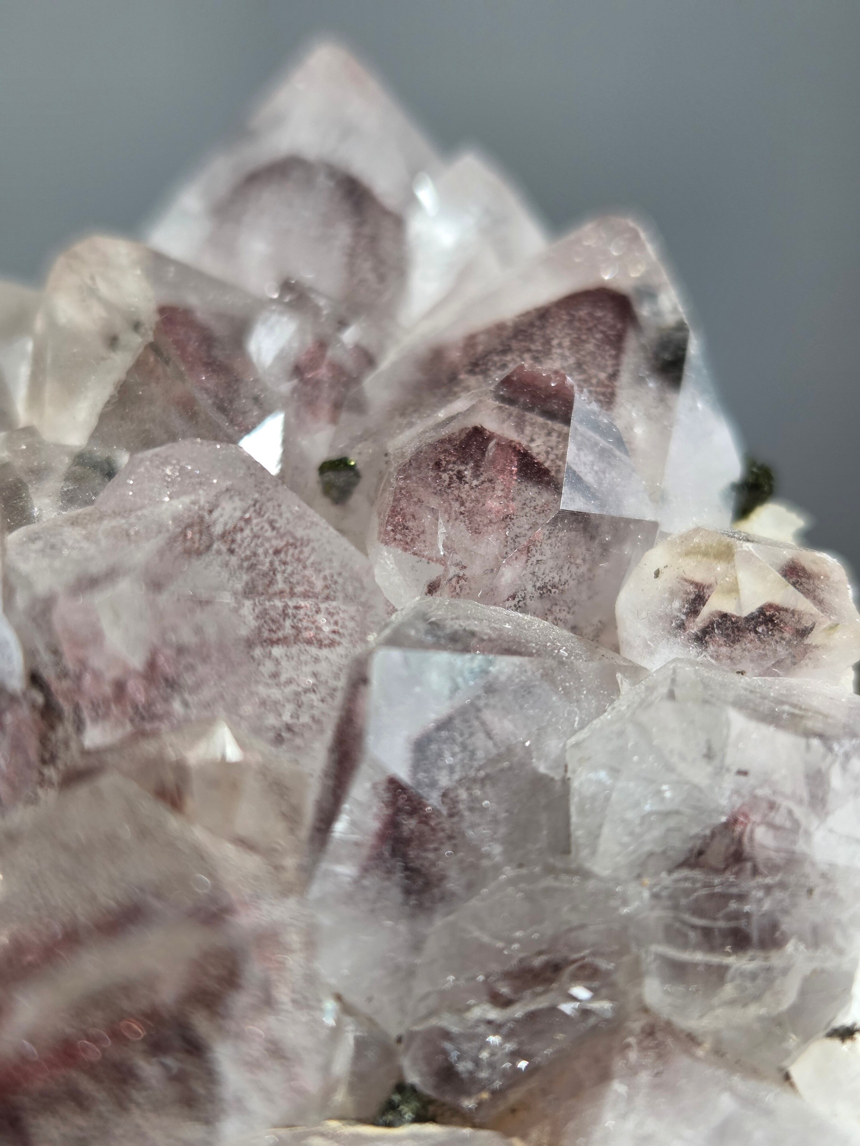 「レッドファントムクォーツ」とは、水晶の成長過程でヘマタイト(赤鉄鉱)が覆い被さり、その後再成長することで水晶と水晶の間に “山の形に閉じ込められ形成” された幻想的で希少な天然石です。