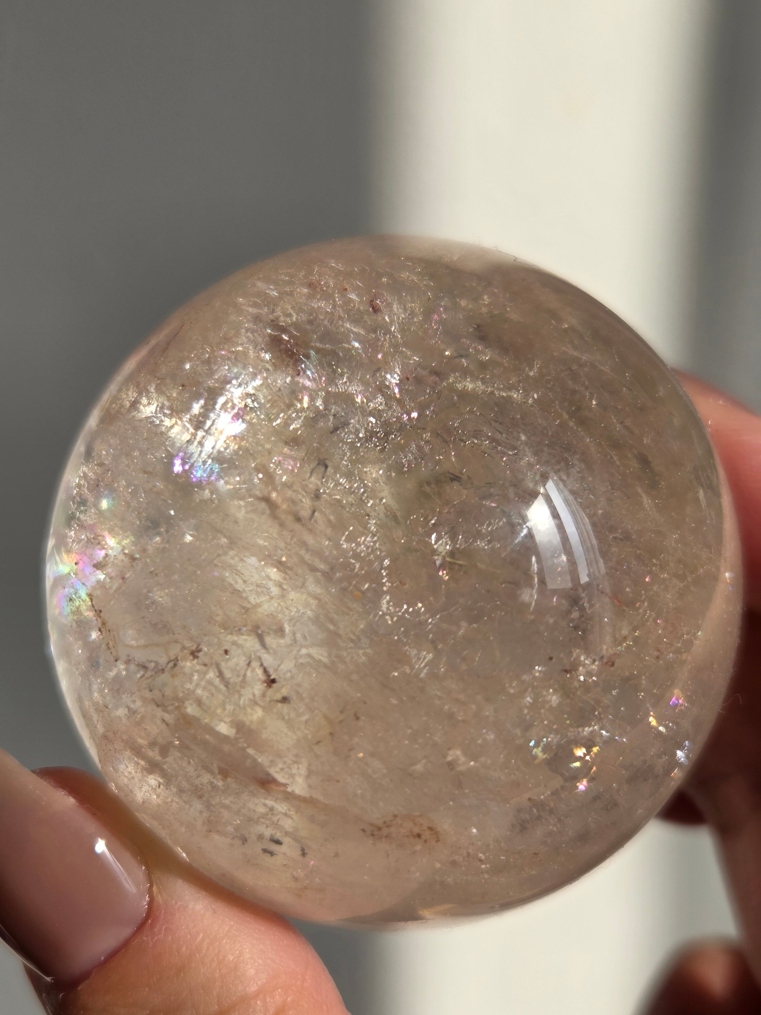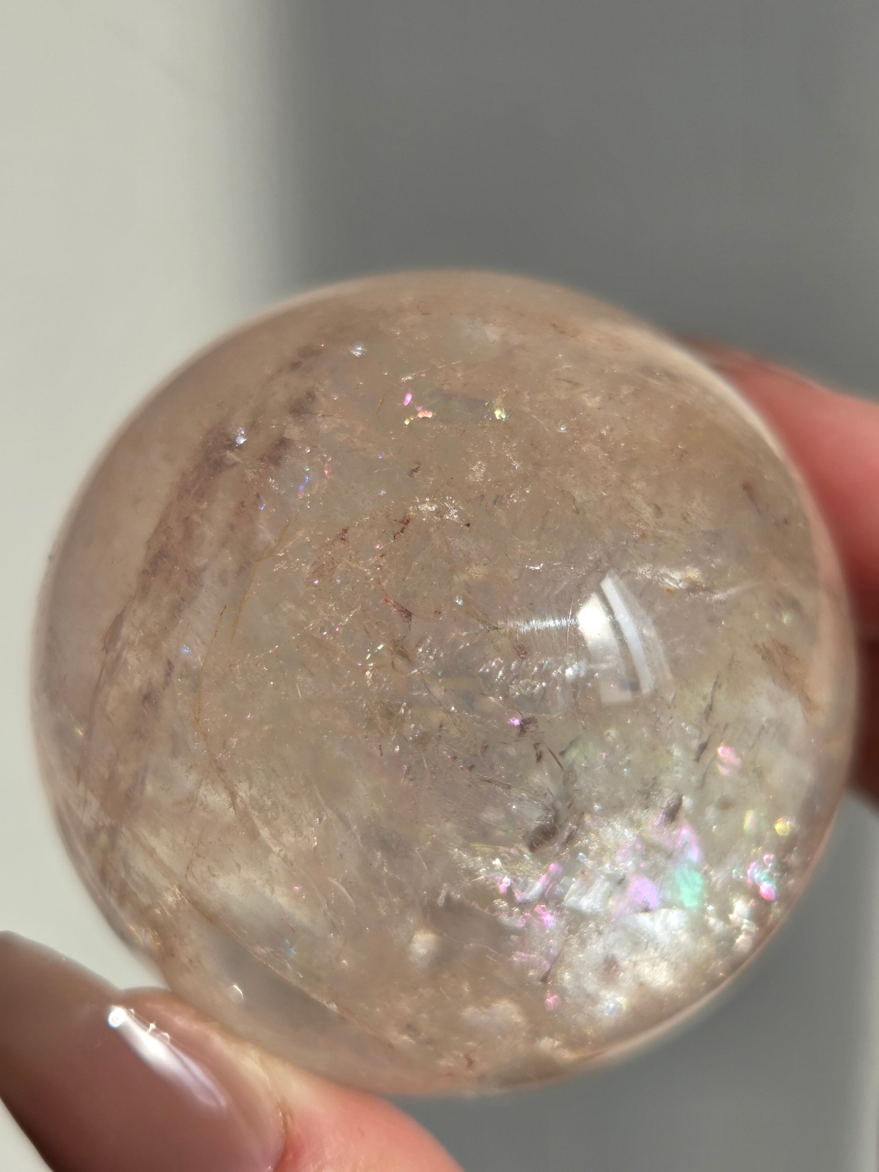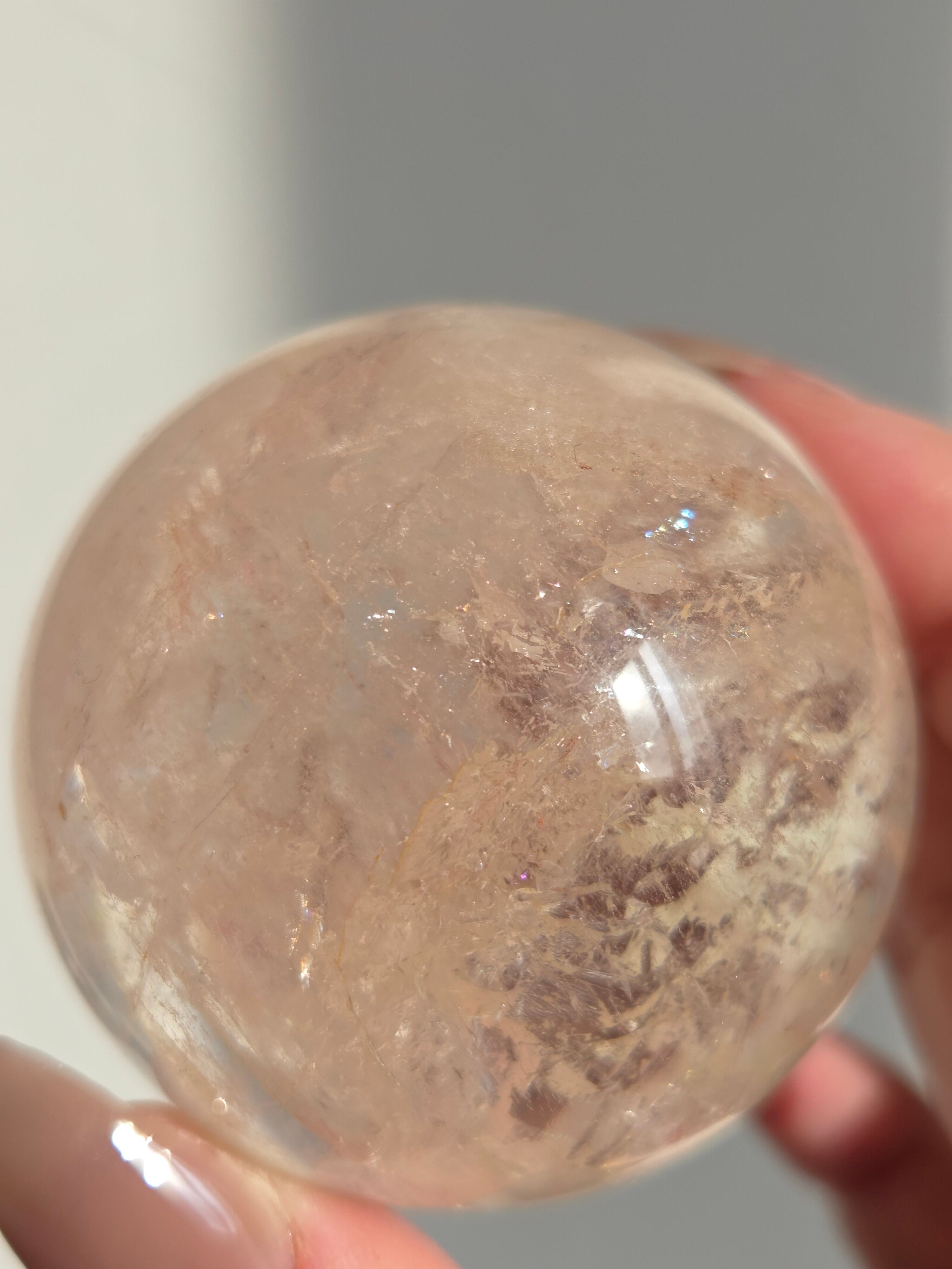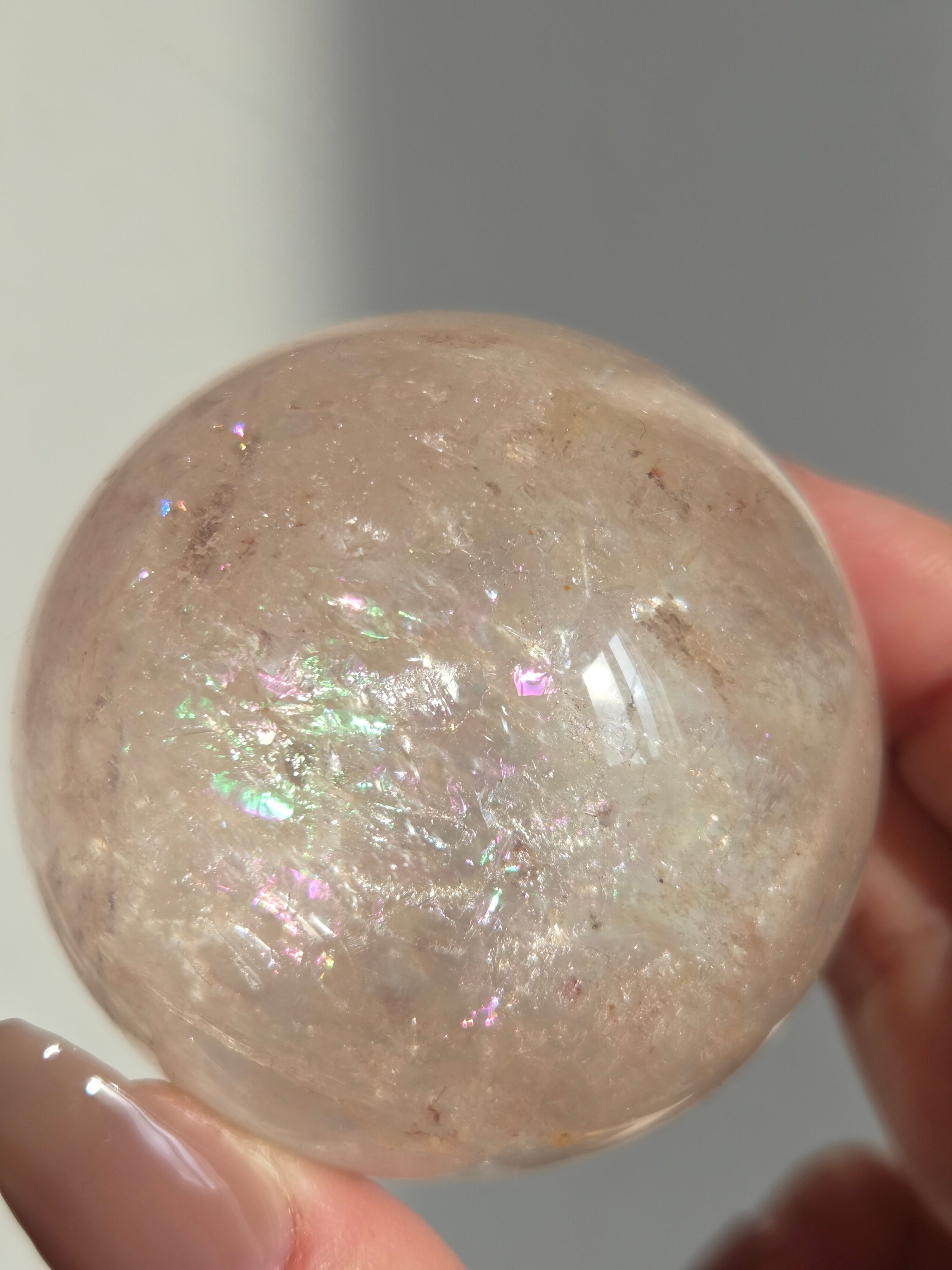 ほんのりピンクに色づいた、沢山の虹が煌めくスフィアです。