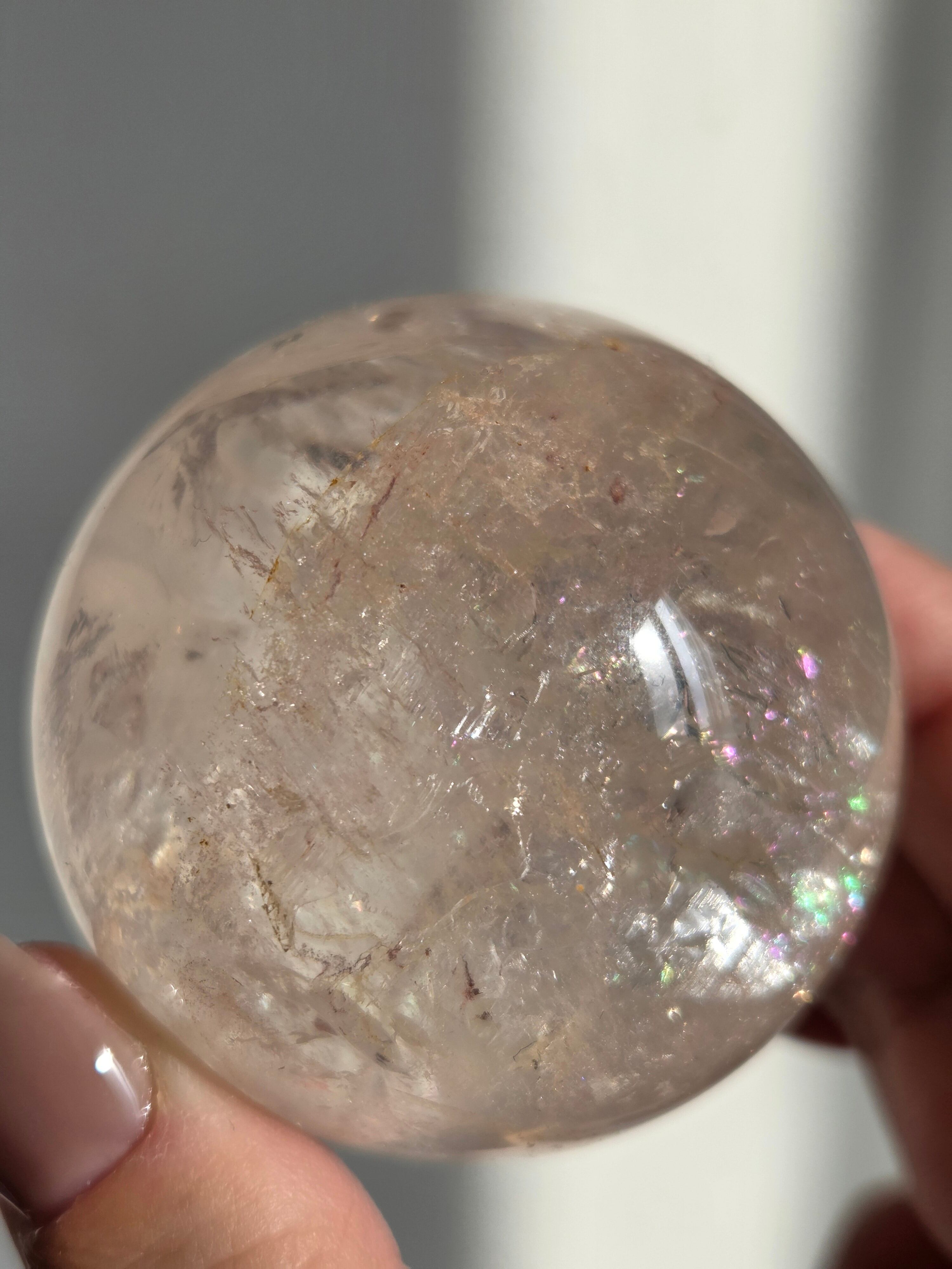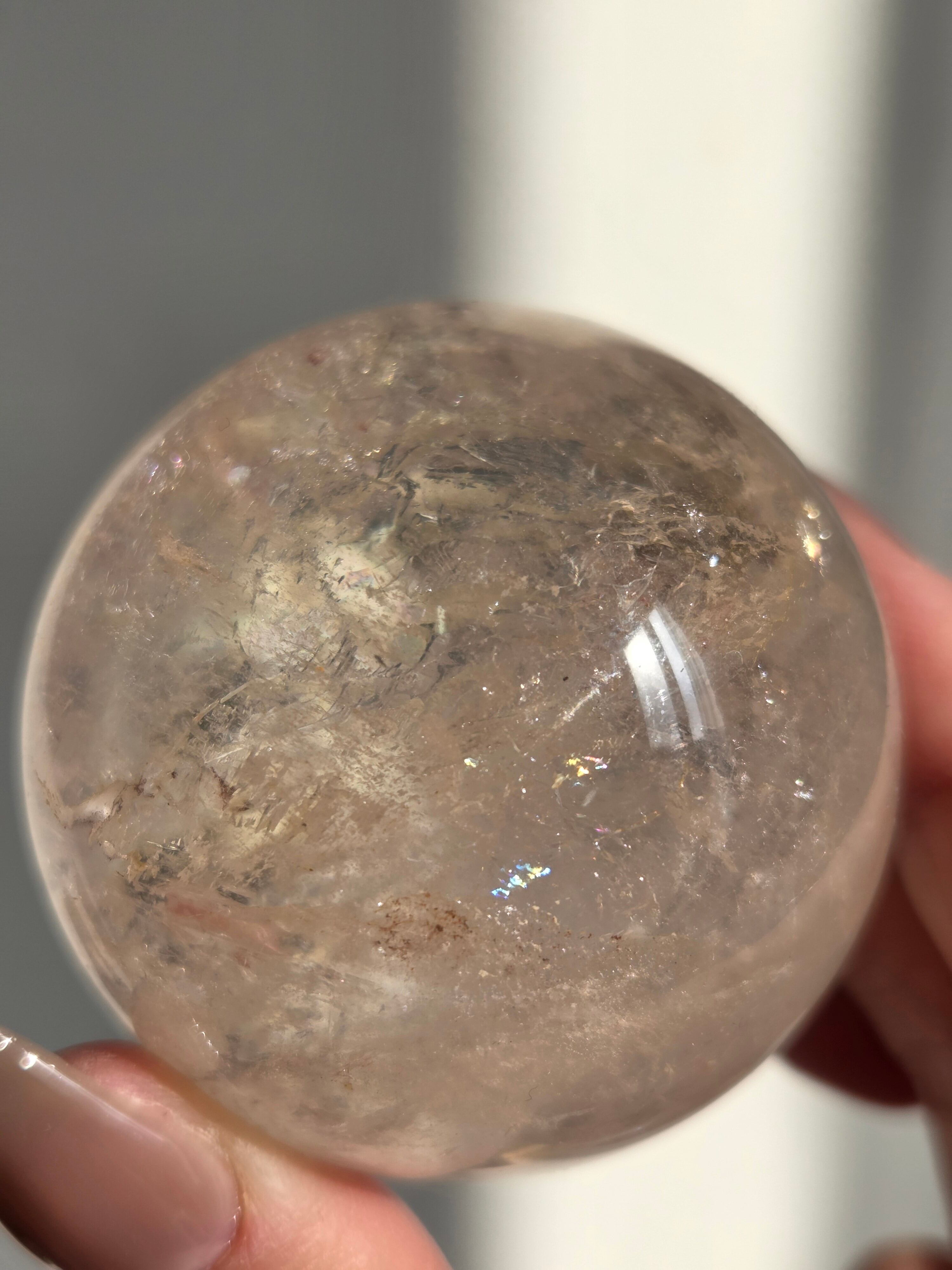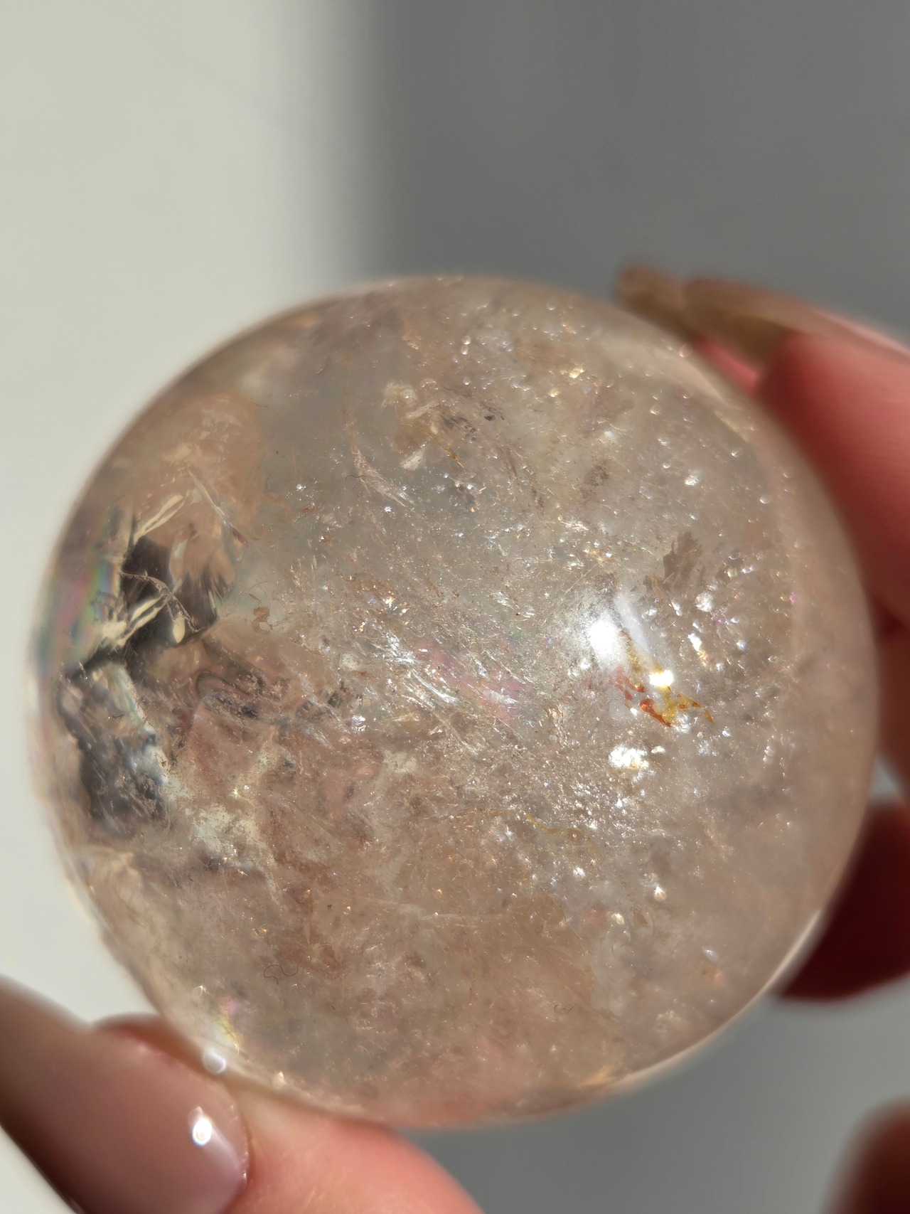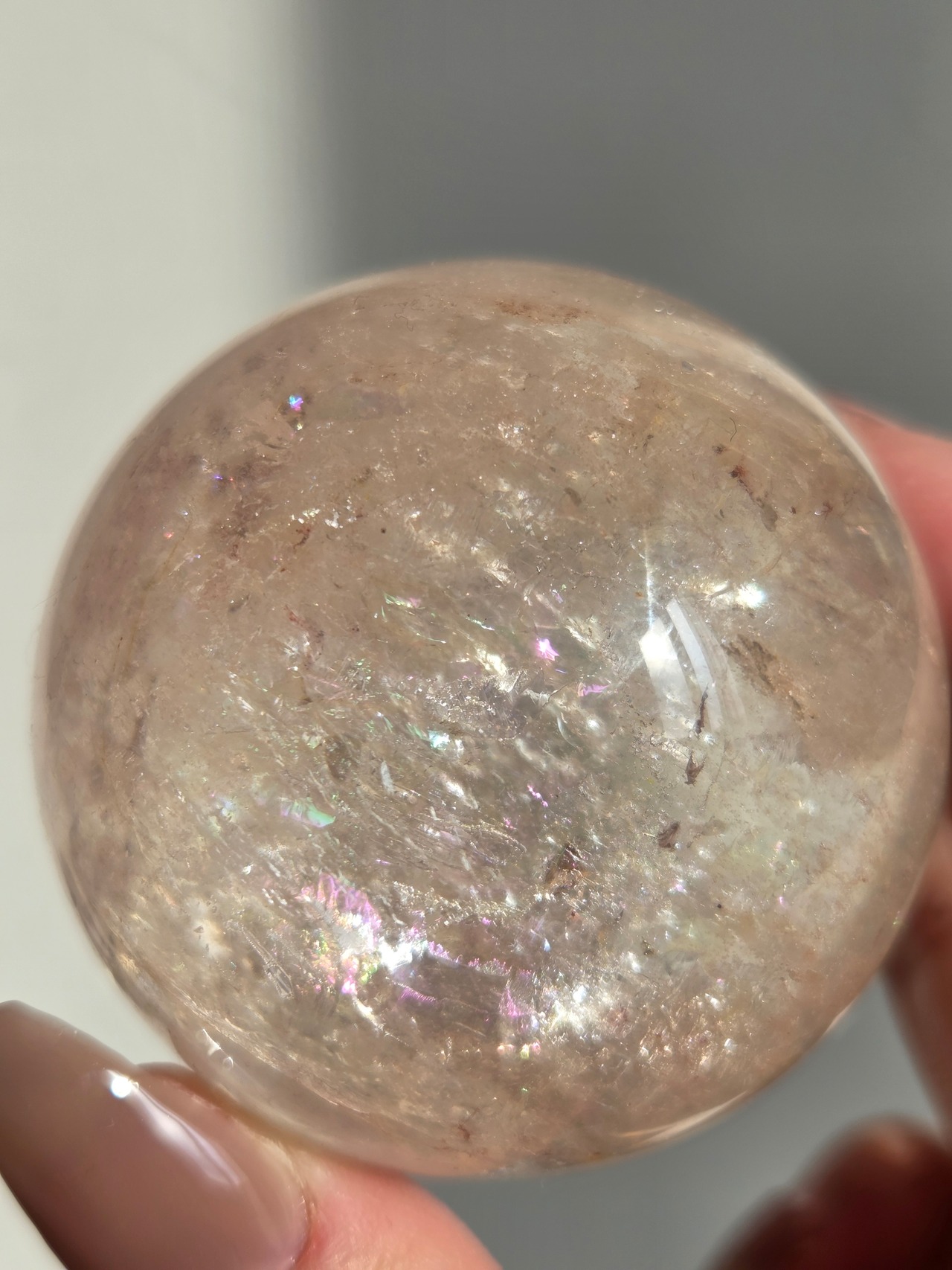 ほんのりピンクに色づいた、沢山の虹が煌めくスフィアです。