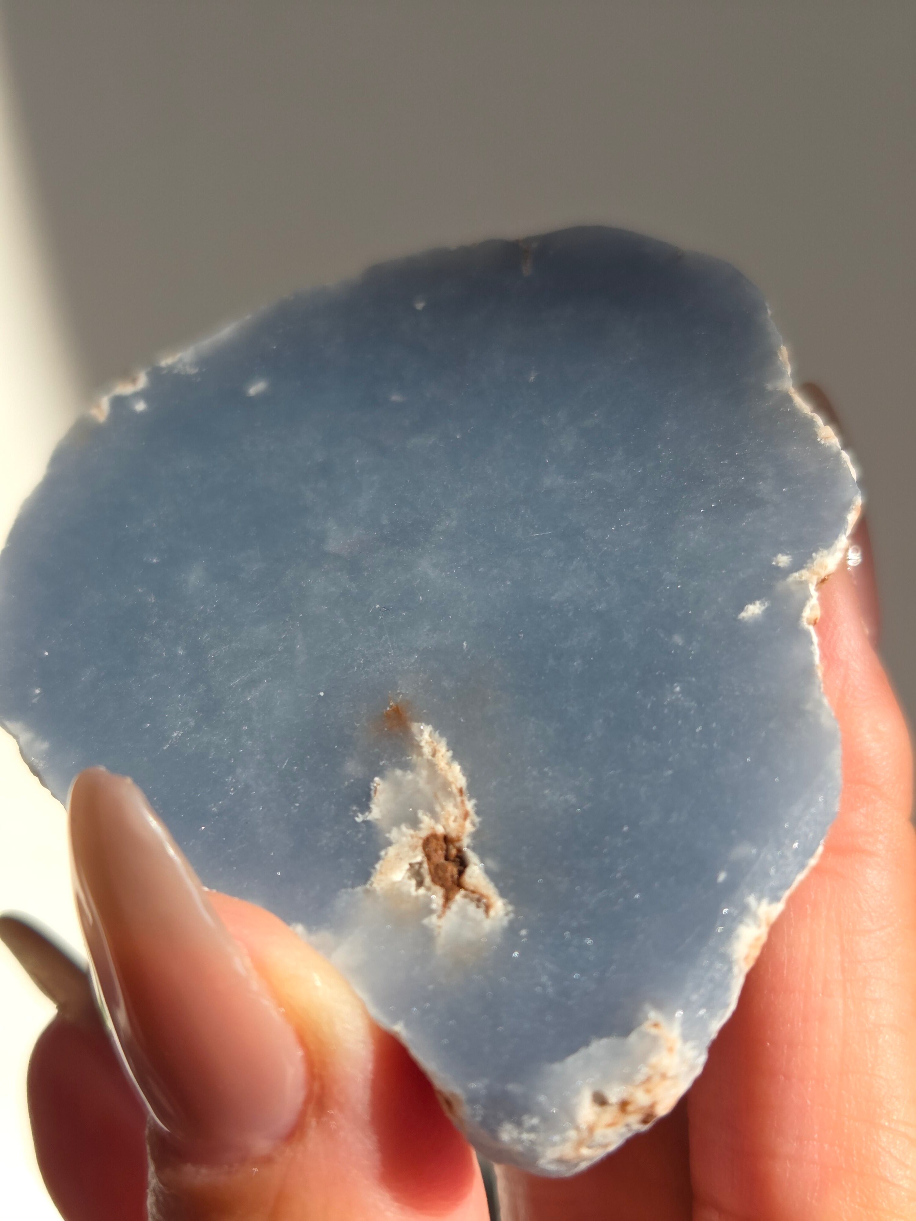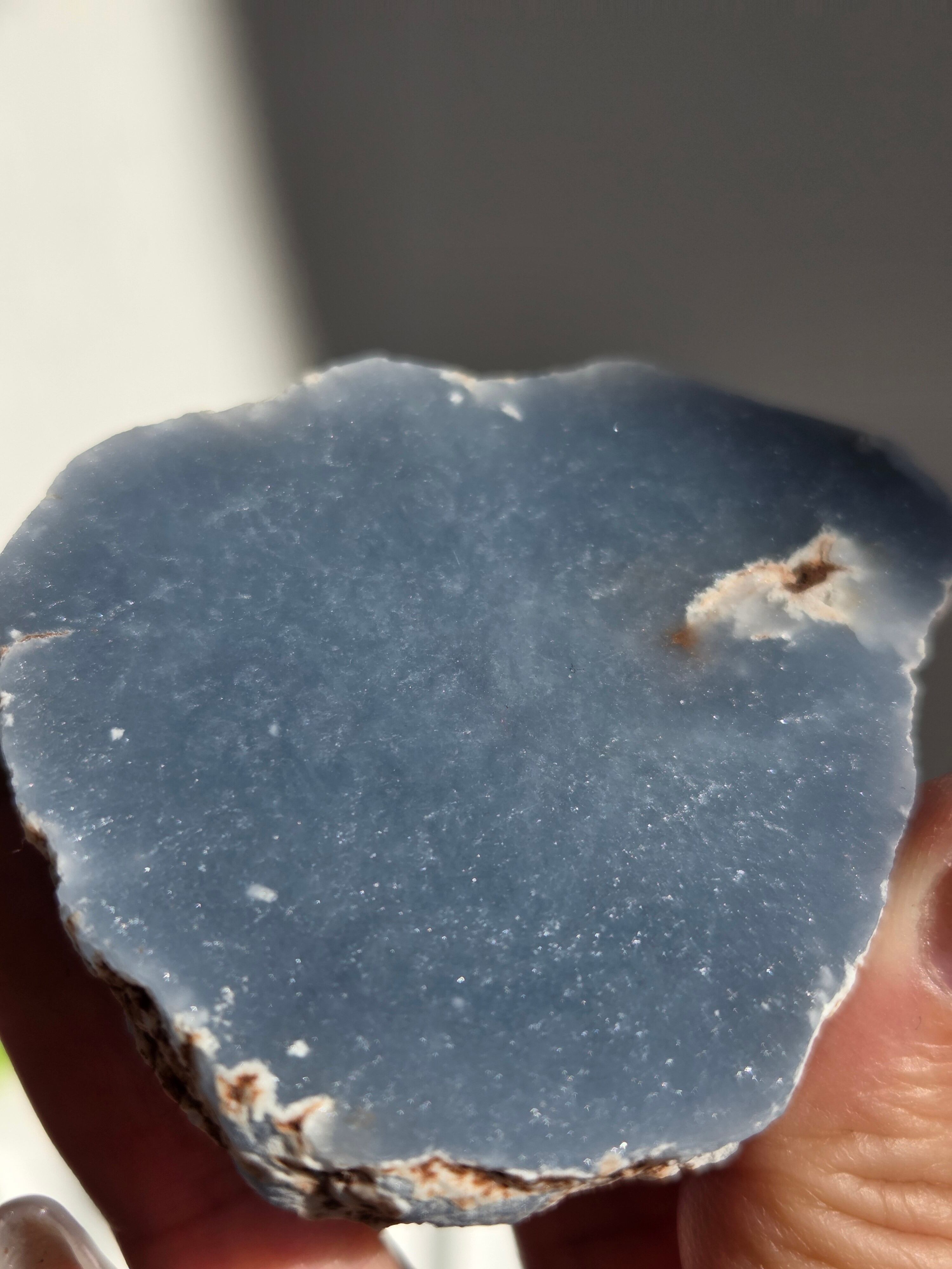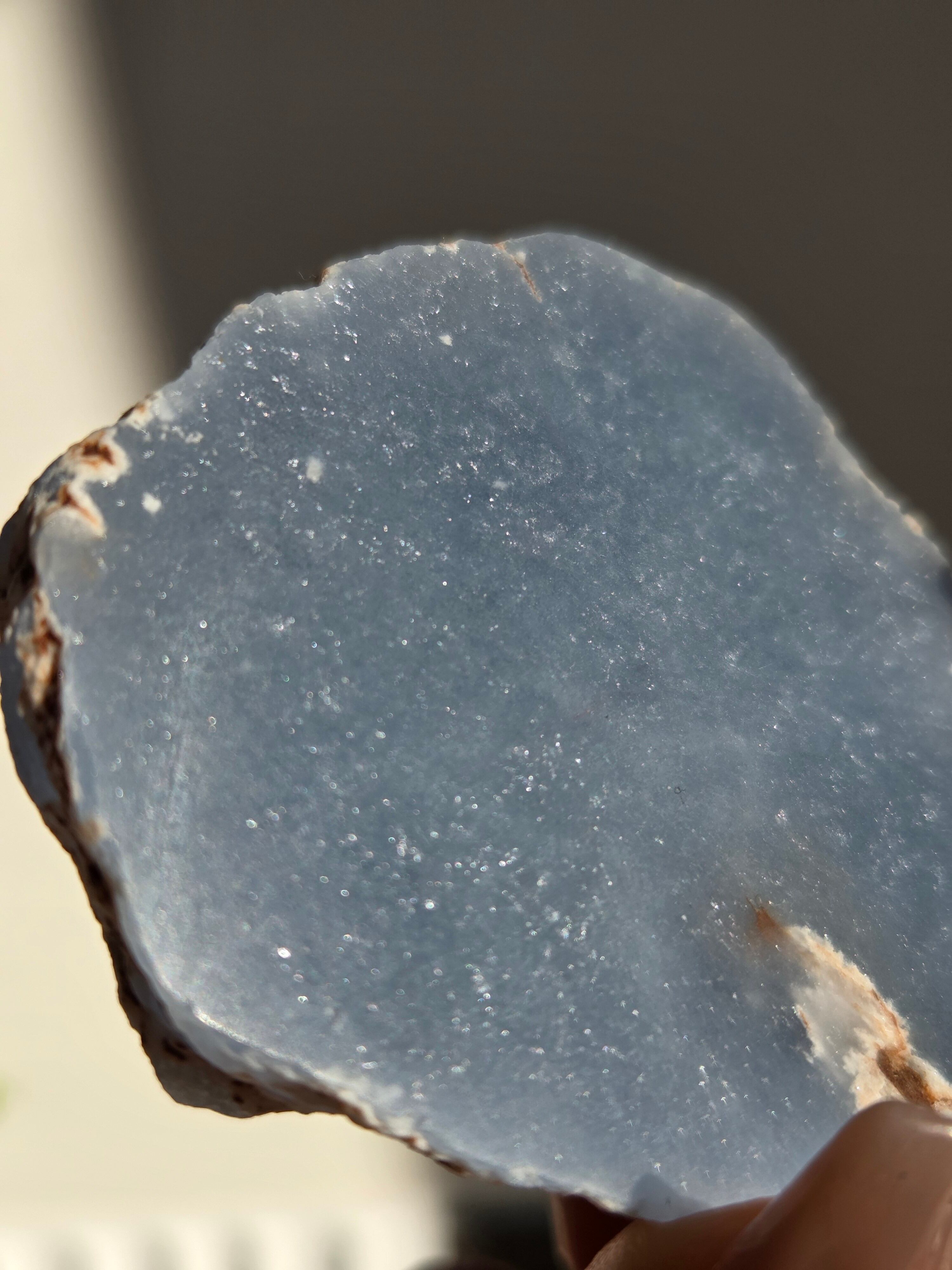エンジェライトの優しいブルーカラーに、キラキラ細かなラメのような煌めきが素敵なスラブです。