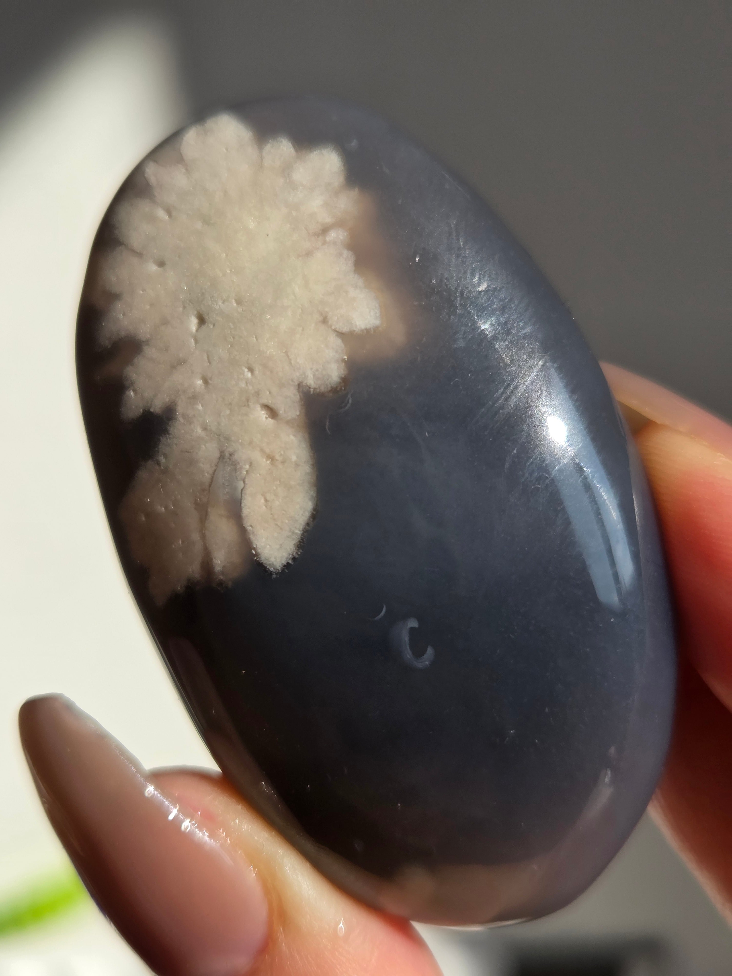 ブラックフラワーアゲート(Black Flower Agate)は、黒やダークブラウンのベースに、白い花のような内包物(カルセドニー)が広がる、近年注目を集める瑪瑙(アゲート)の一種です。シックな色合いと幻想的な模様が特徴で、心身のバランスを整え、ストレス緩和や人間関係の改善、絆を深めるヒーリングストーンとして人気です。
